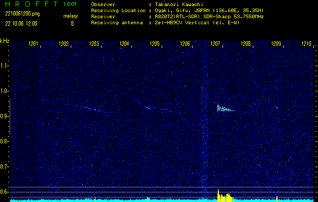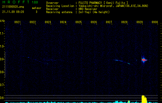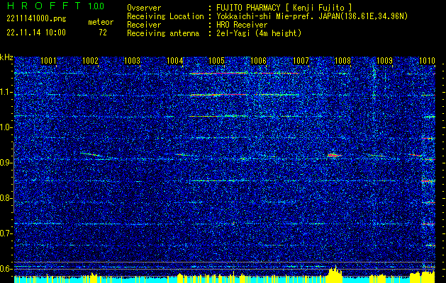 ・ 縦軸の0.9kHz附近に発生している『点』または『塊』が流星によるエコーです.