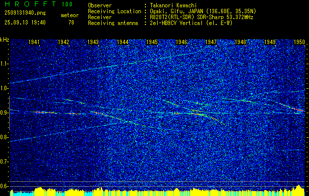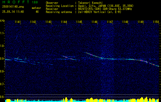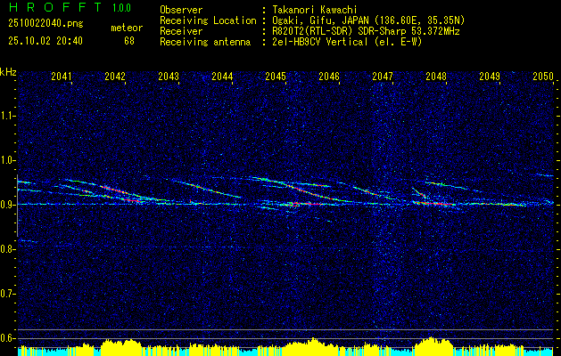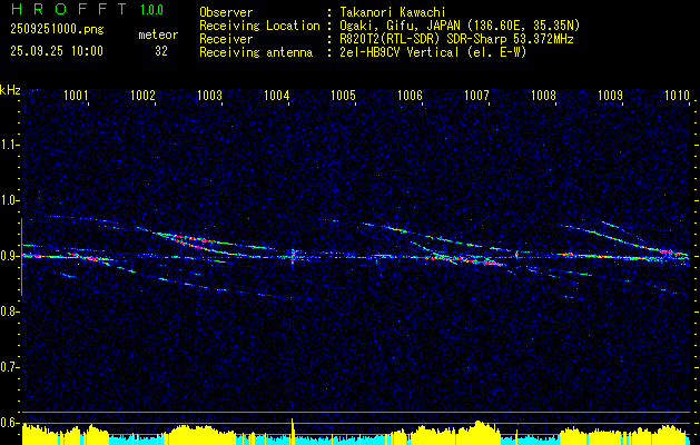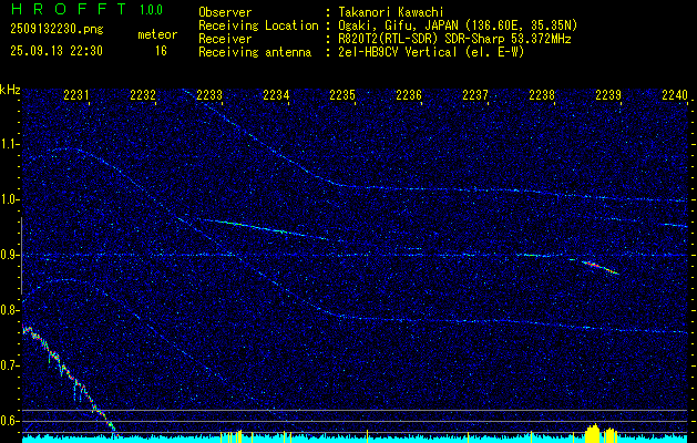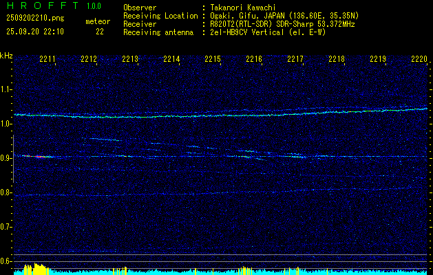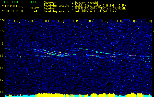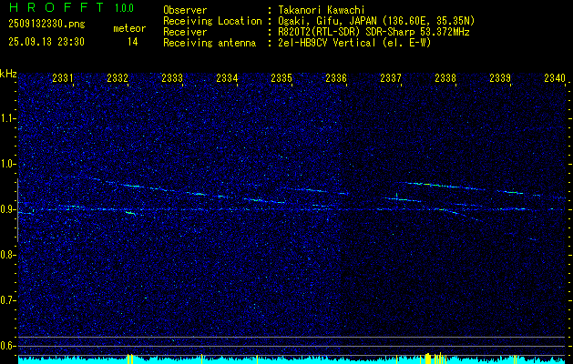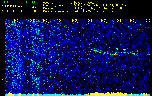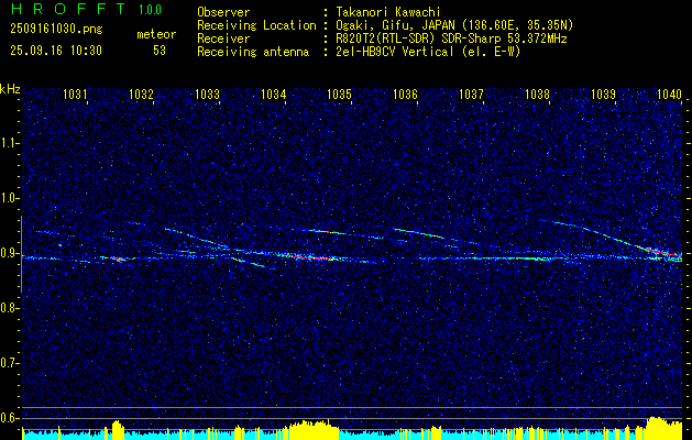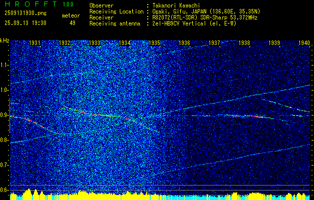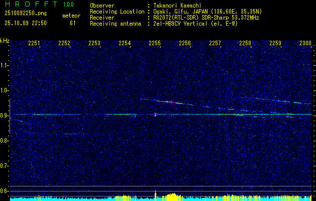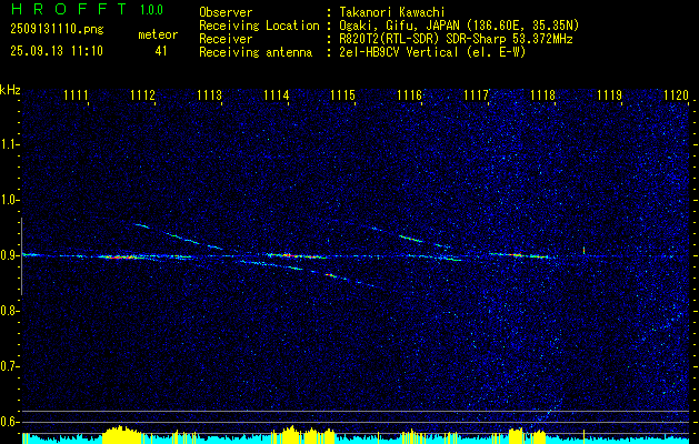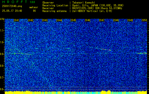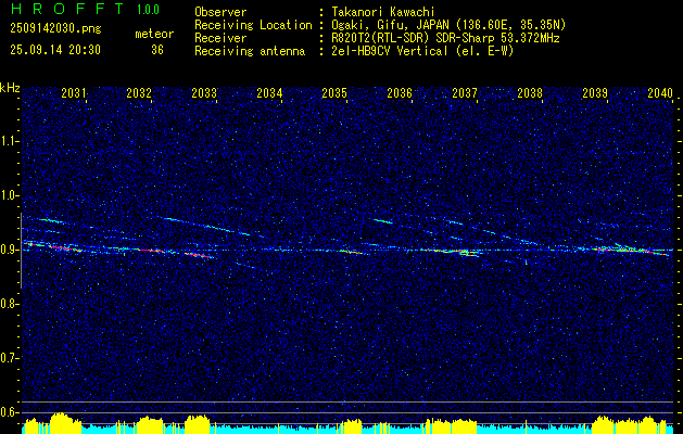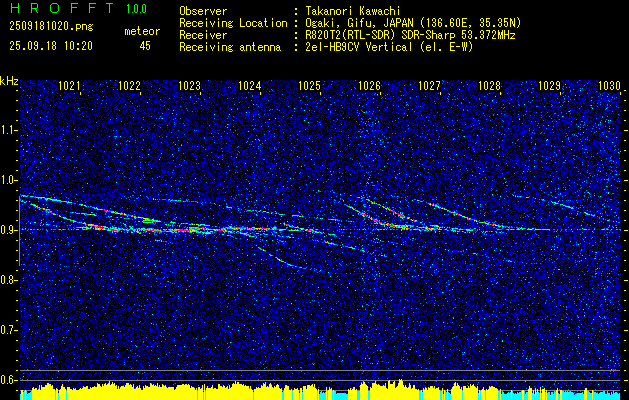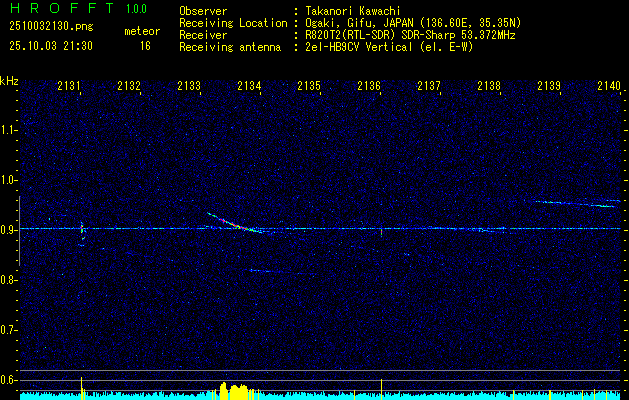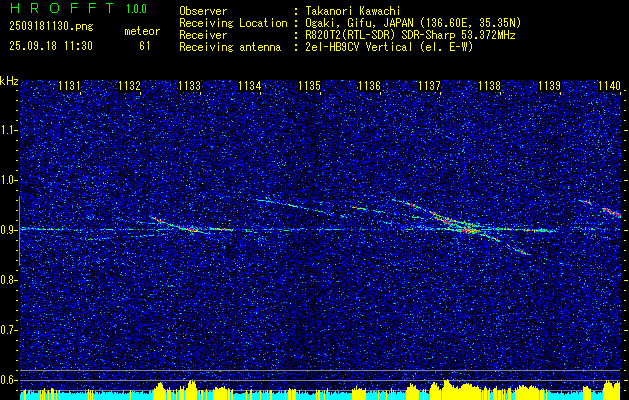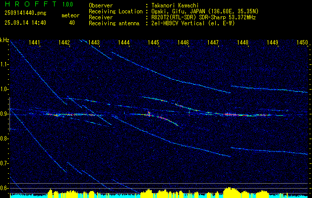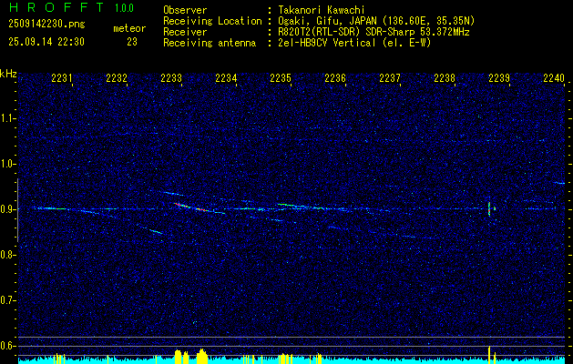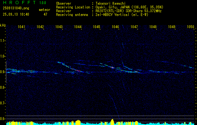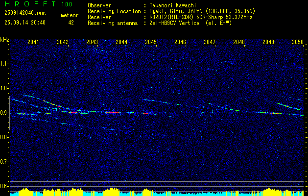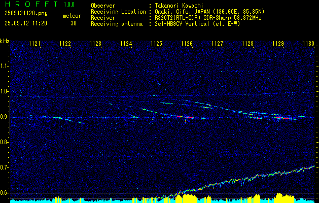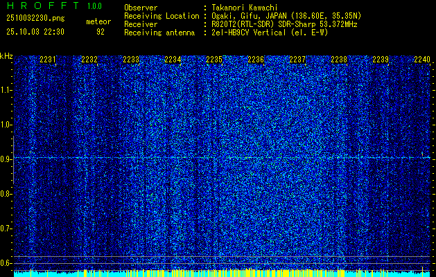 0.9kHz附近に発生している『点』または『塊』が流星によるエコーです.