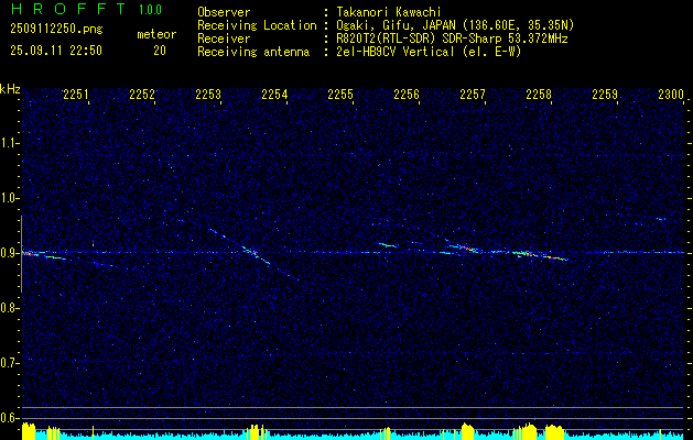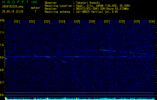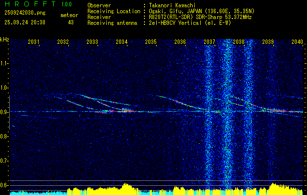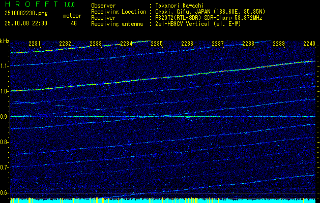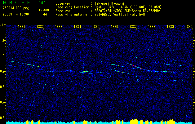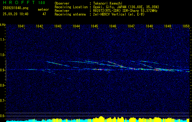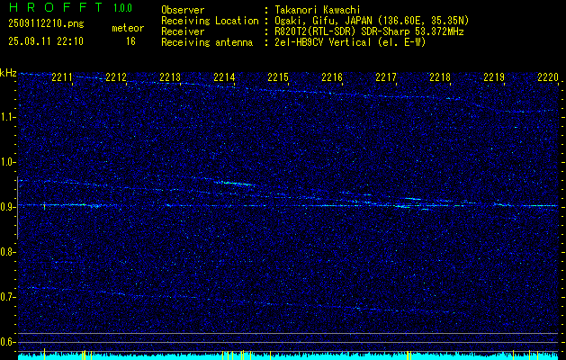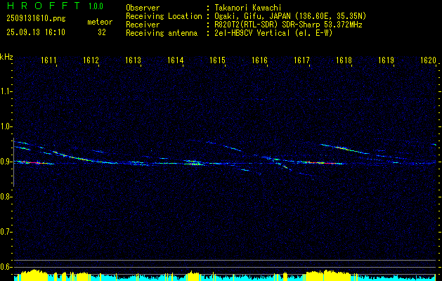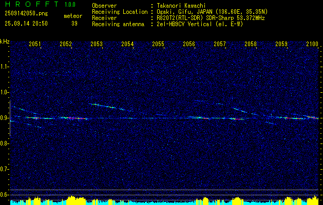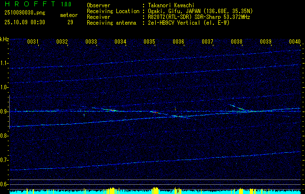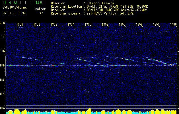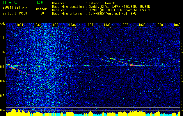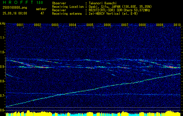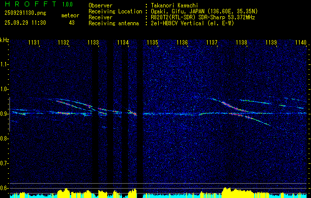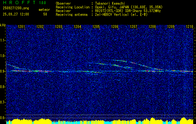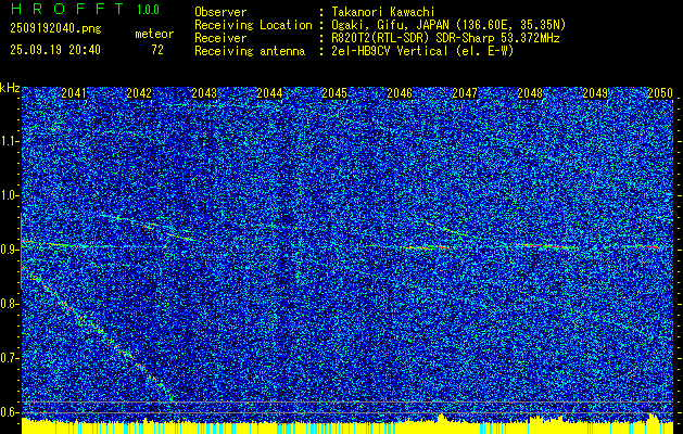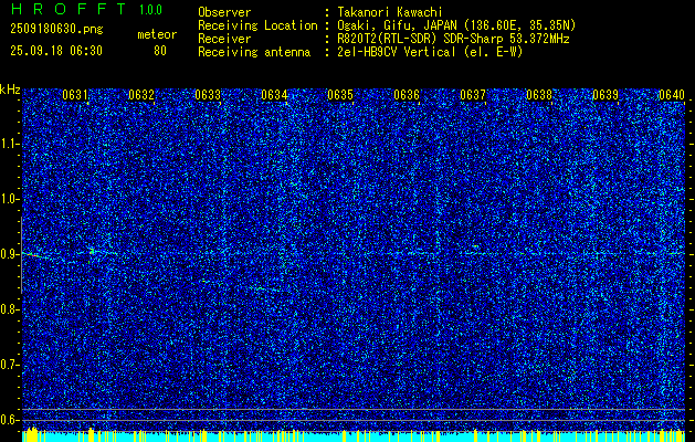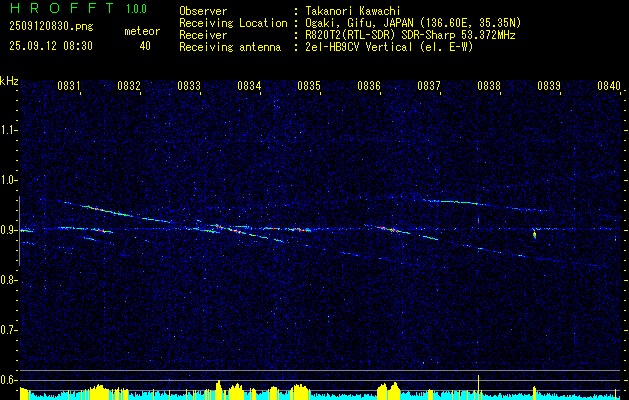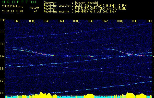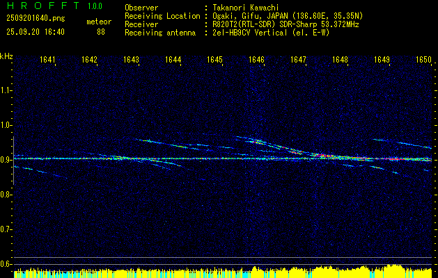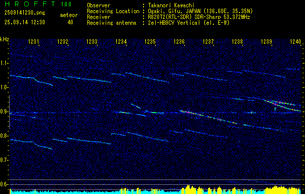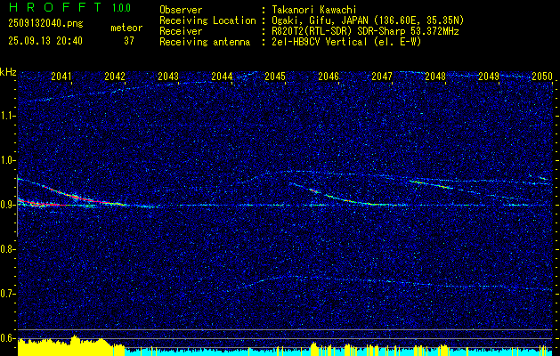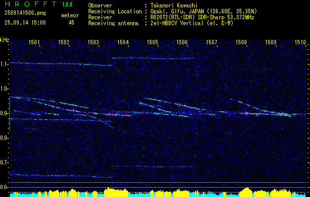 0.9kHz附近に発生している『点』または『塊』が流星によるエコーです.