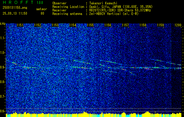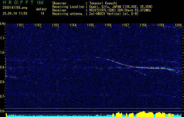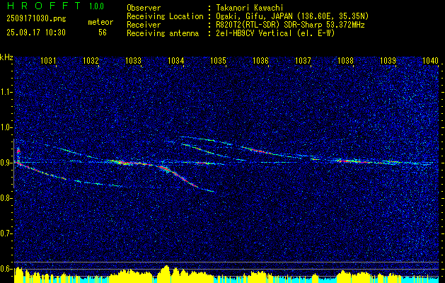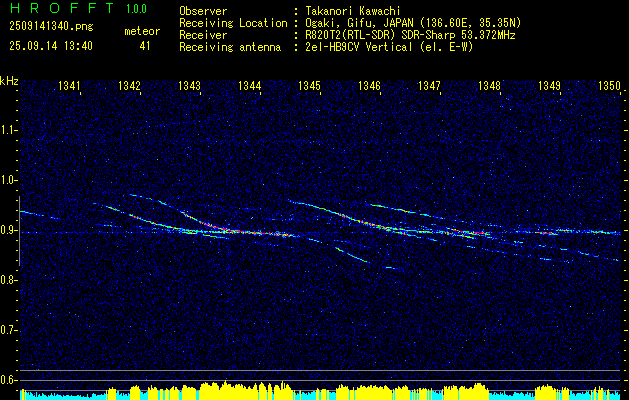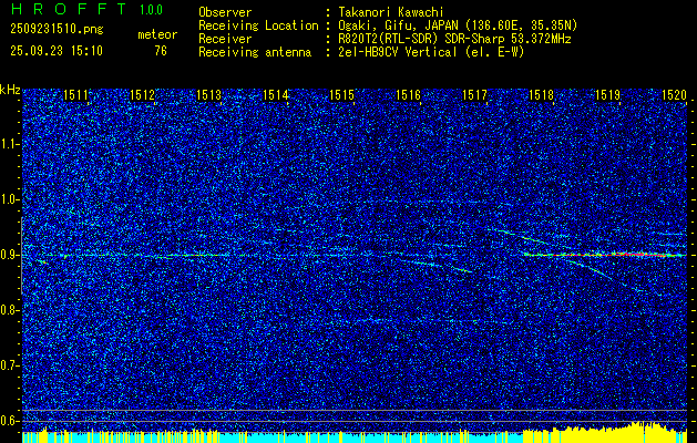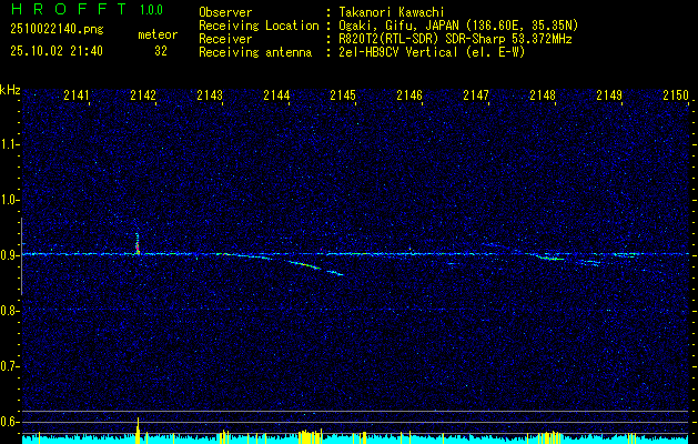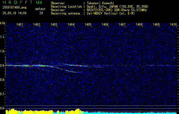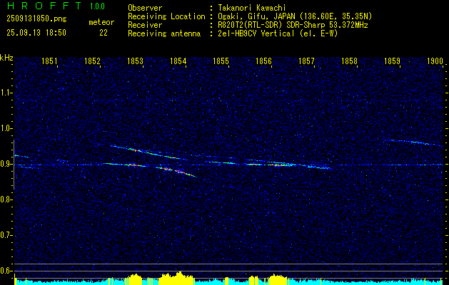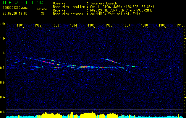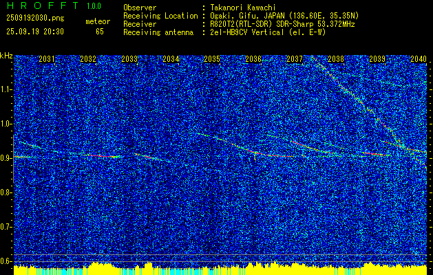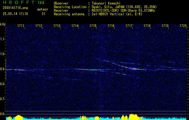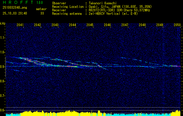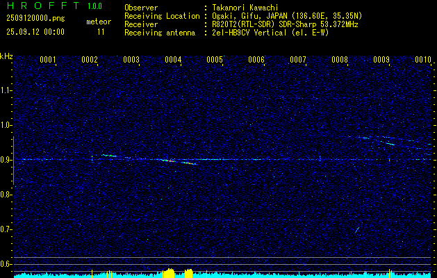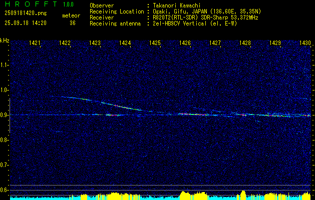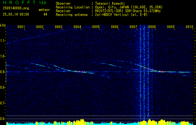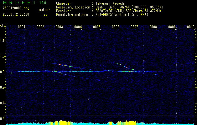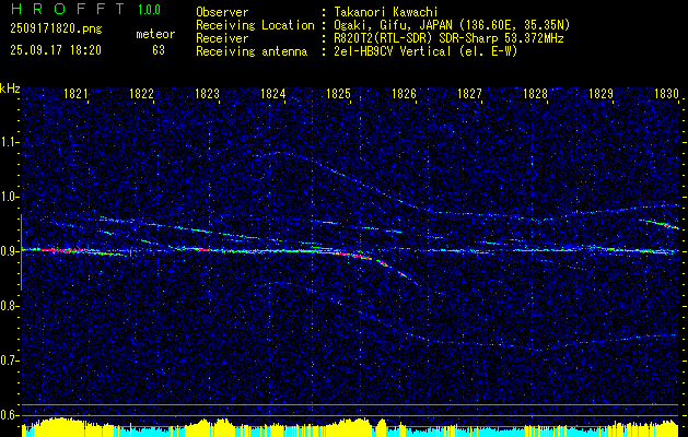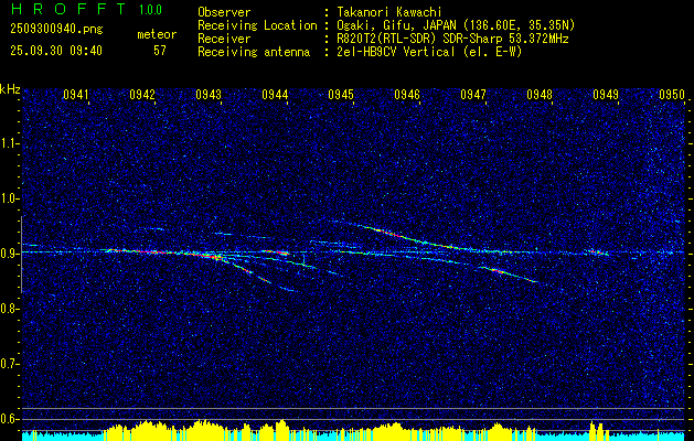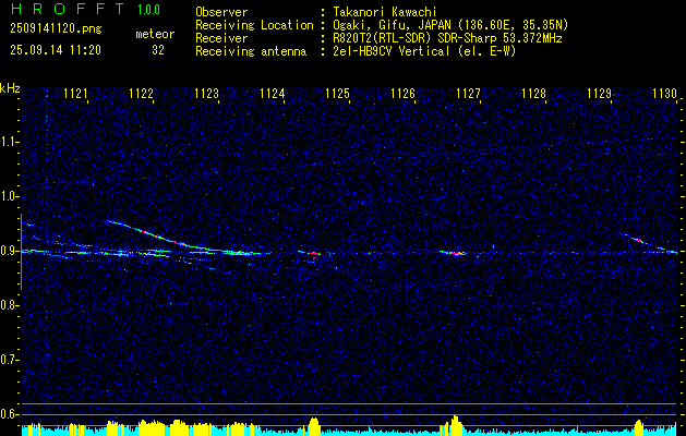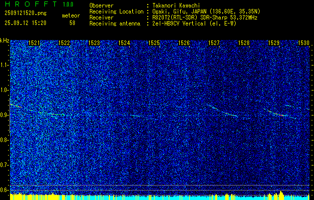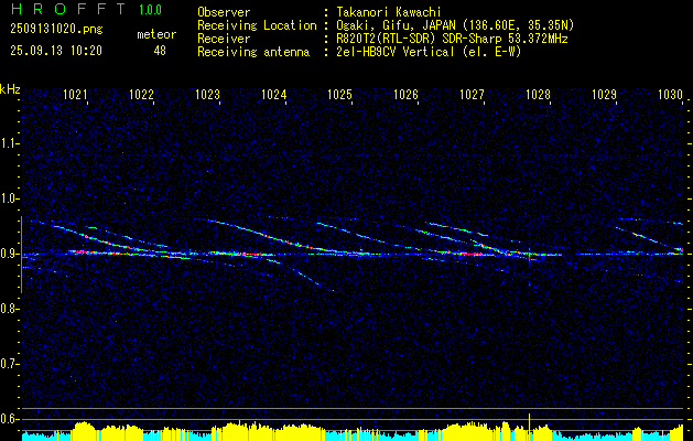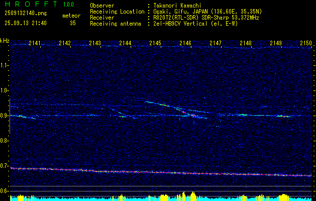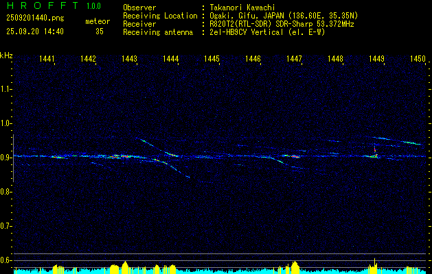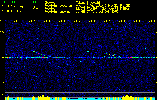 0.9kHz附近に発生している『点』または『塊』が流星によるエコーです.