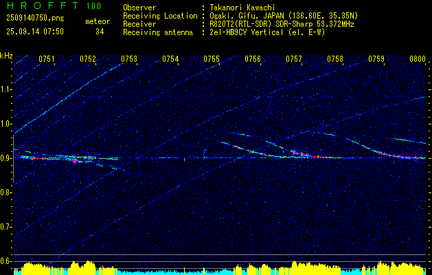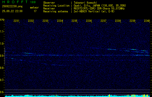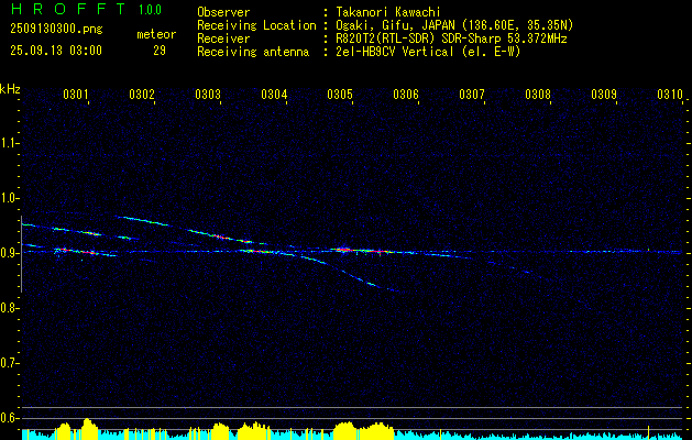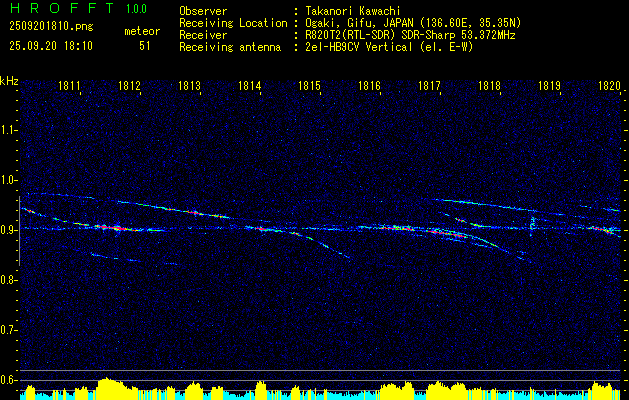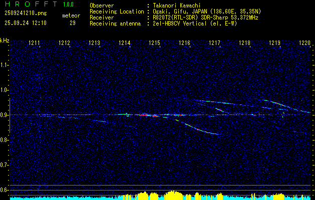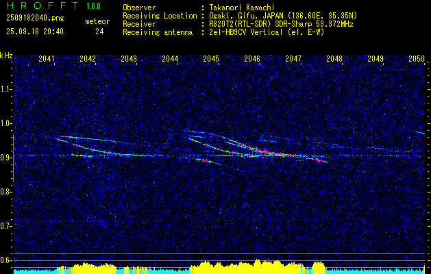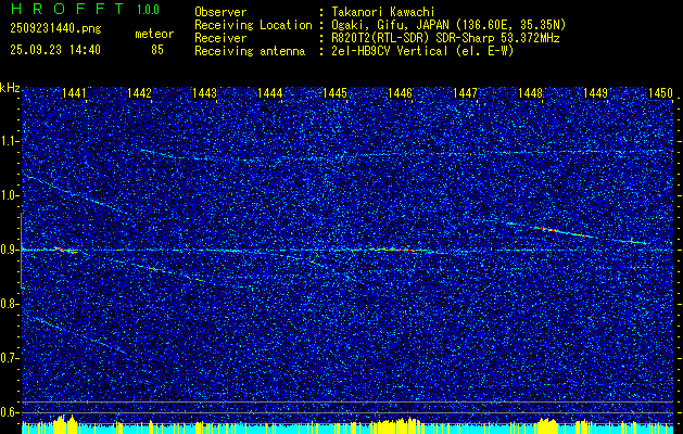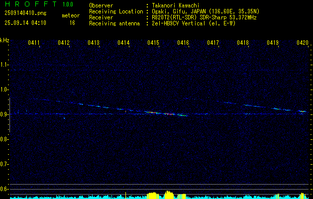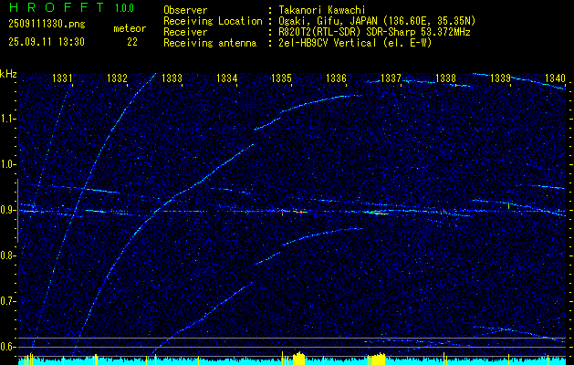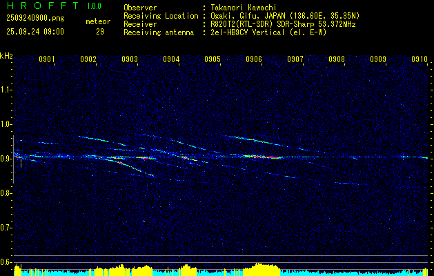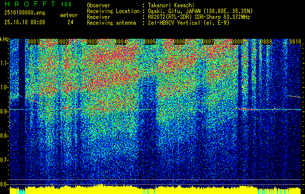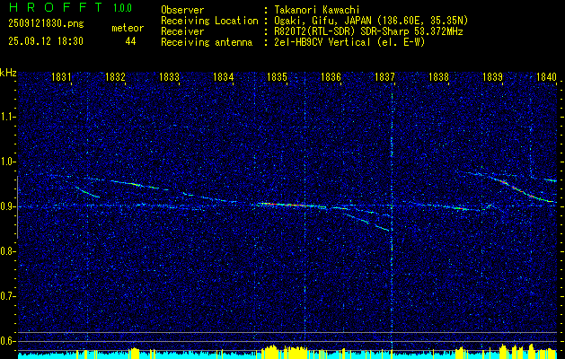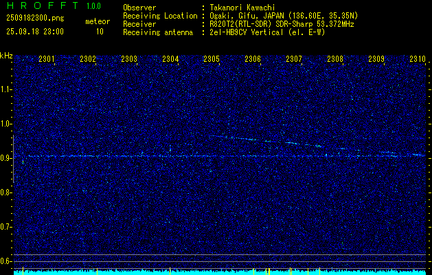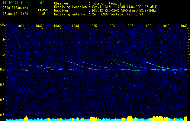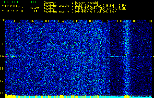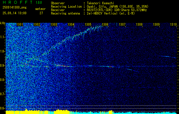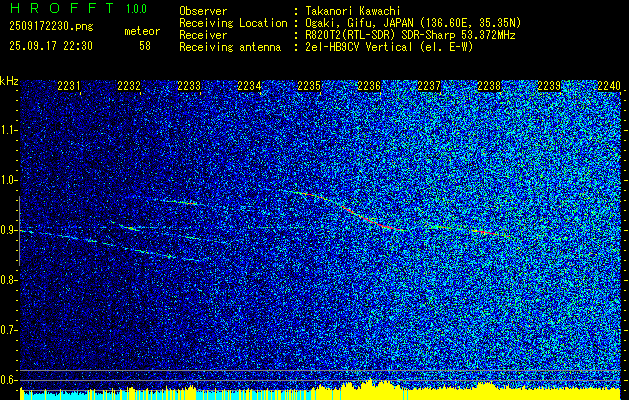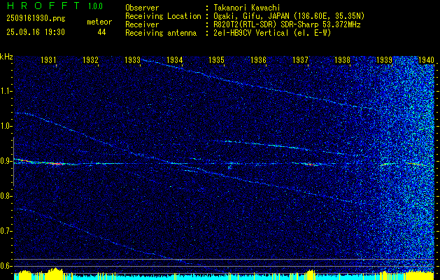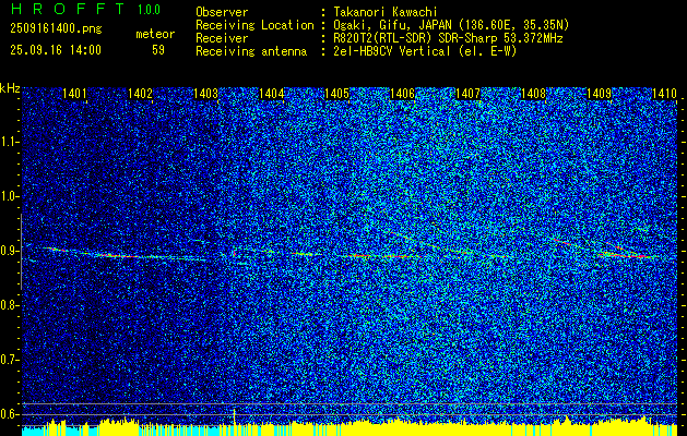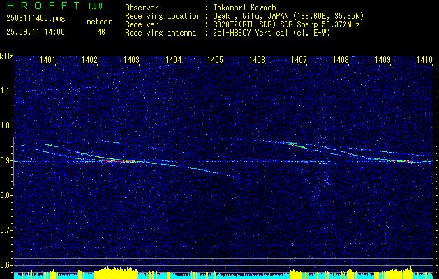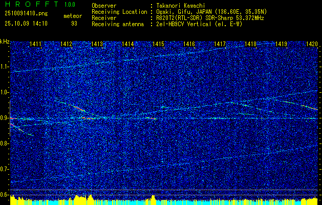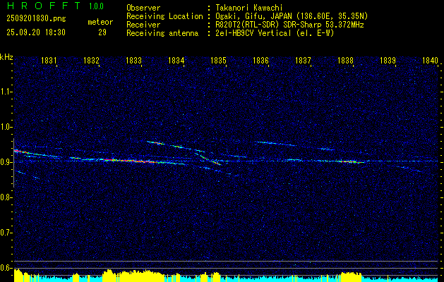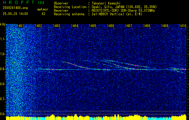 0.9kHz附近に発生している『点』または『塊』が流星によるエコーです.