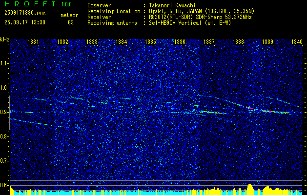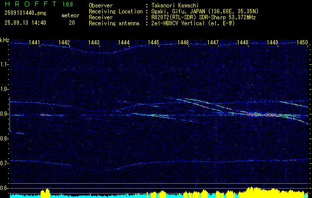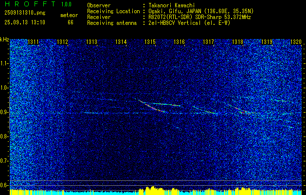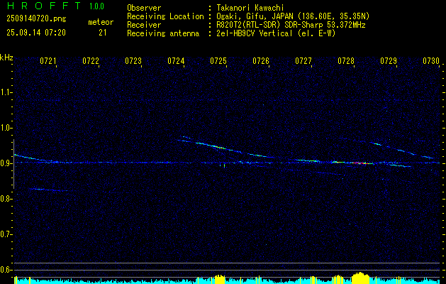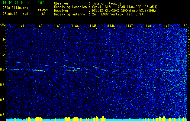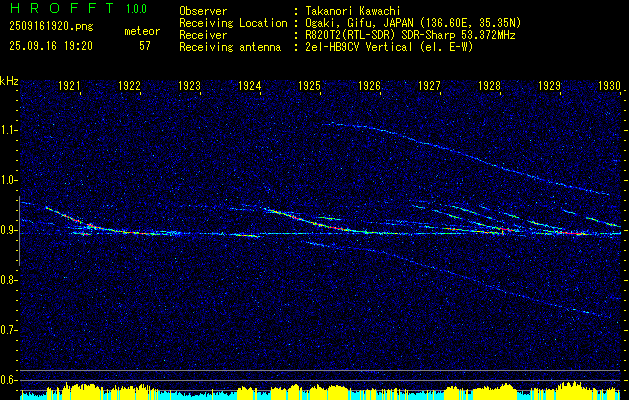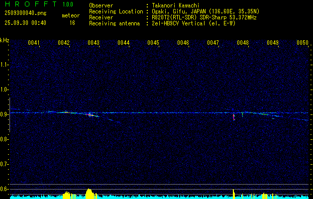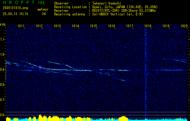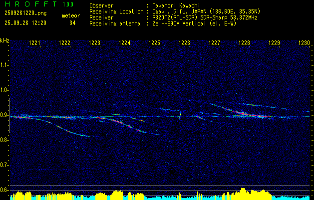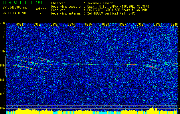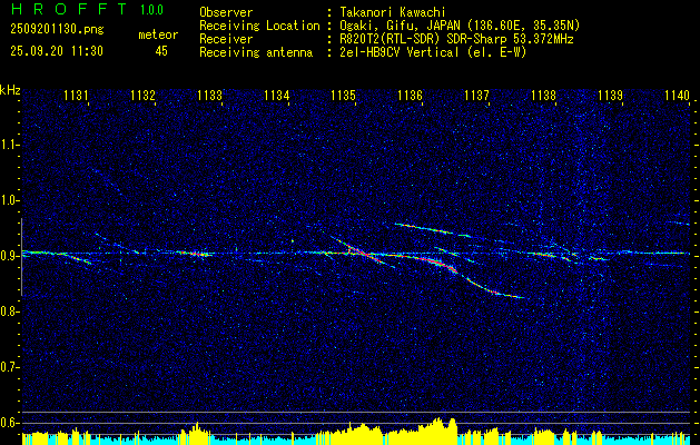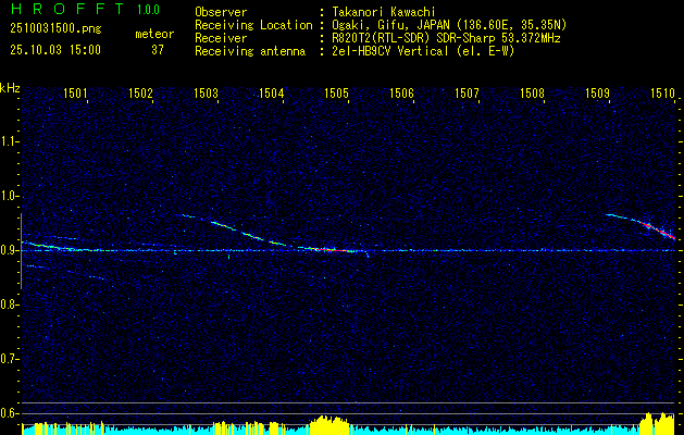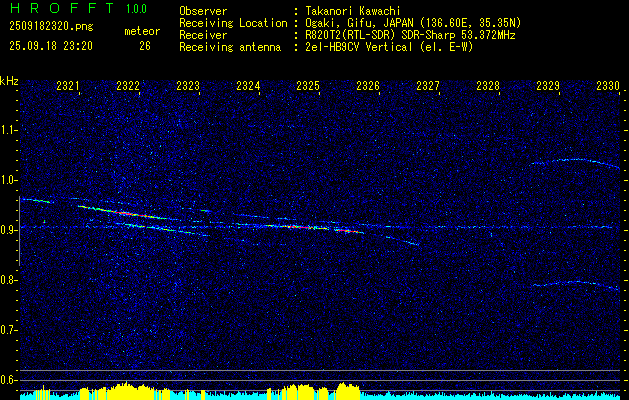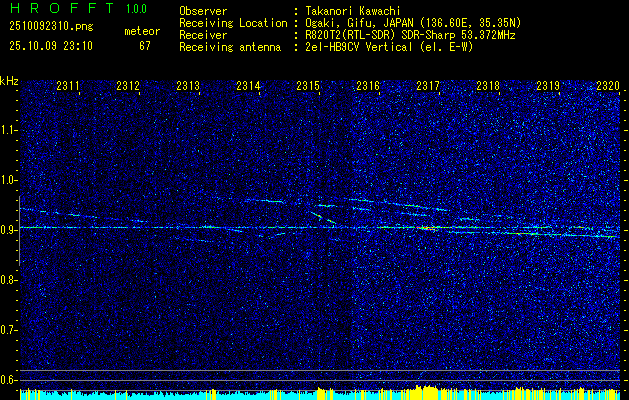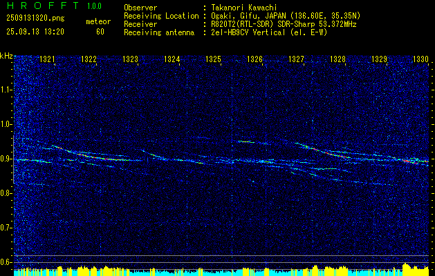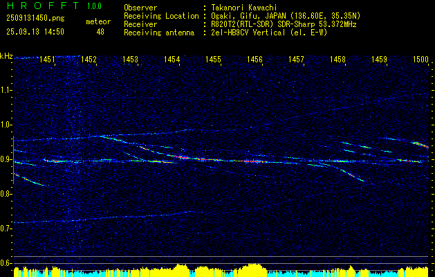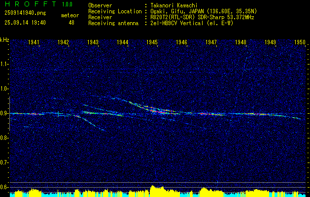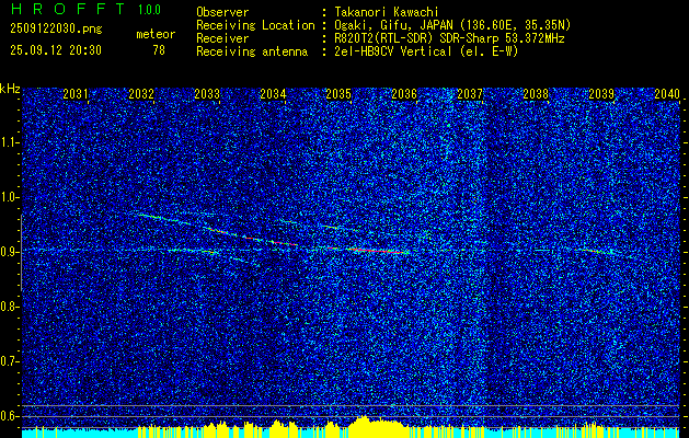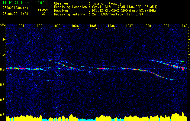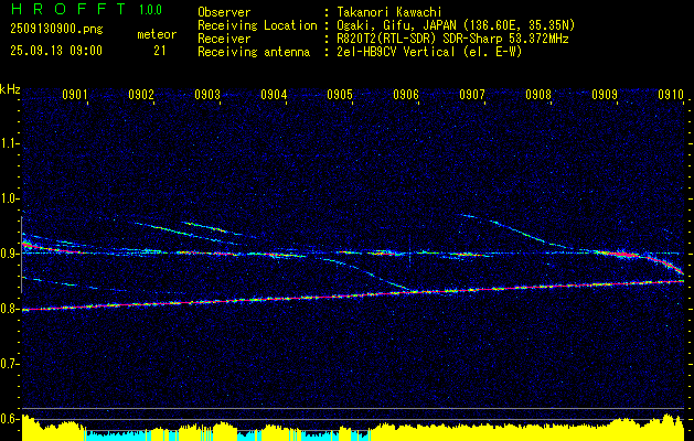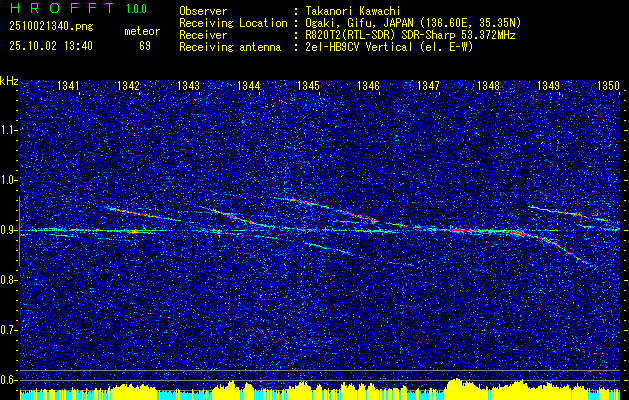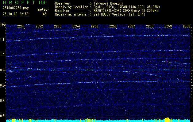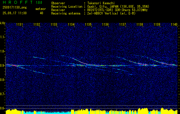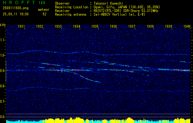0.9kHz附近に発生している『点』または『塊』が流星によるエコーです.