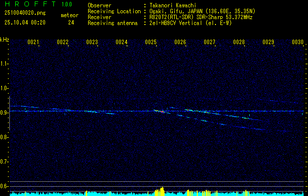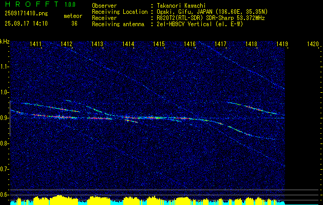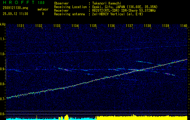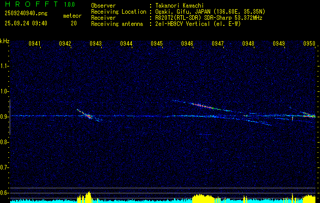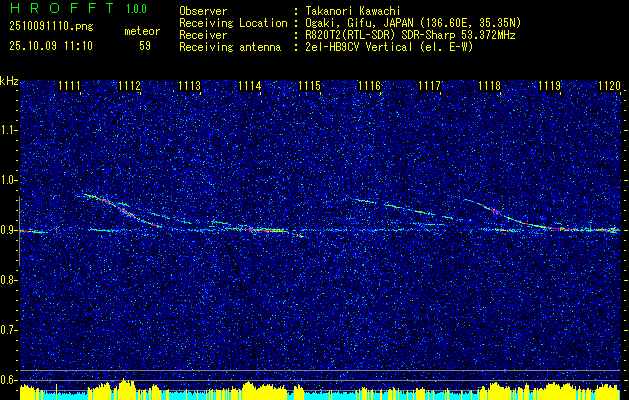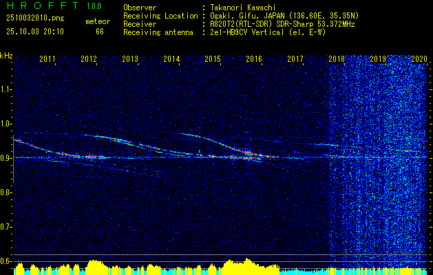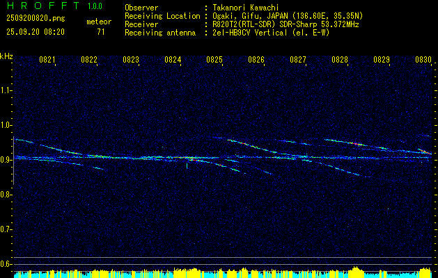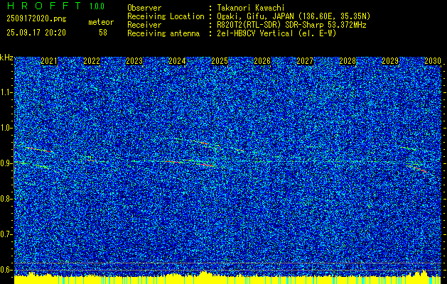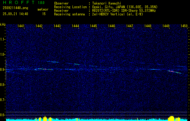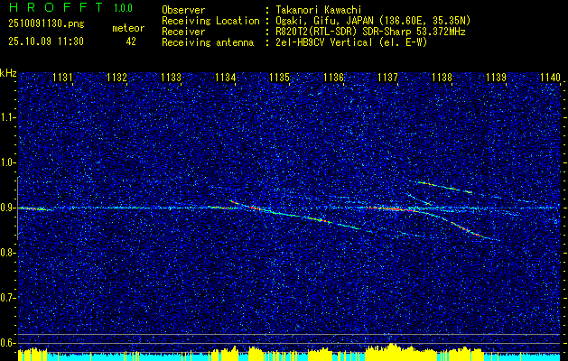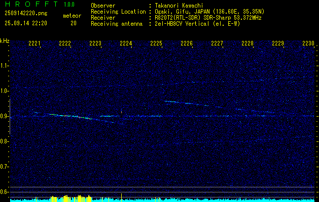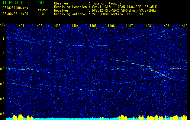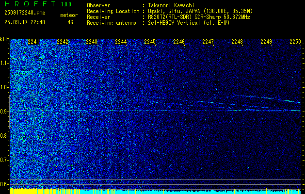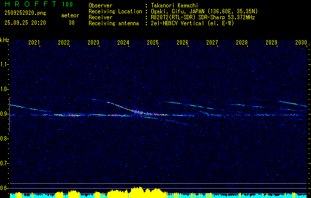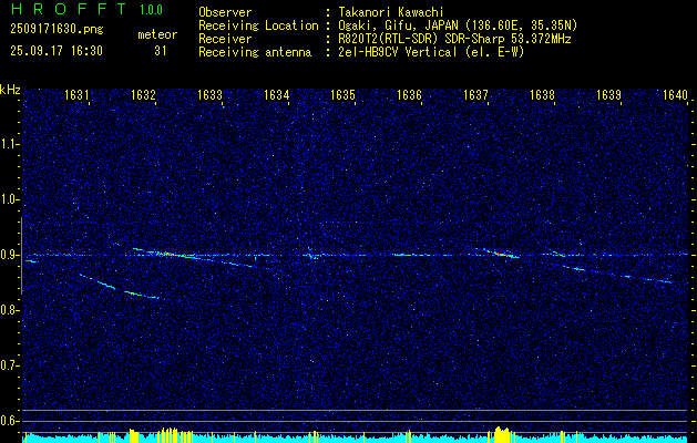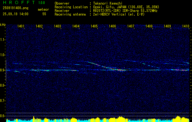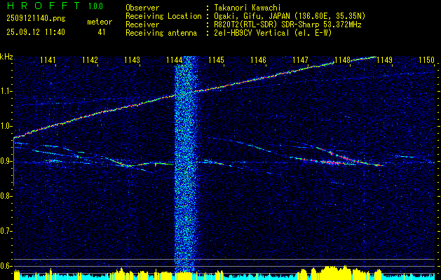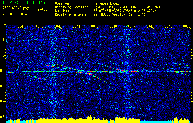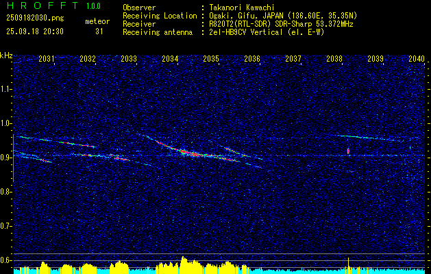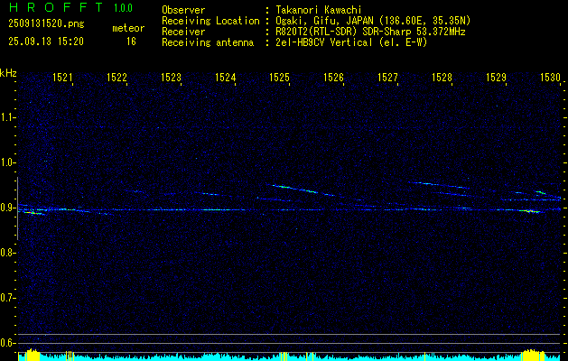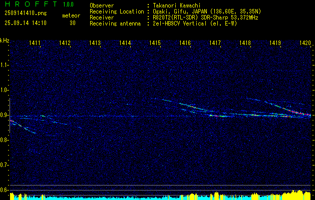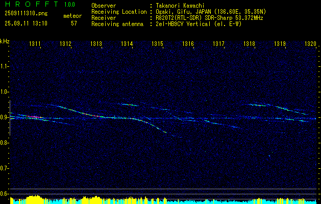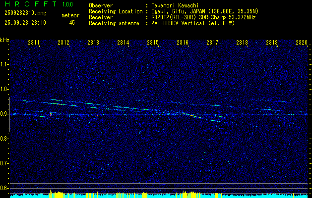 0.9kHz附近に発生している『点』または『塊』が流星によるエコーです.