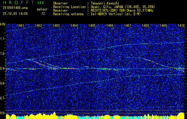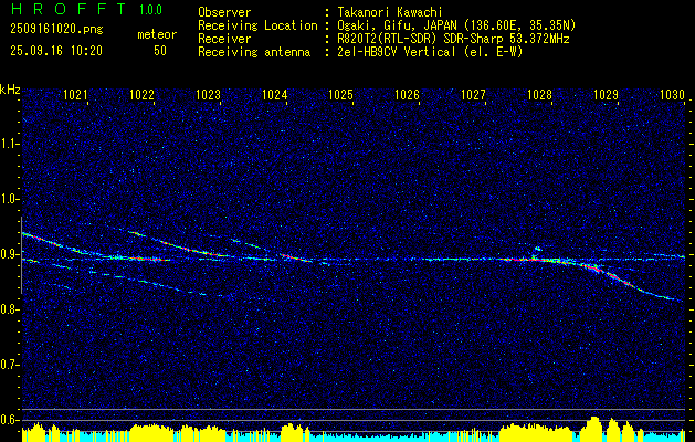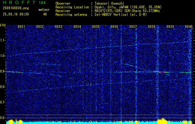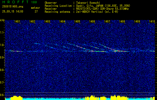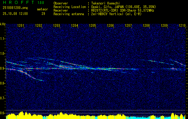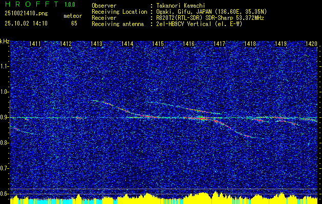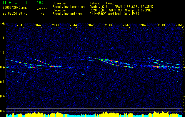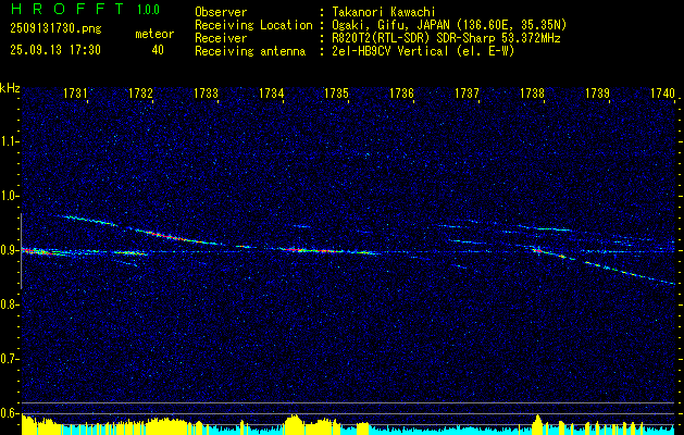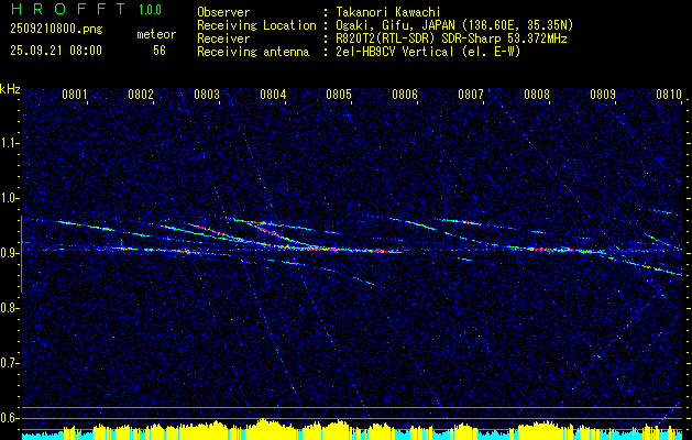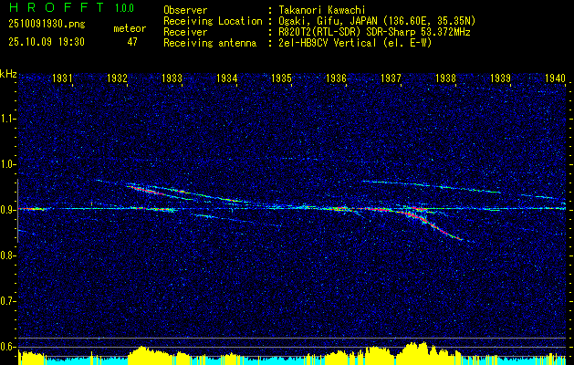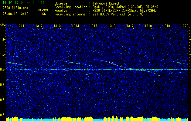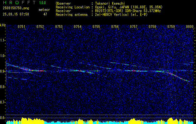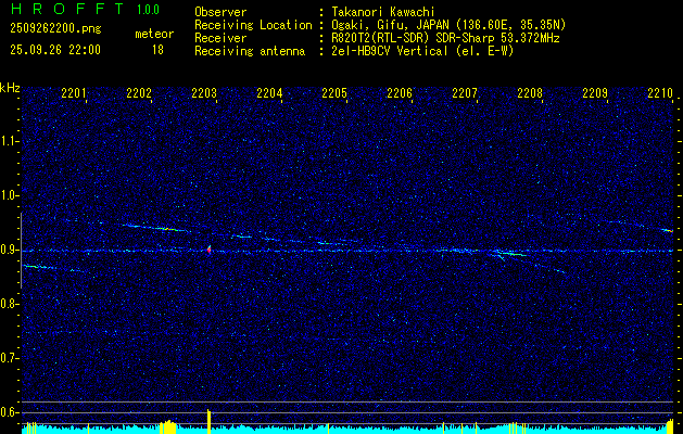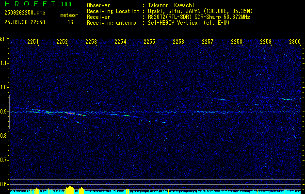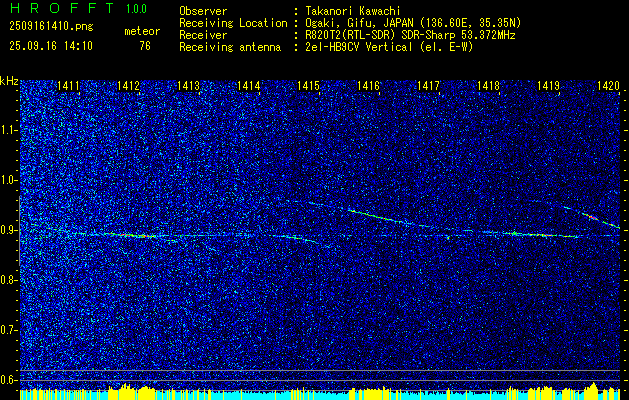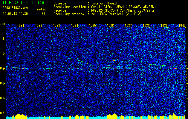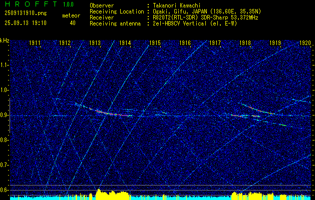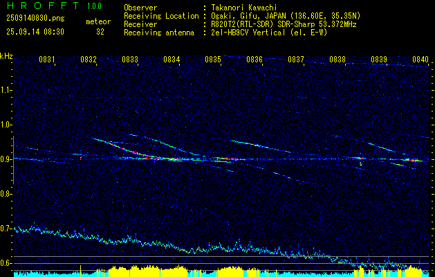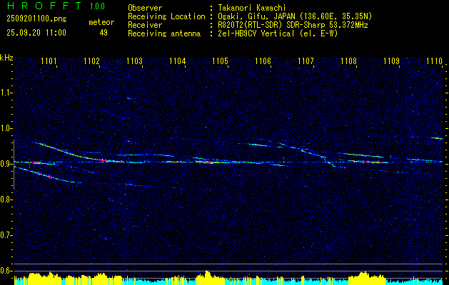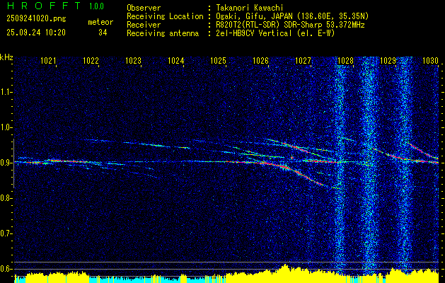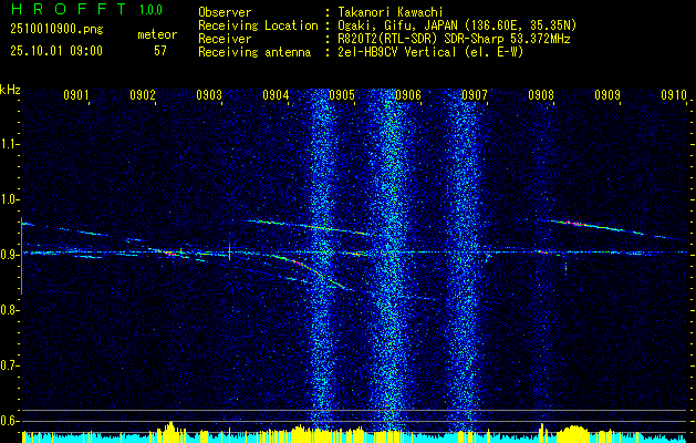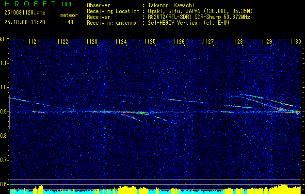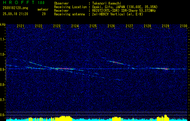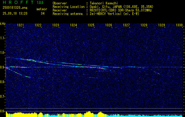 0.9kHz附近に発生している『点』または『塊』が流星によるエコーです.