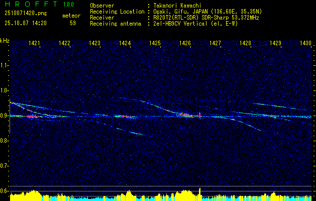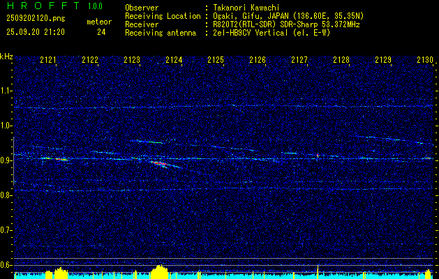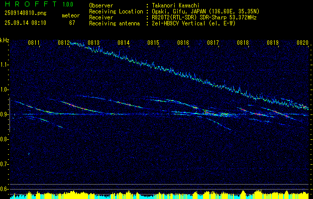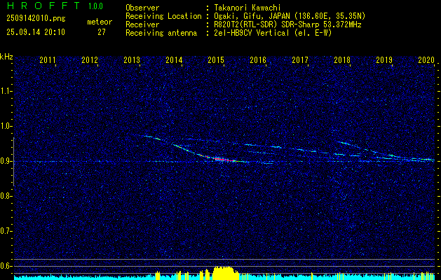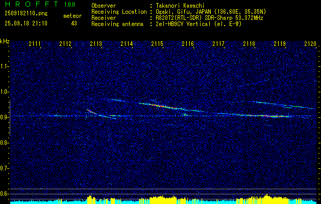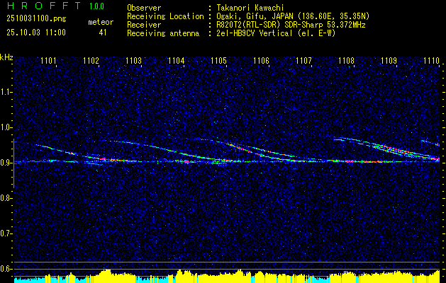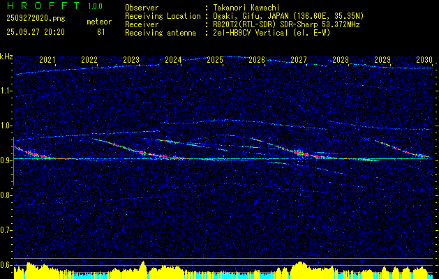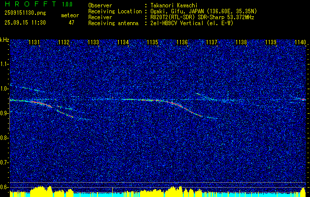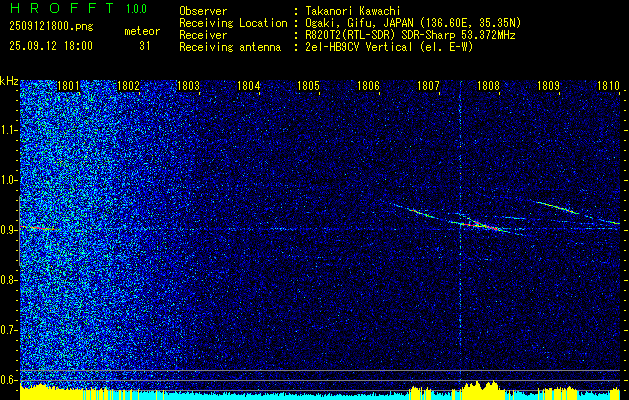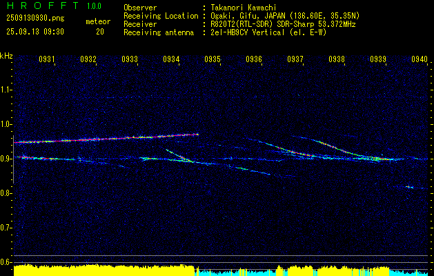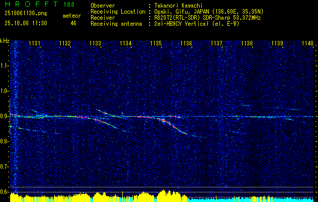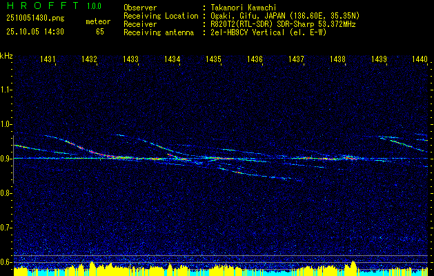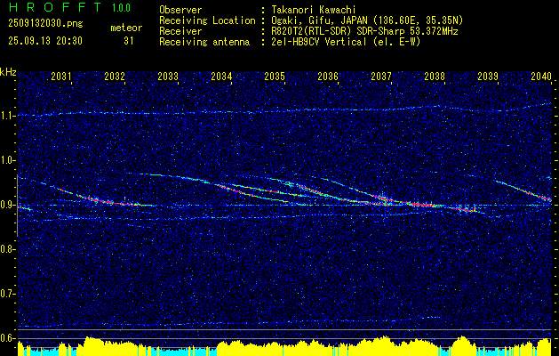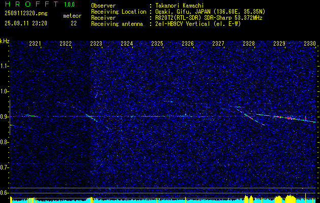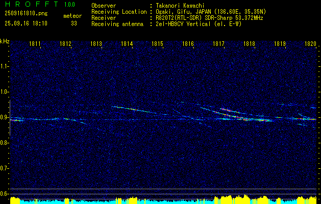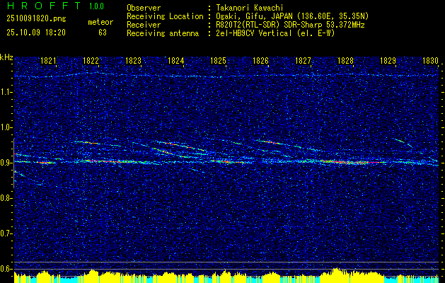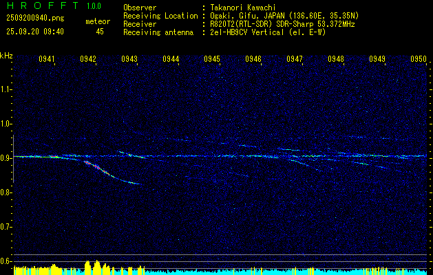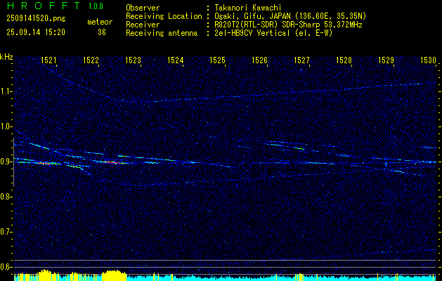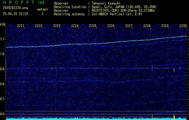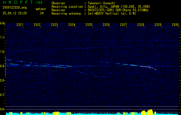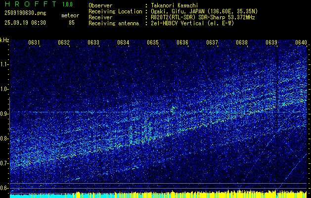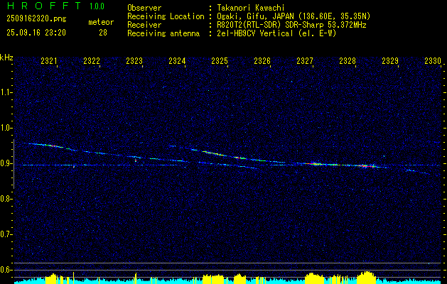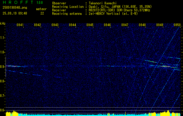 0.9kHz附近に発生している『点』または『塊』が流星によるエコーです.