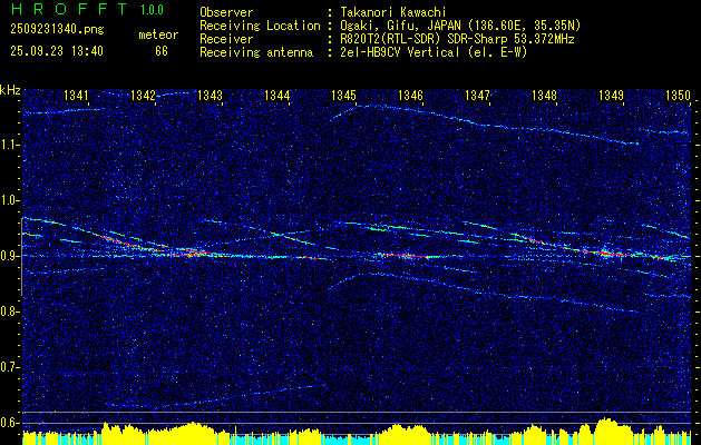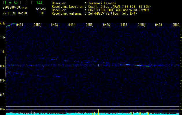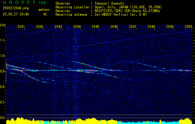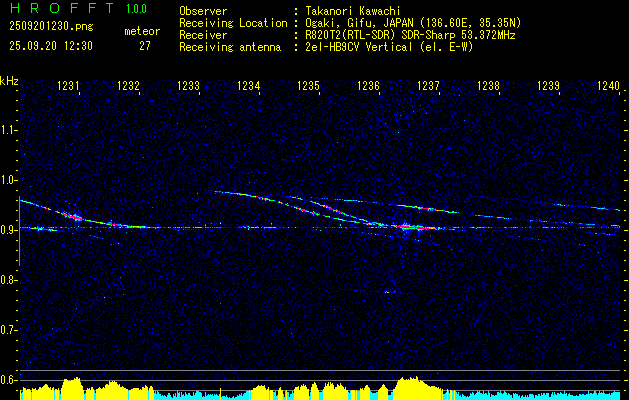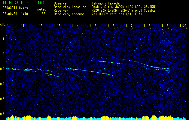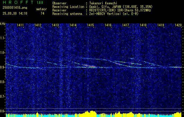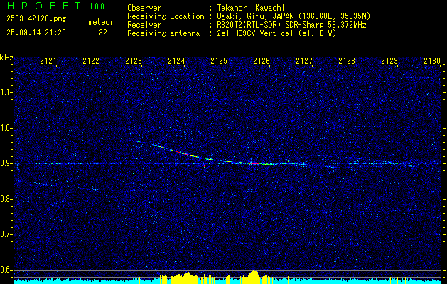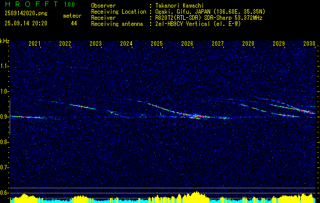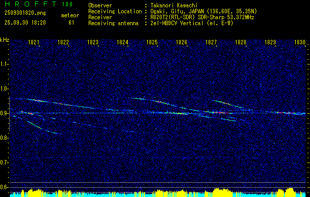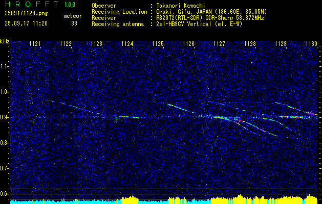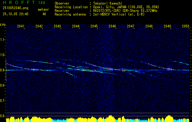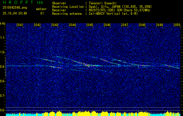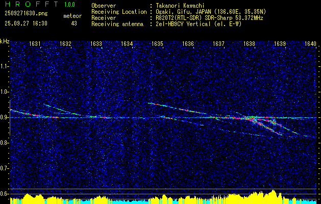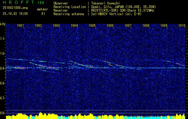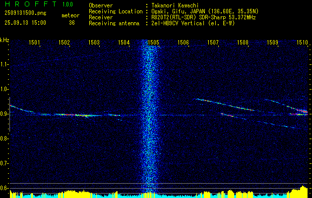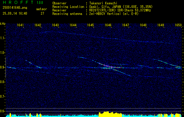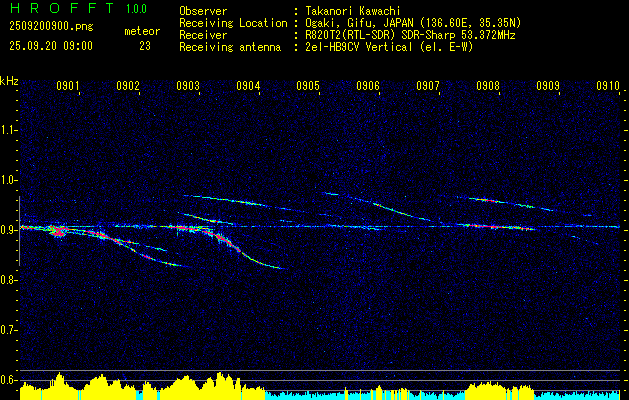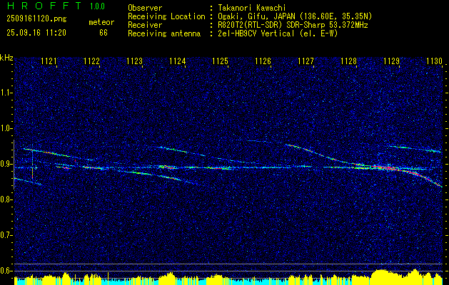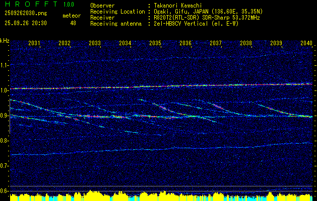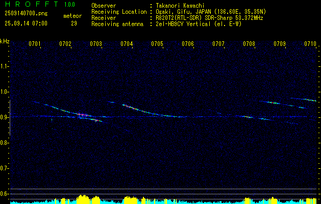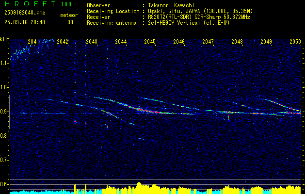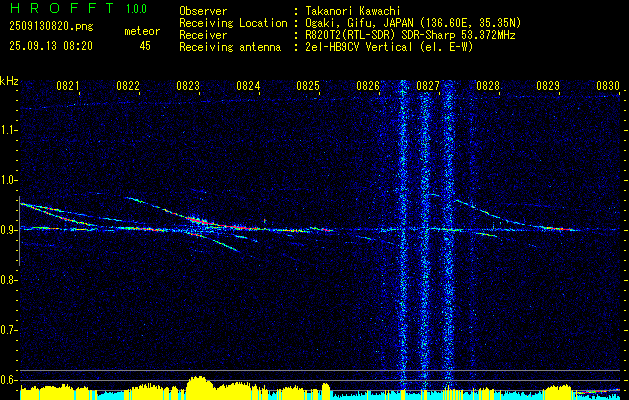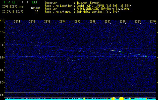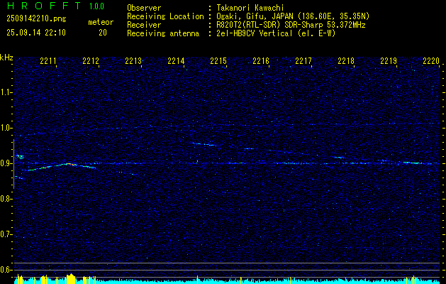 0.9kHz附近に発生している『点』または『塊』が流星によるエコーです.