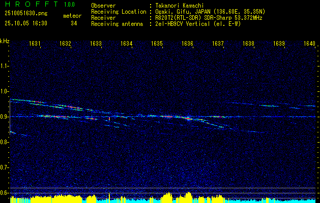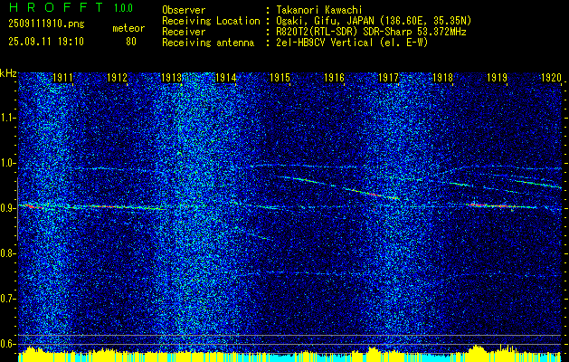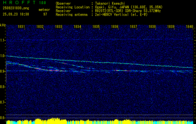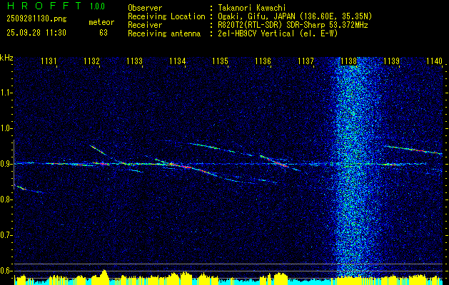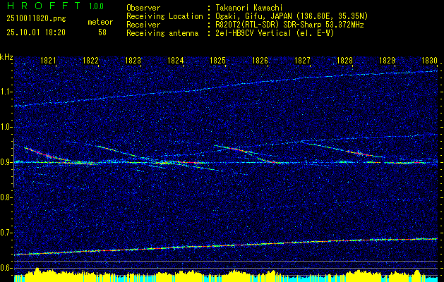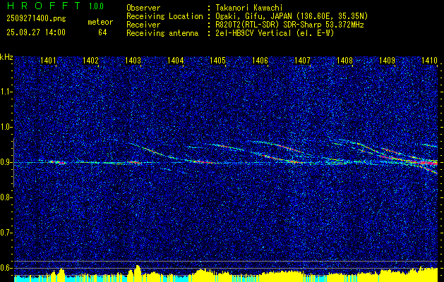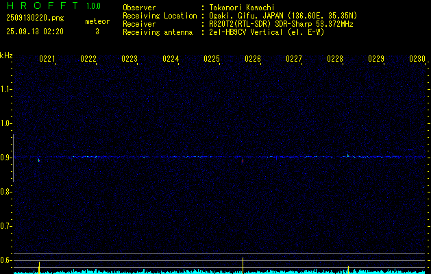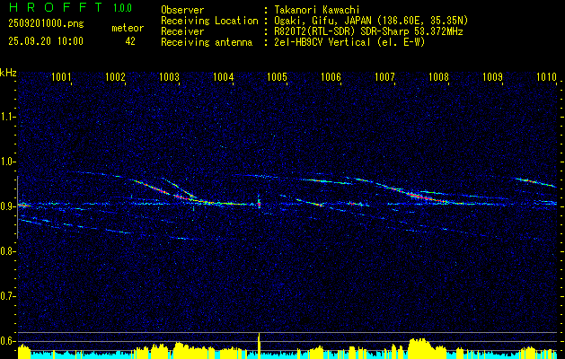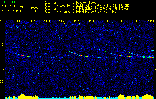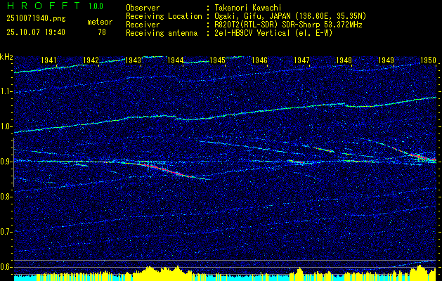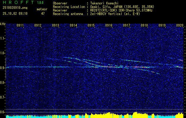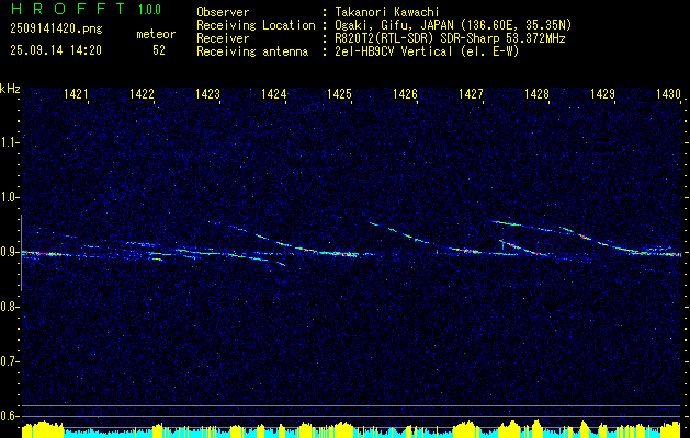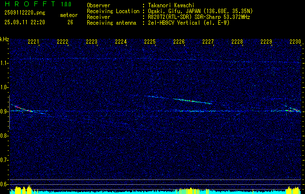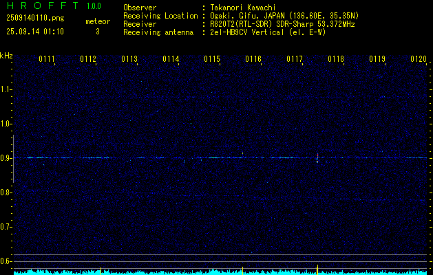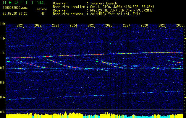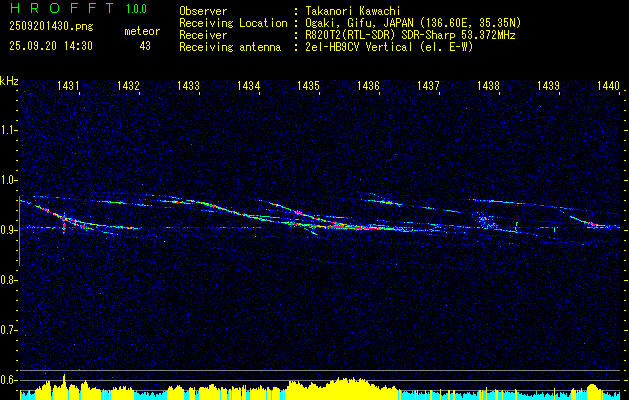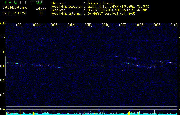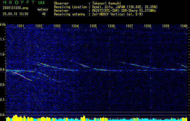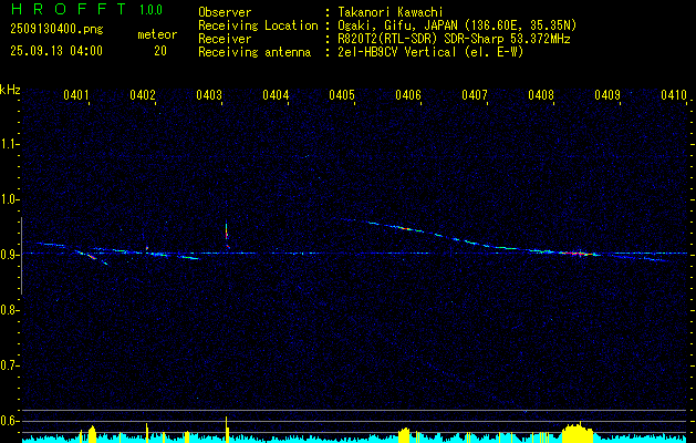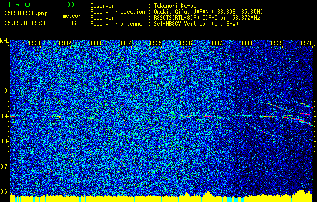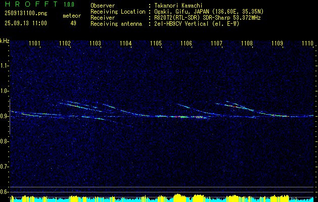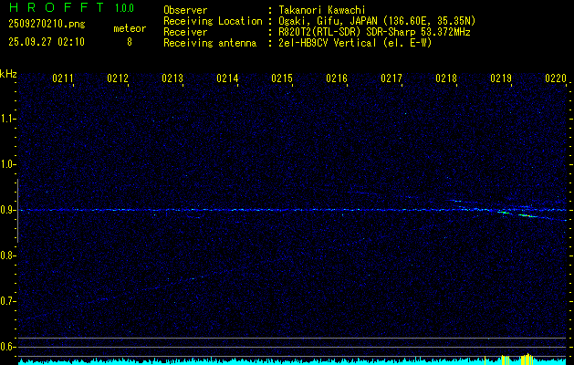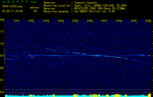0.9kHz附近に発生している『点』または『塊』が流星によるエコーです.