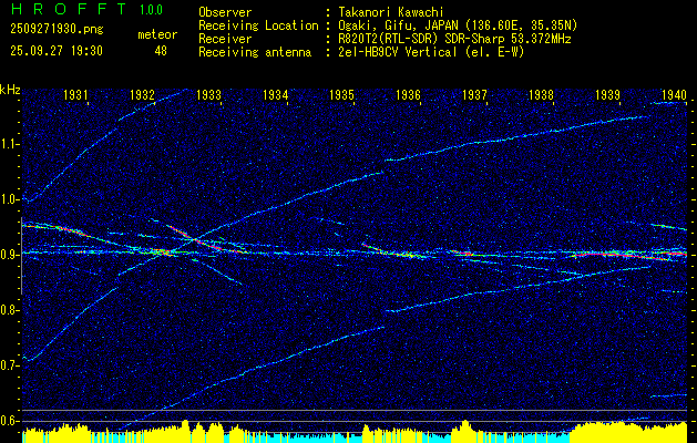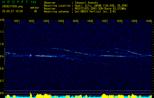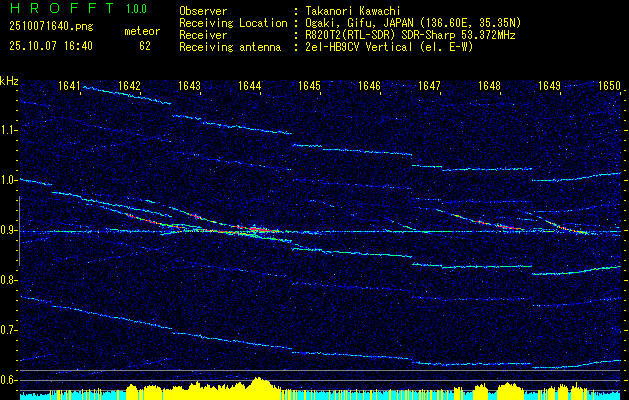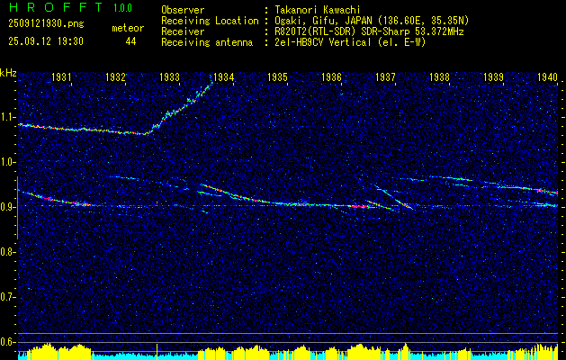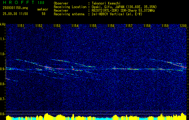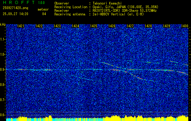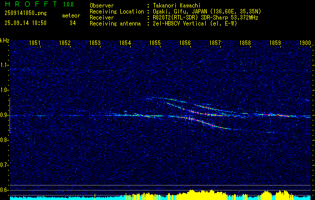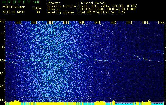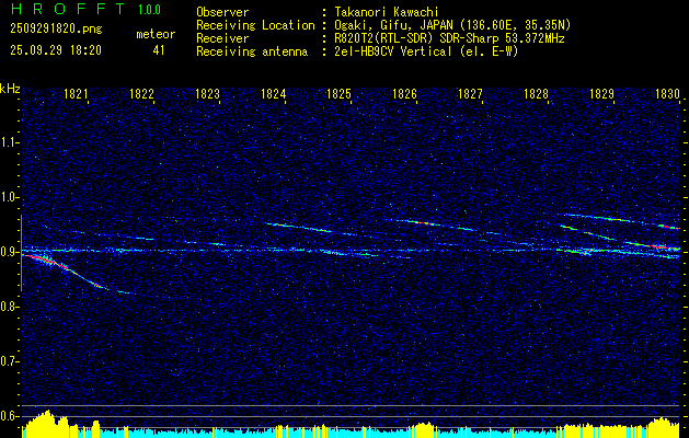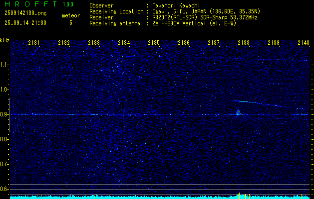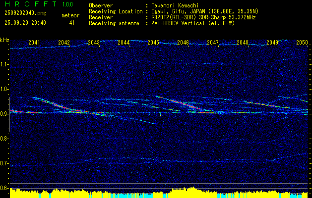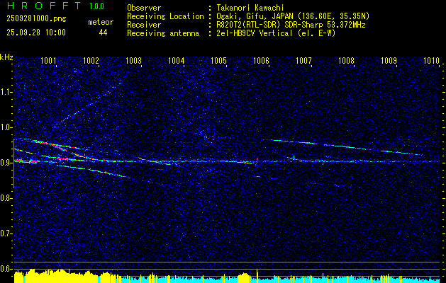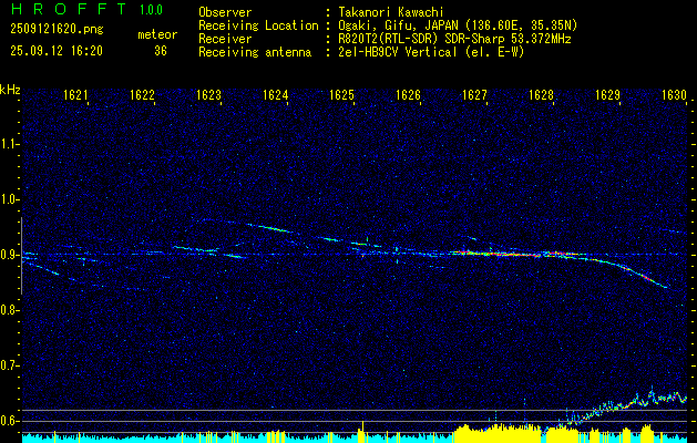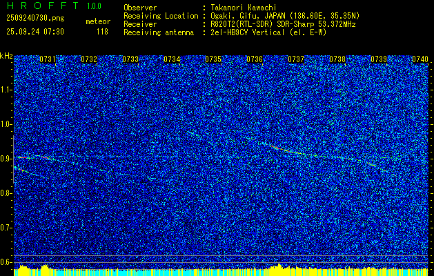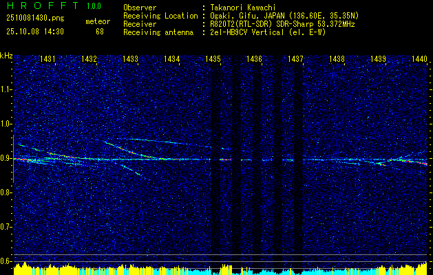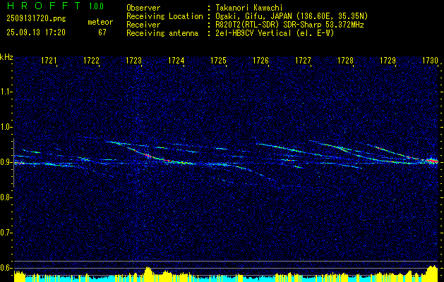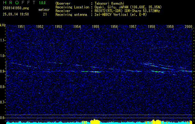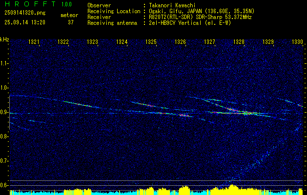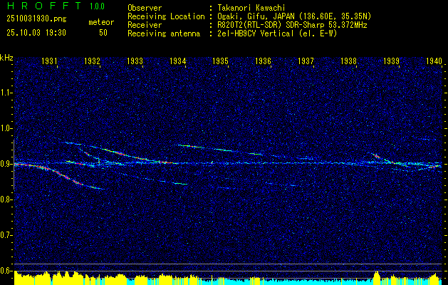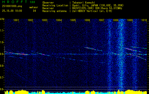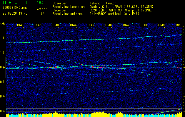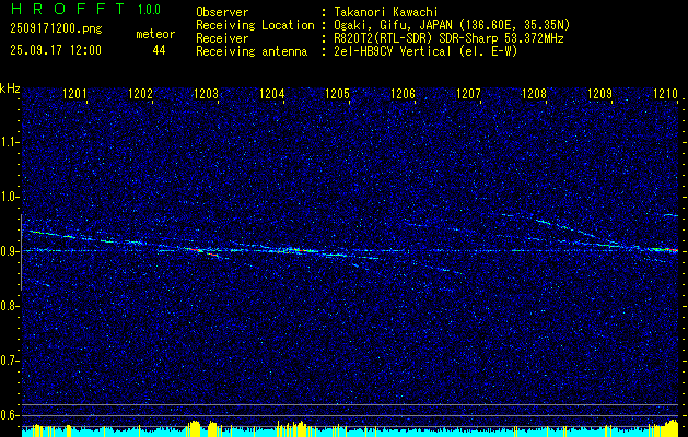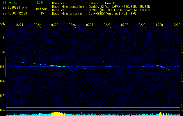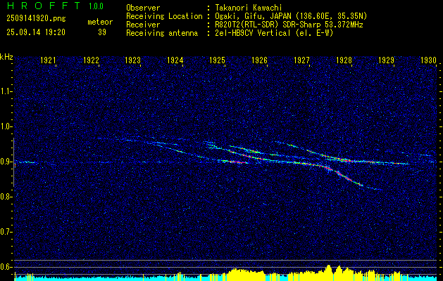 0.9kHz附近に発生している『点』または『塊』が流星によるエコーです.