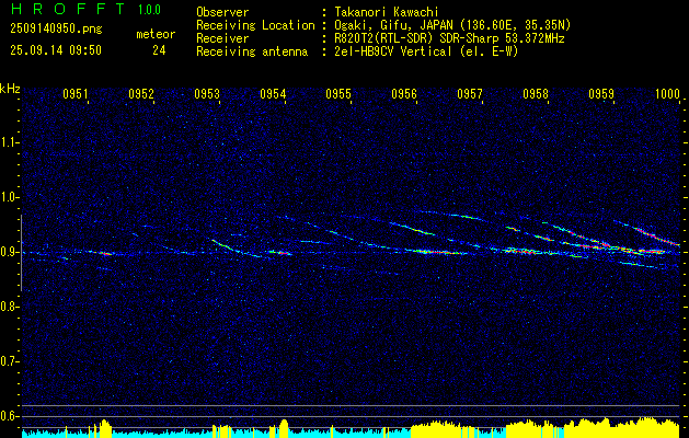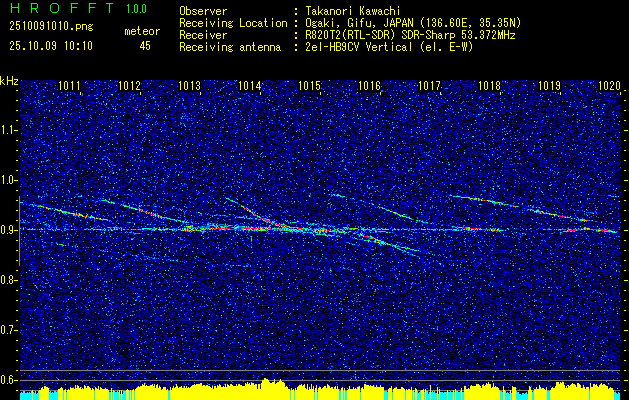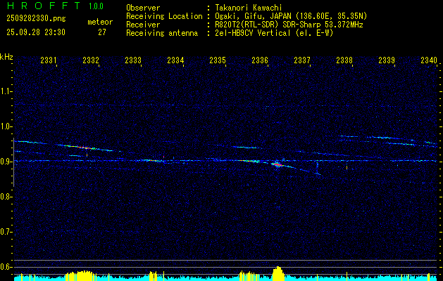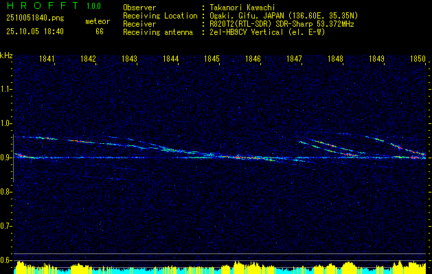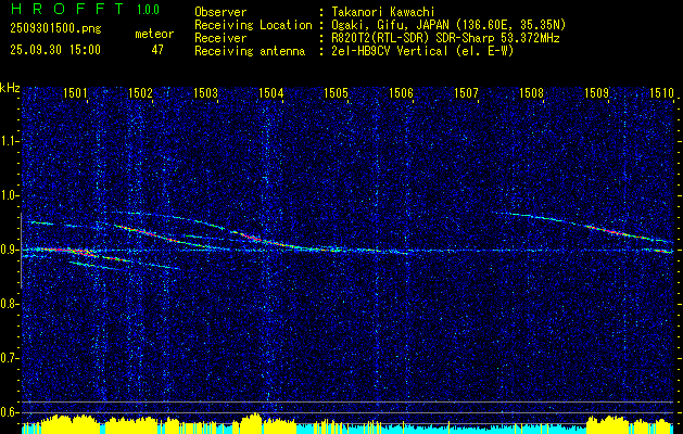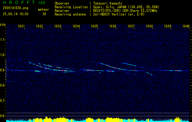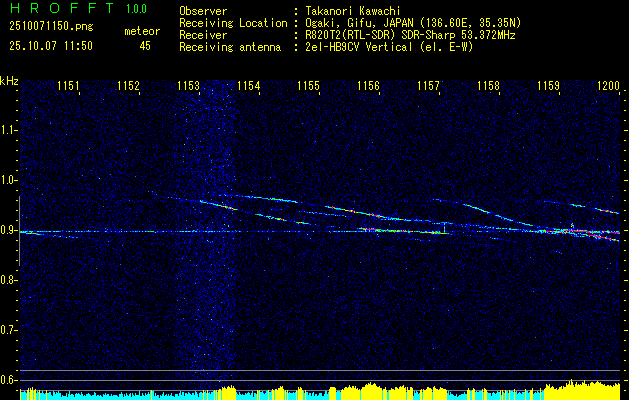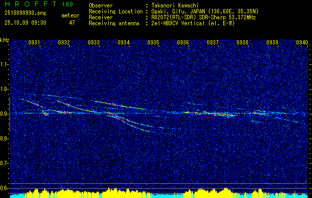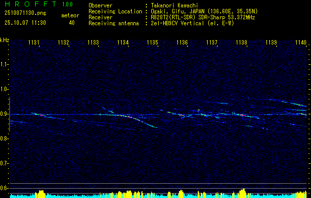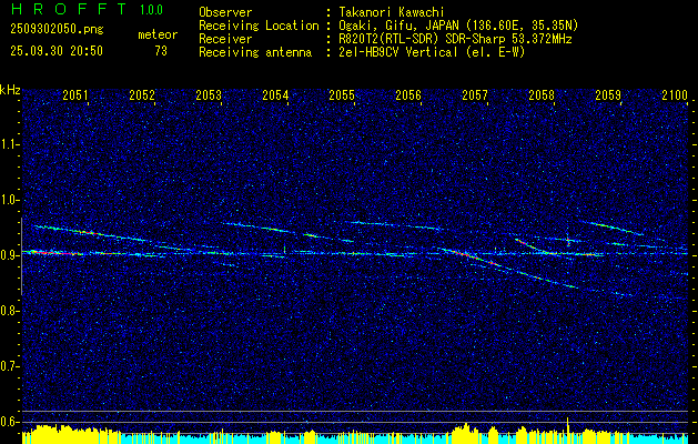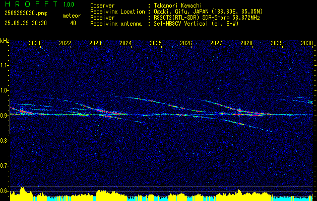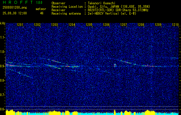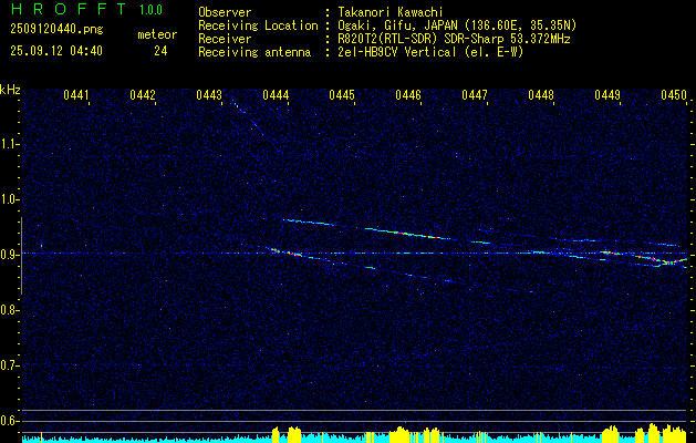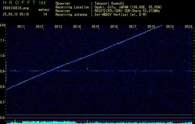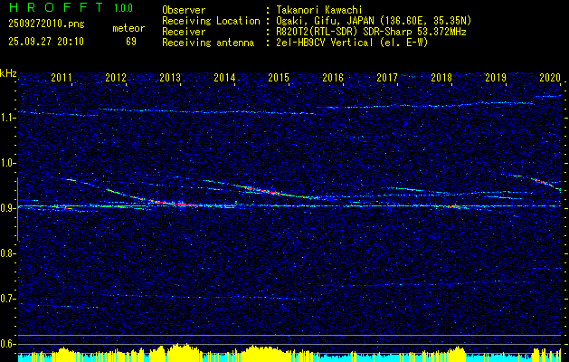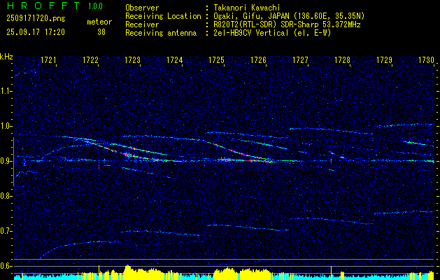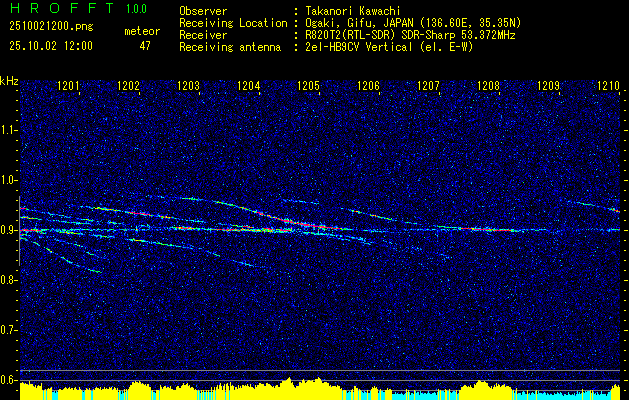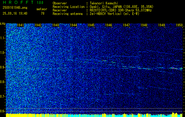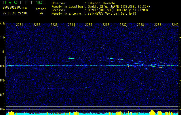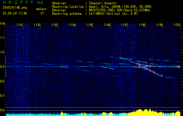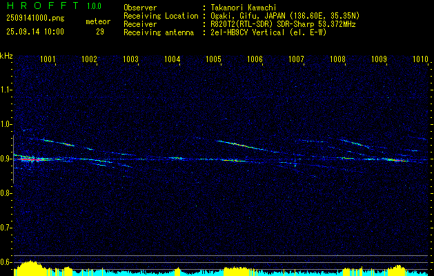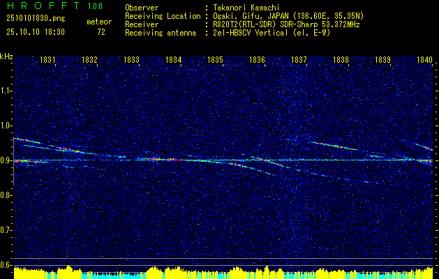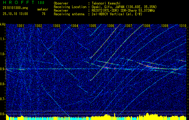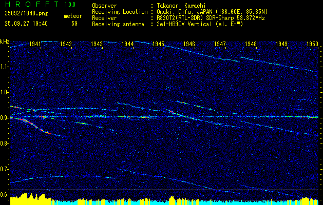 0.9kHz附近に発生している『点』または『塊』が流星によるエコーです.