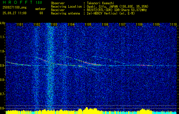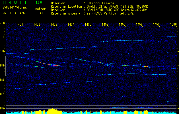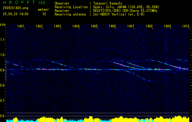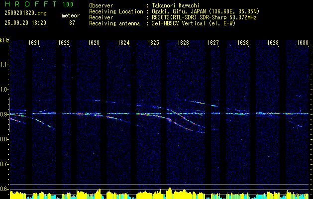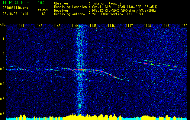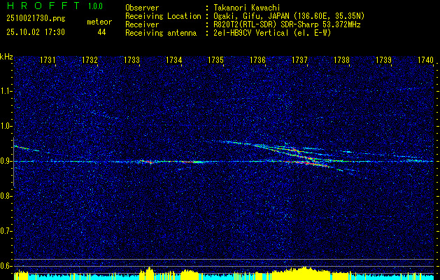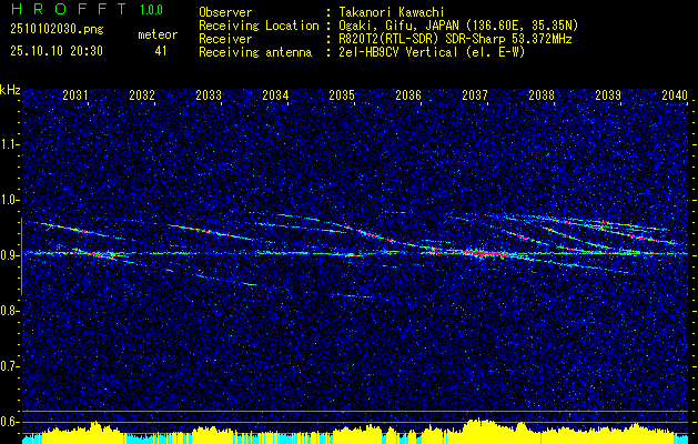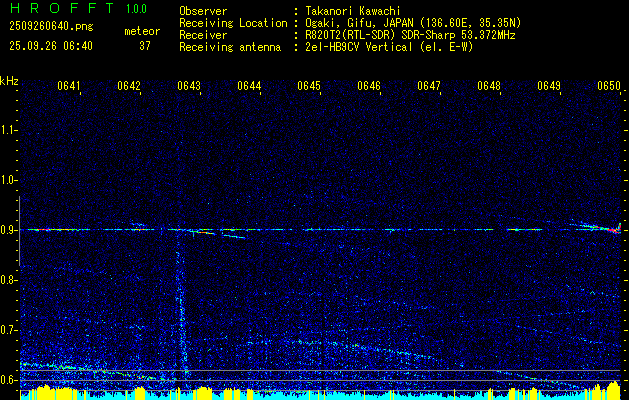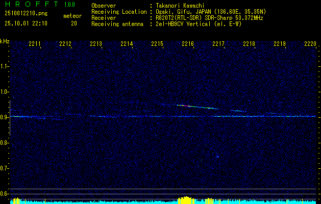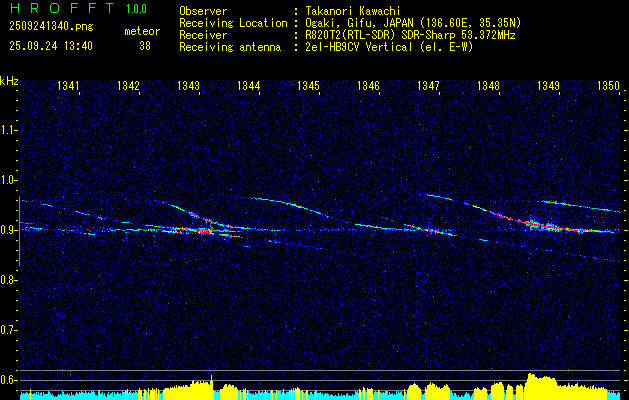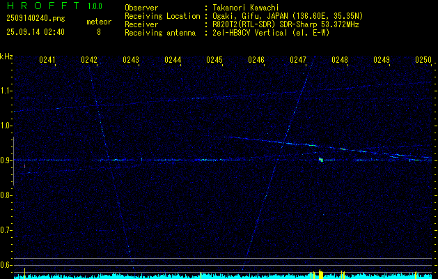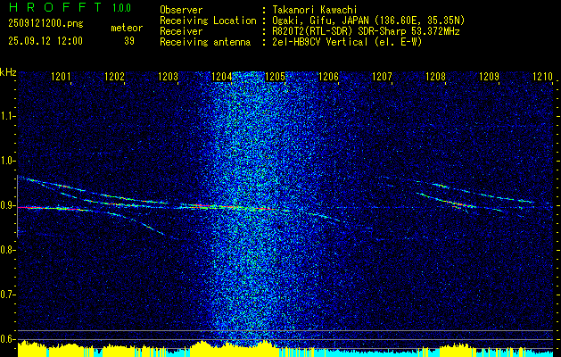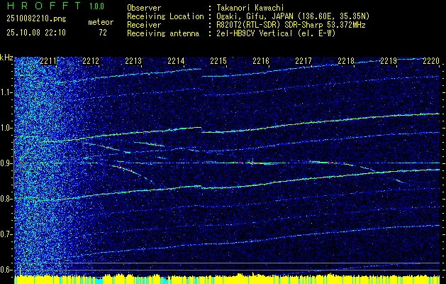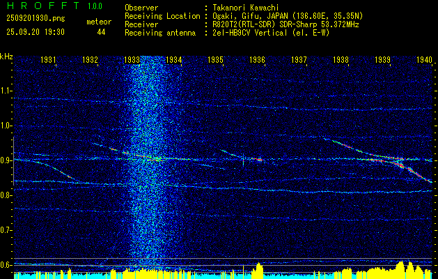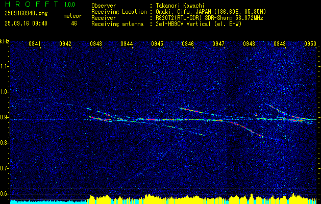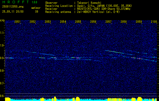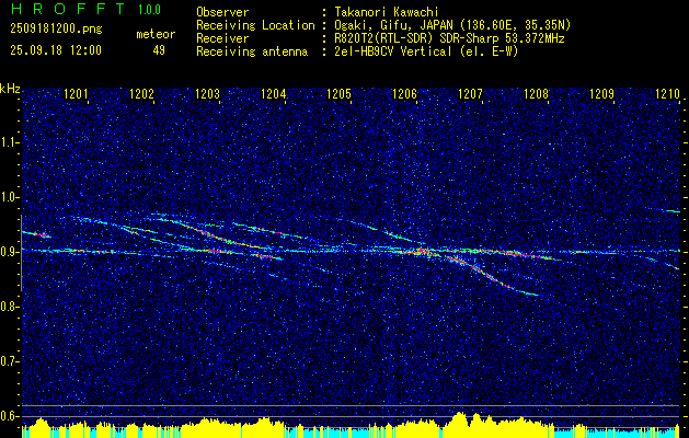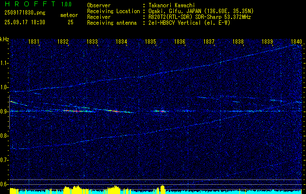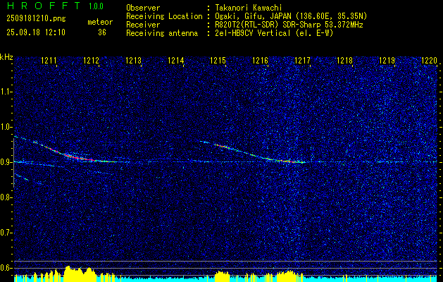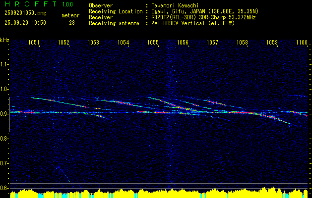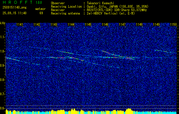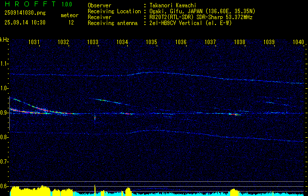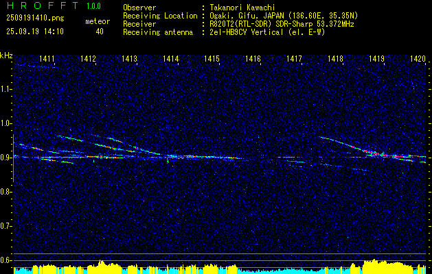 0.9kHz附近に発生している『点』または『塊』が流星によるエコーです.