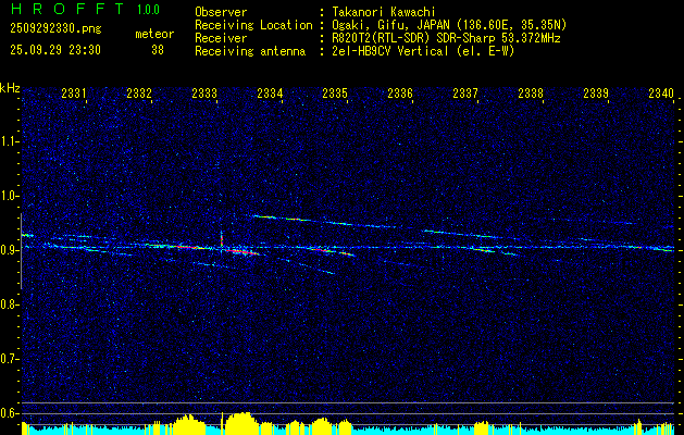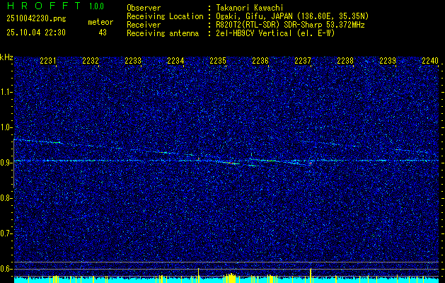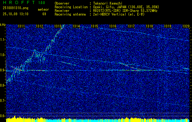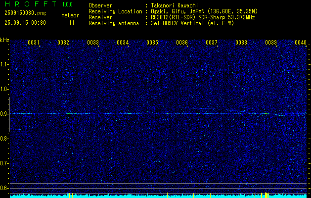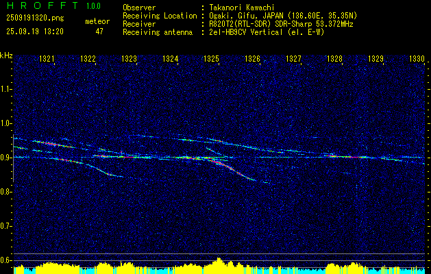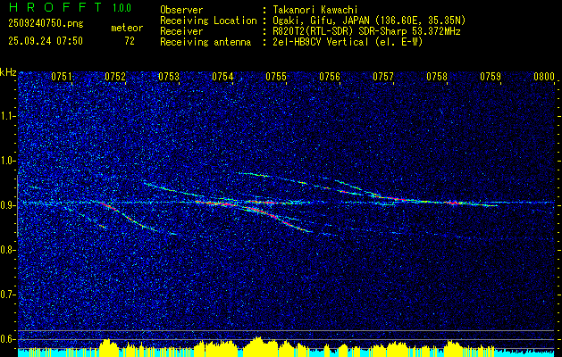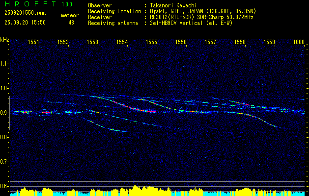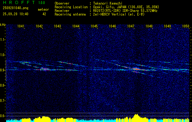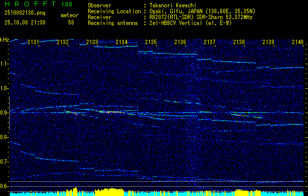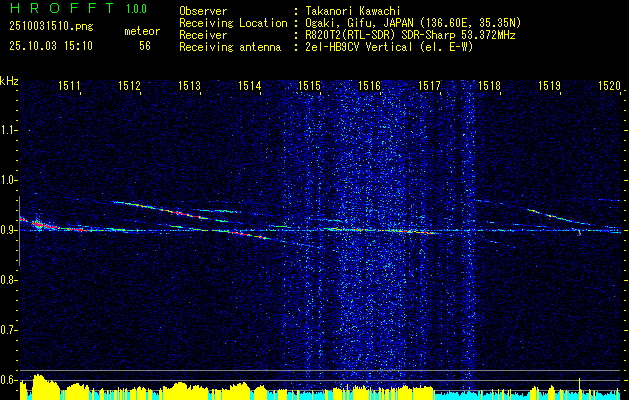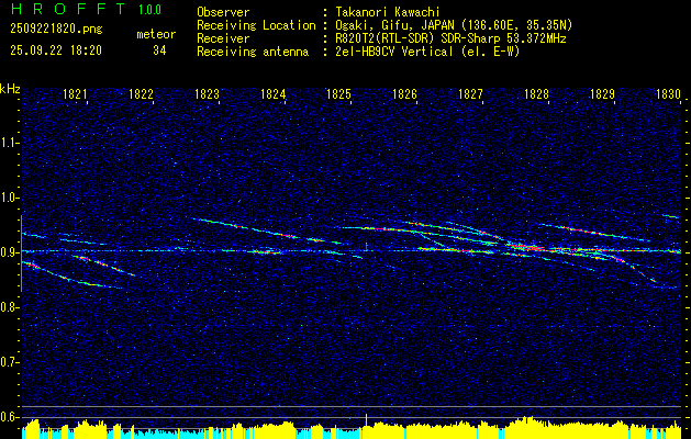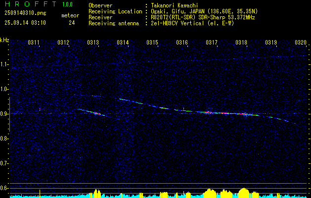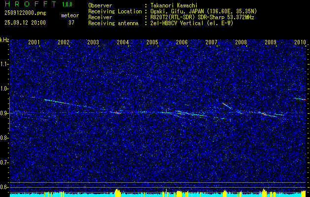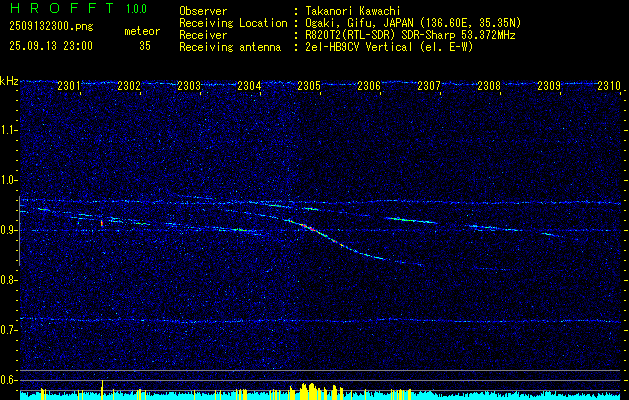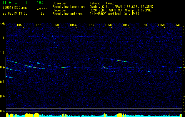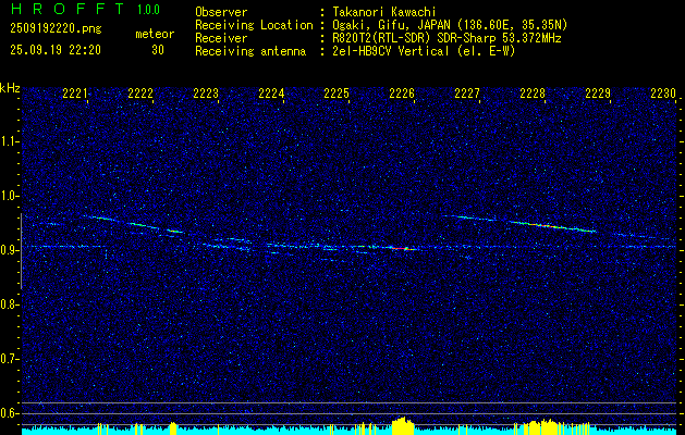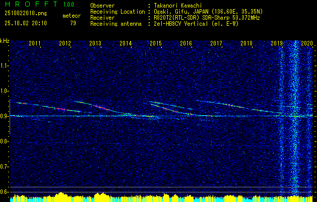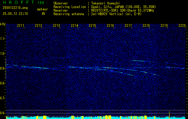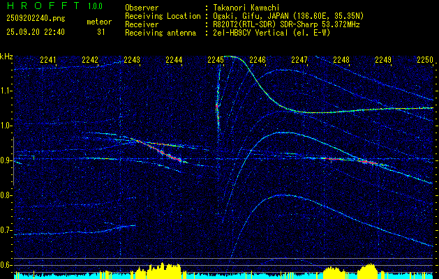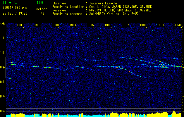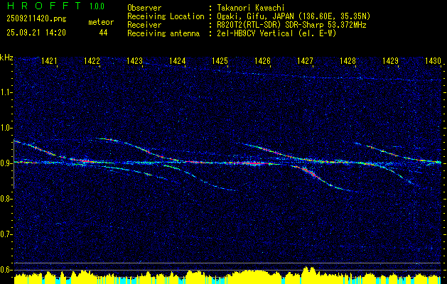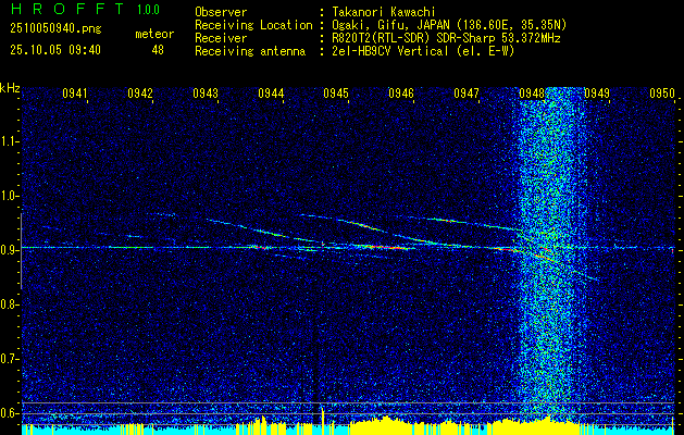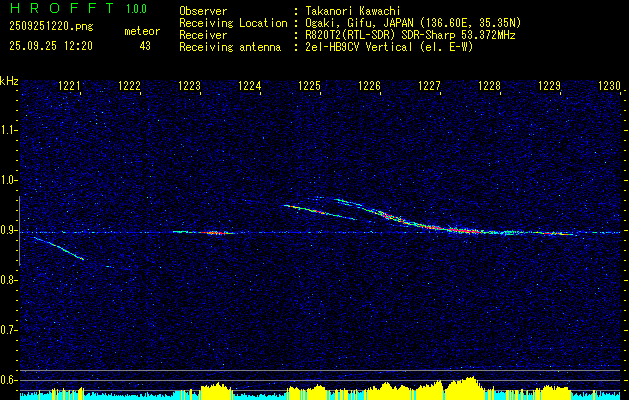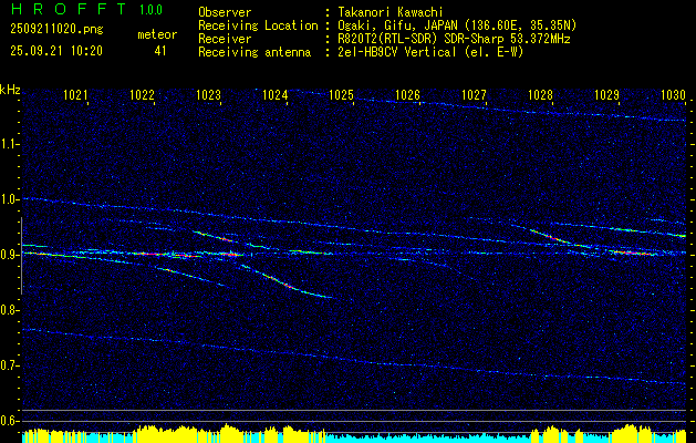 0.9kHz附近に発生している『点』または『塊』が流星によるエコーです.