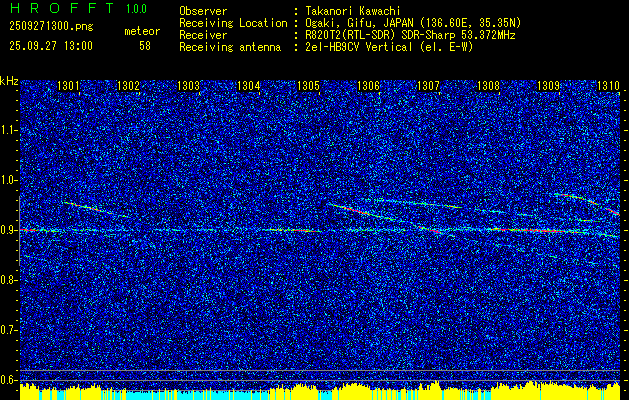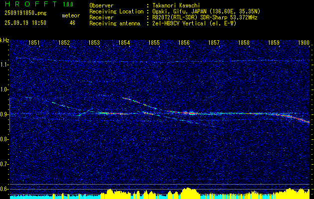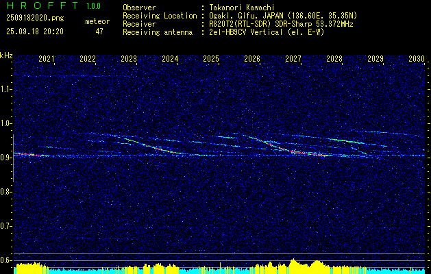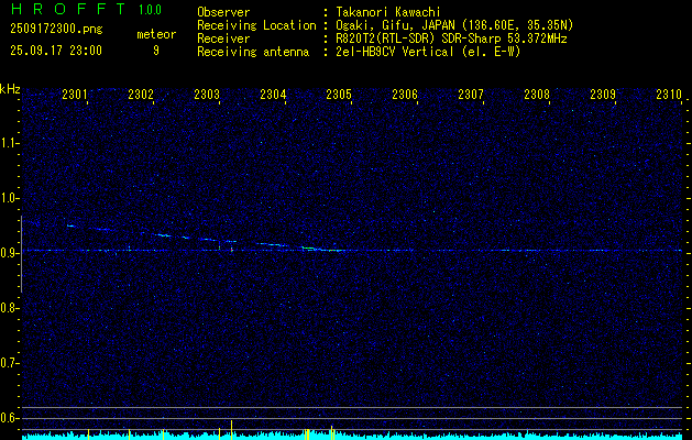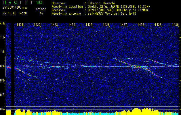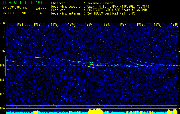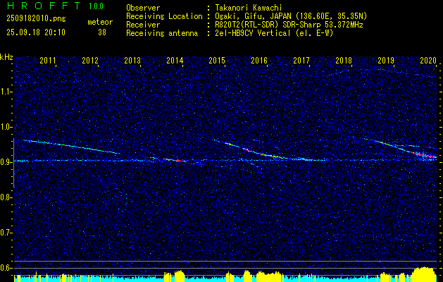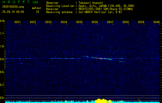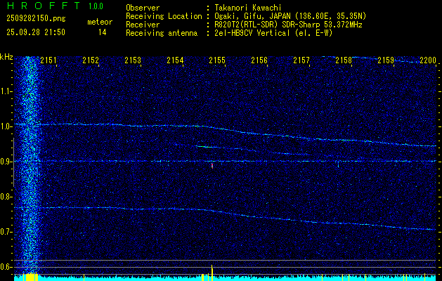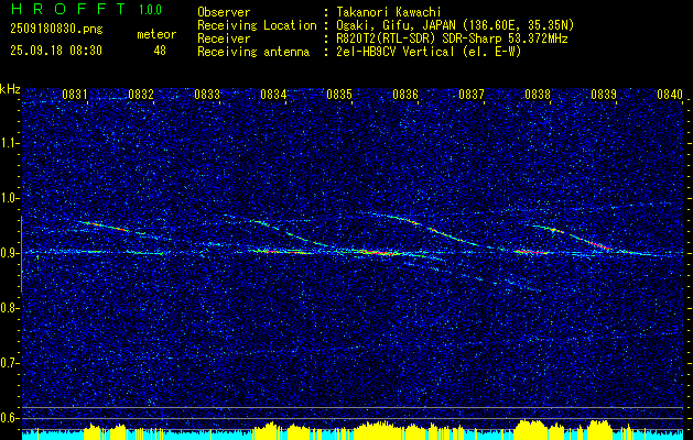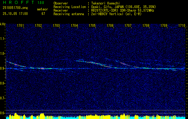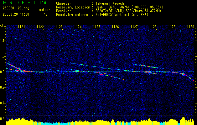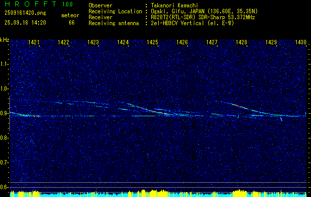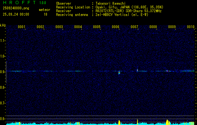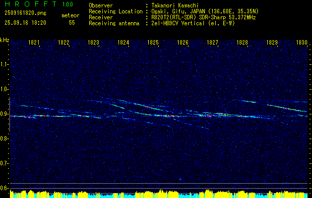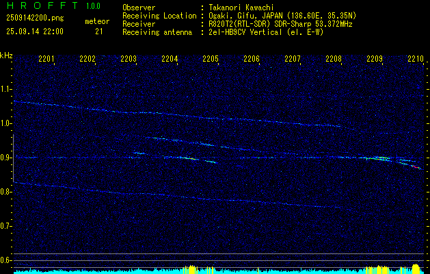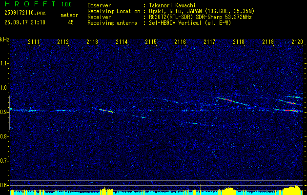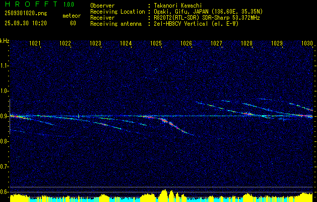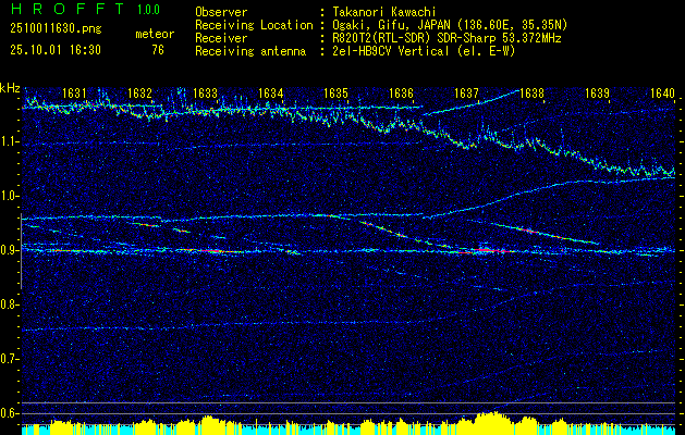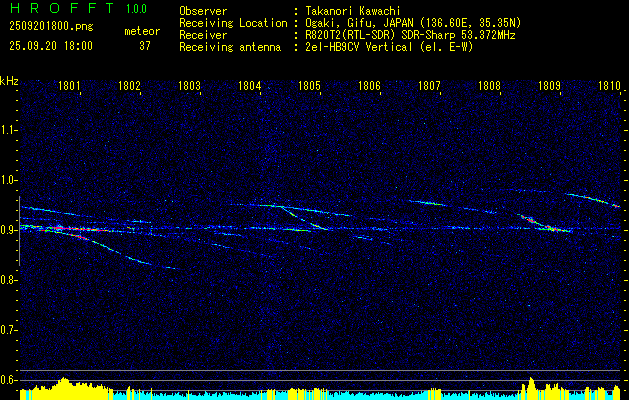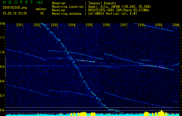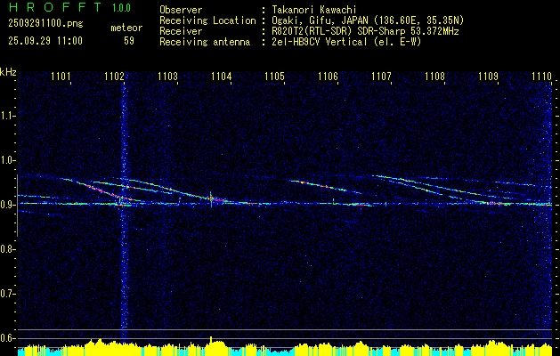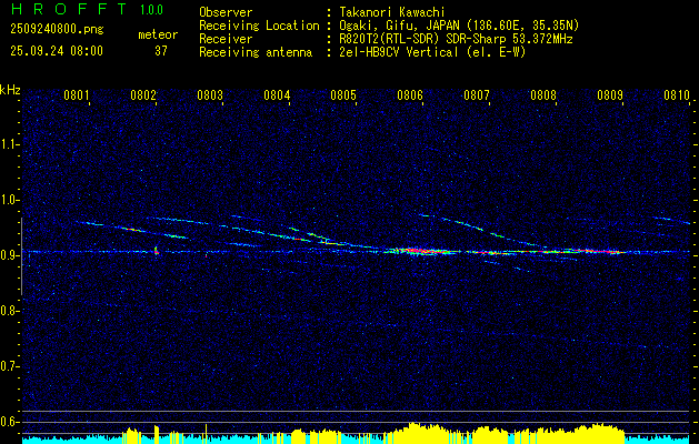 0.9kHz附近に発生している『点』または『塊』が流星によるエコーです.
