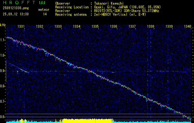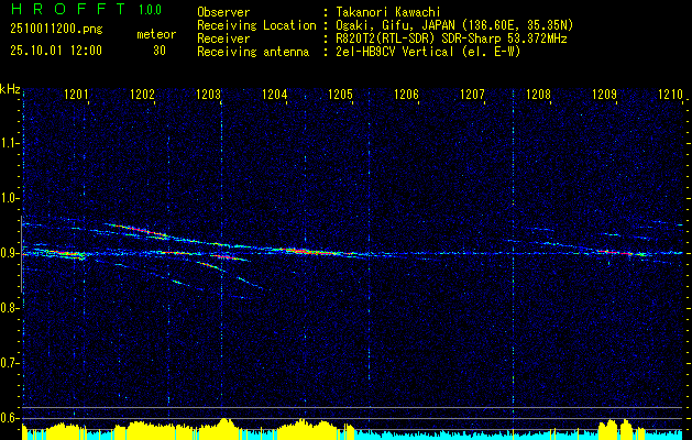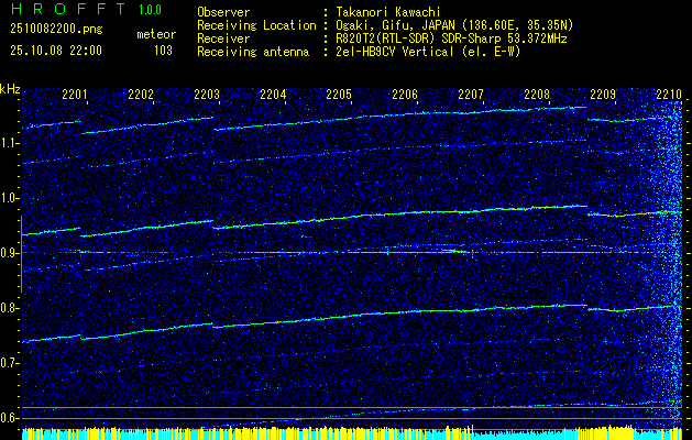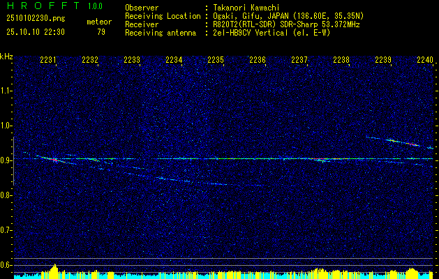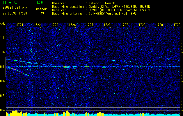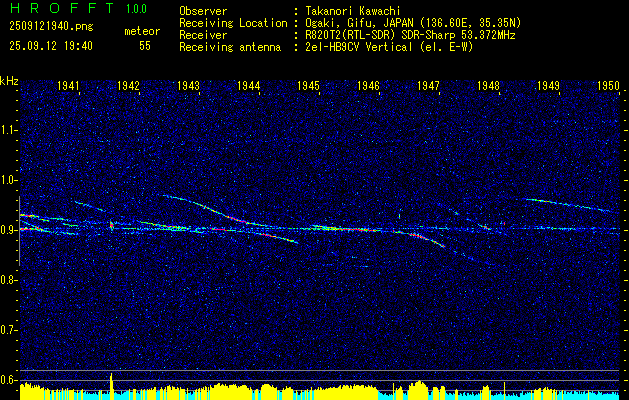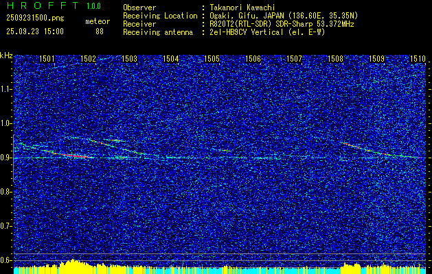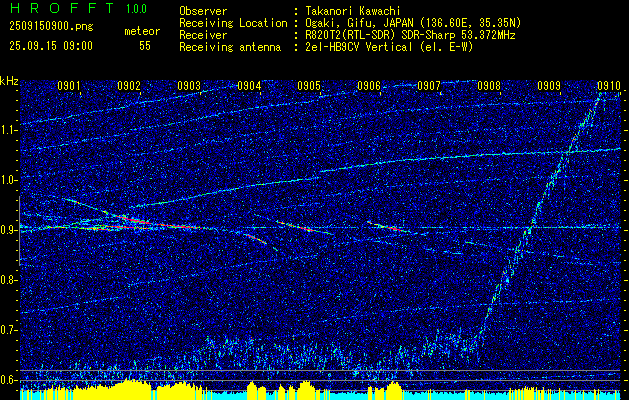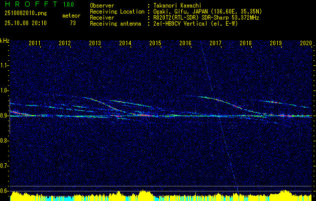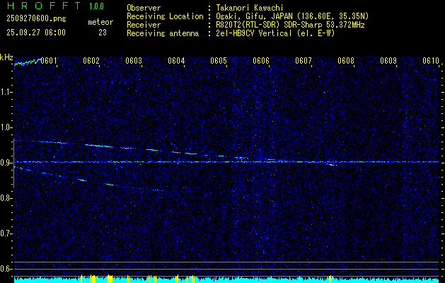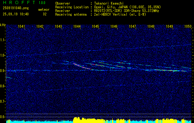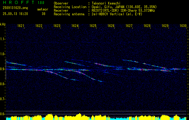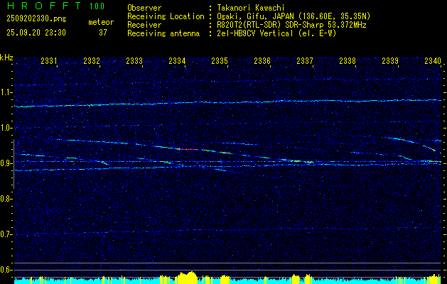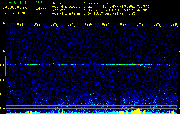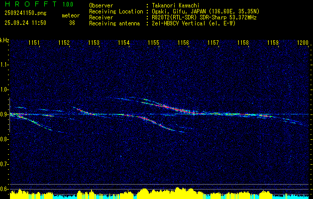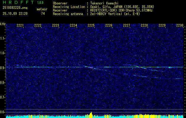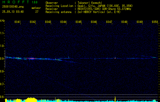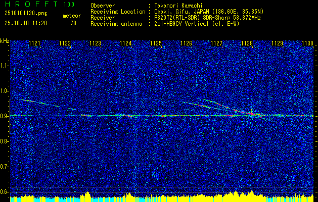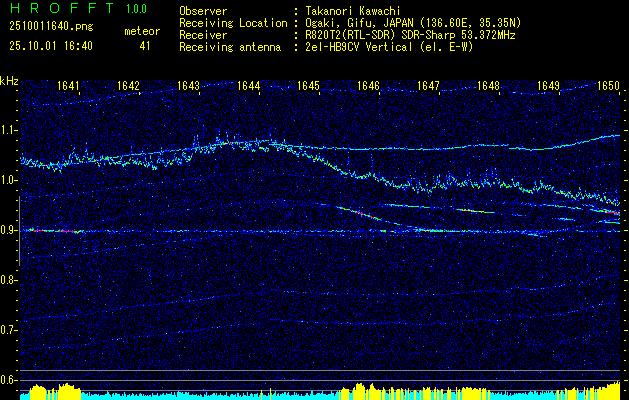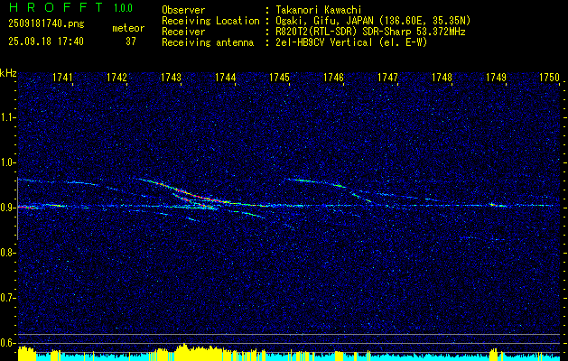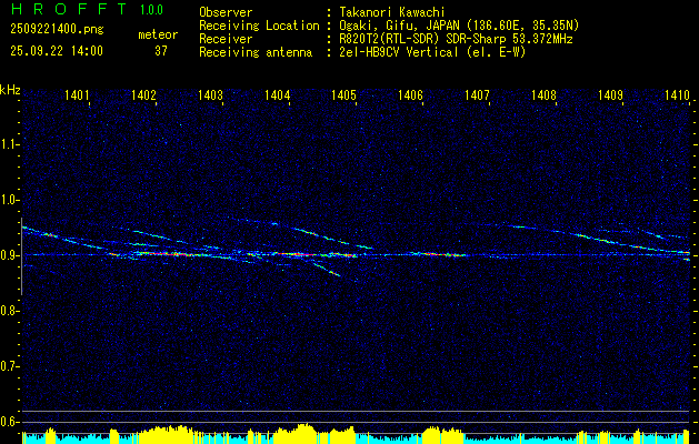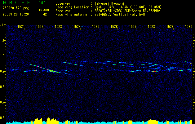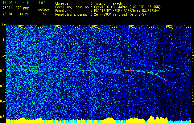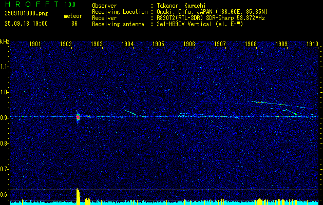 0.9kHz附近に発生している『点』または『塊』が流星によるエコーです.