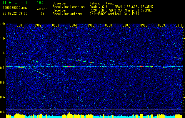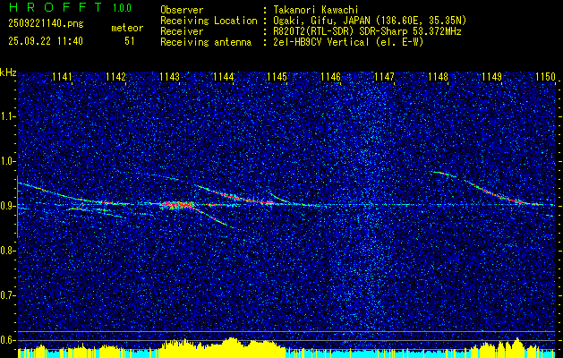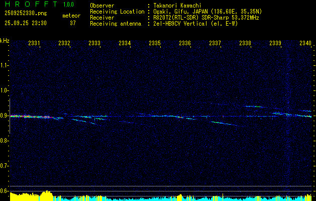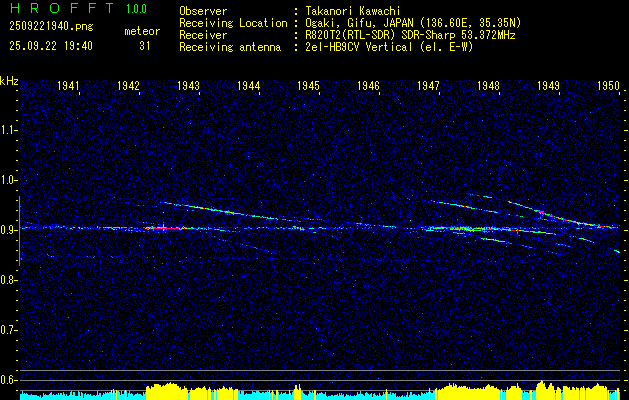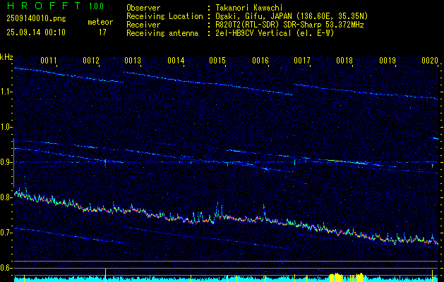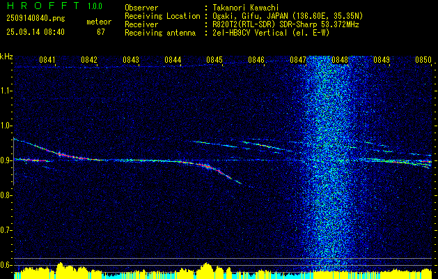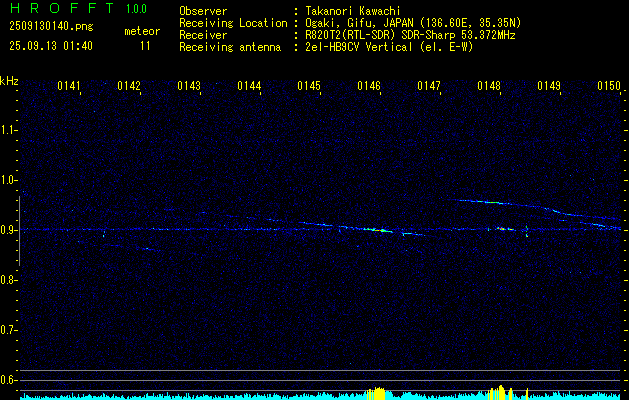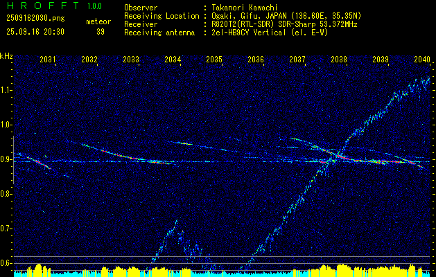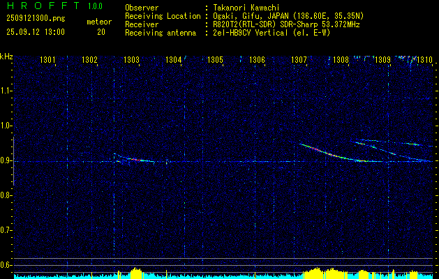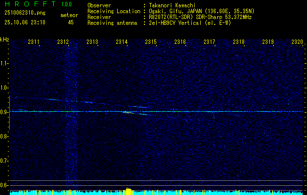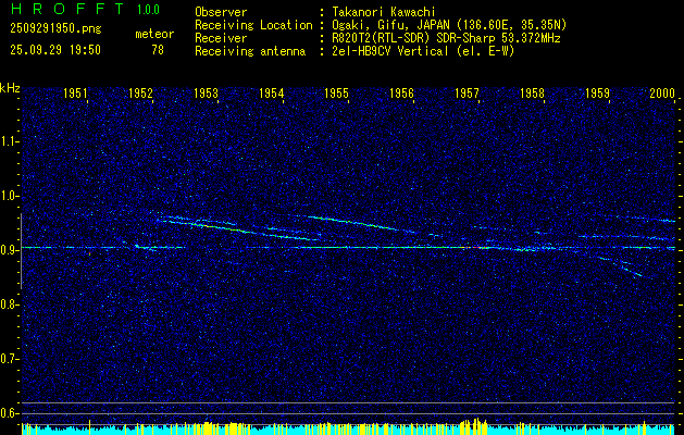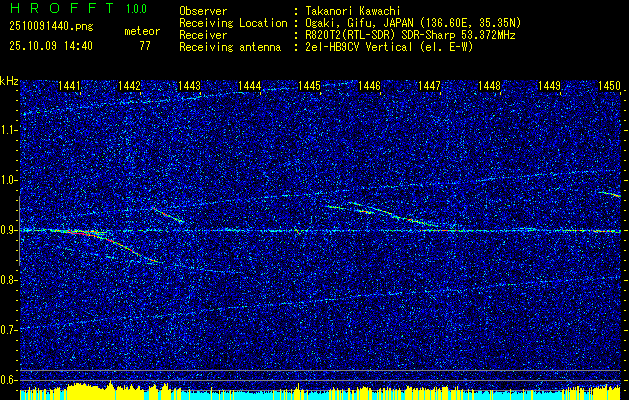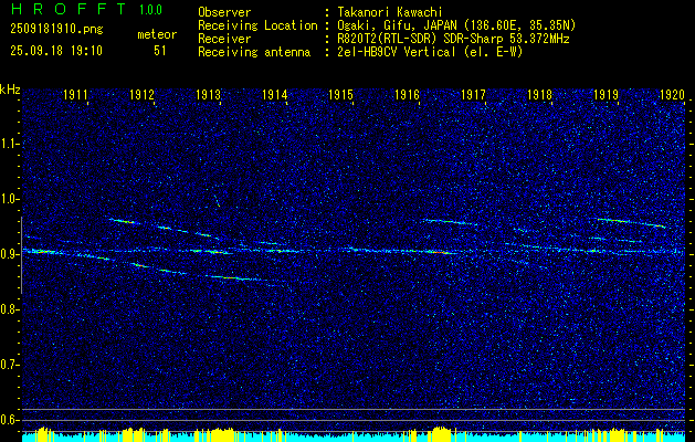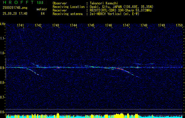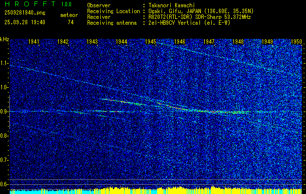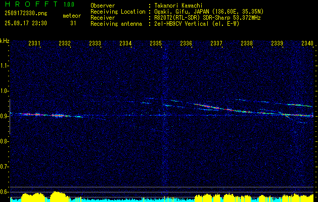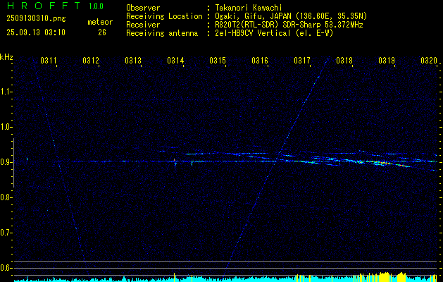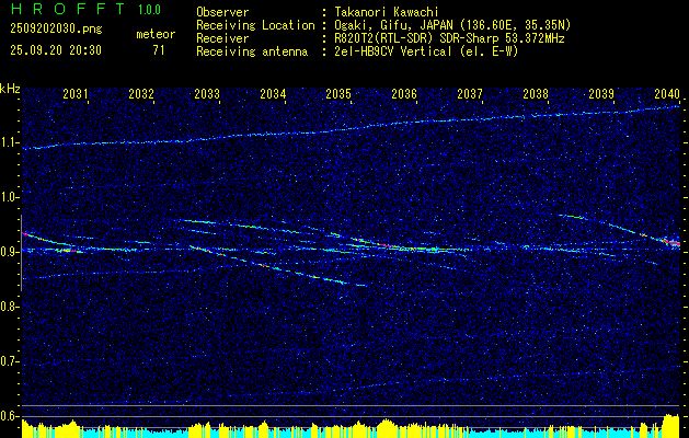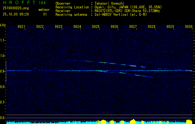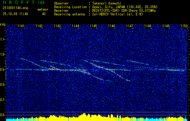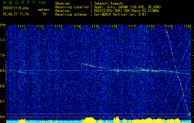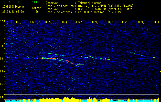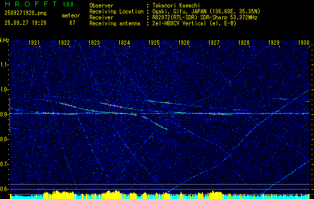 0.9kHz附近に発生している『点』または『塊』が流星によるエコーです.