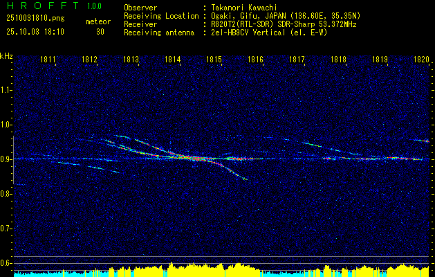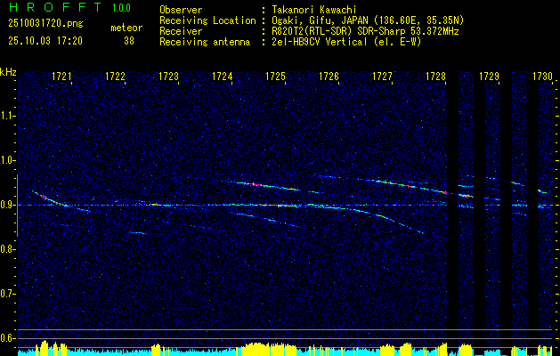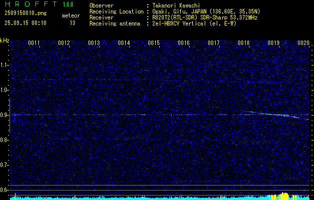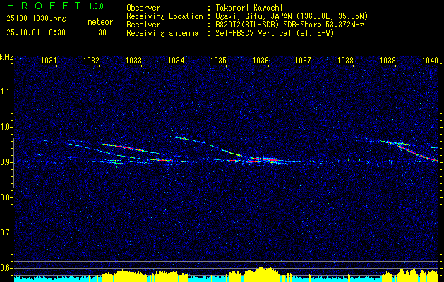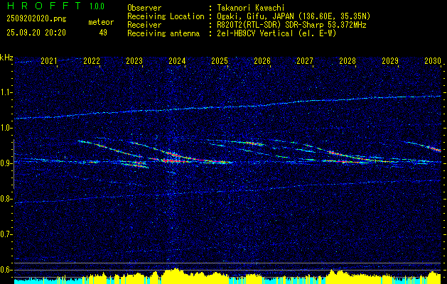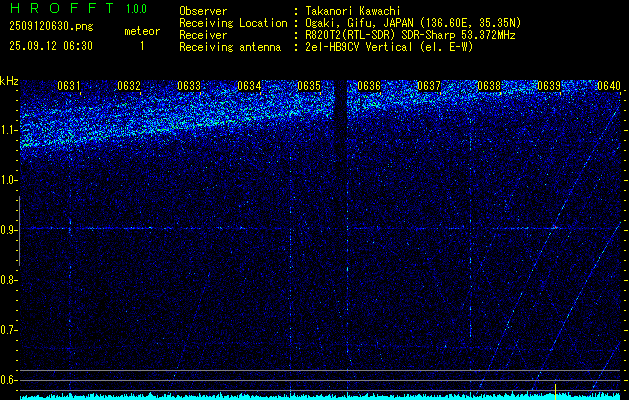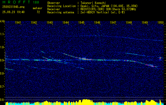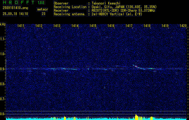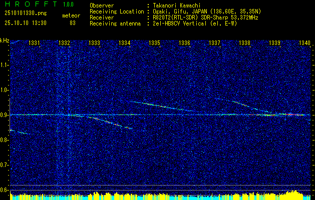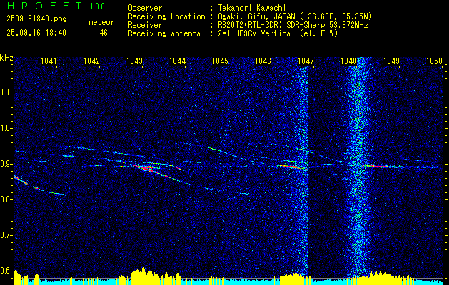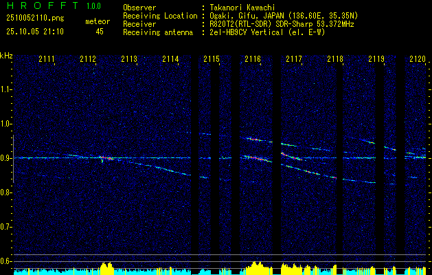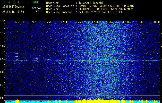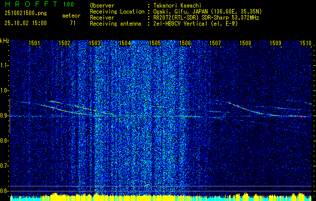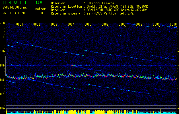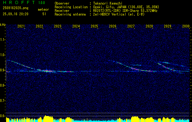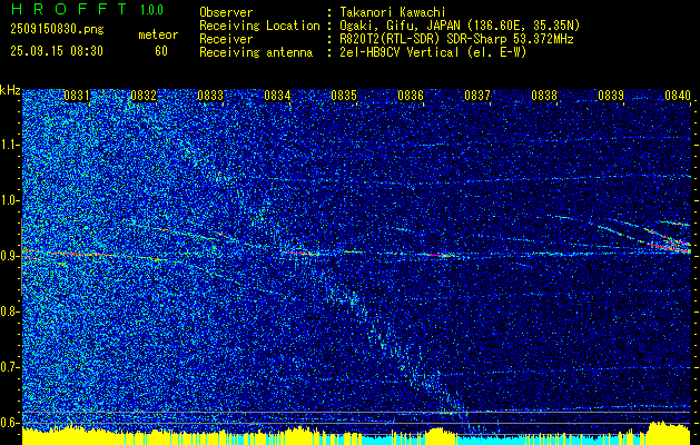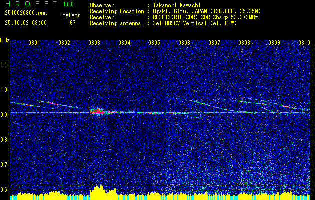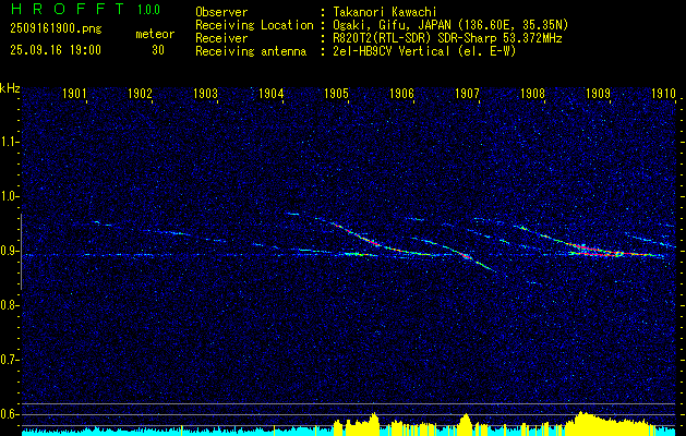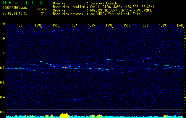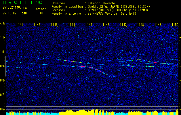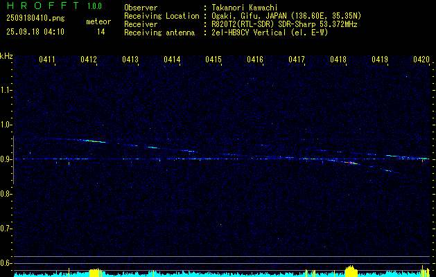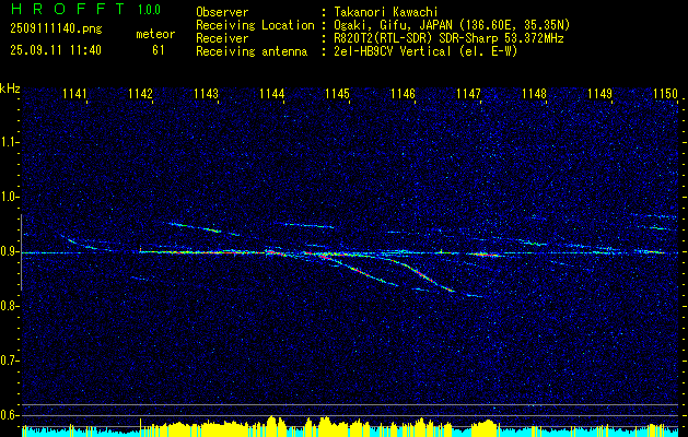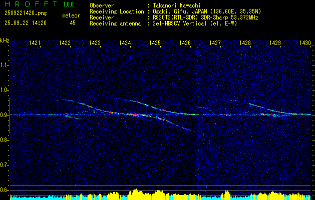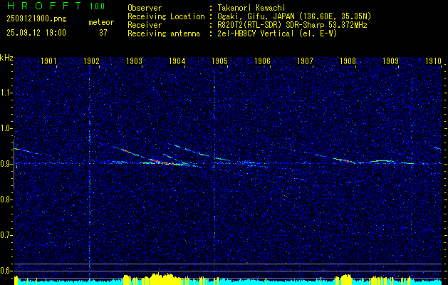 0.9kHz附近に発生している『点』または『塊』が流星によるエコーです.