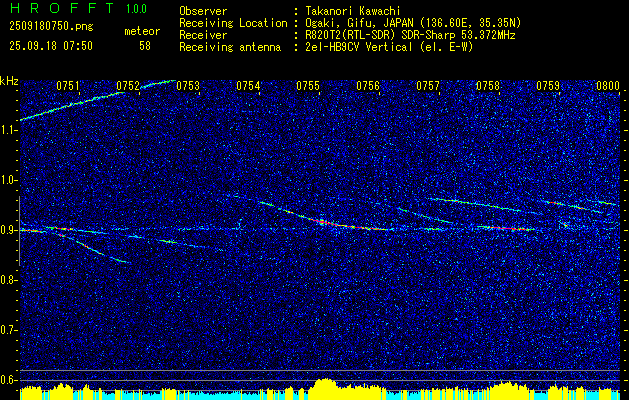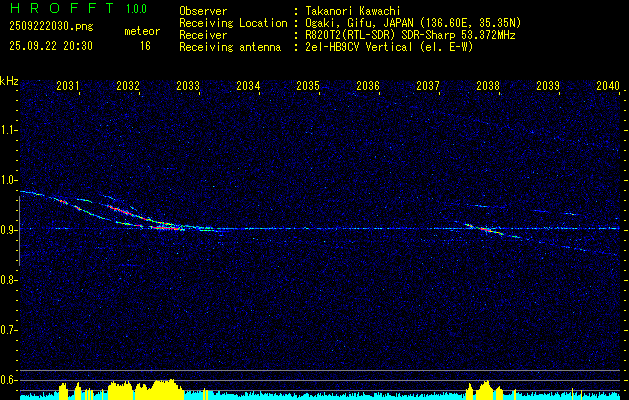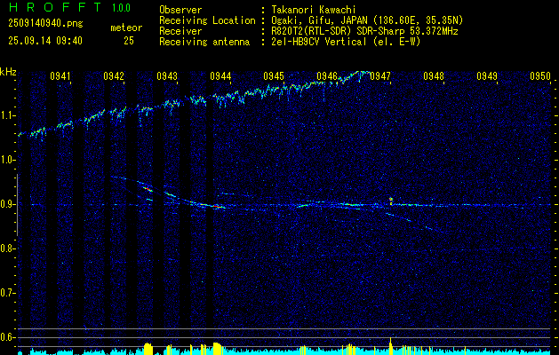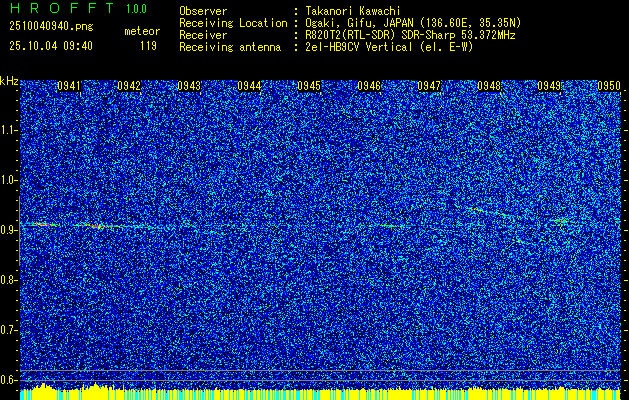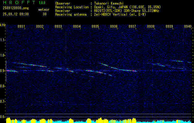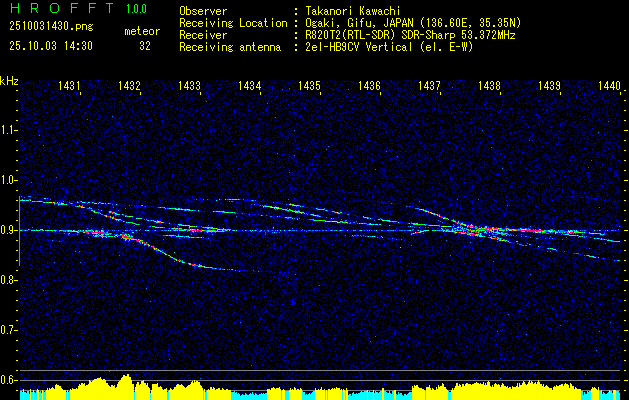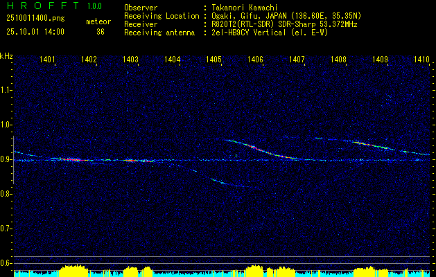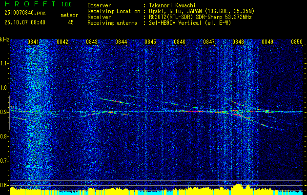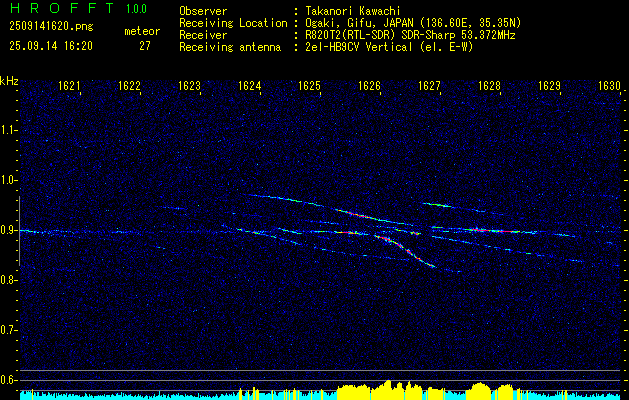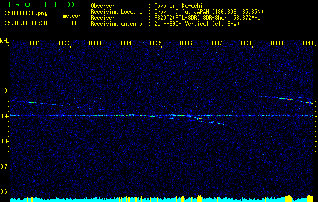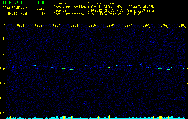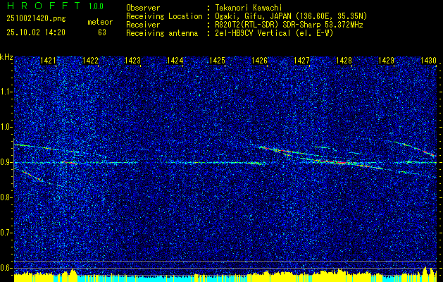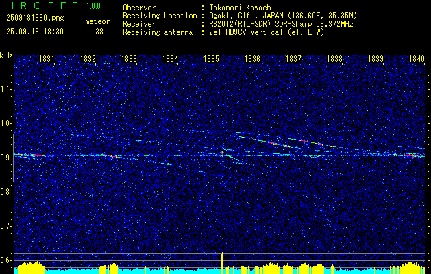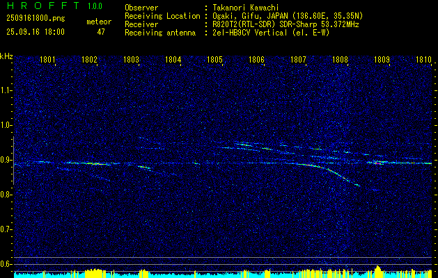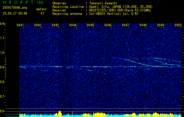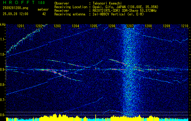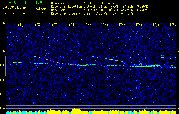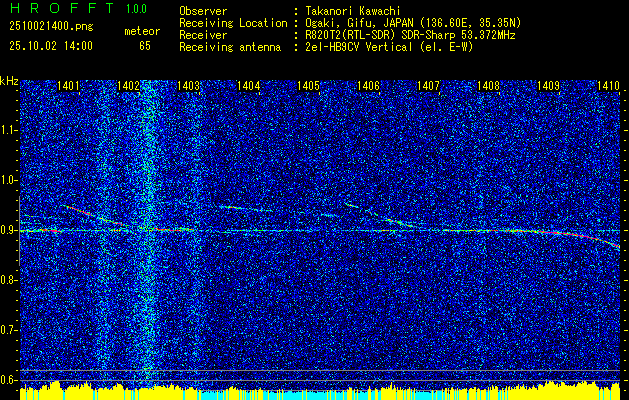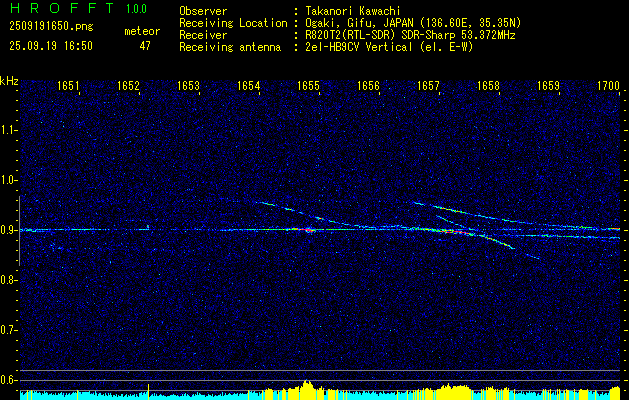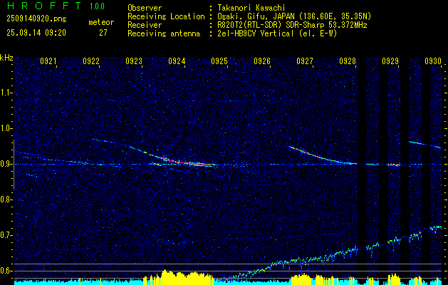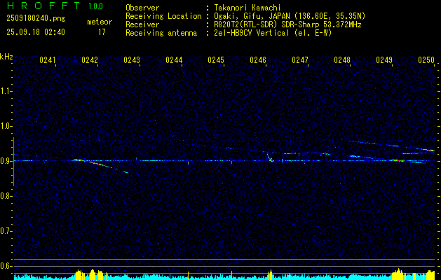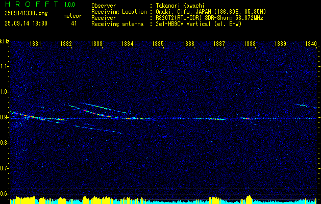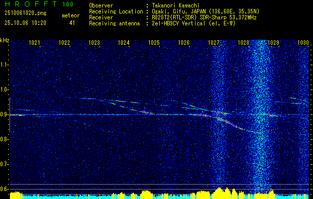 0.9kHz附近に発生している『点』または『塊』が流星によるエコーです.