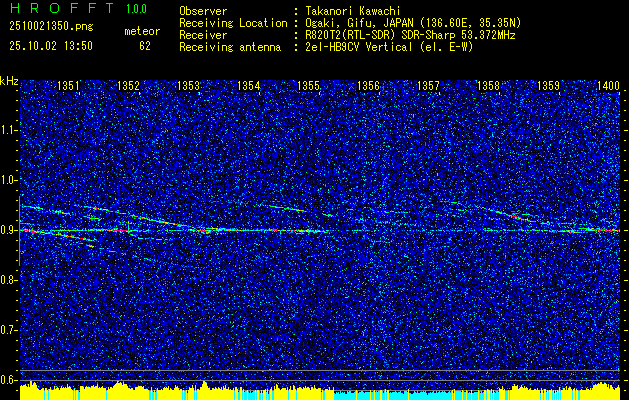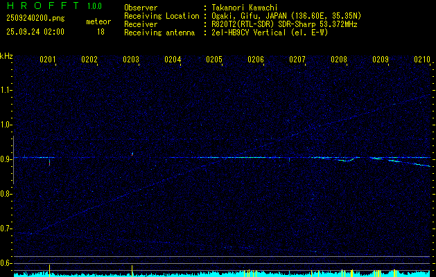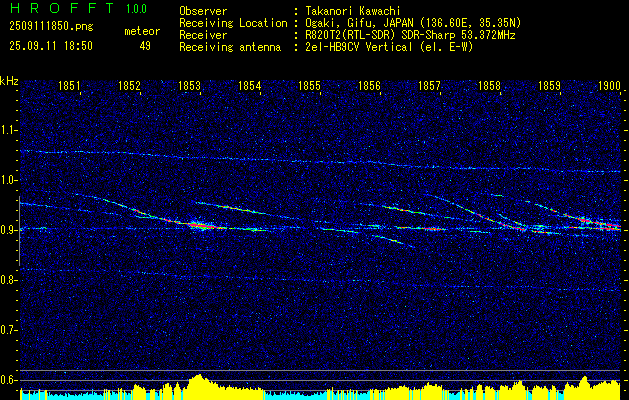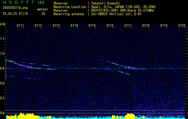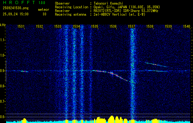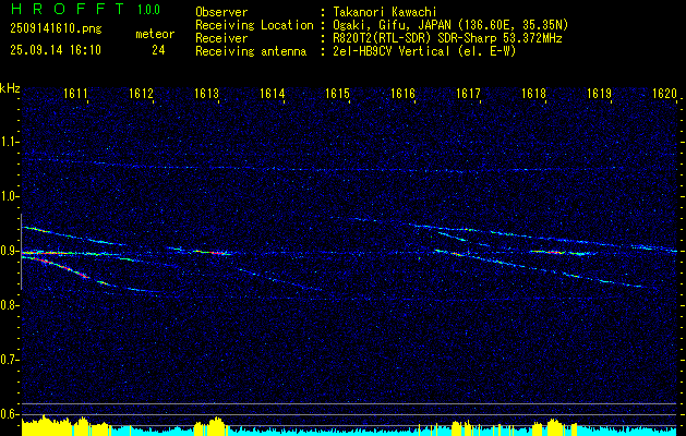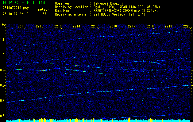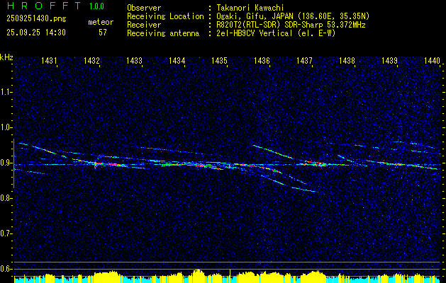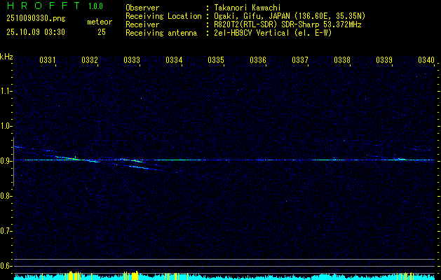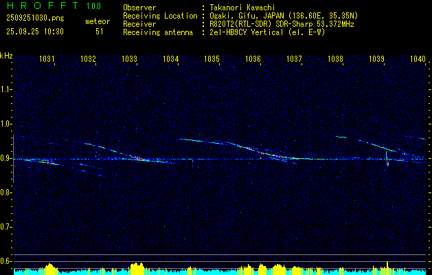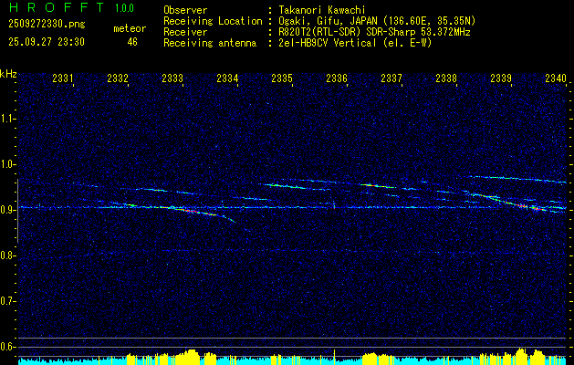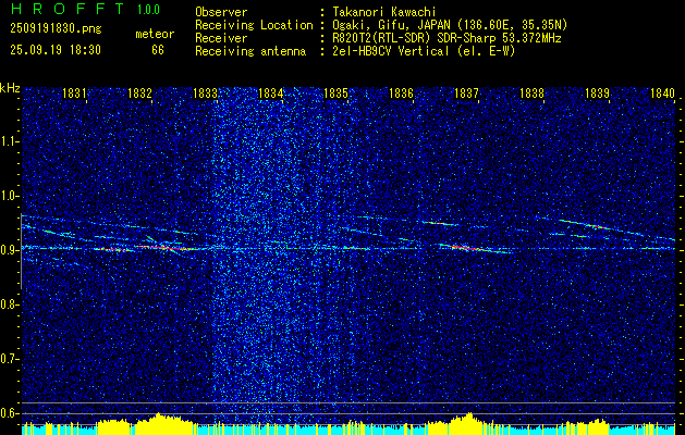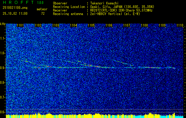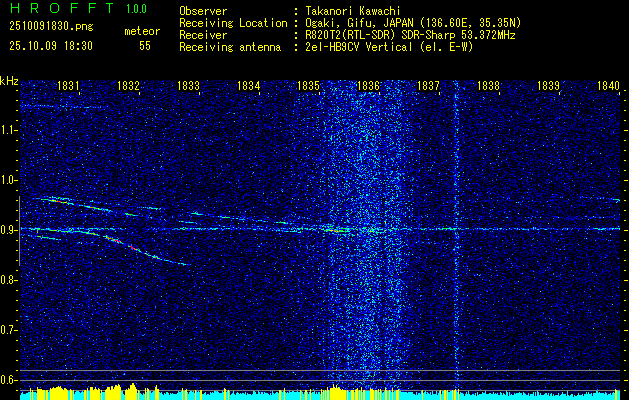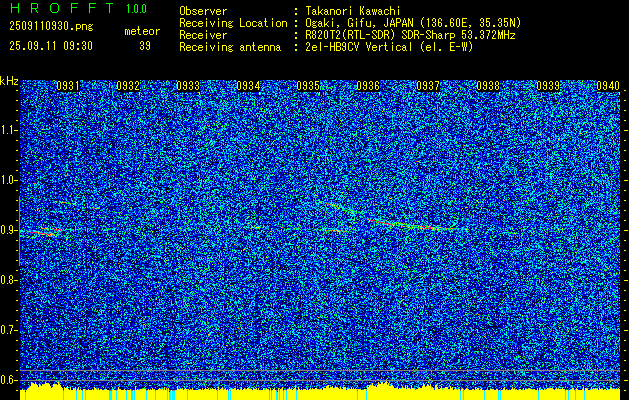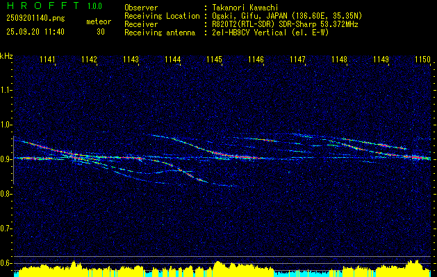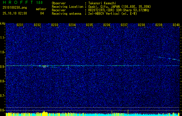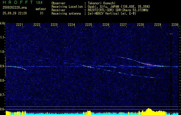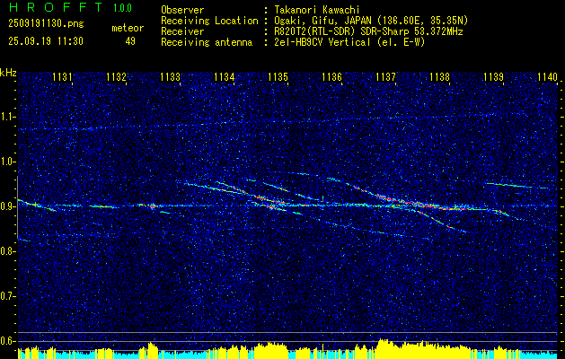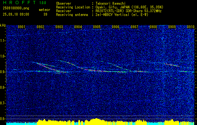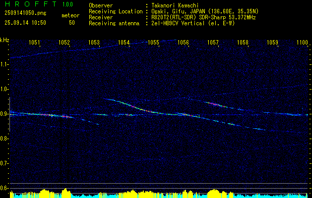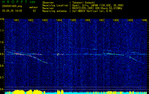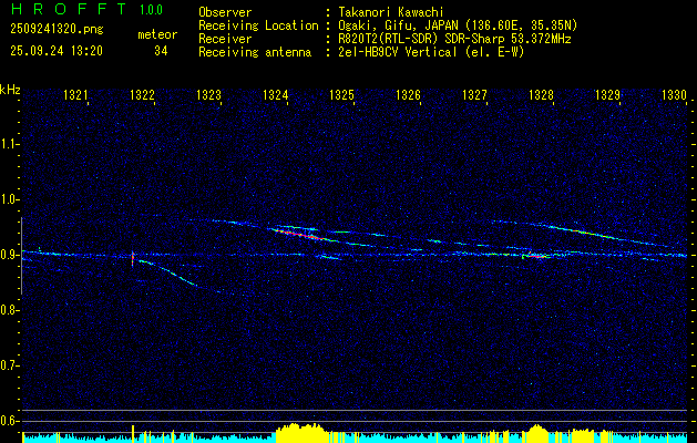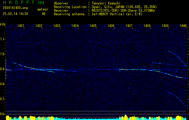 0.9kHz附近に発生している『点』または『塊』が流星によるエコーです.