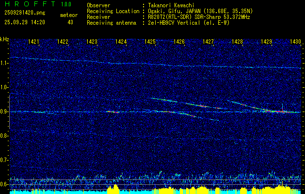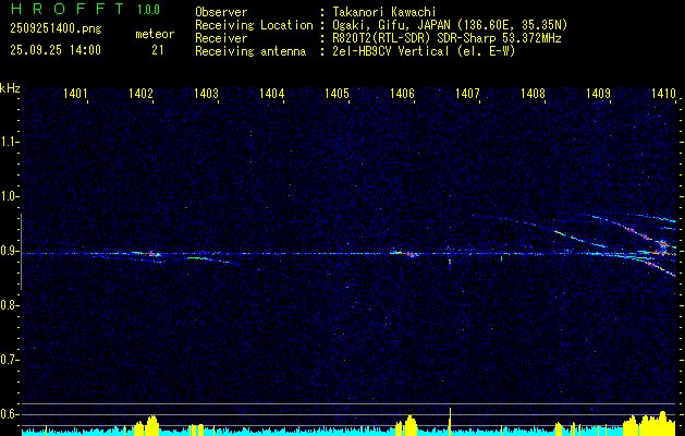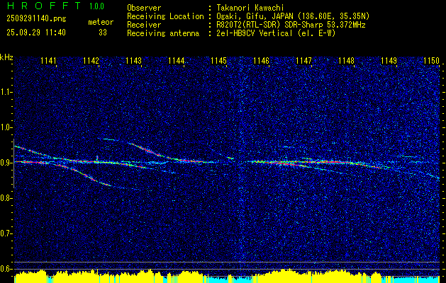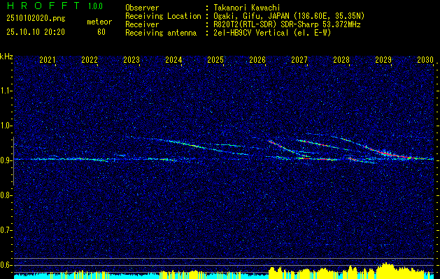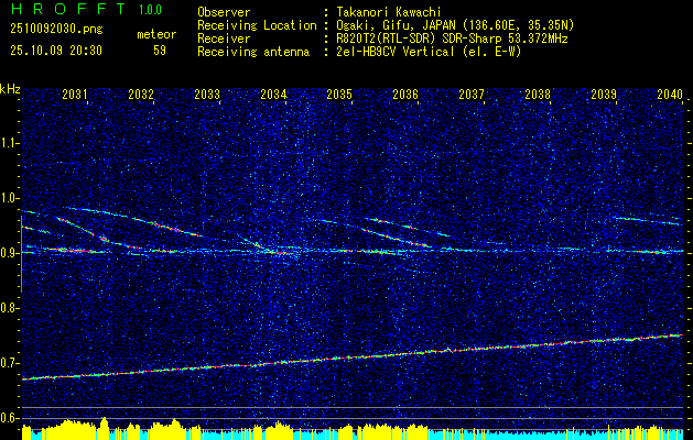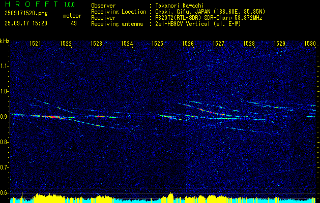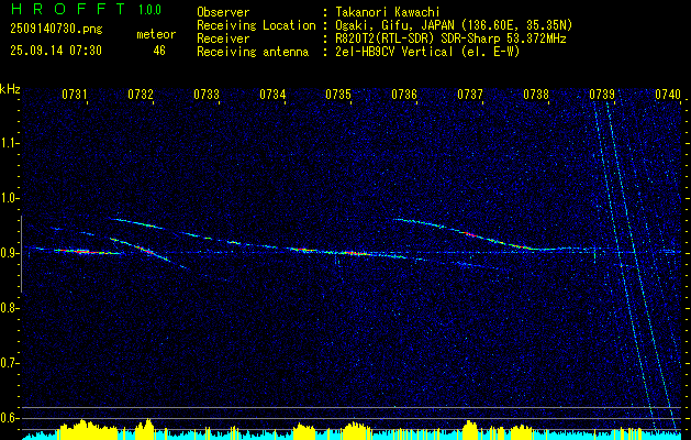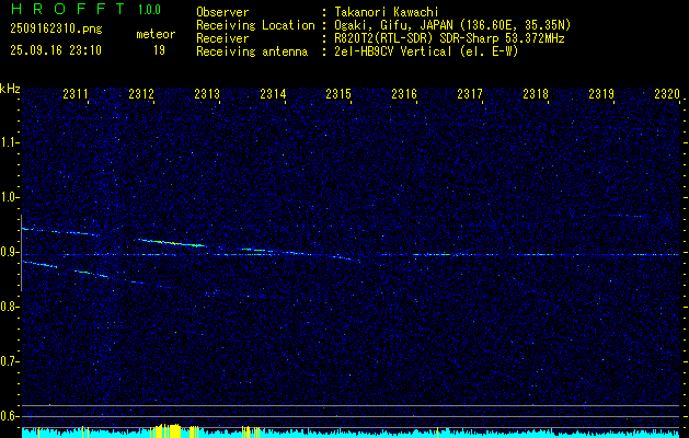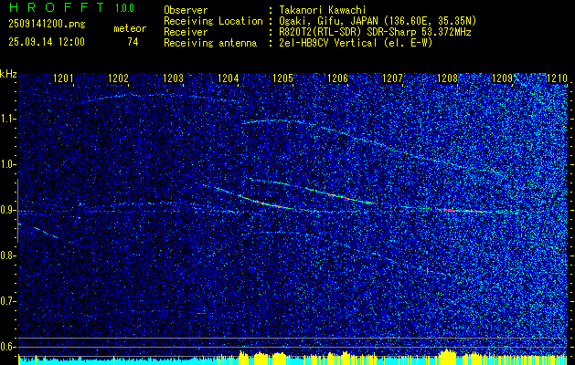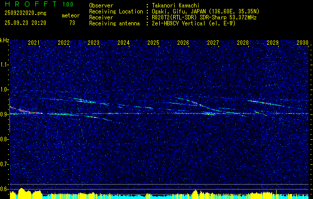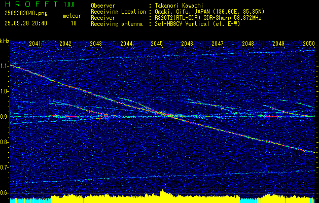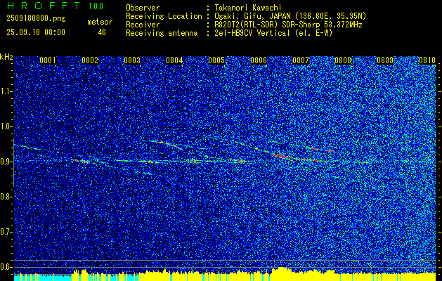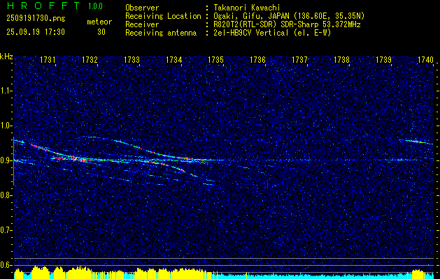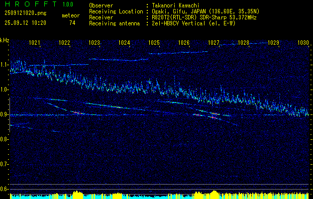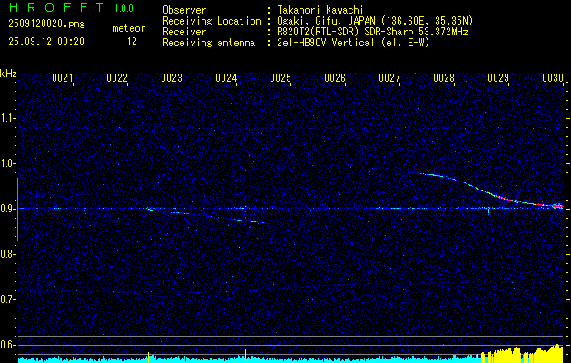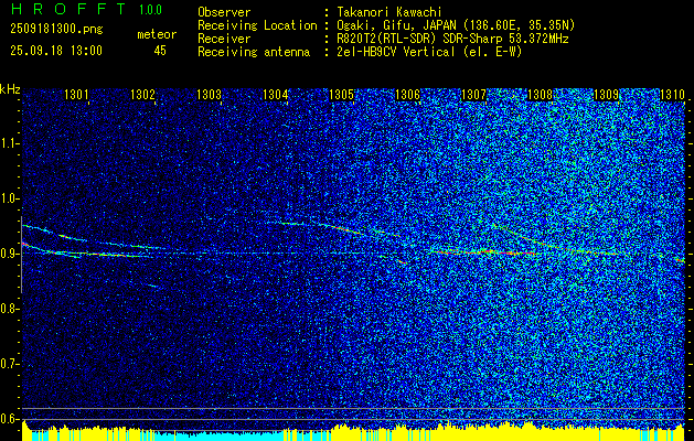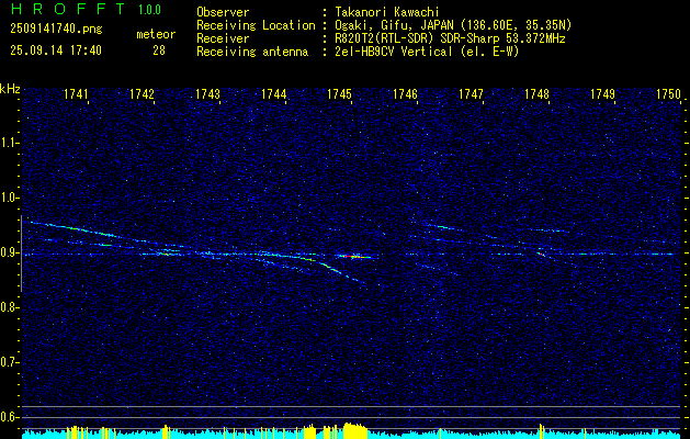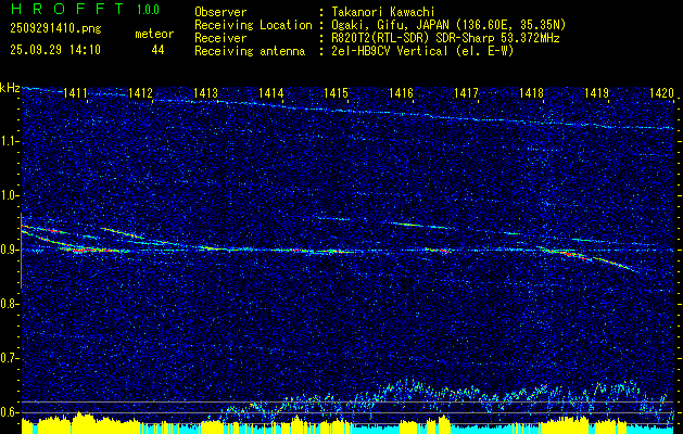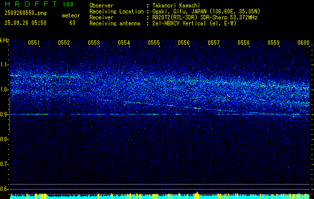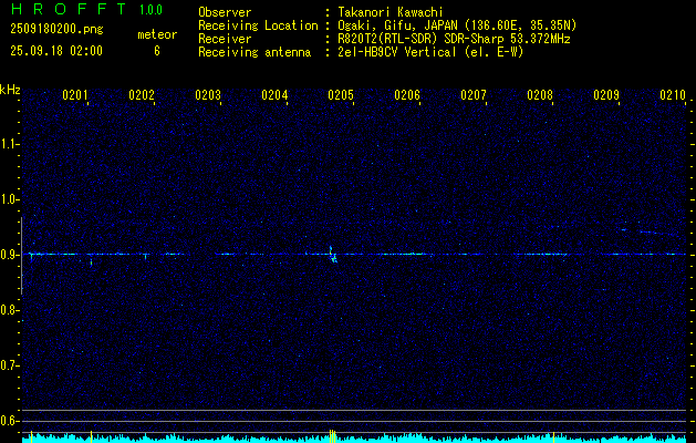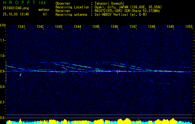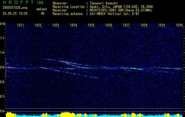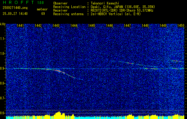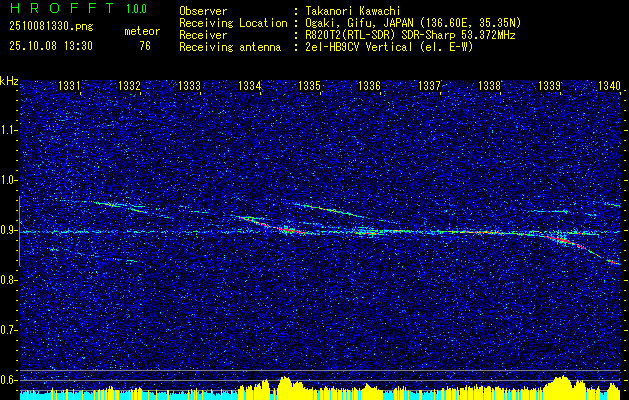 0.9kHz附近に発生している『点』または『塊』が流星によるエコーです.