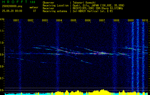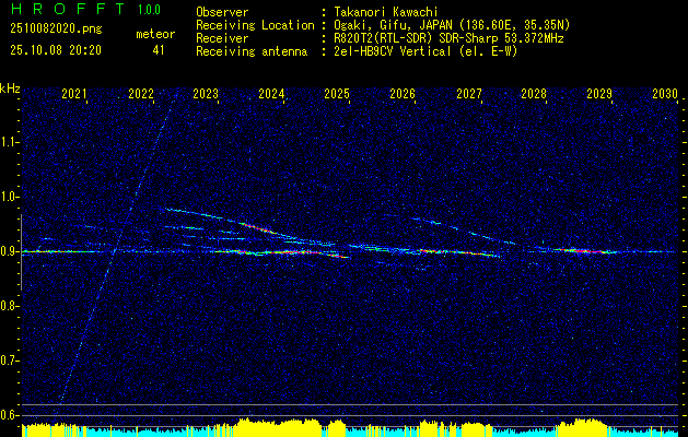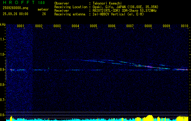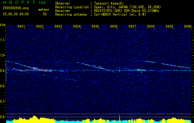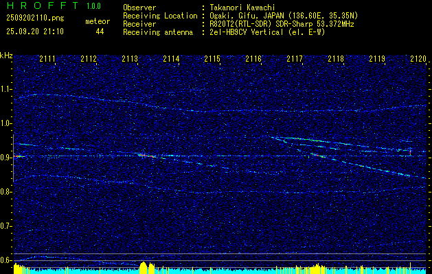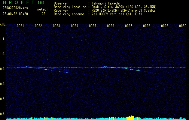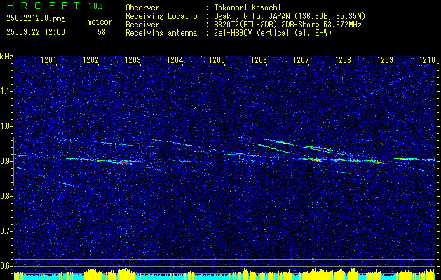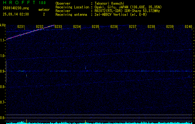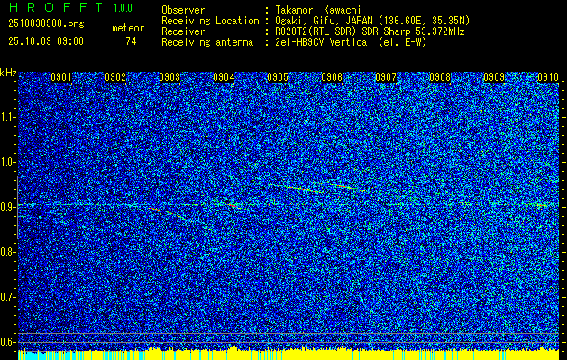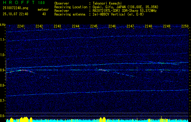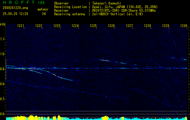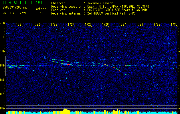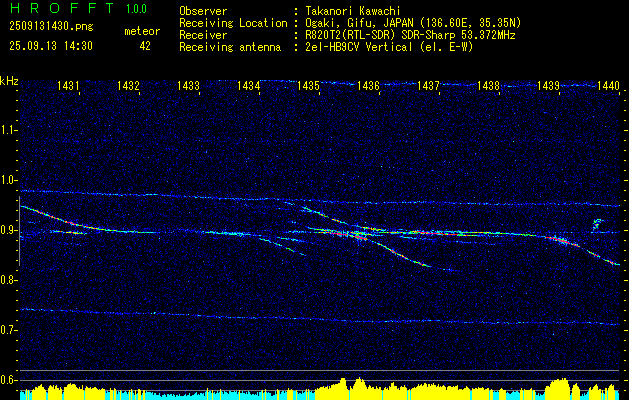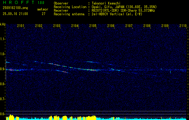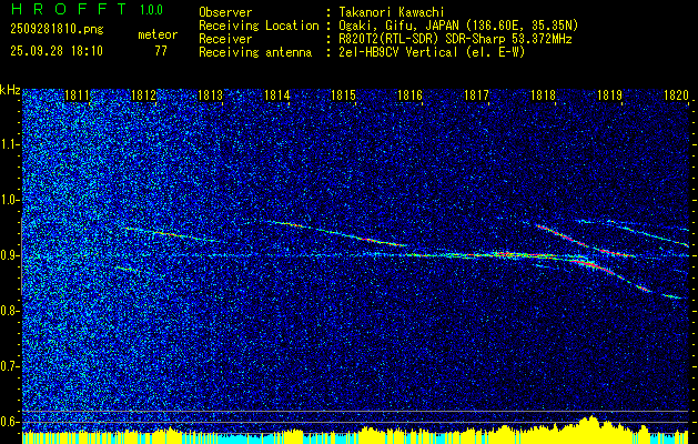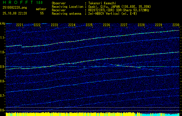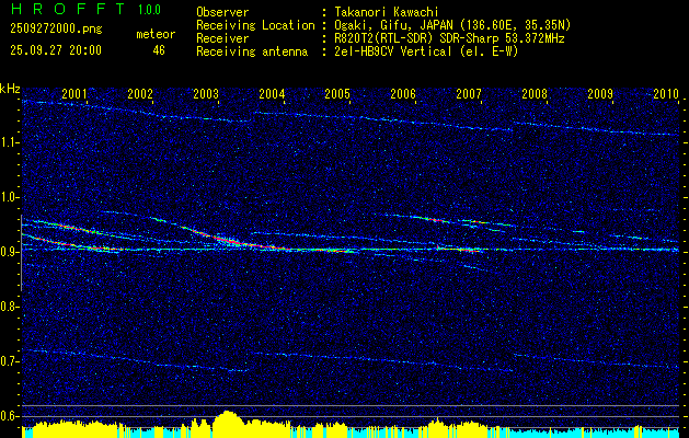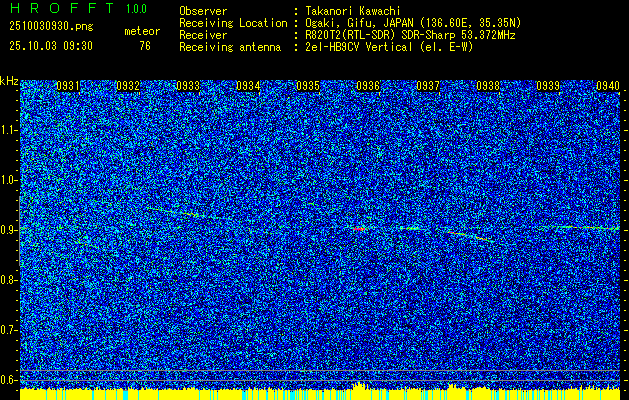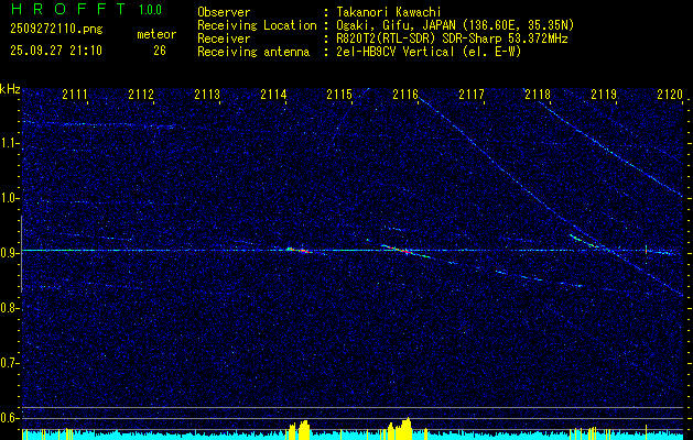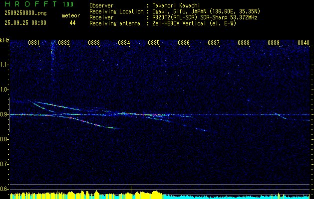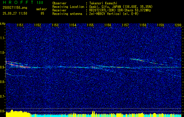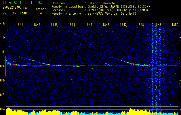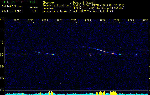 0.9kHz附近に発生している『点』または『塊』が流星によるエコーです.