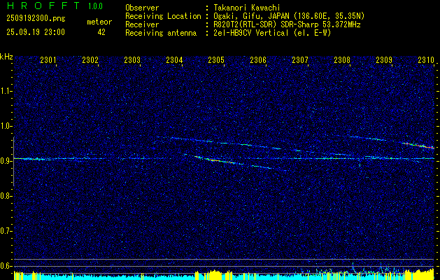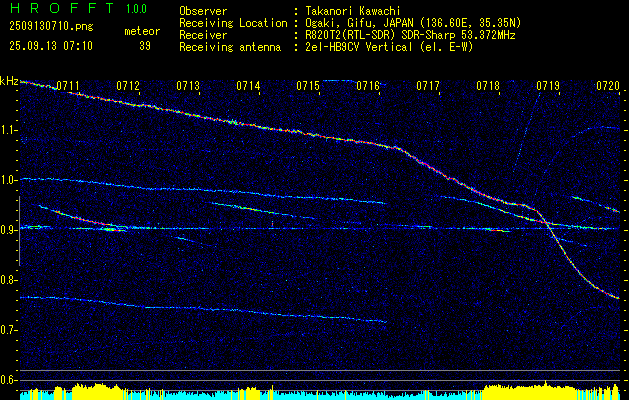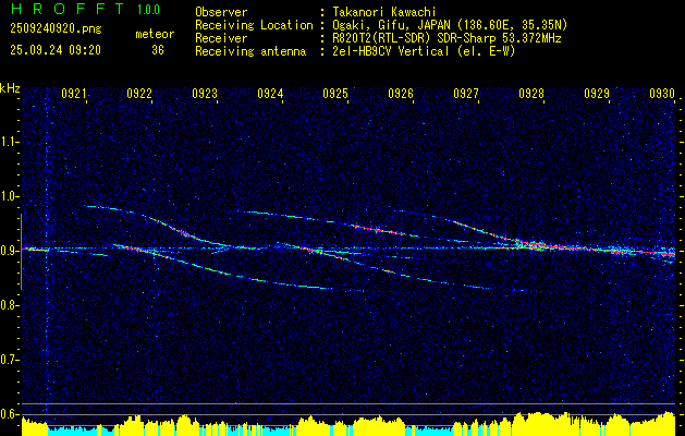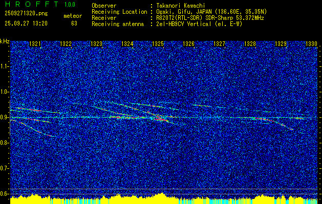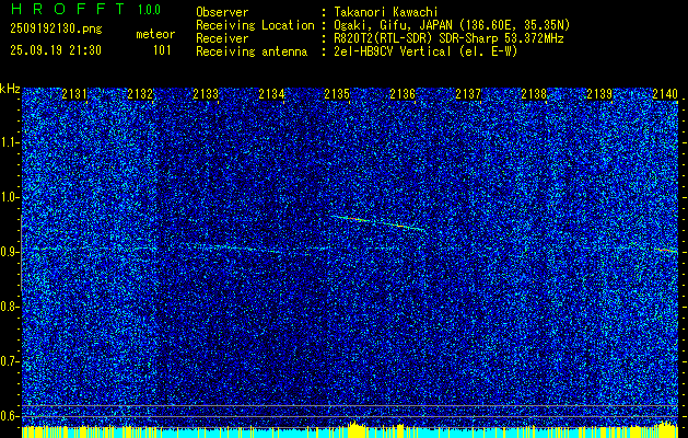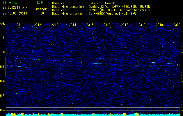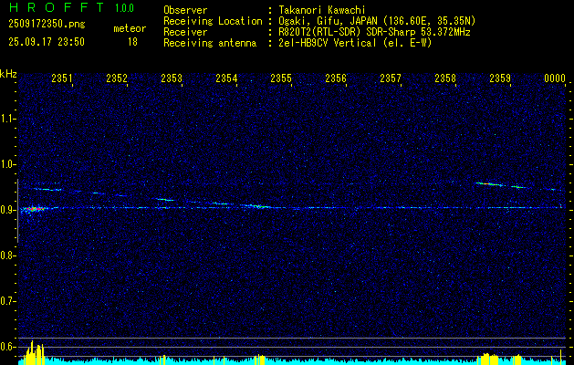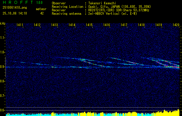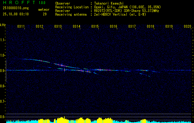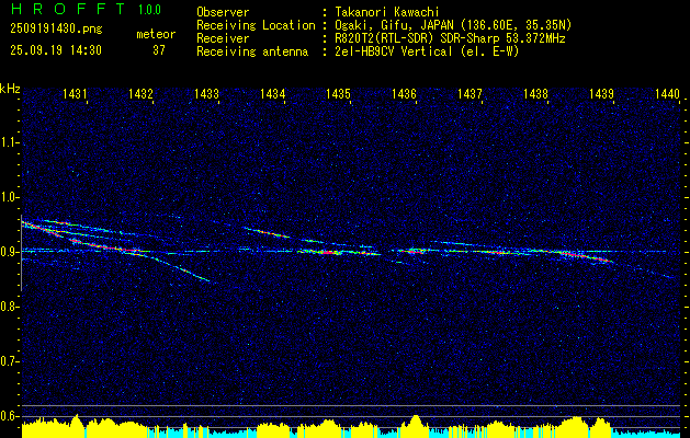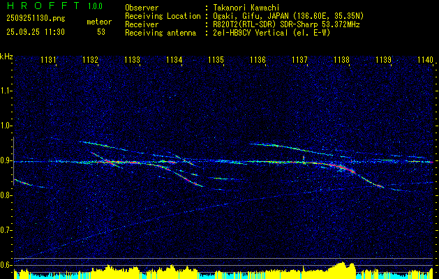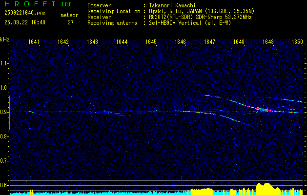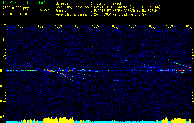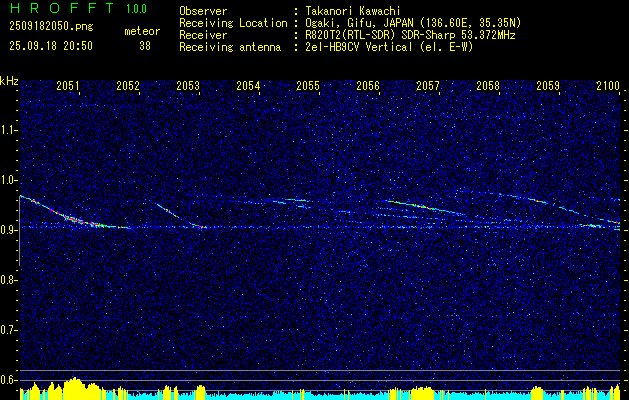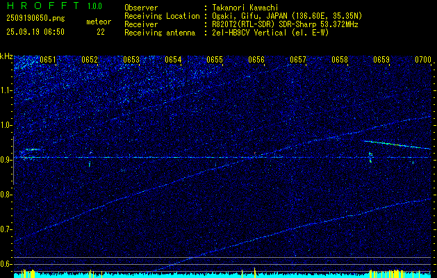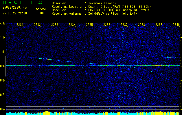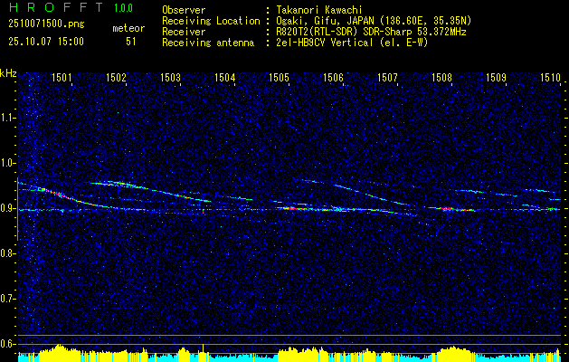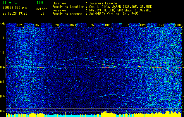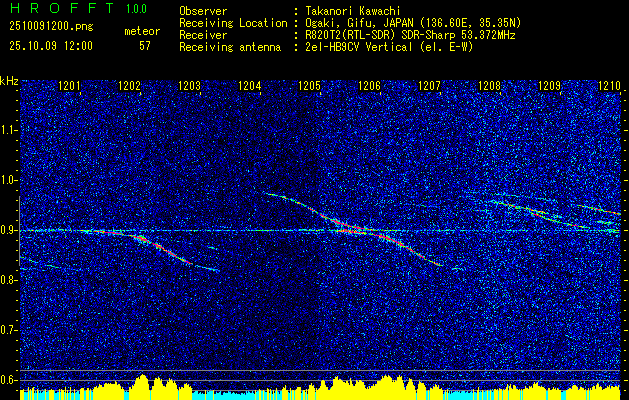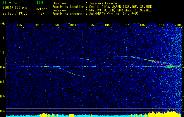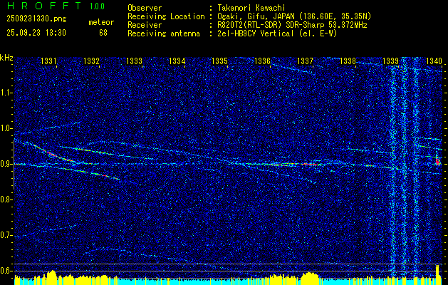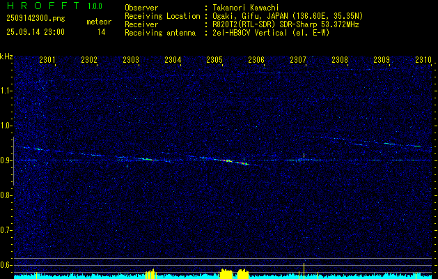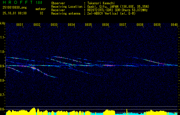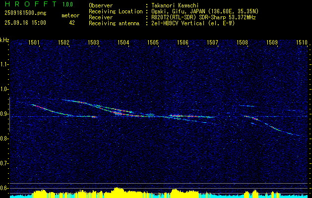 0.9kHz附近に発生している『点』または『塊』が流星によるエコーです.