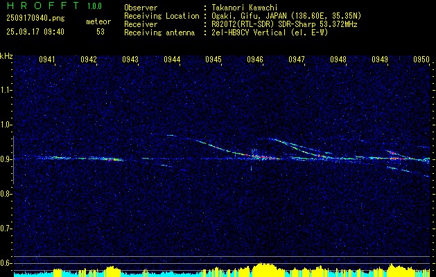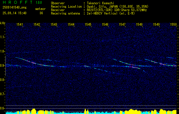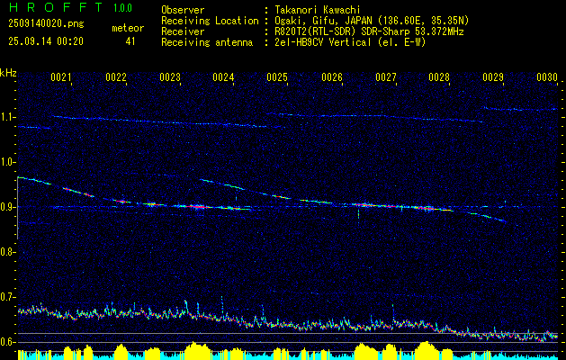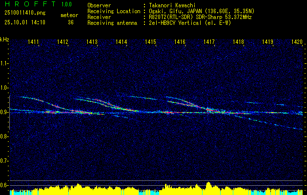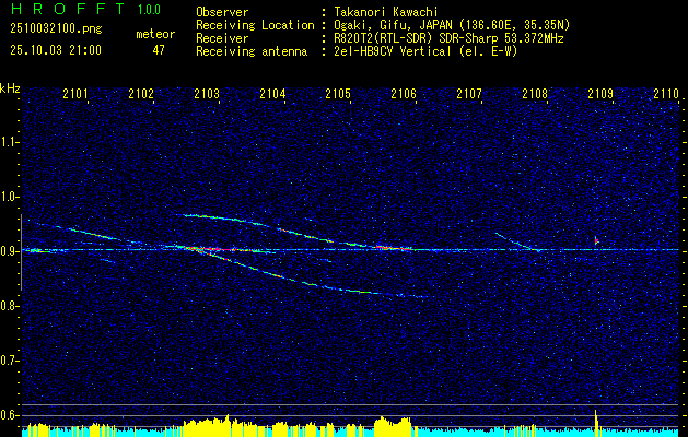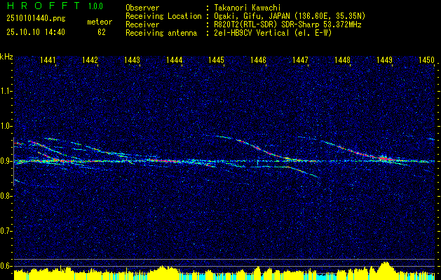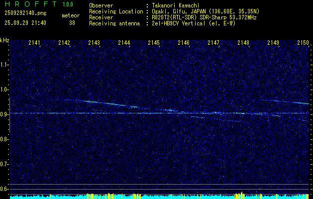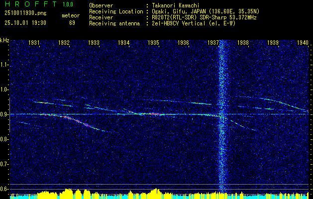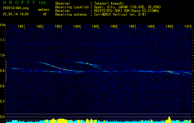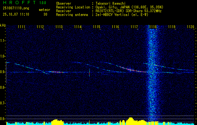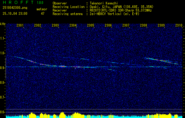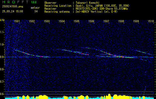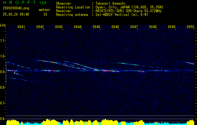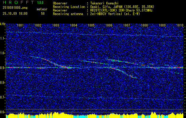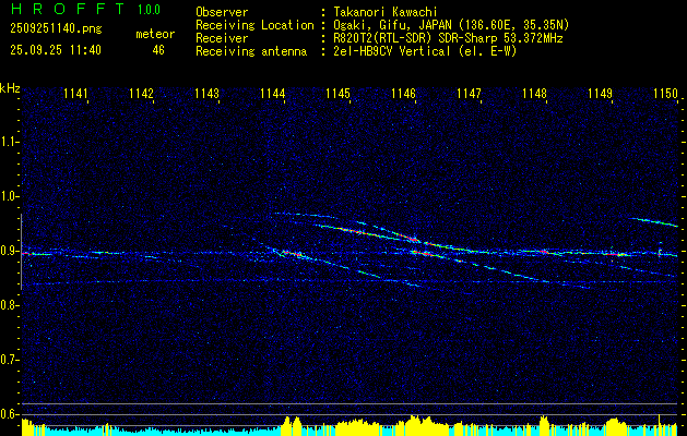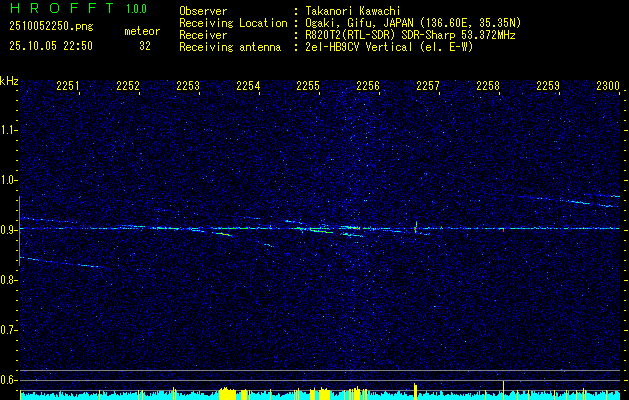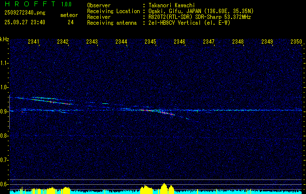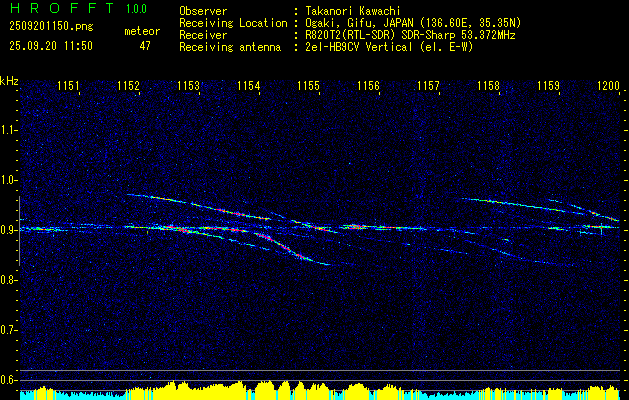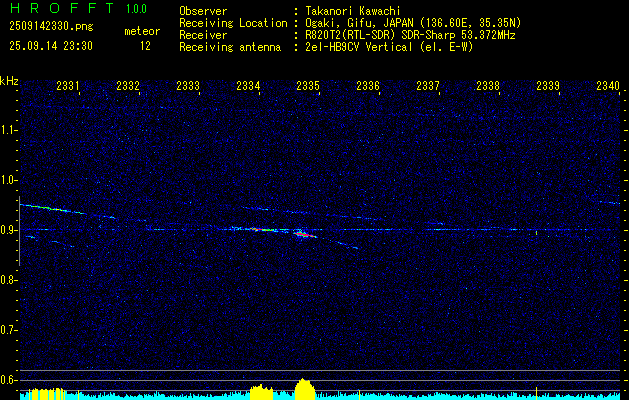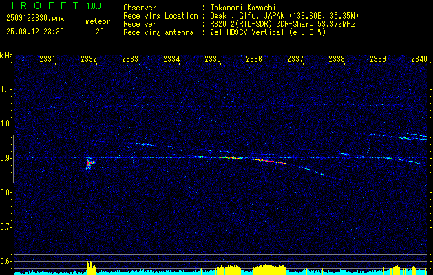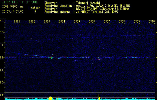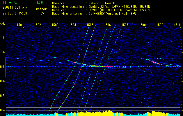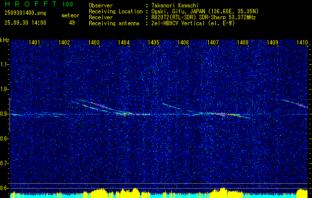 0.9kHz附近に発生している『点』または『塊』が流星によるエコーです.