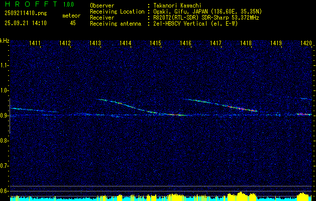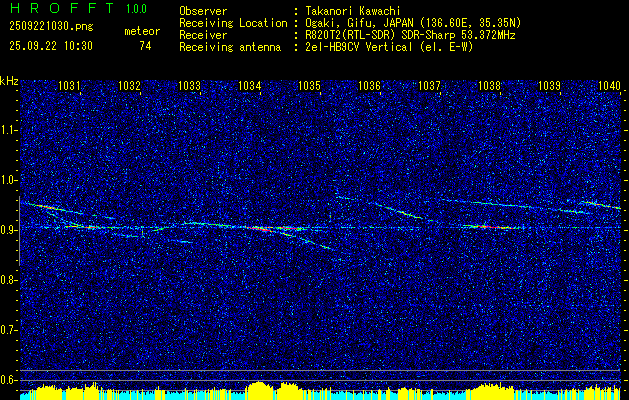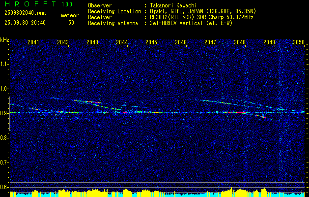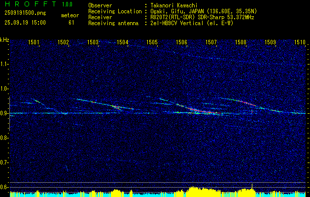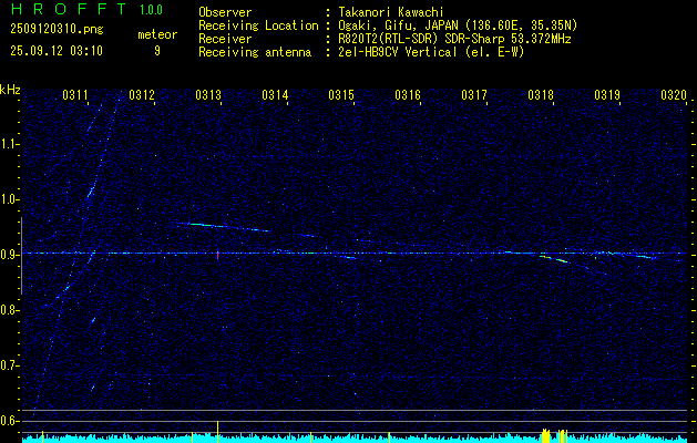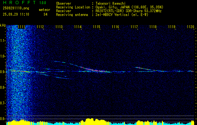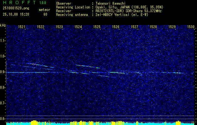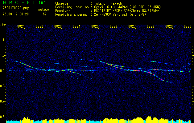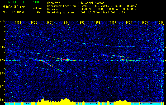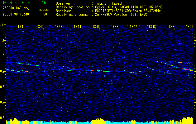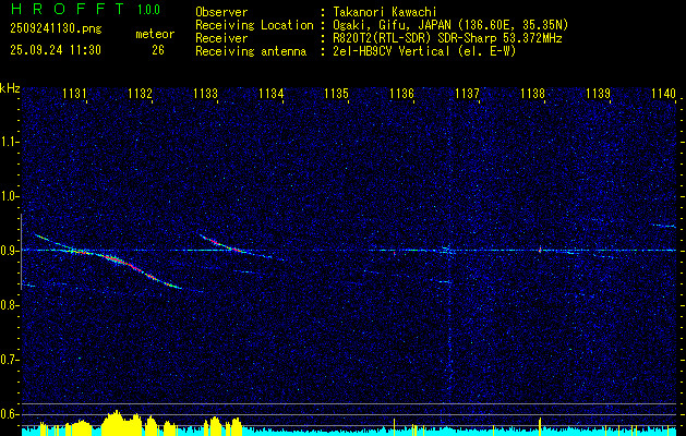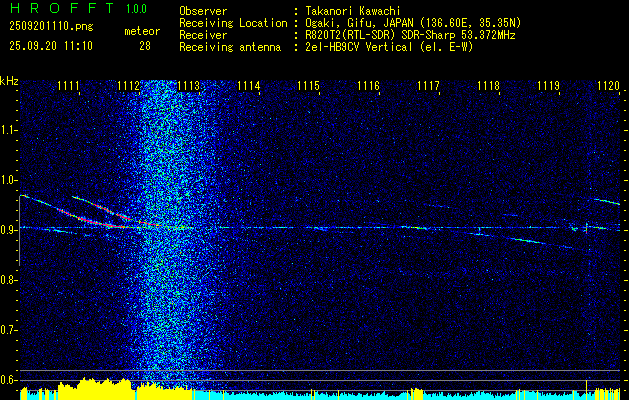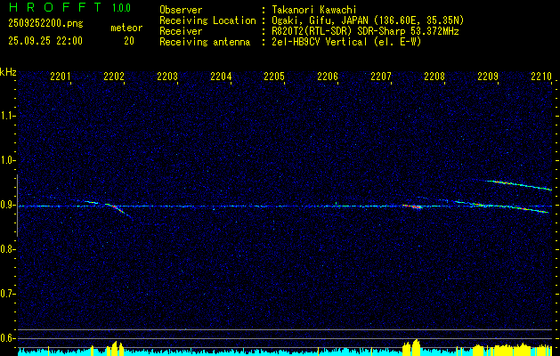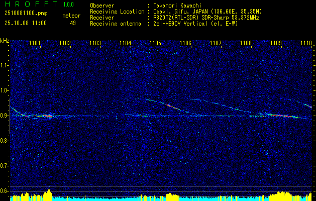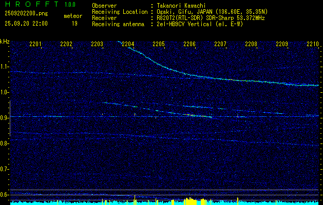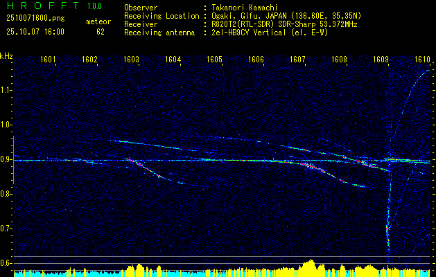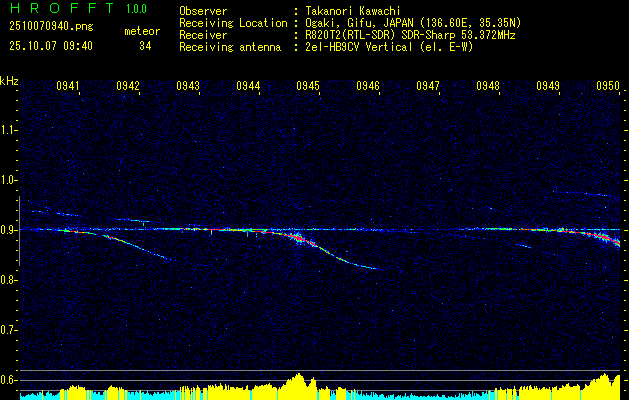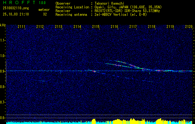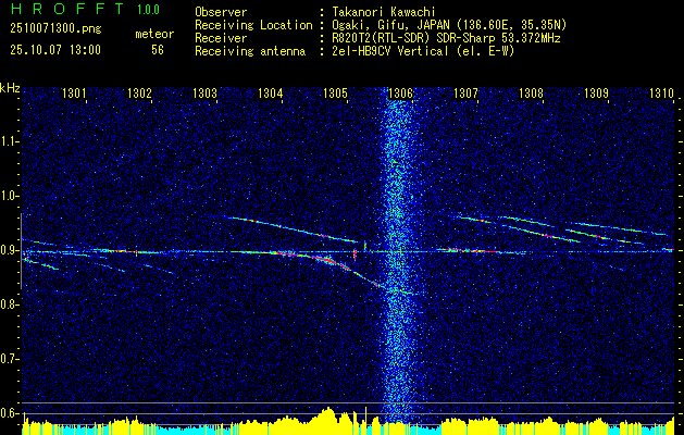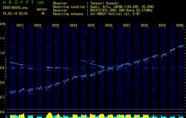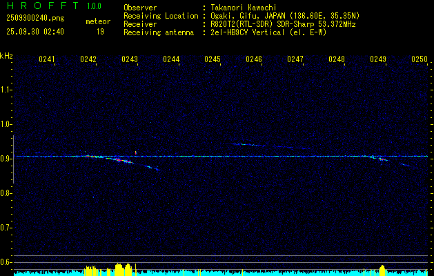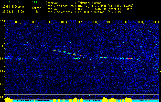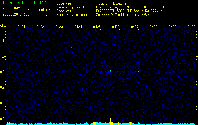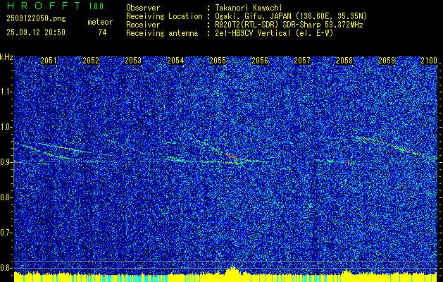 0.9kHz附近に発生している『点』または『塊』が流星によるエコーです.