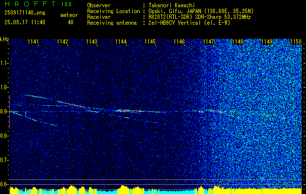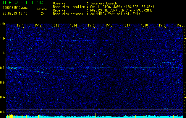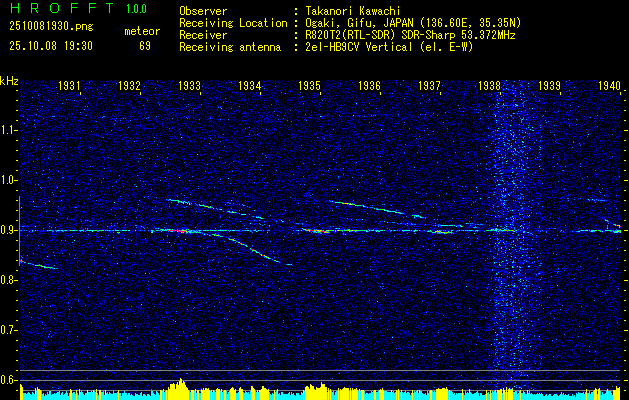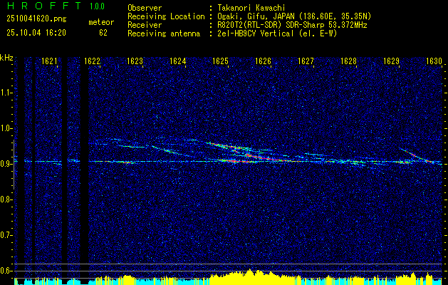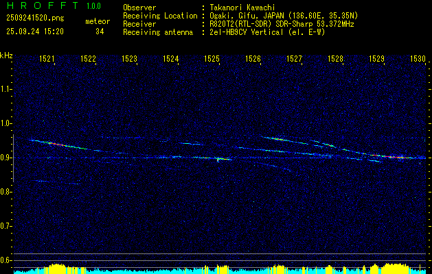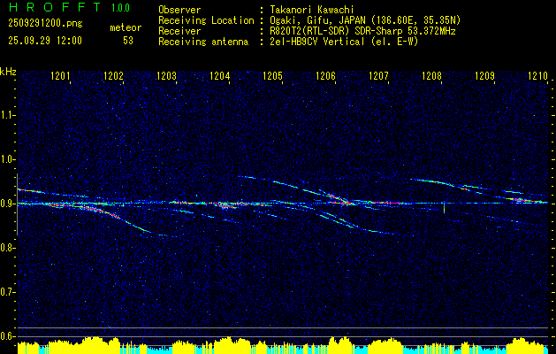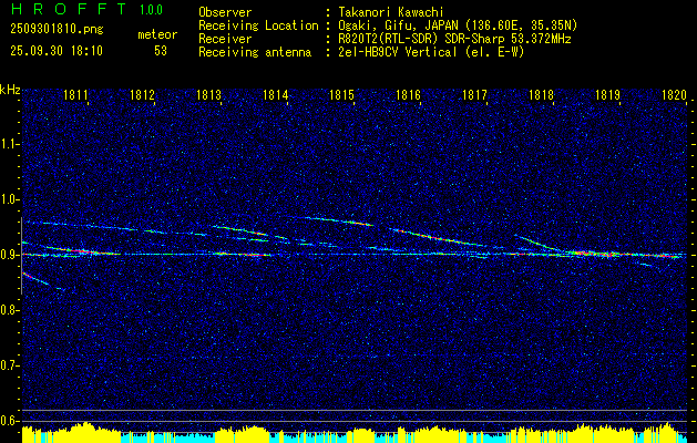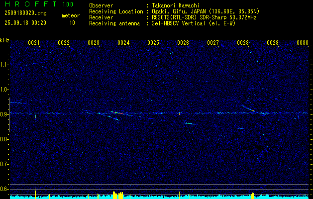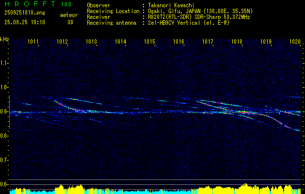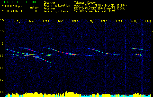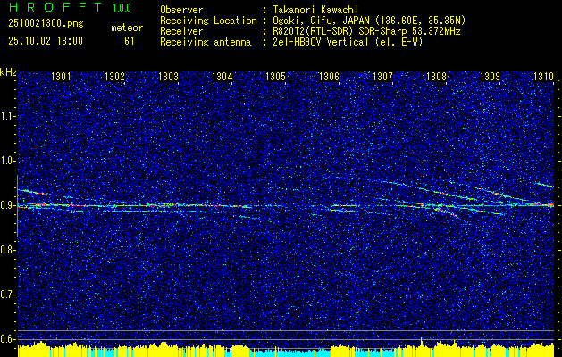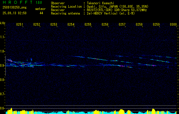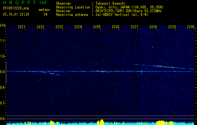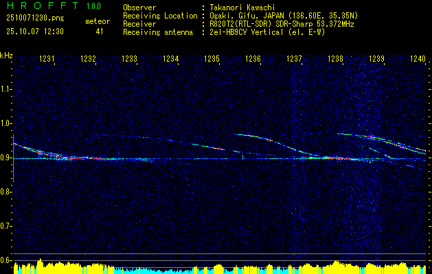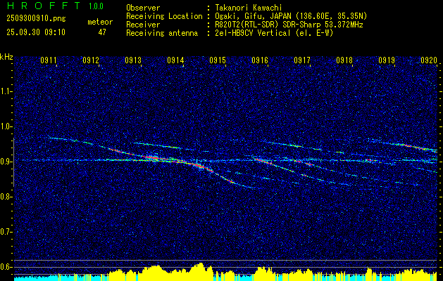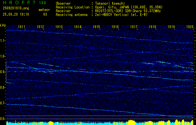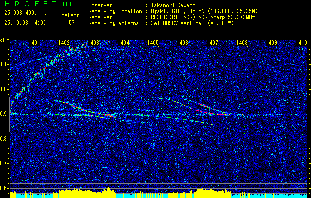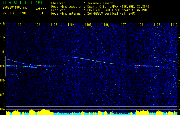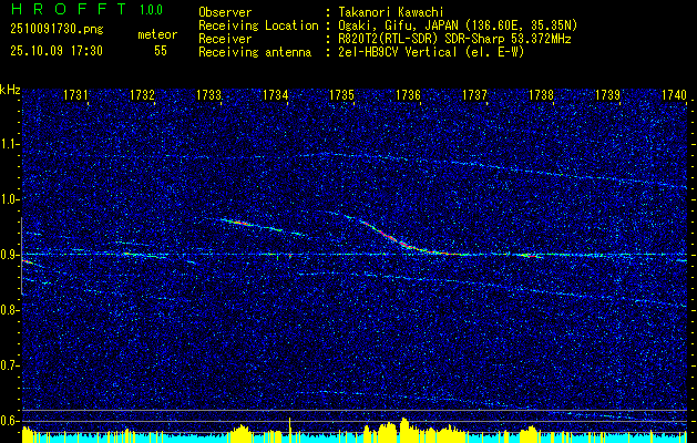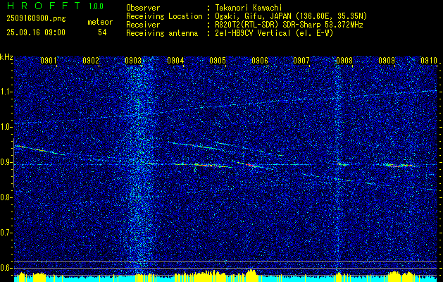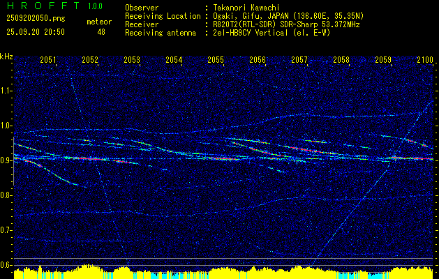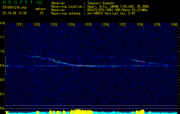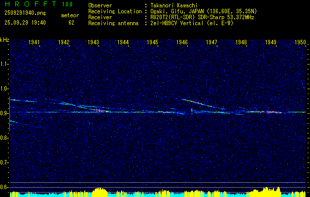 0.9kHz附近に発生している『点』または『塊』が流星によるエコーです.