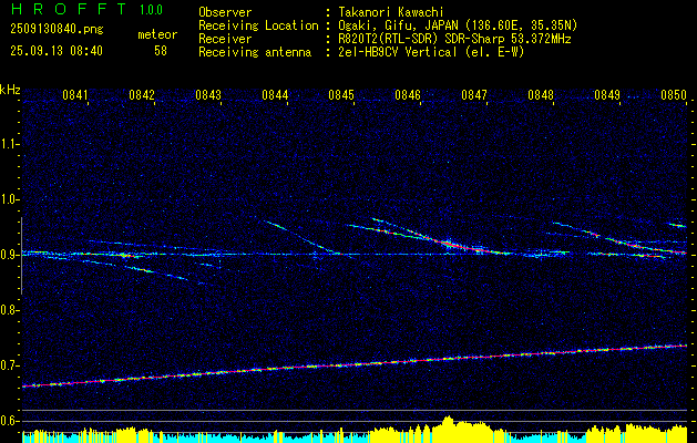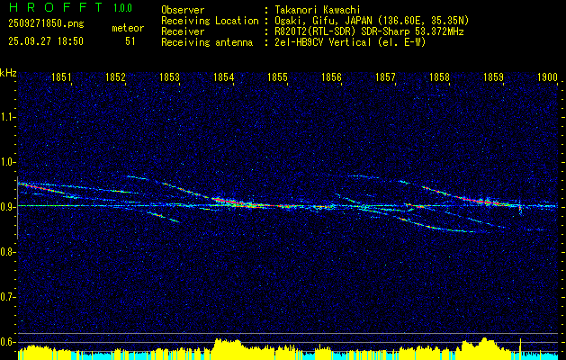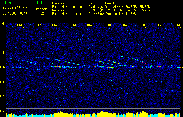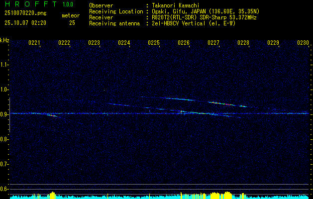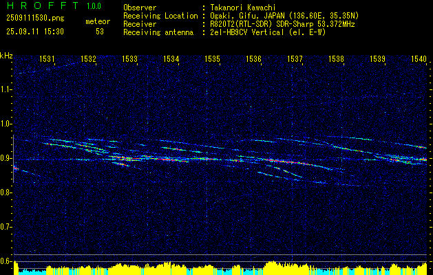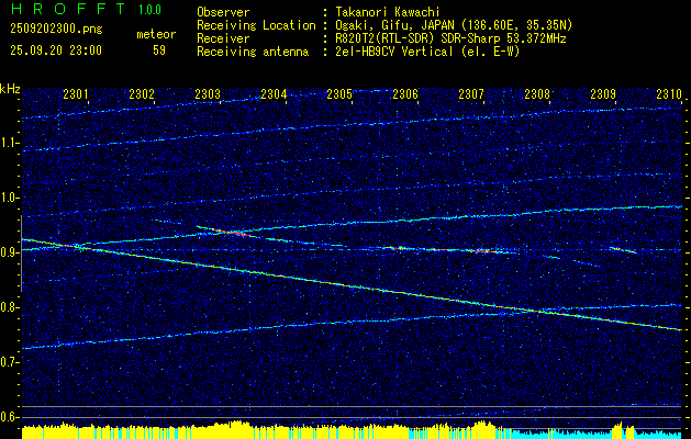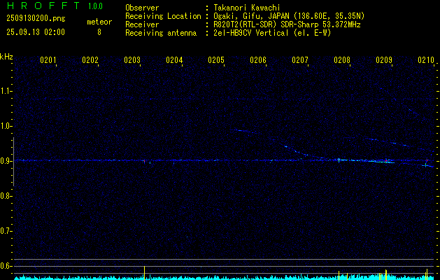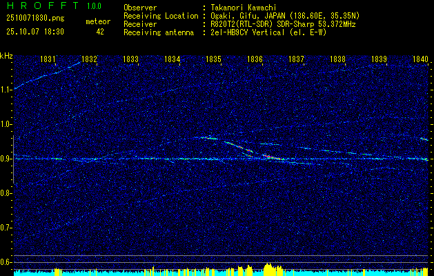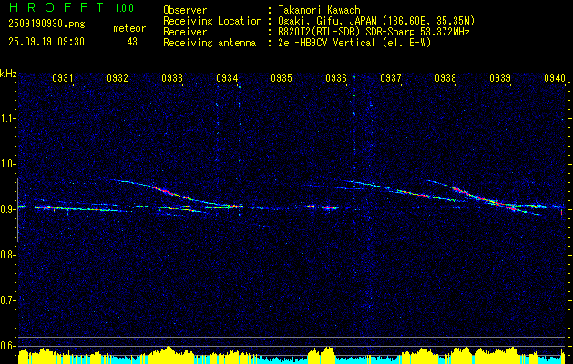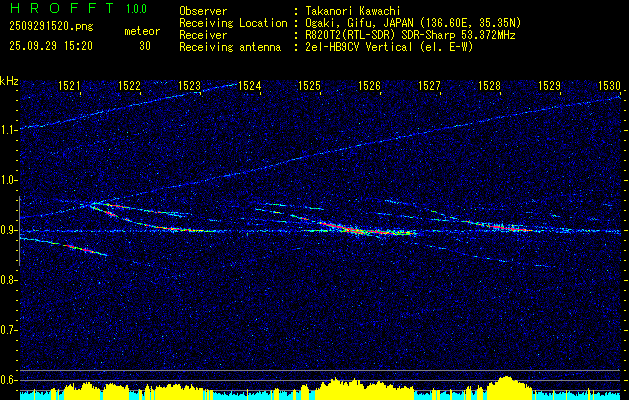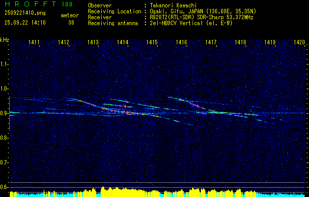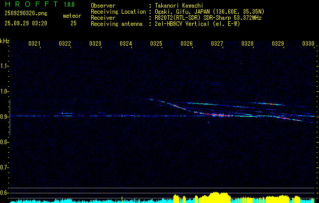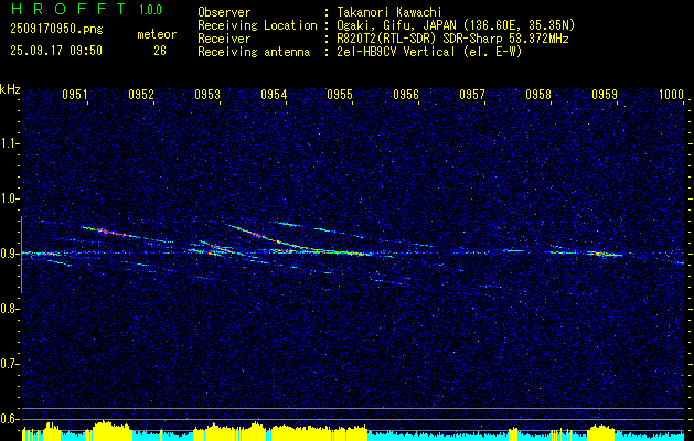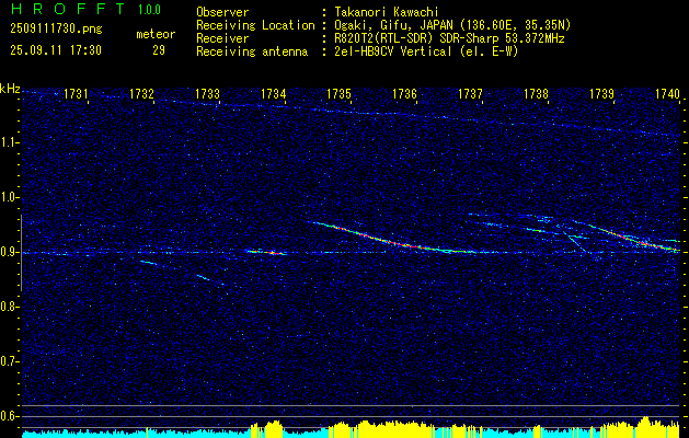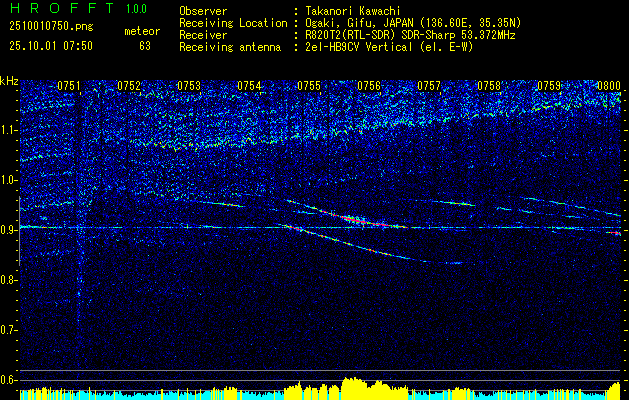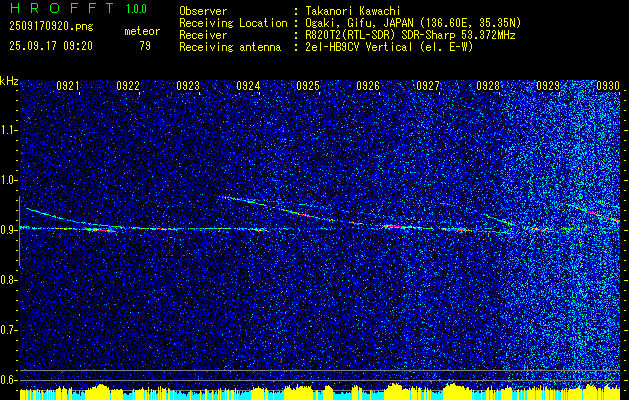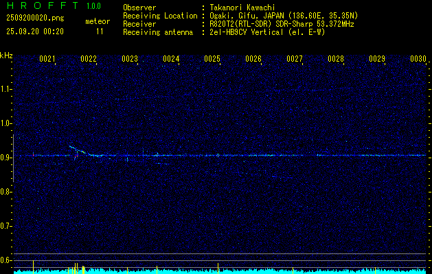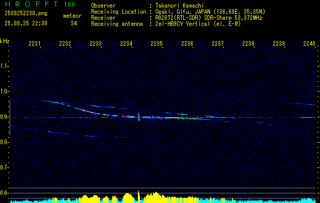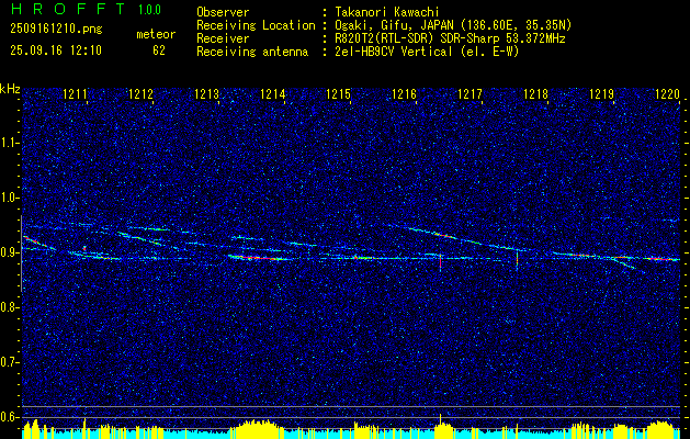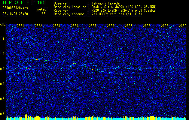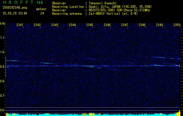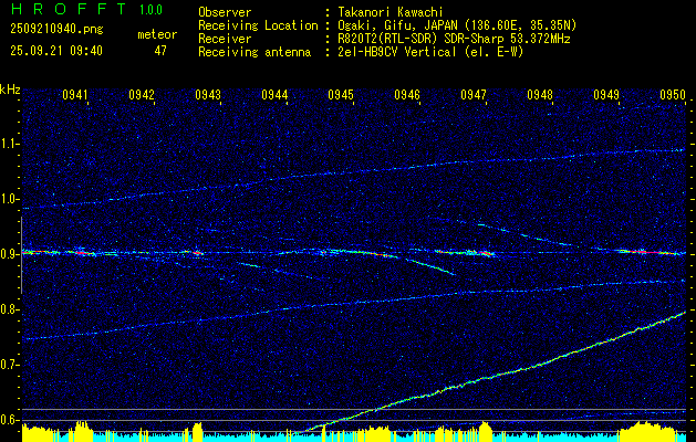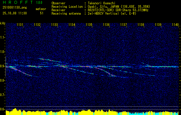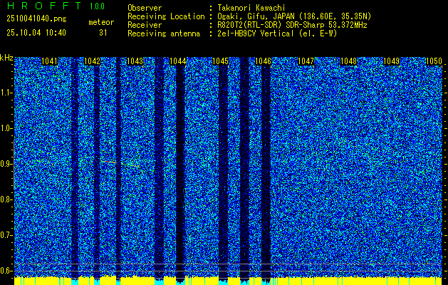 0.9kHz附近に発生している『点』または『塊』が流星によるエコーです.