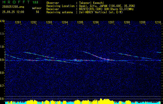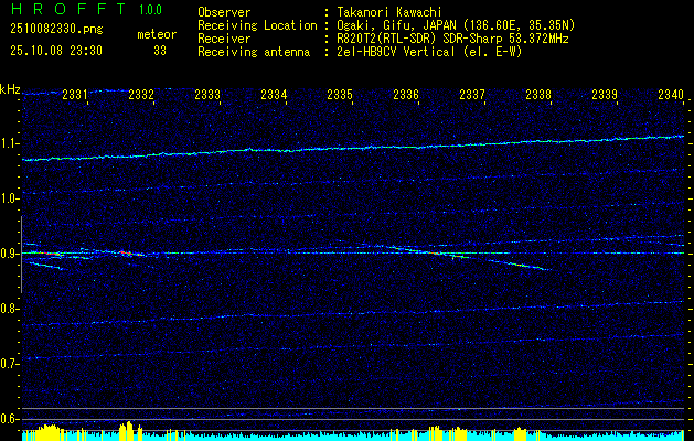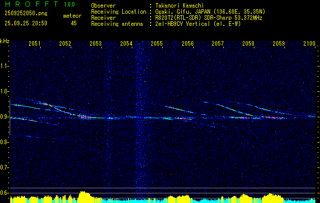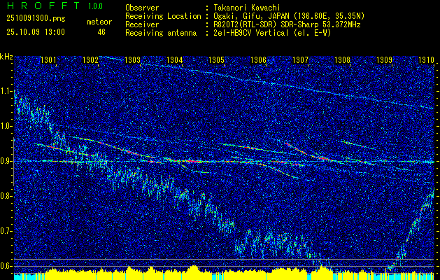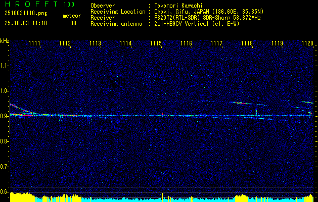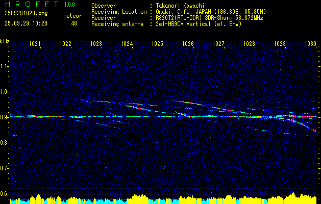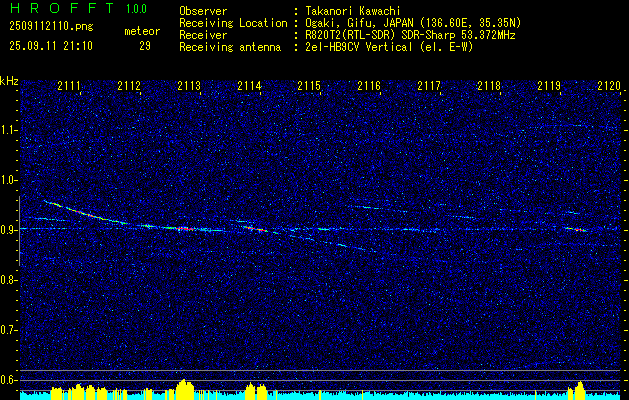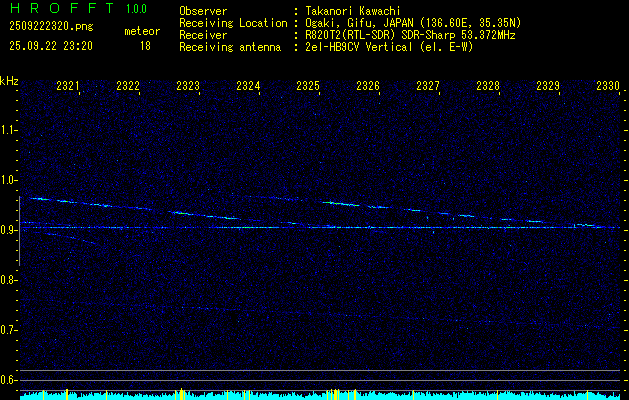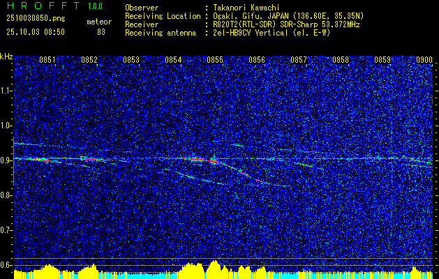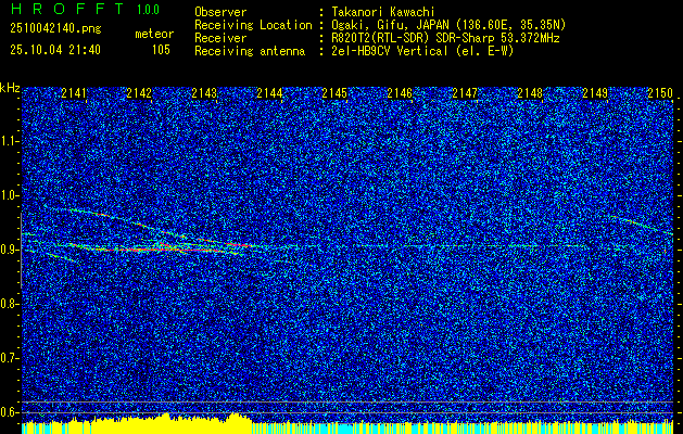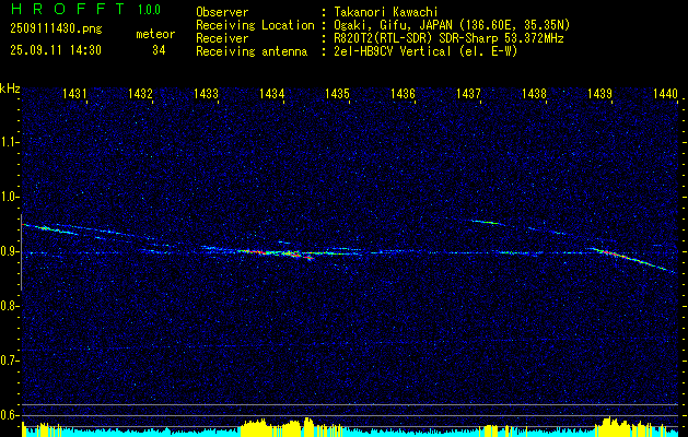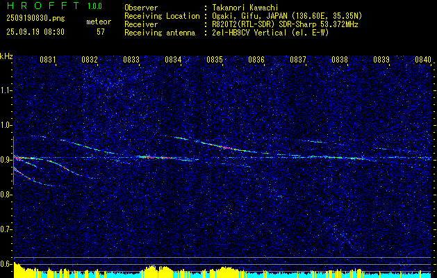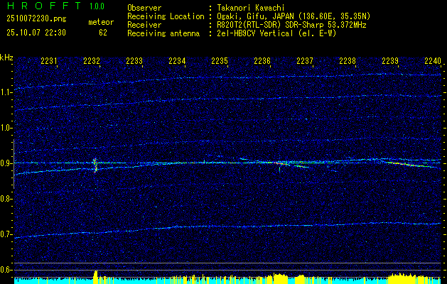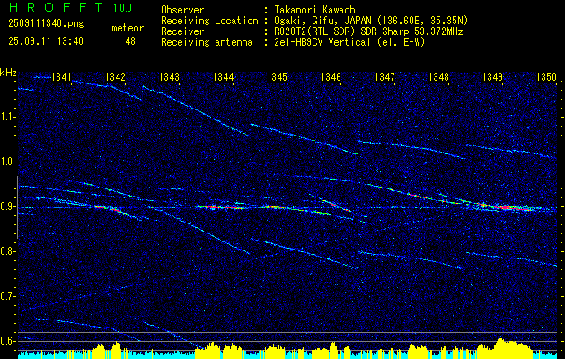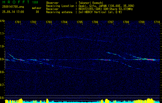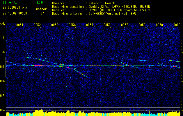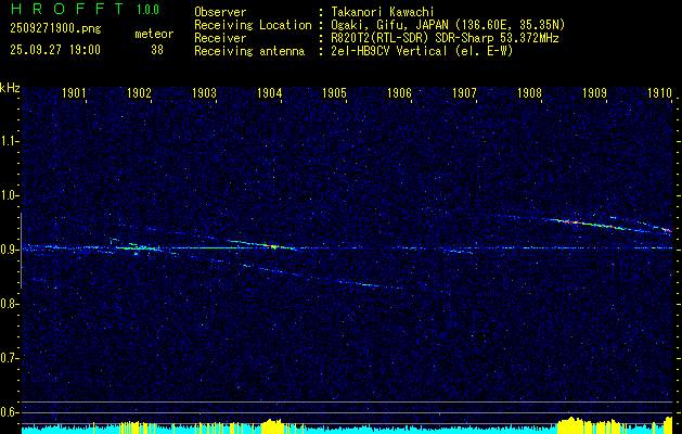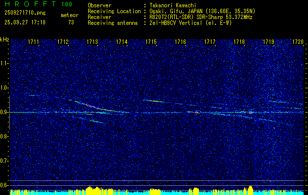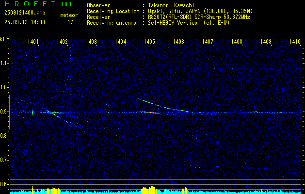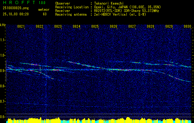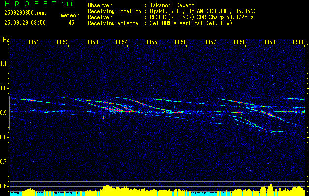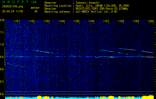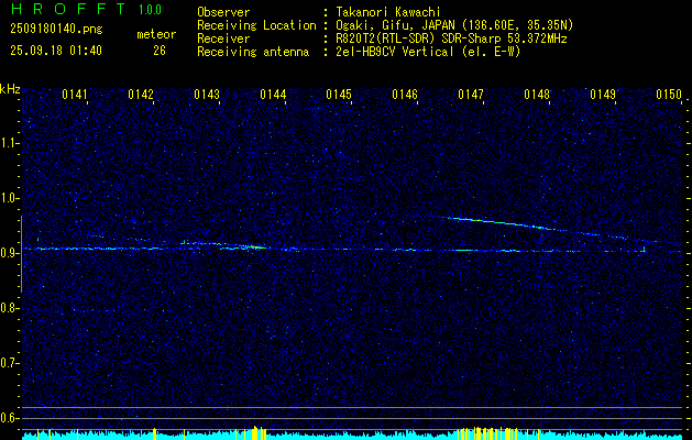 0.9kHz附近に発生している『点』または『塊』が流星によるエコーです.