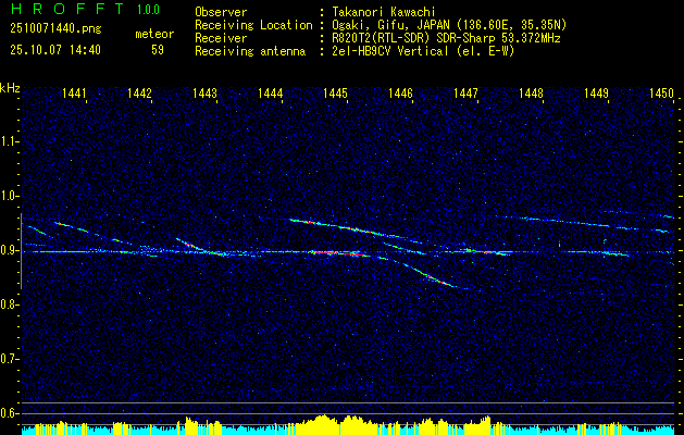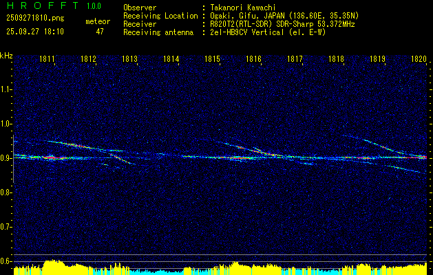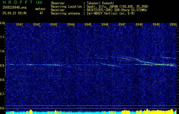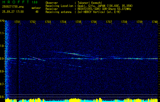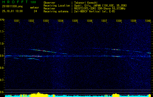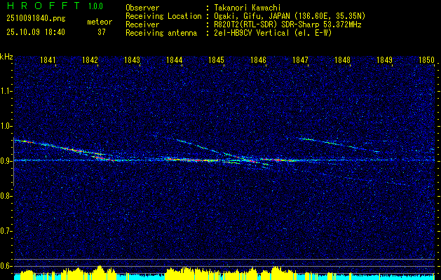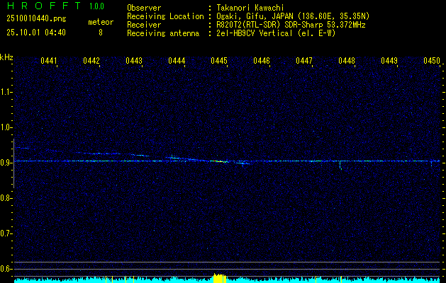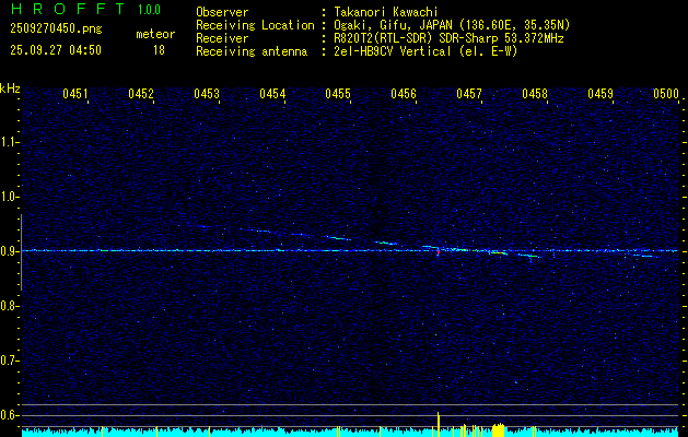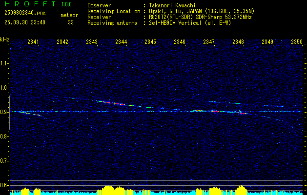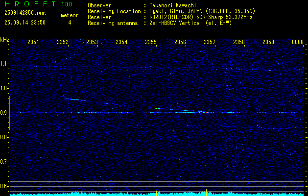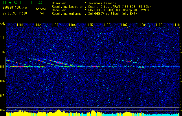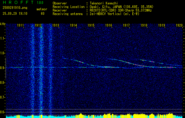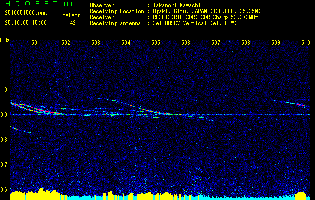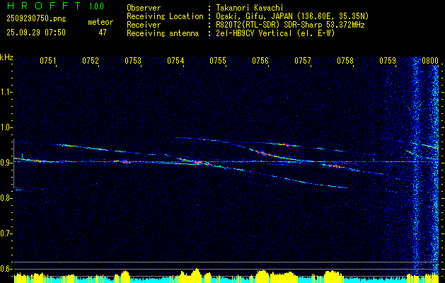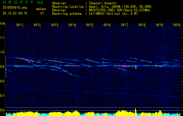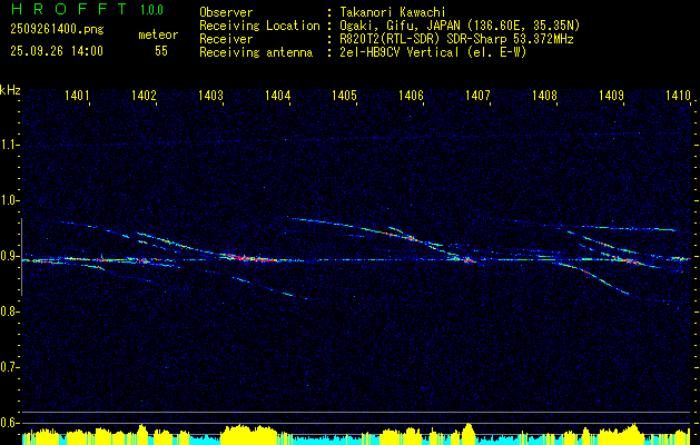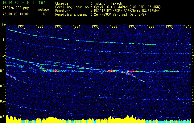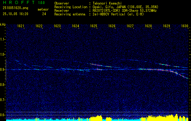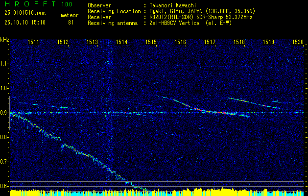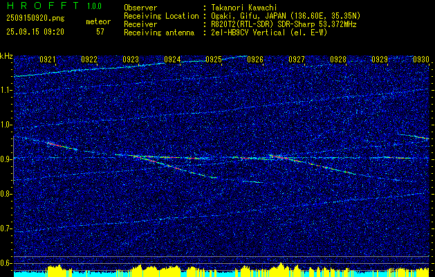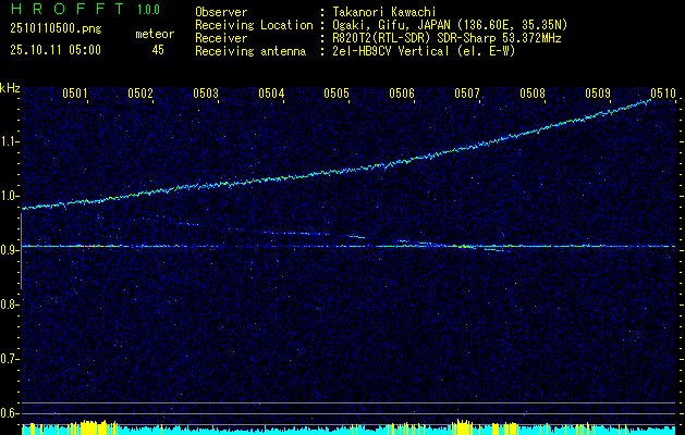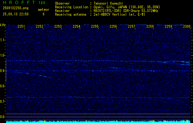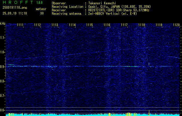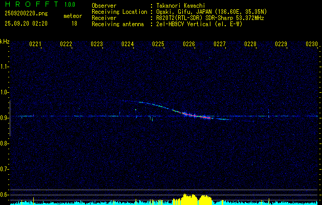 0.9kHz附近に発生している『点』または『塊』が流星によるエコーです.