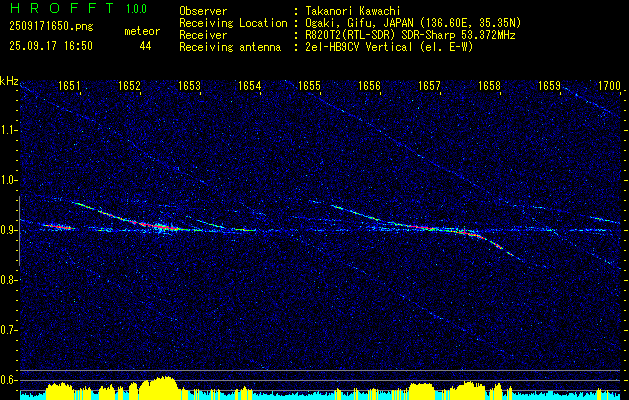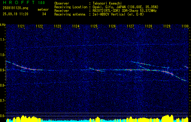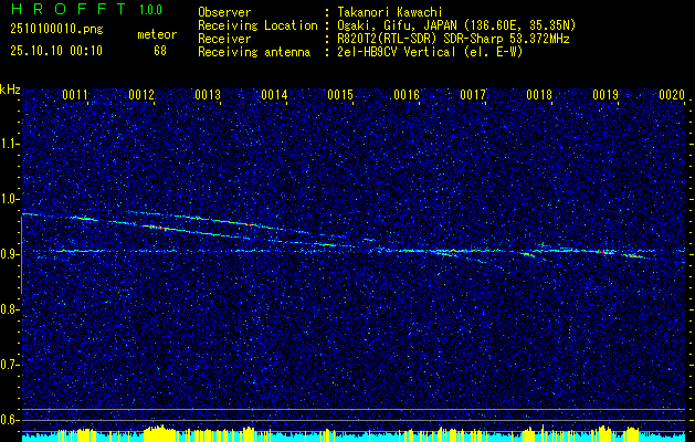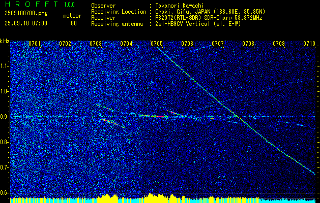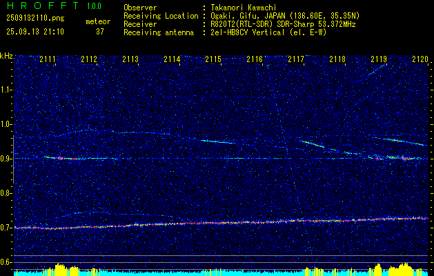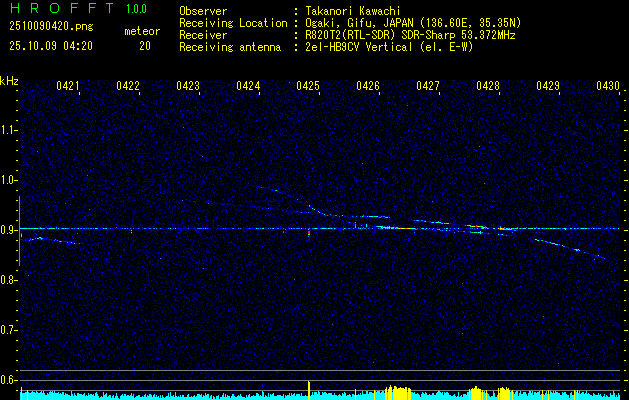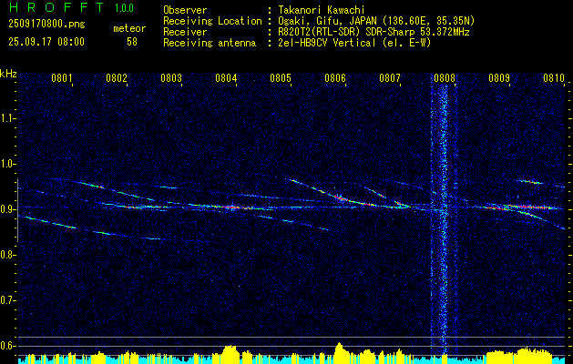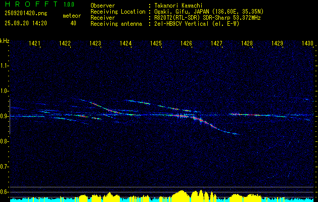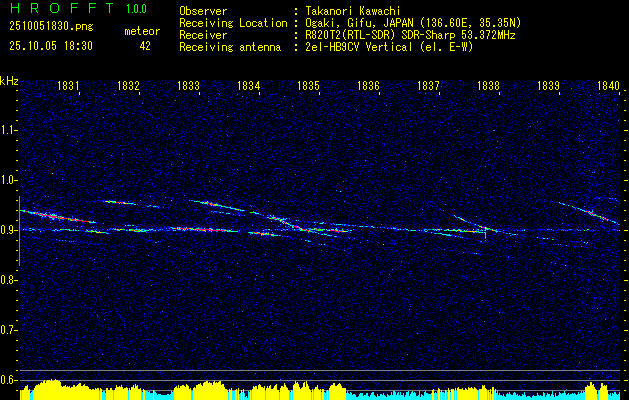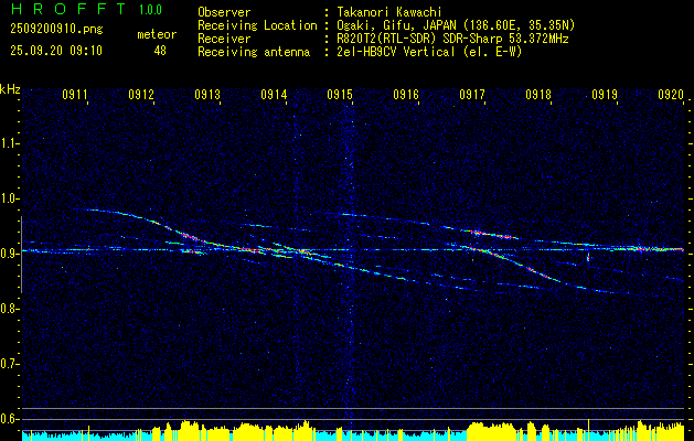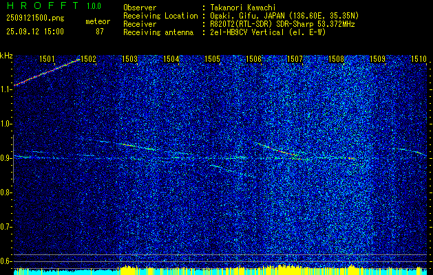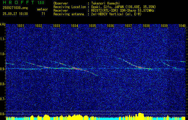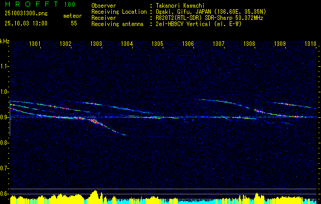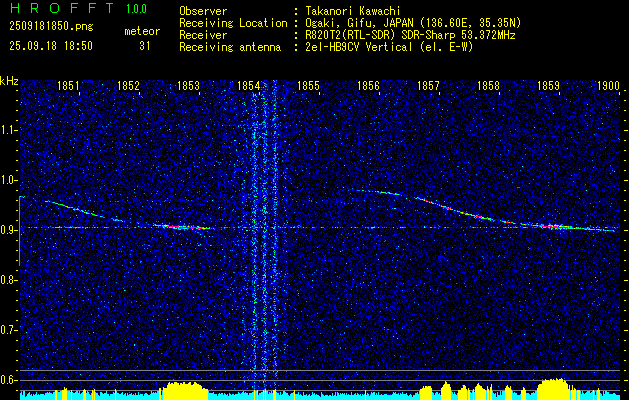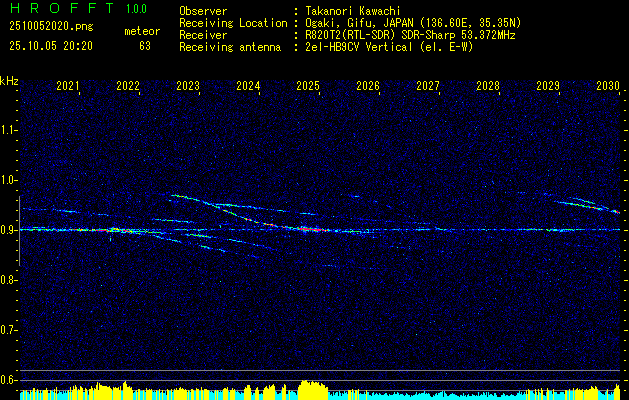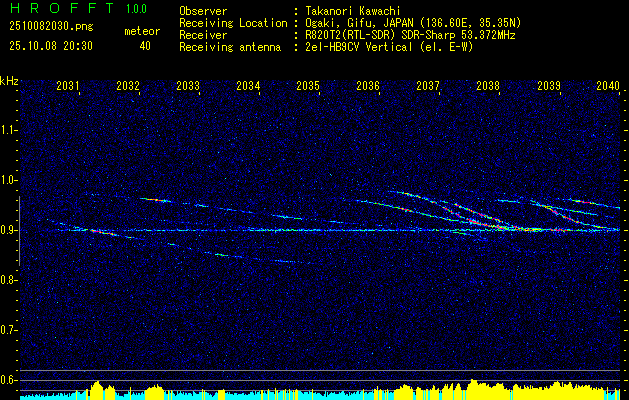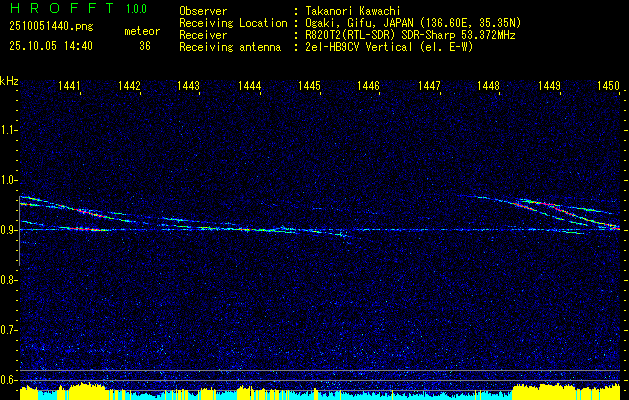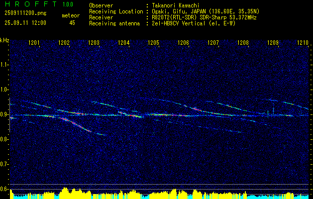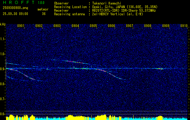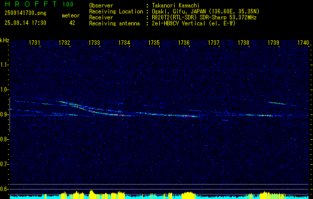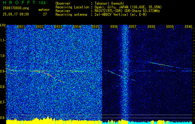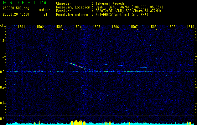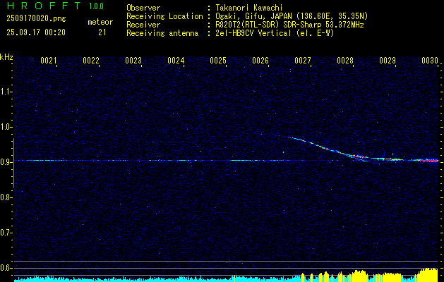 0.9kHz附近に発生している『点』または『塊』が流星によるエコーです.