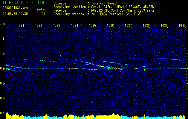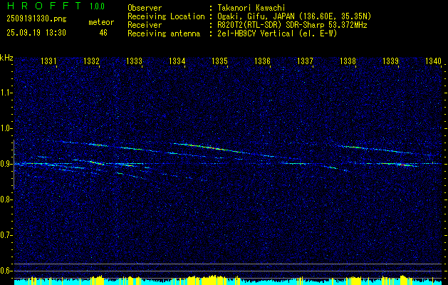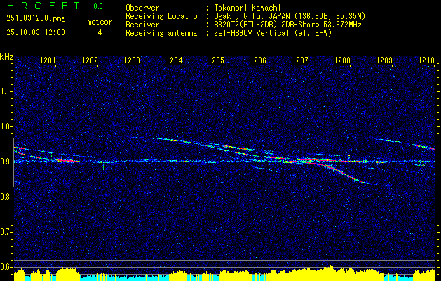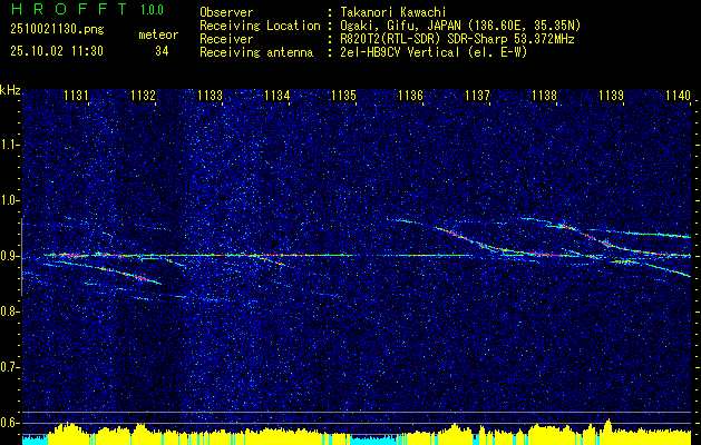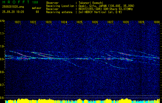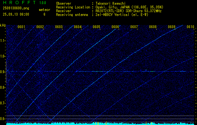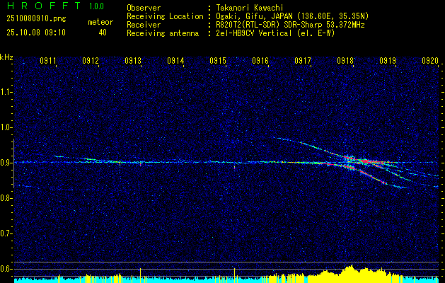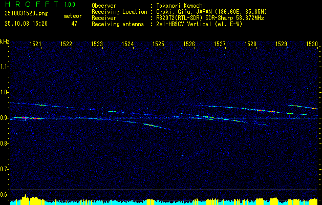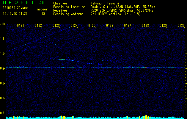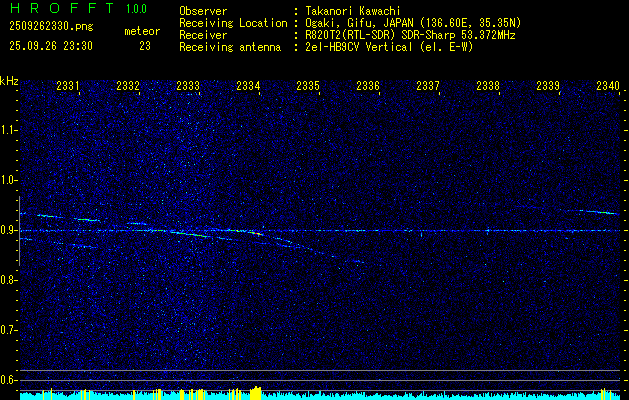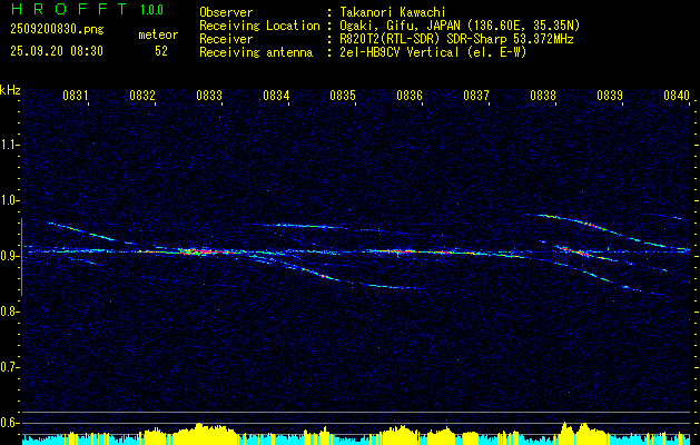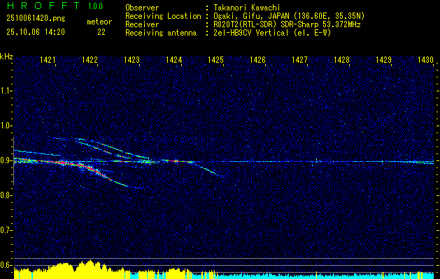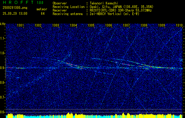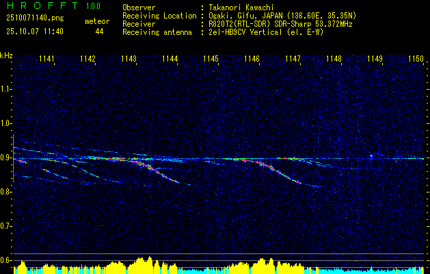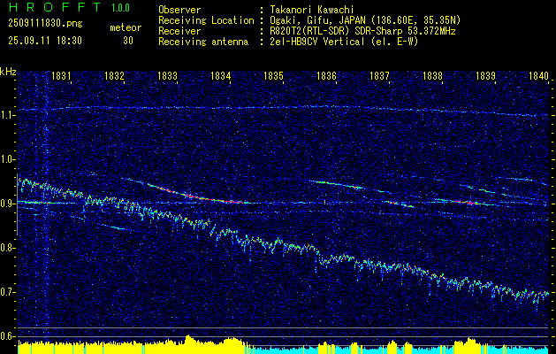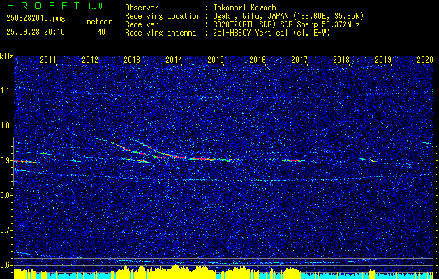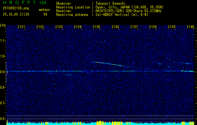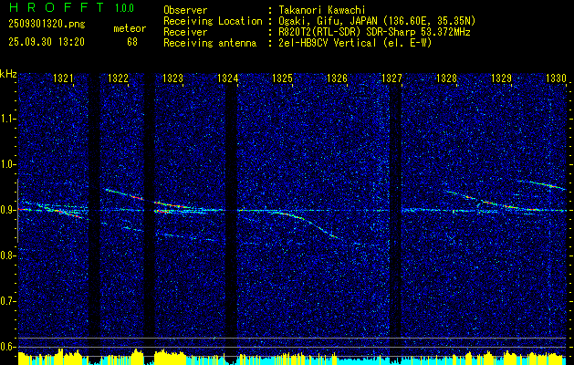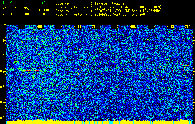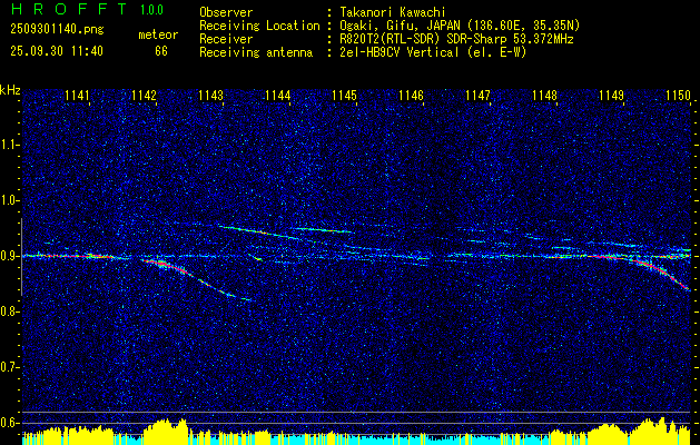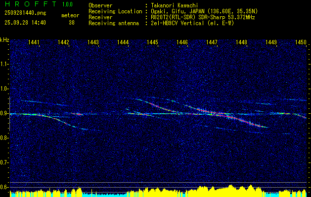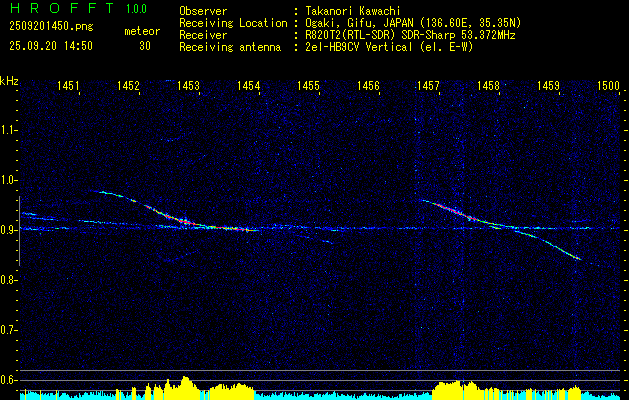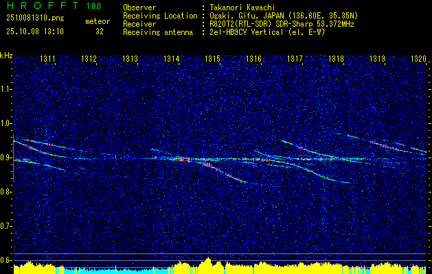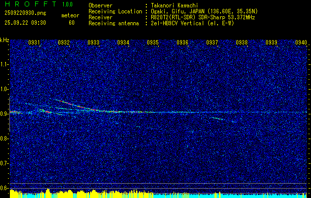 0.9kHz附近に発生している『点』または『塊』が流星によるエコーです.