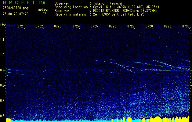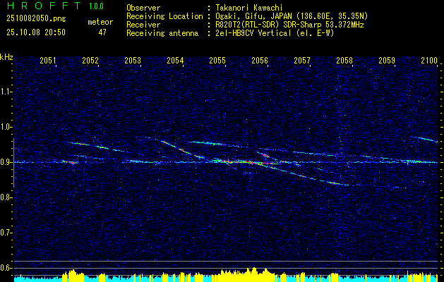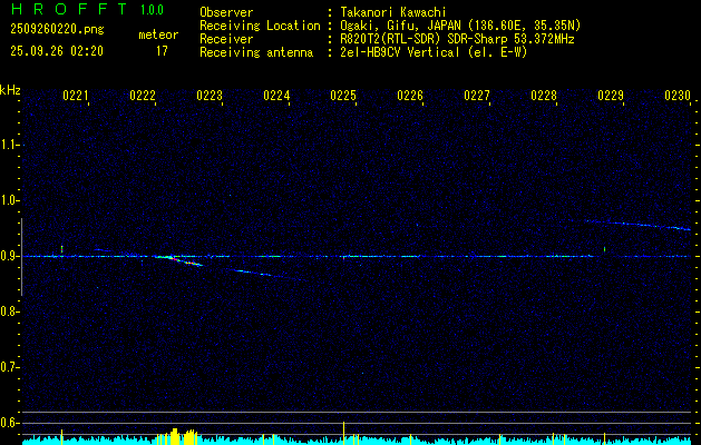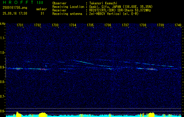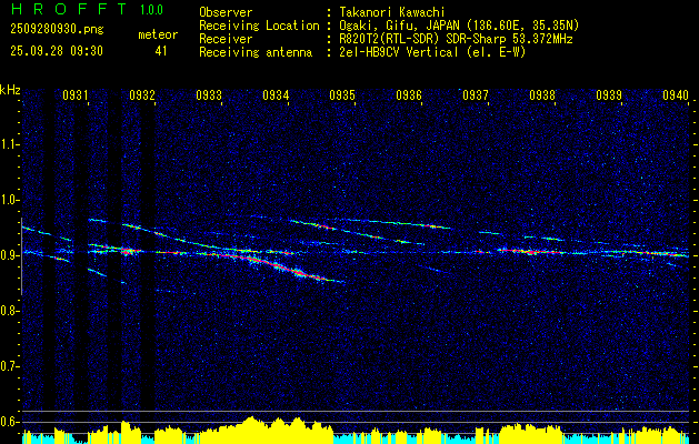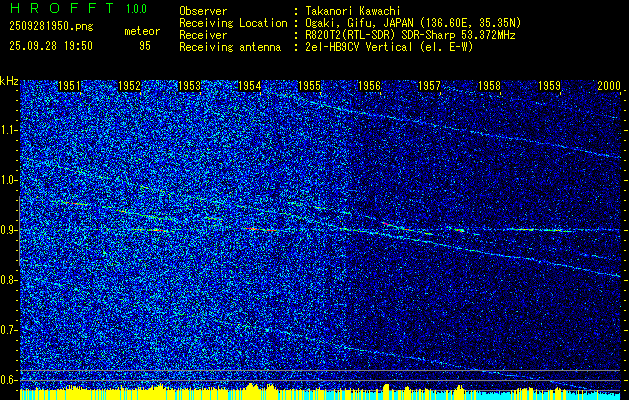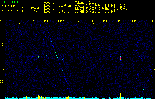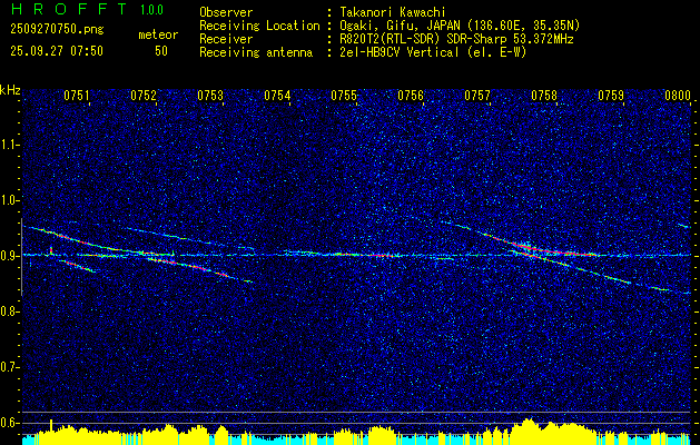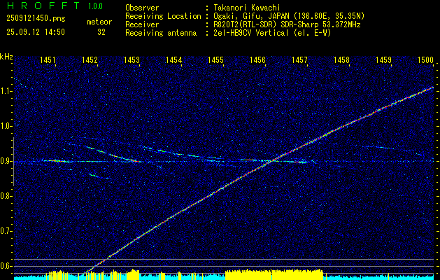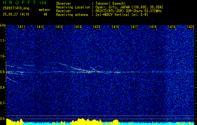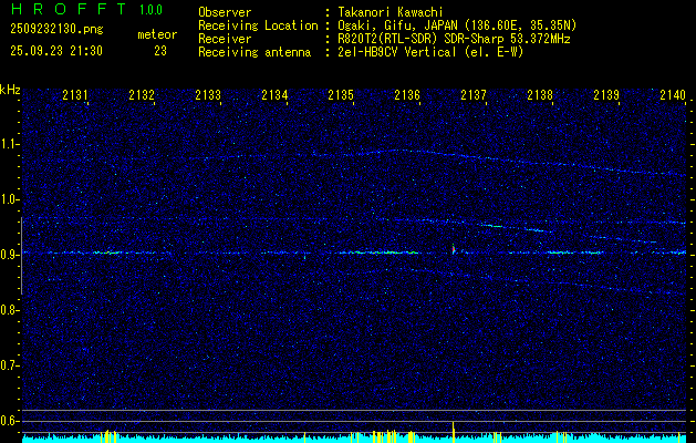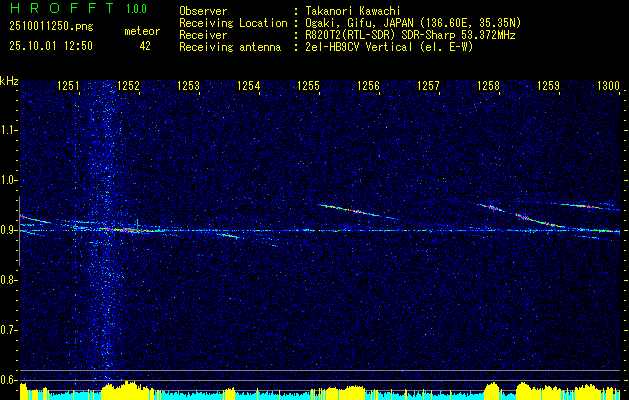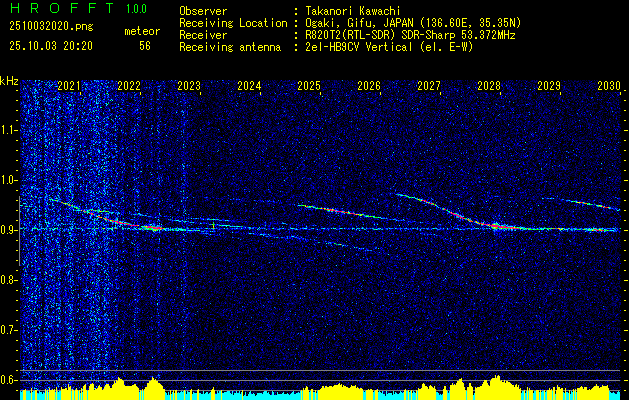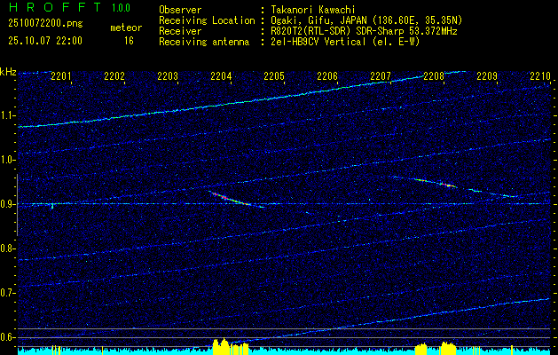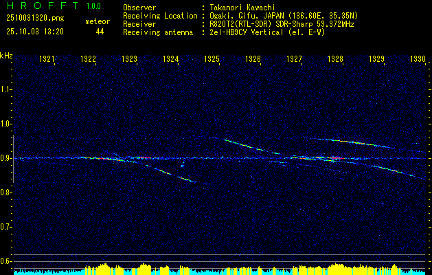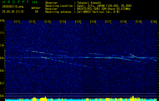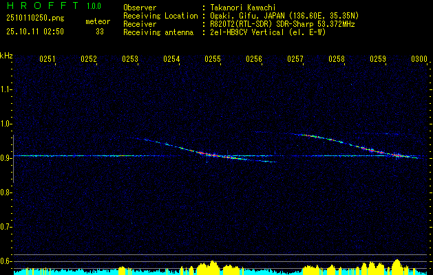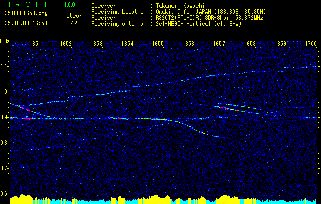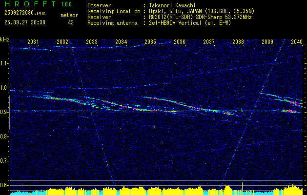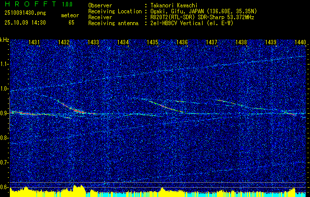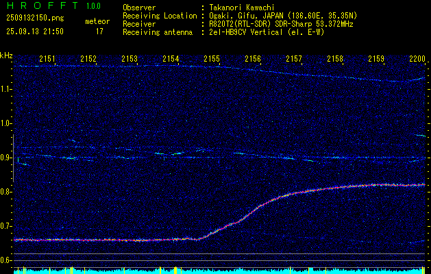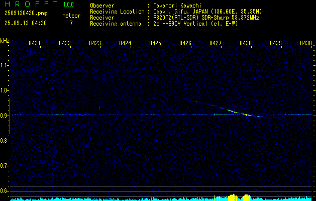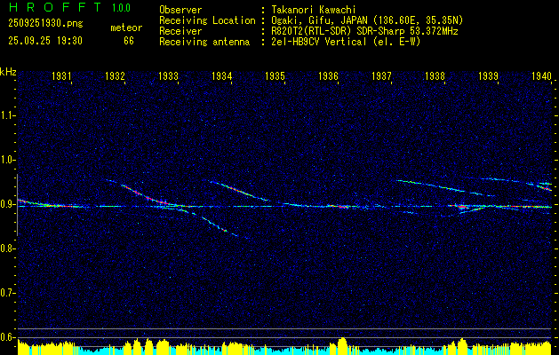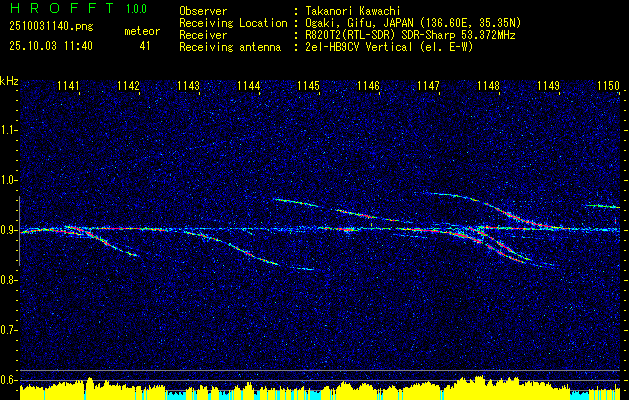 0.9kHz附近に発生している『点』または『塊』が流星によるエコーです.