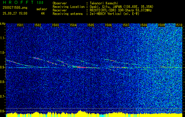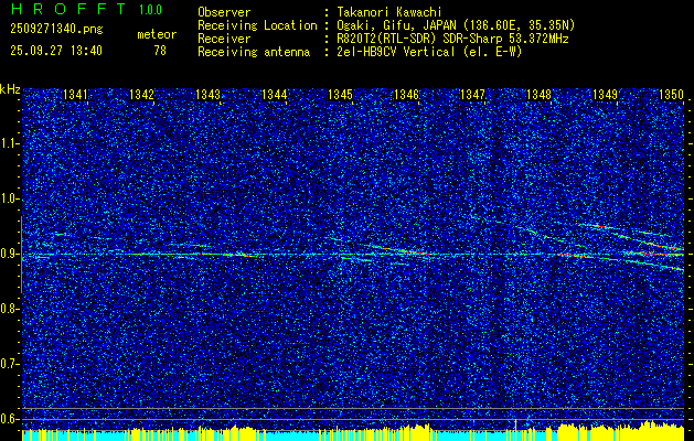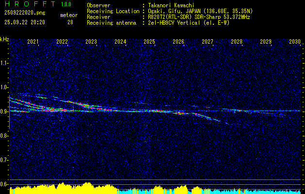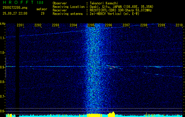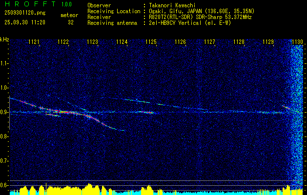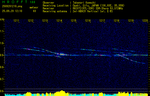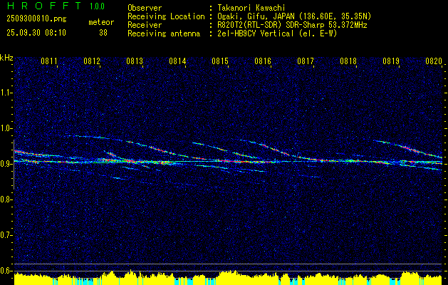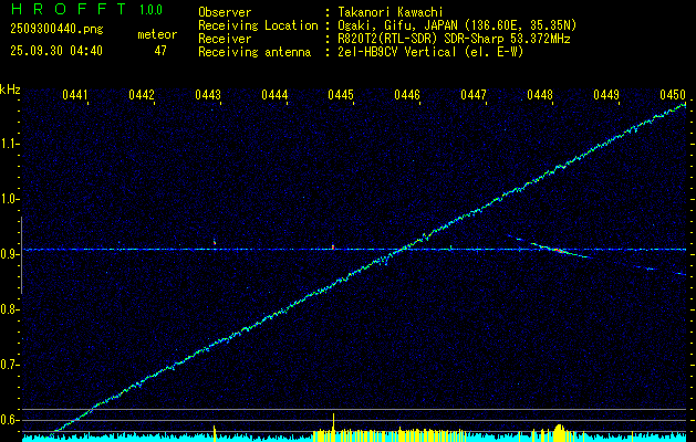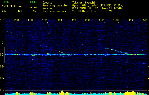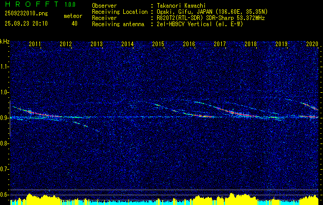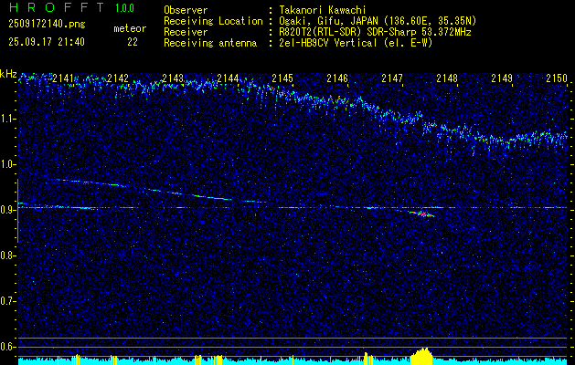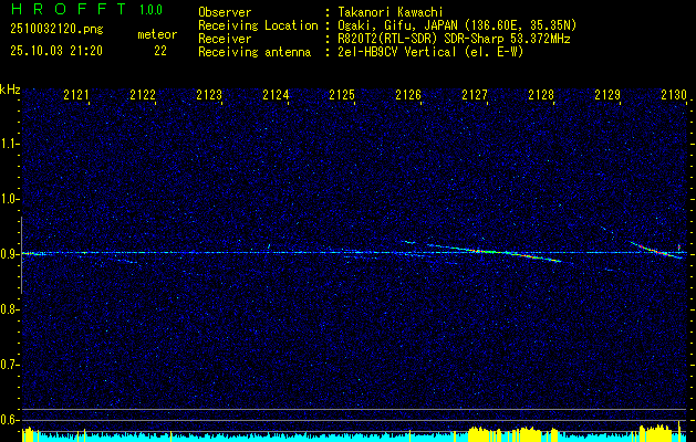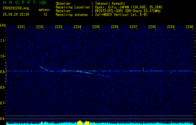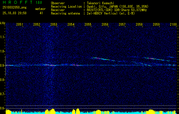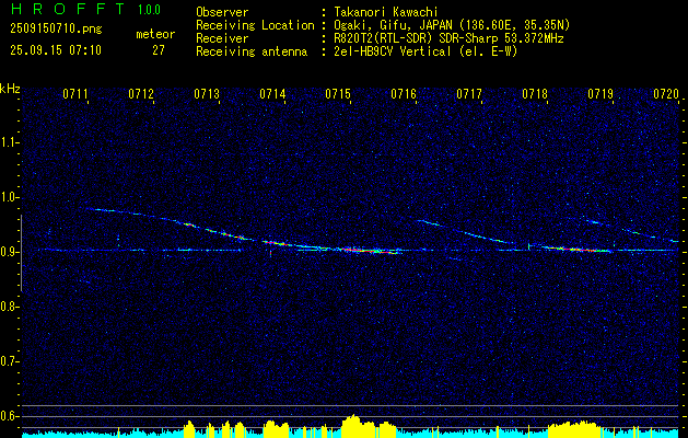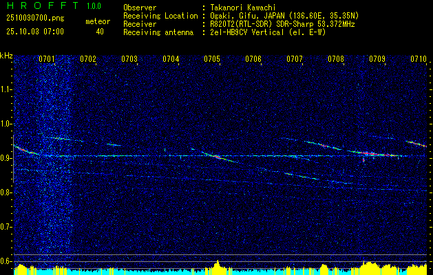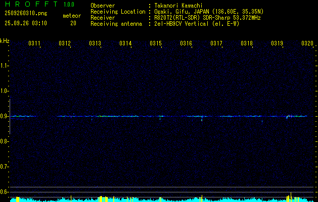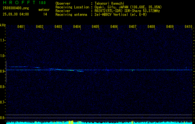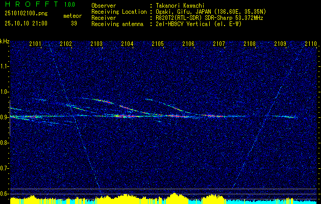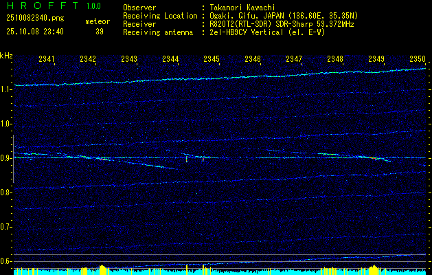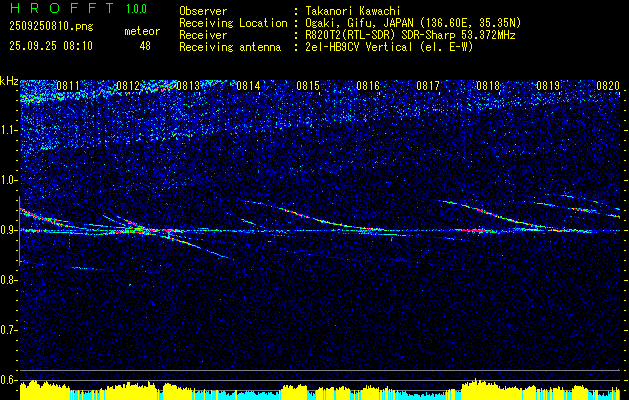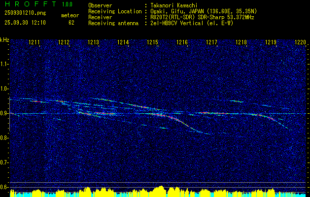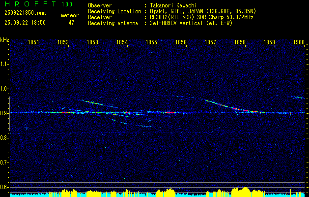 0.9kHz附近に発生している『点』または『塊』が流星によるエコーです.