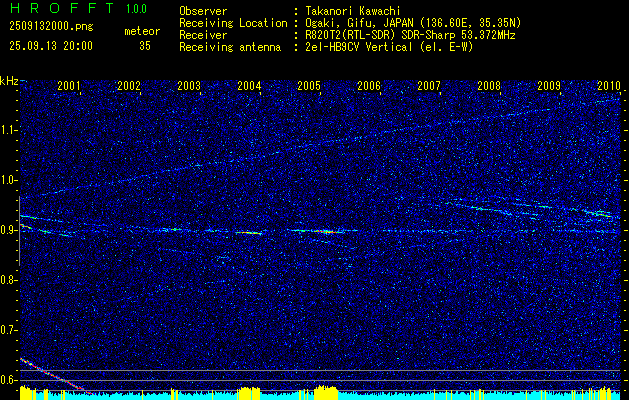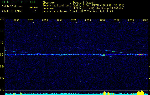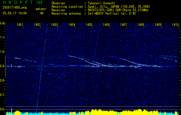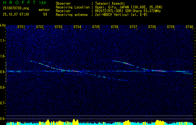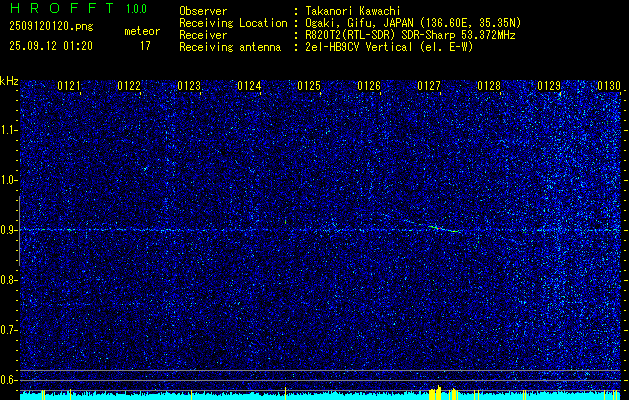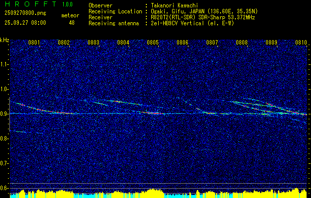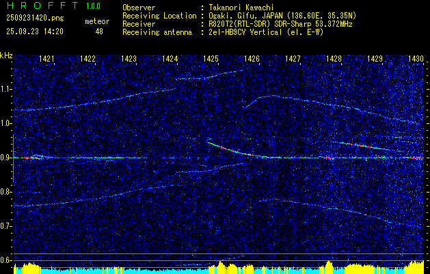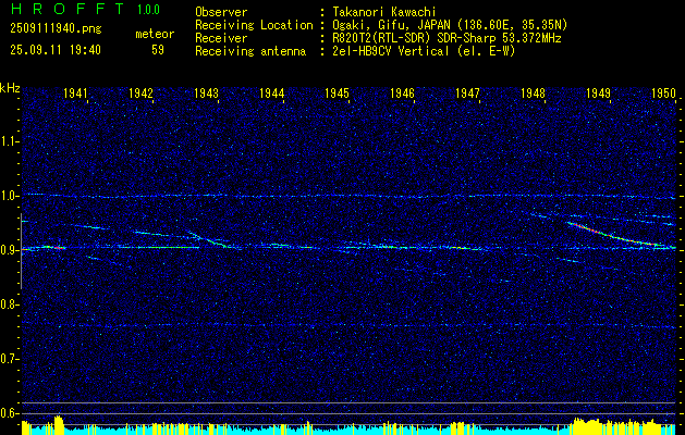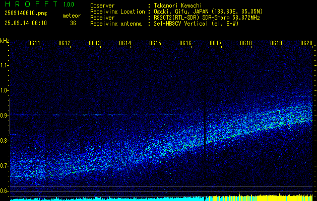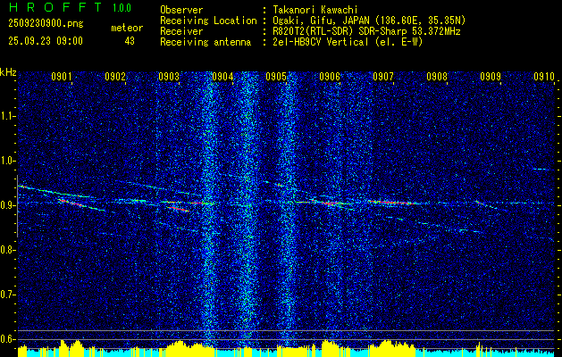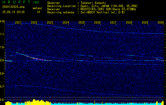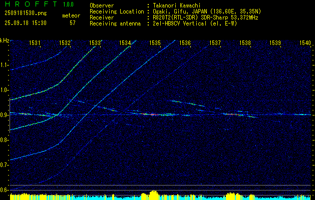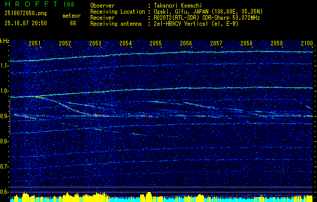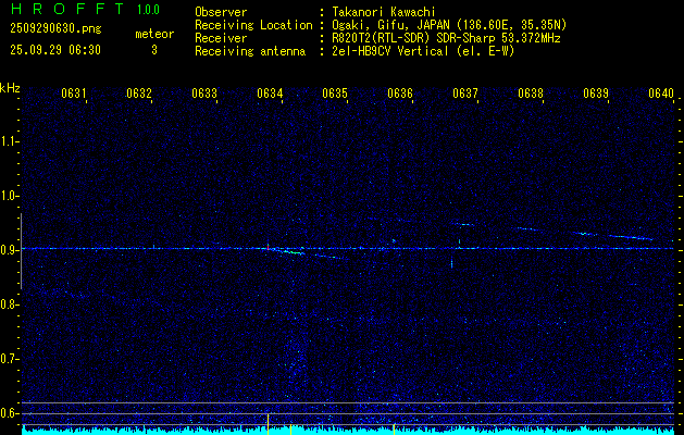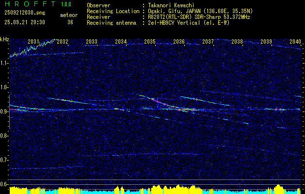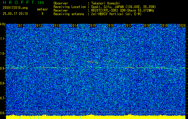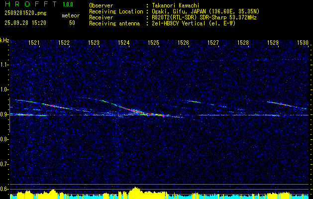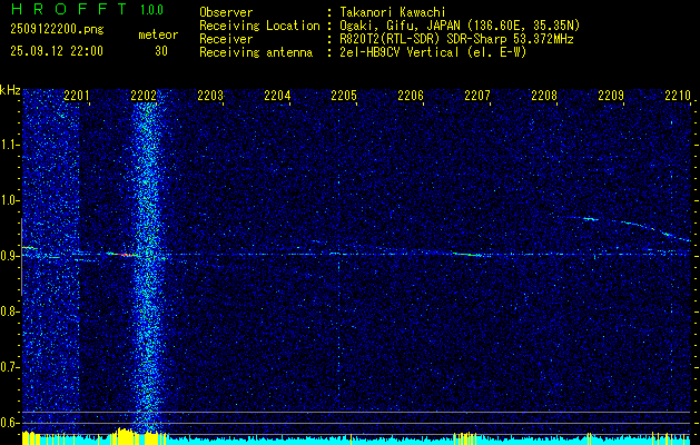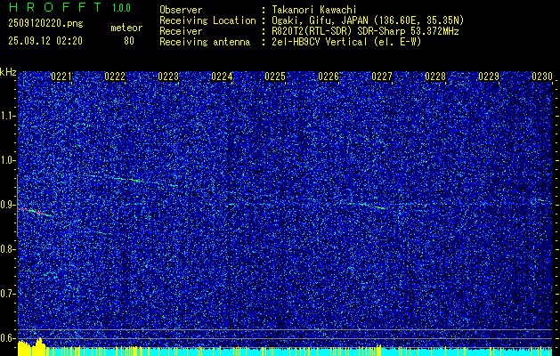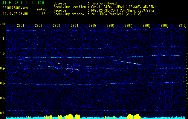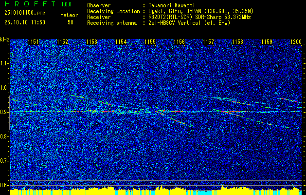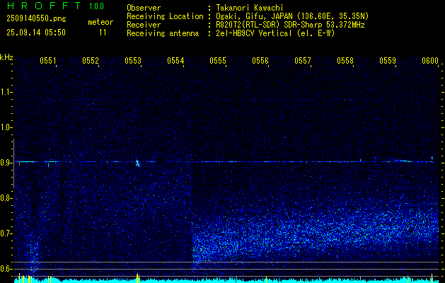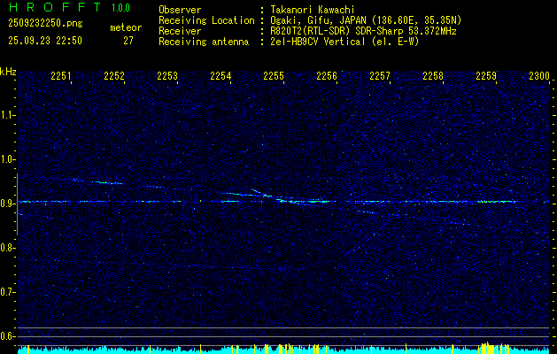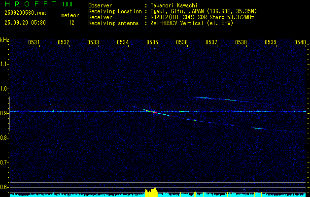 0.9kHz附近に発生している『点』または『塊』が流星によるエコーです.
