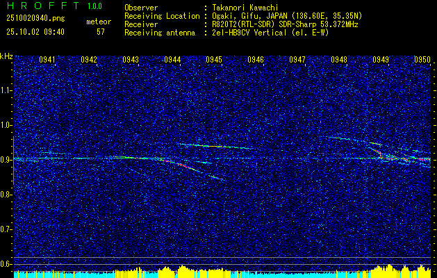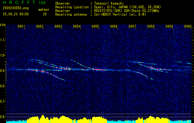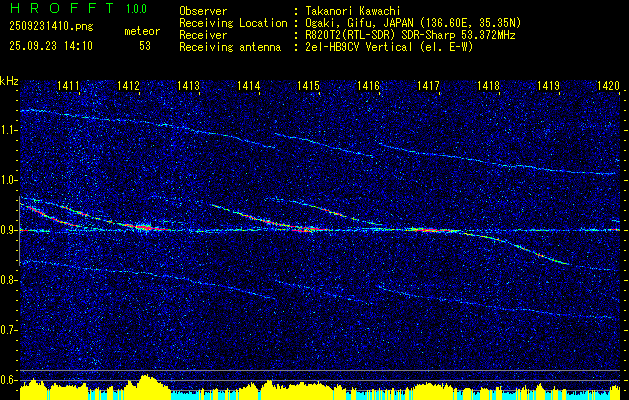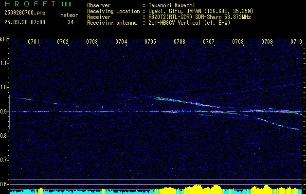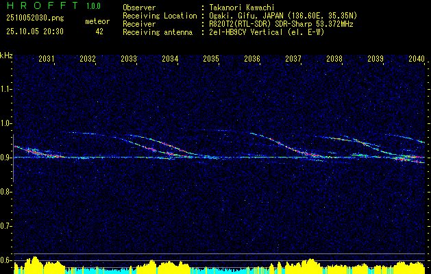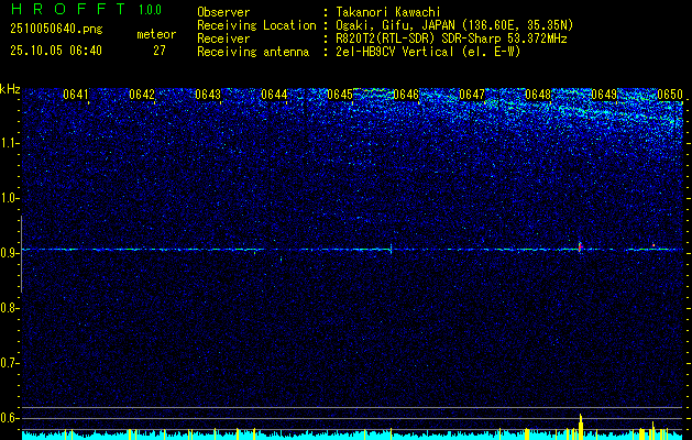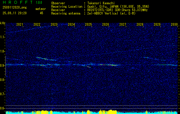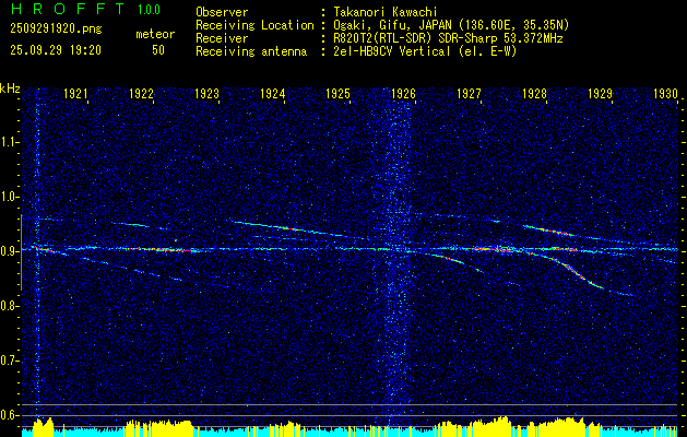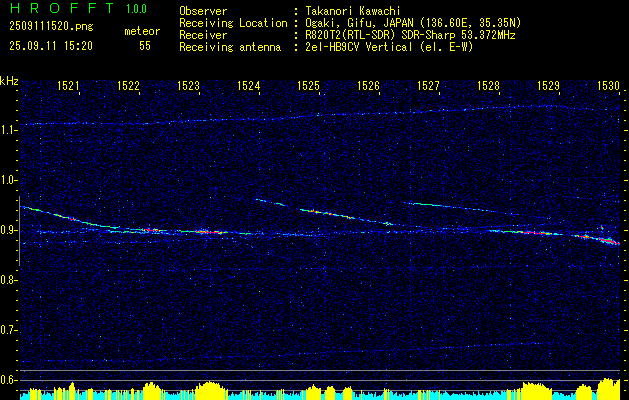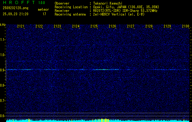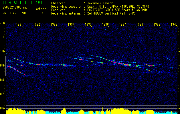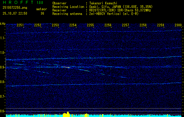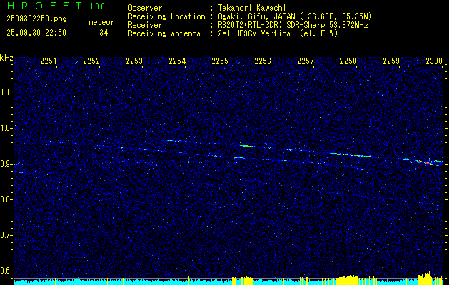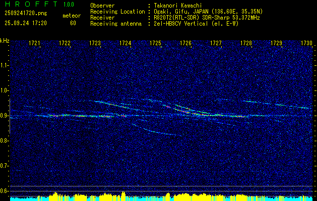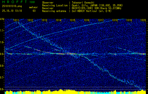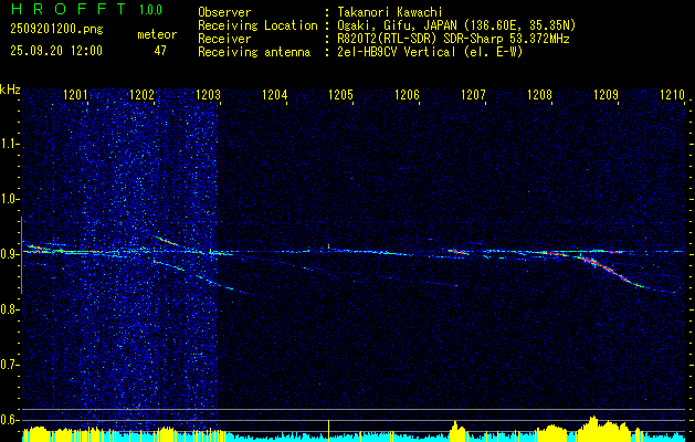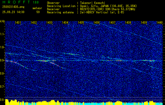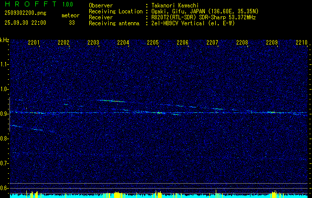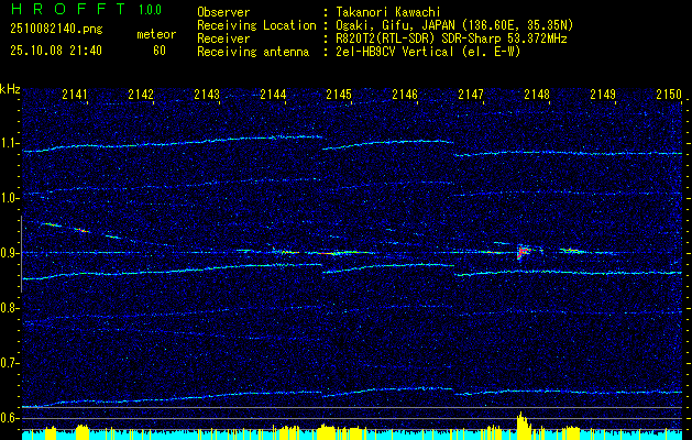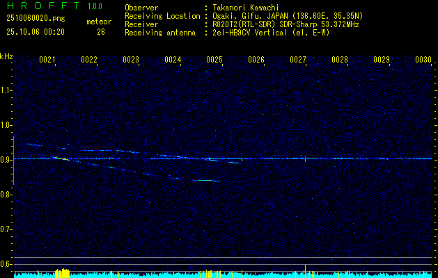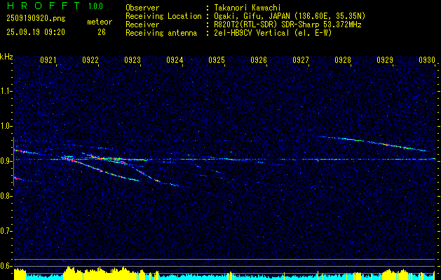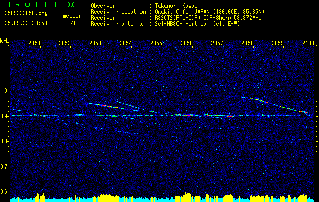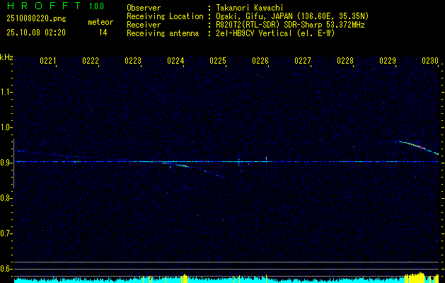 0.9kHz附近に発生している『点』または『塊』が流星によるエコーです.