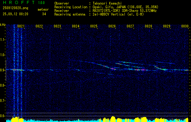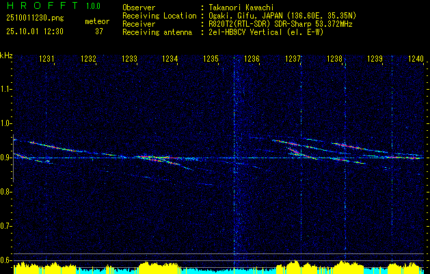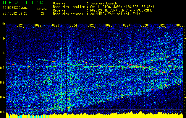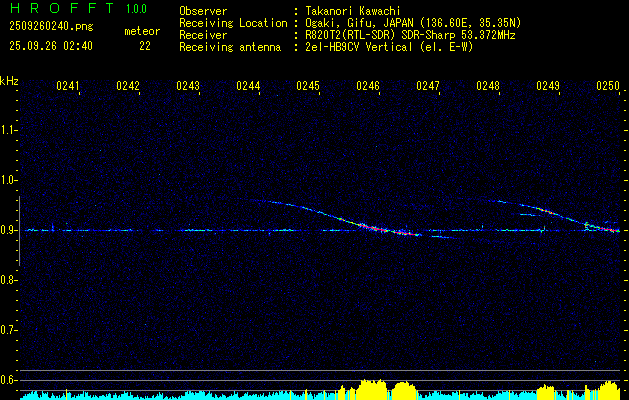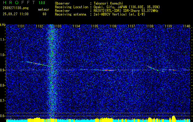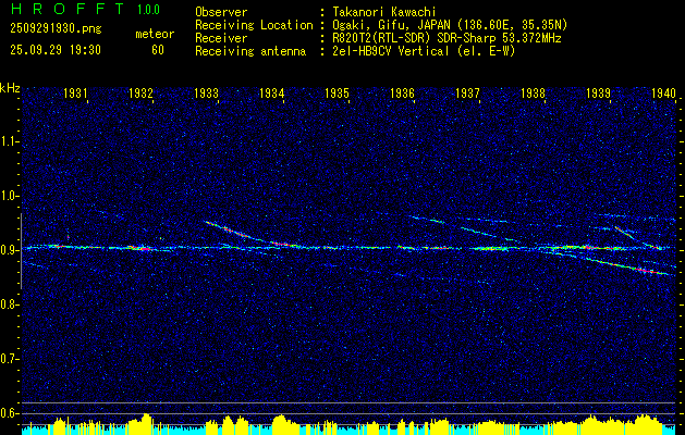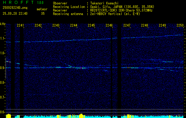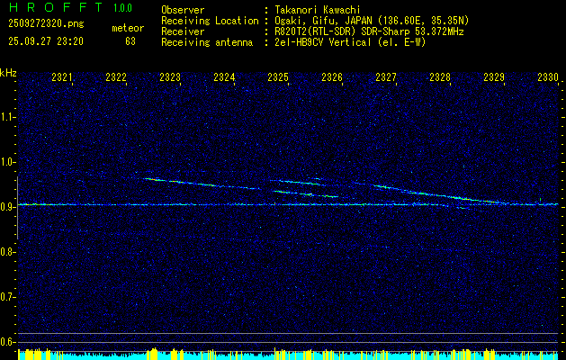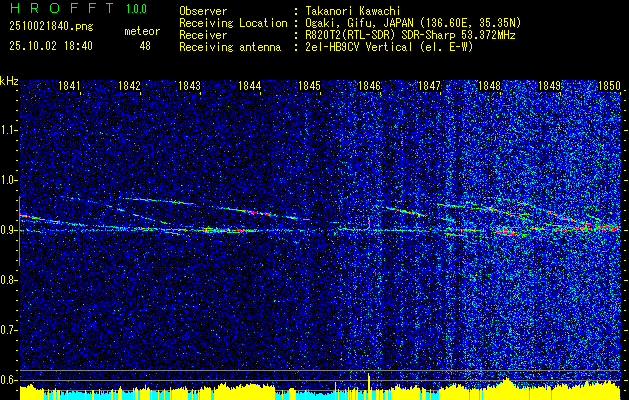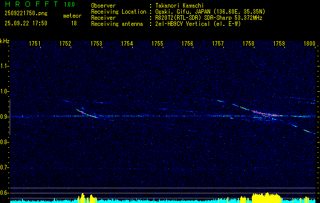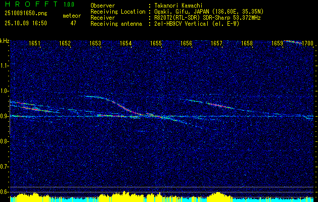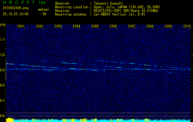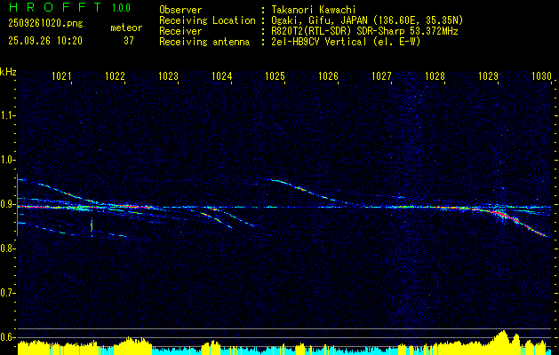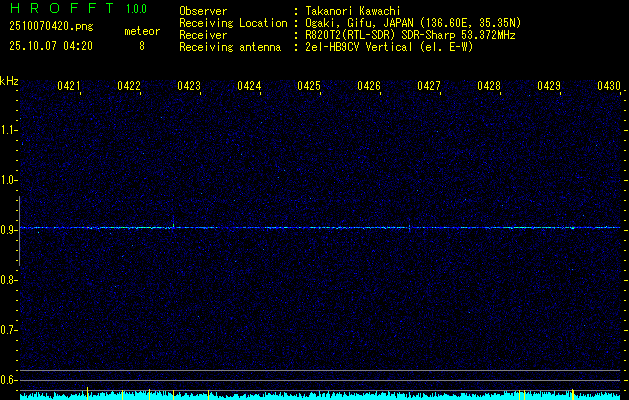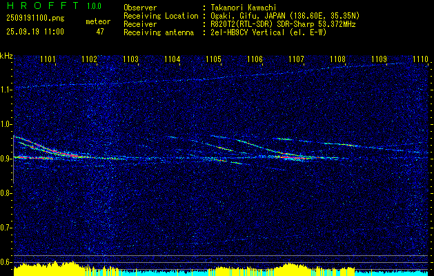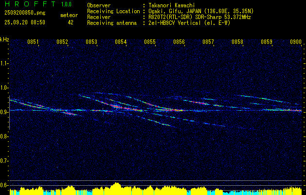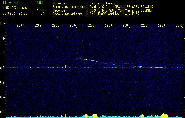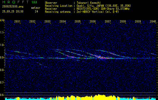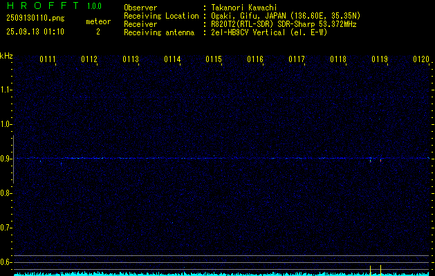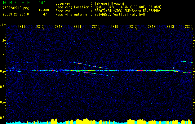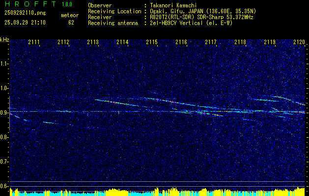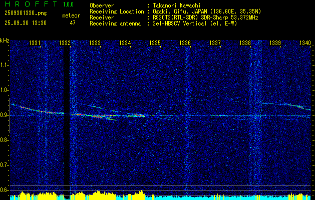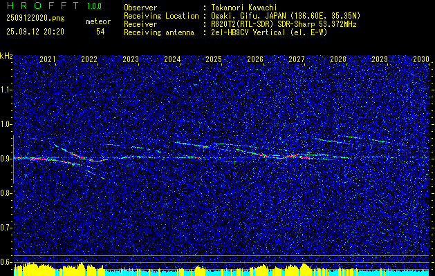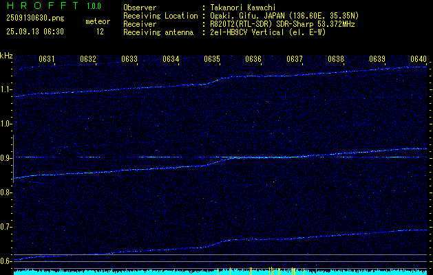 0.9kHz附近に発生している『点』または『塊』が流星によるエコーです.