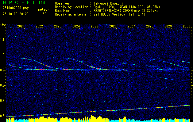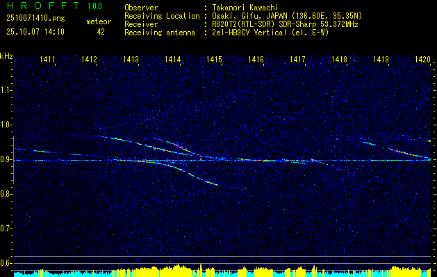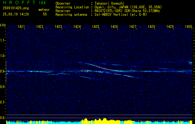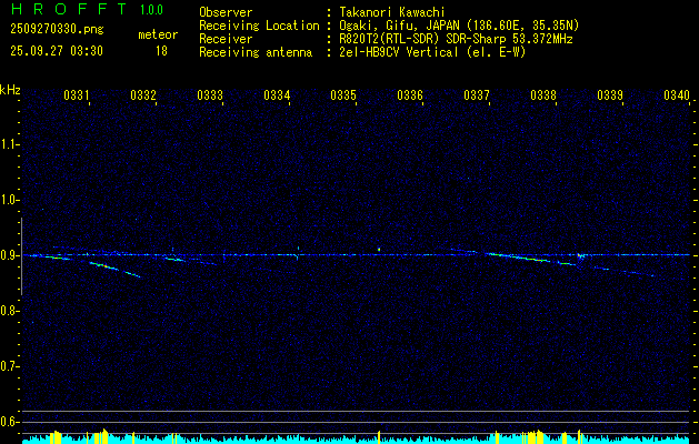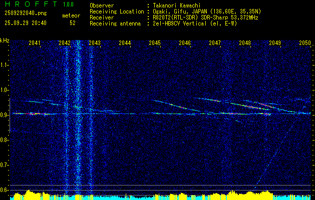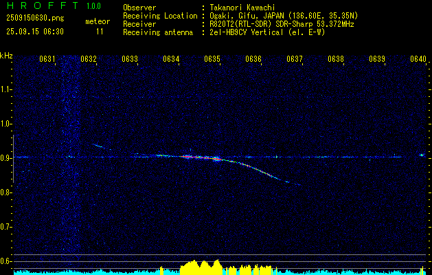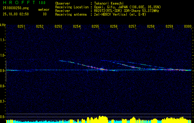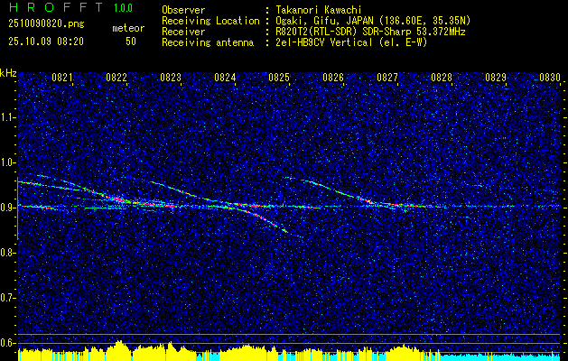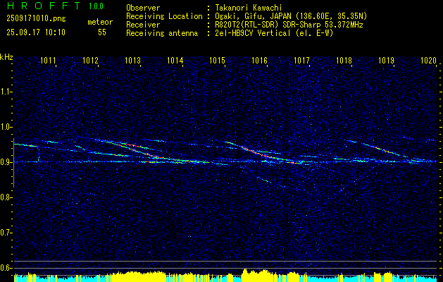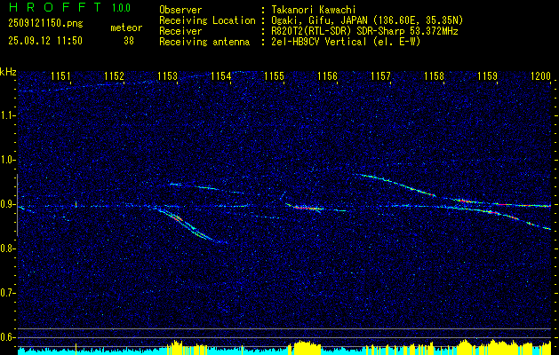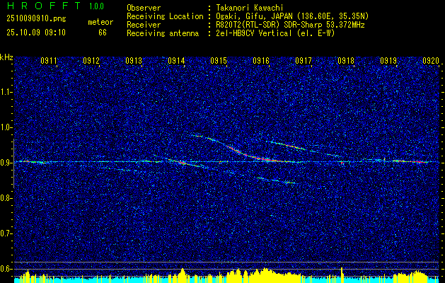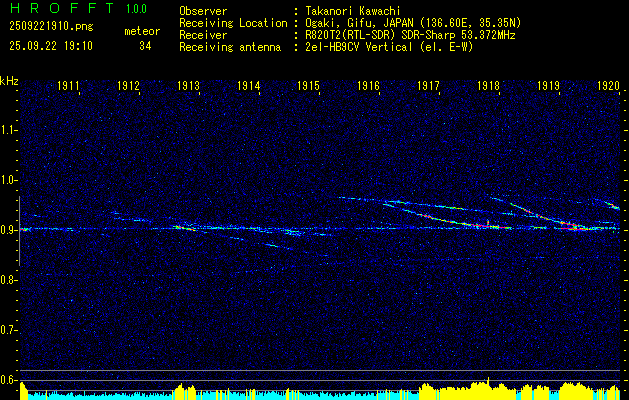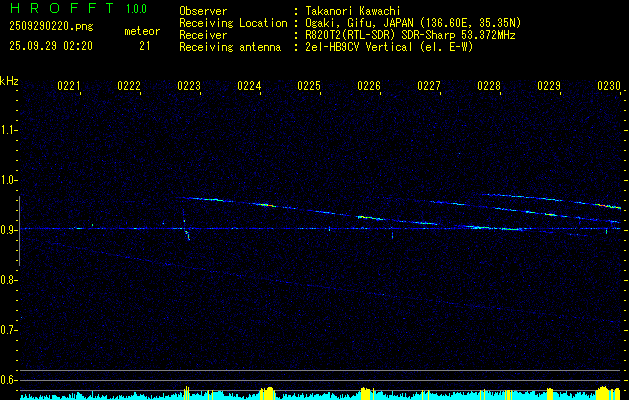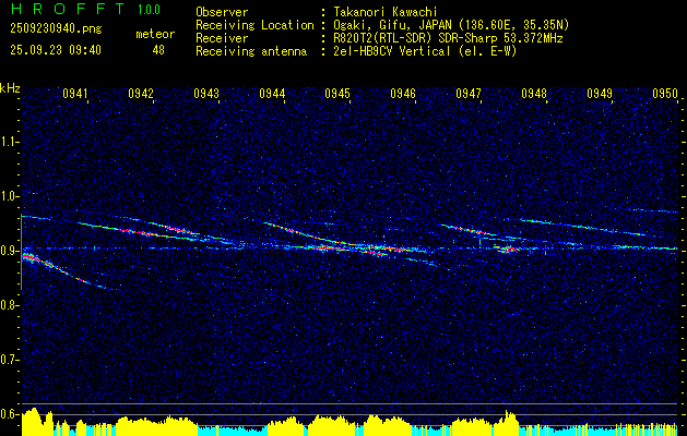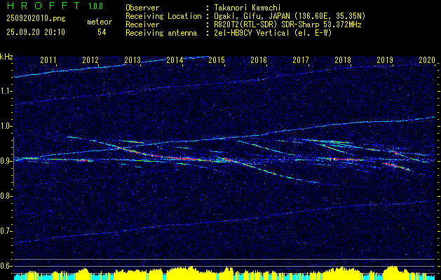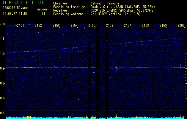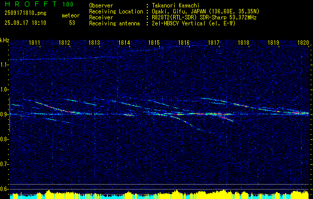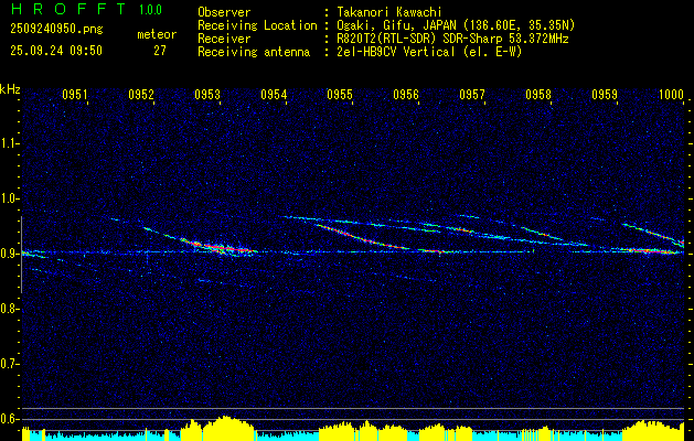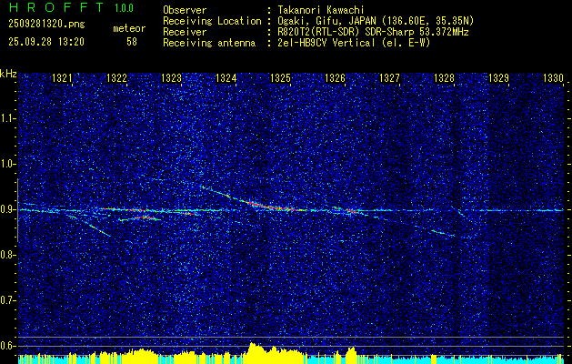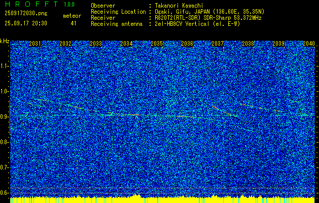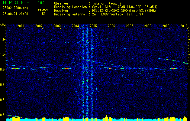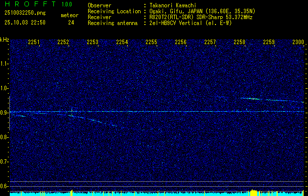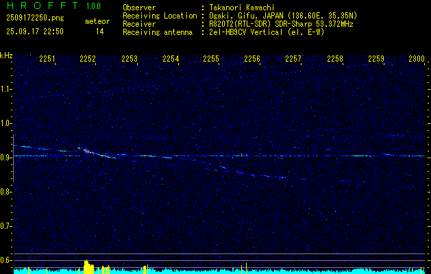 0.9kHz附近に発生している『点』または『塊』が流星によるエコーです.