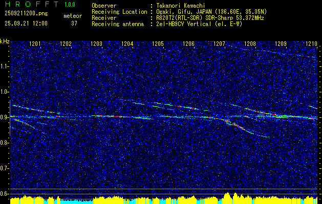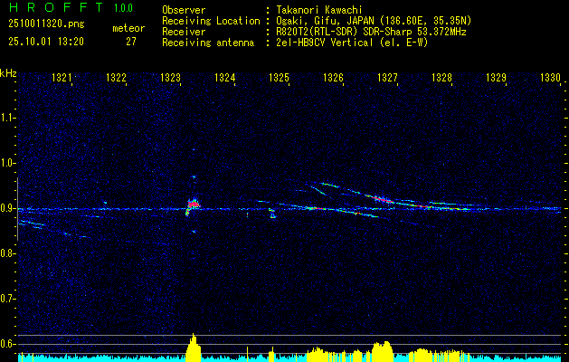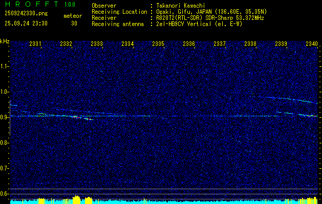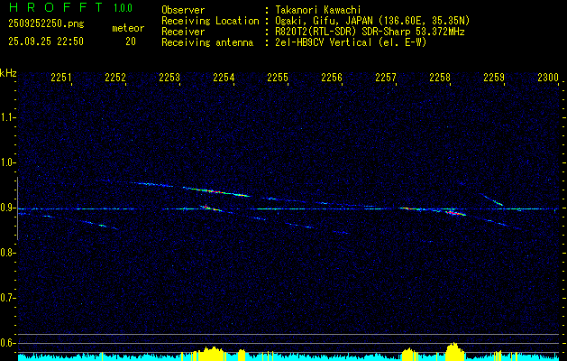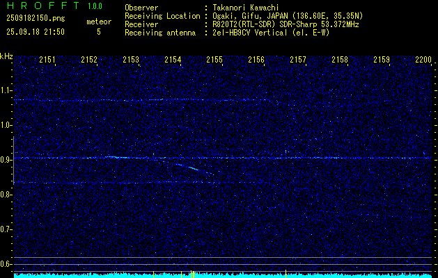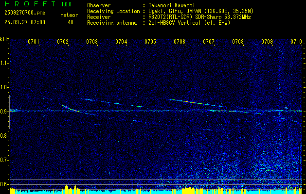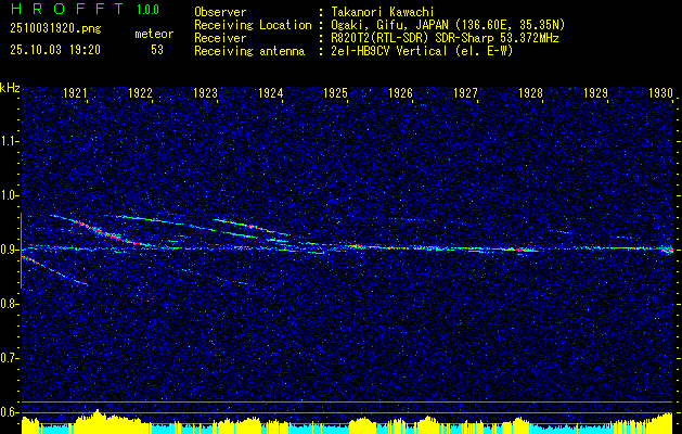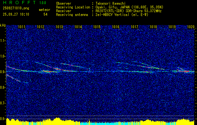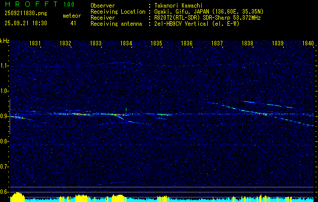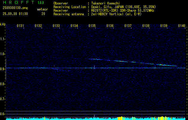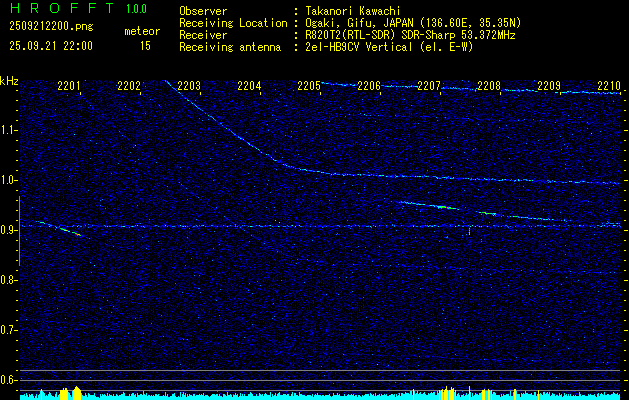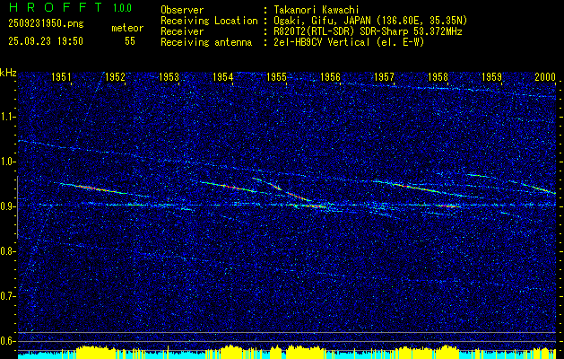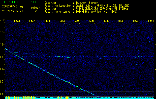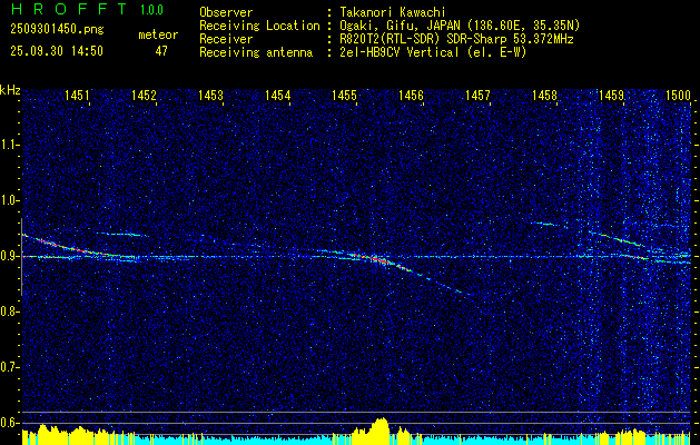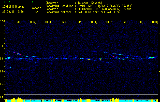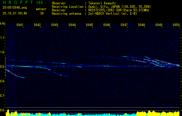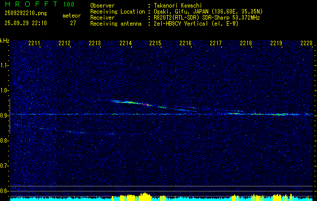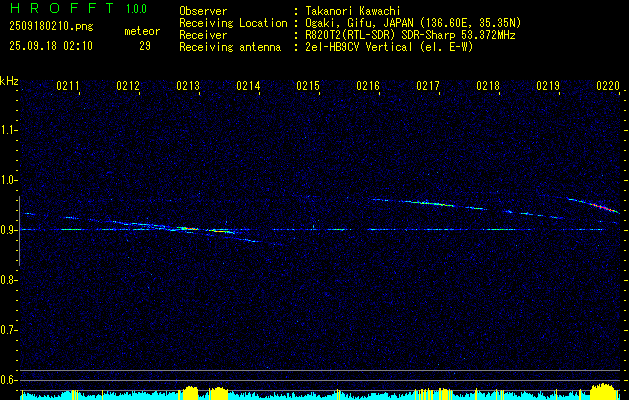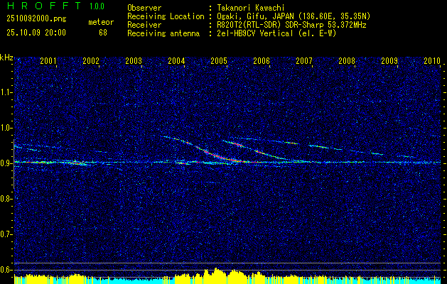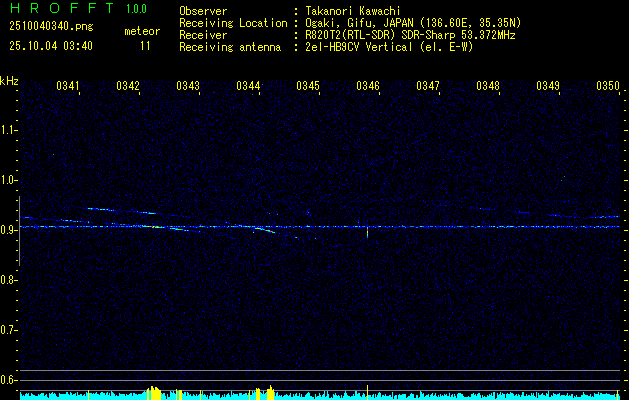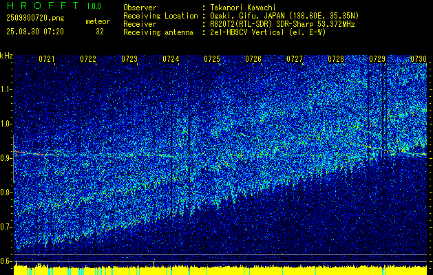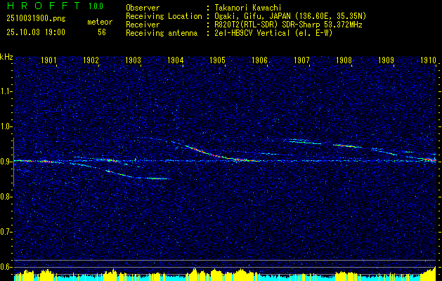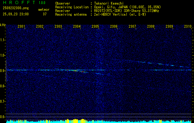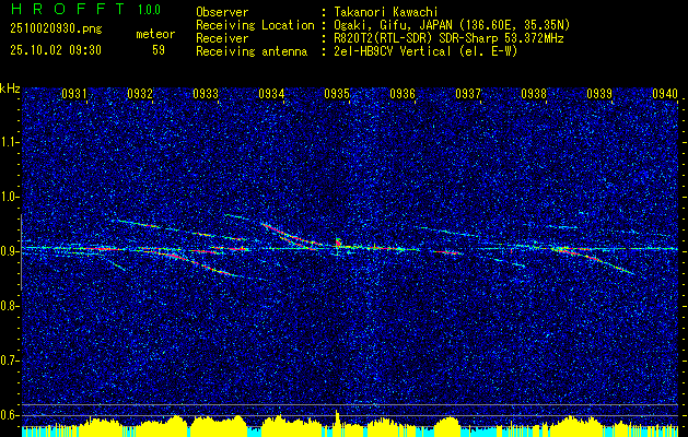 0.9kHz附近に発生している『点』または『塊』が流星によるエコーです.