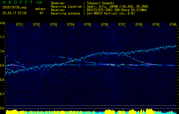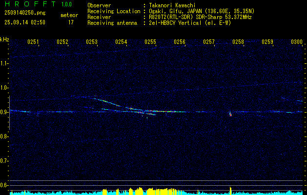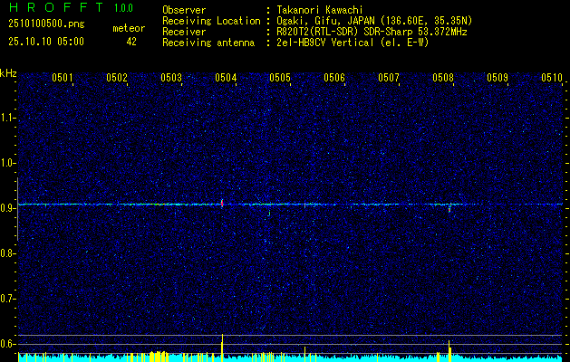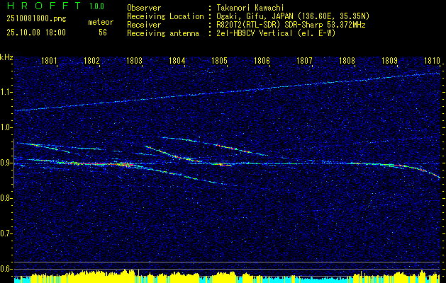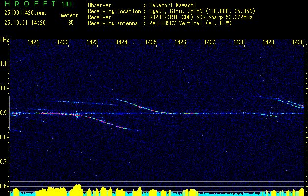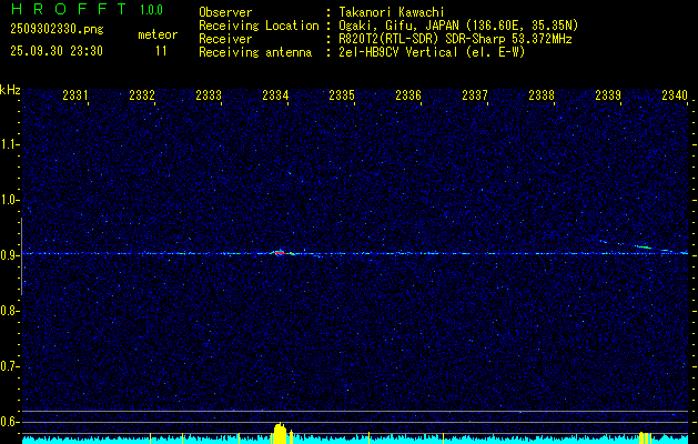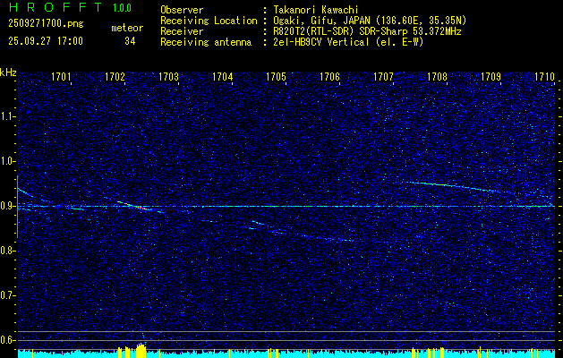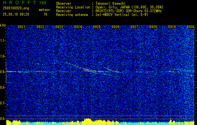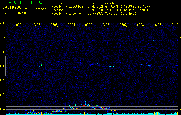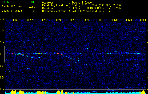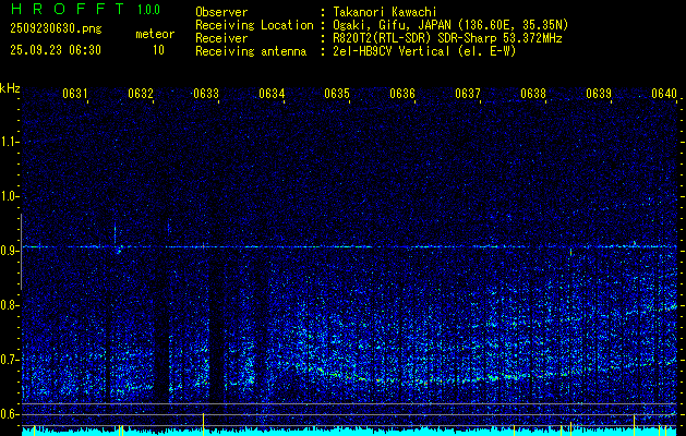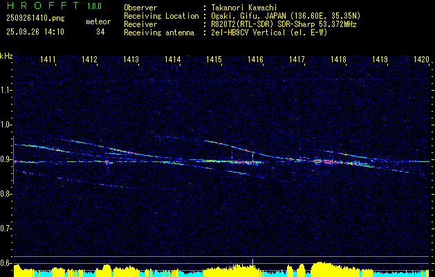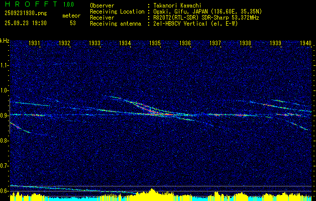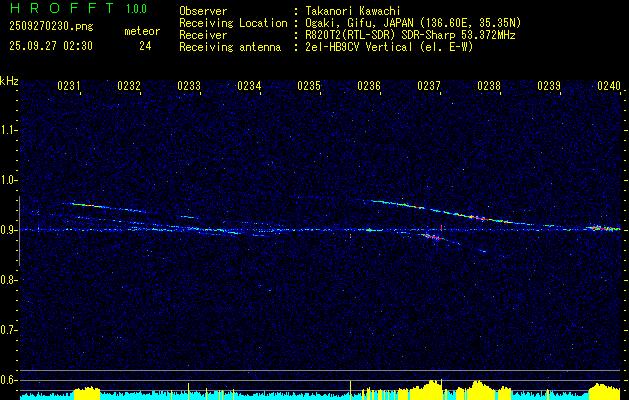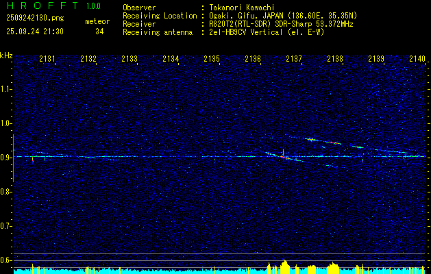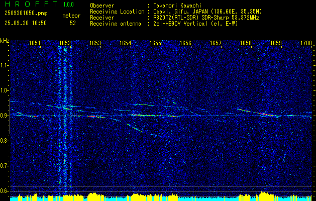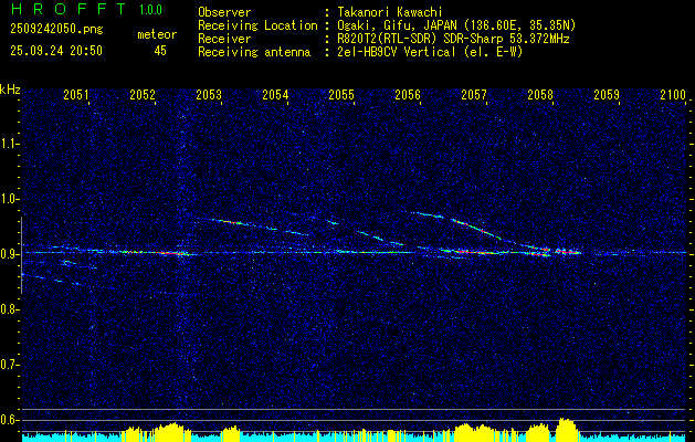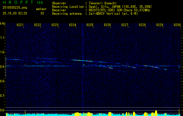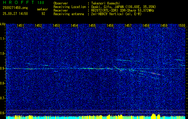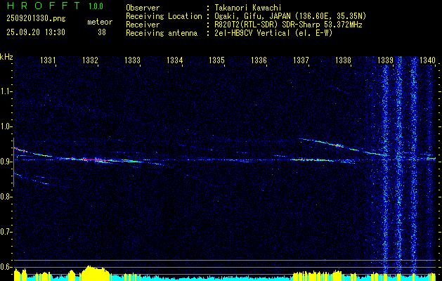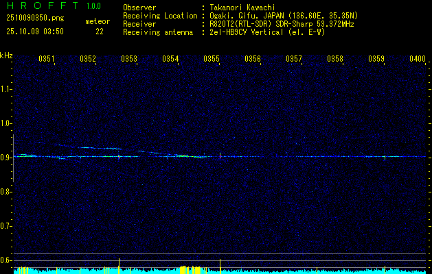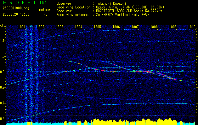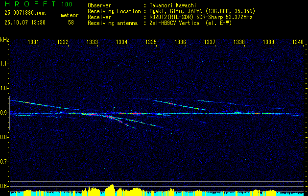 0.9kHz附近に発生している『点』または『塊』が流星によるエコーです.