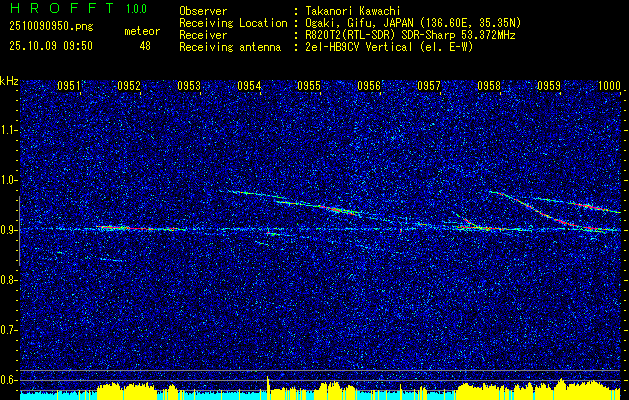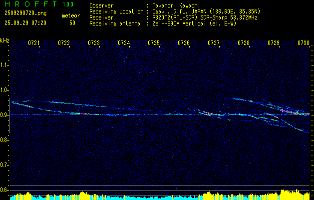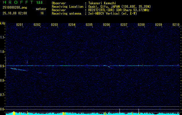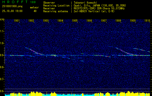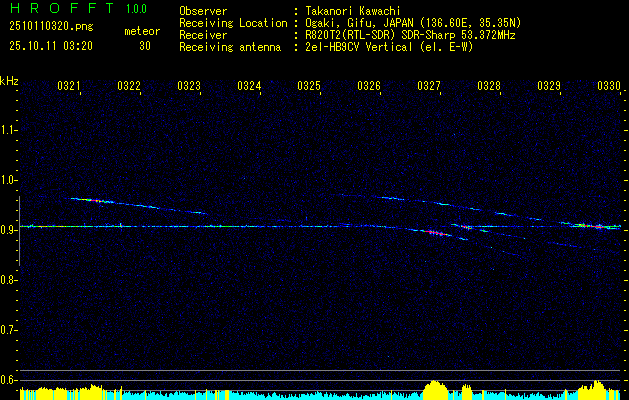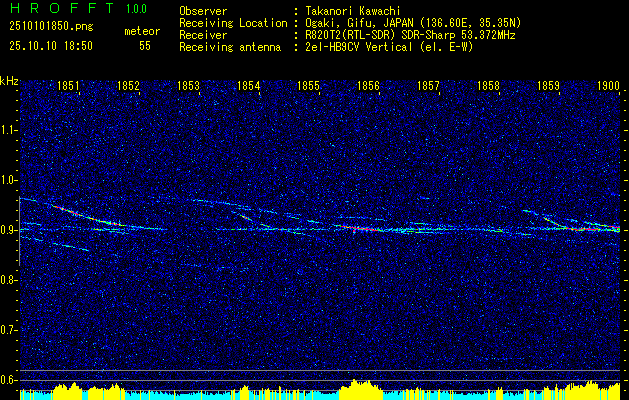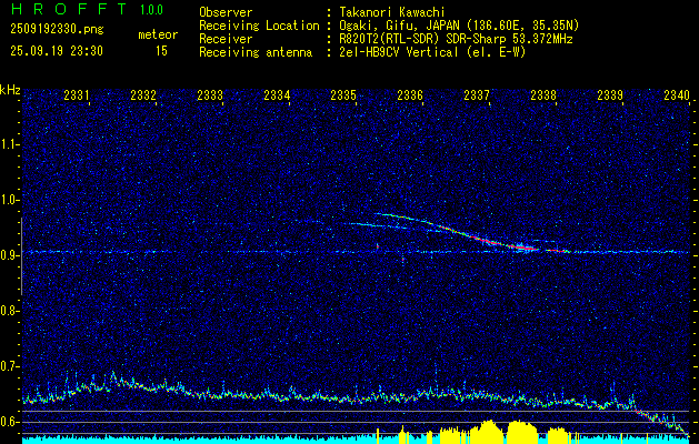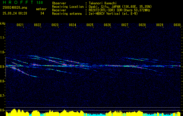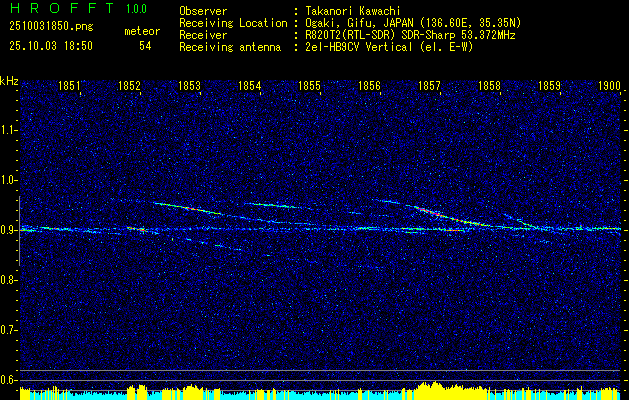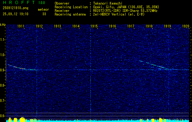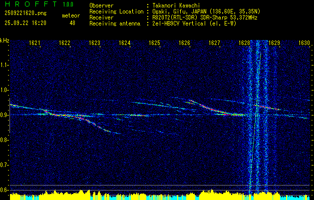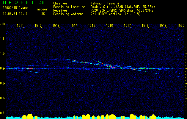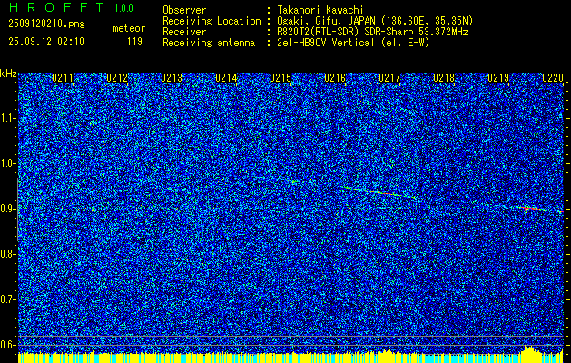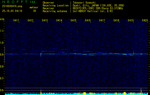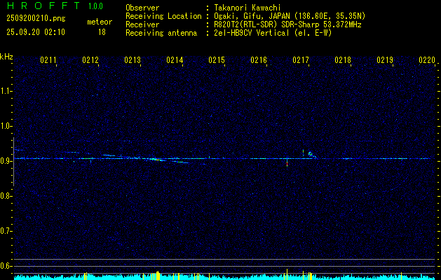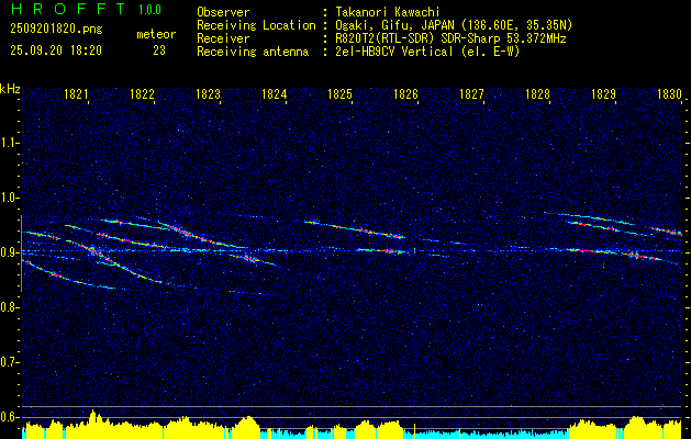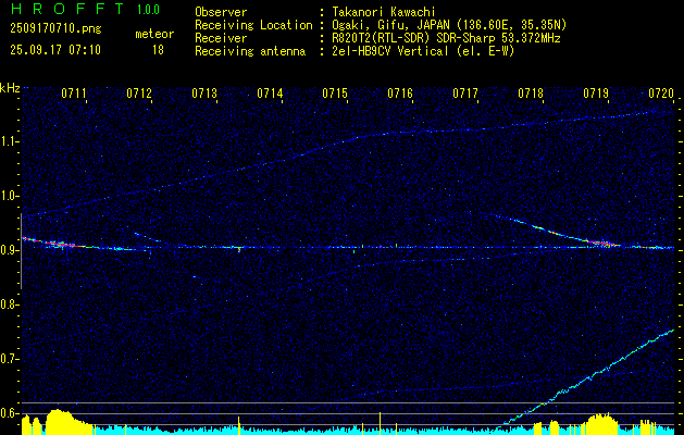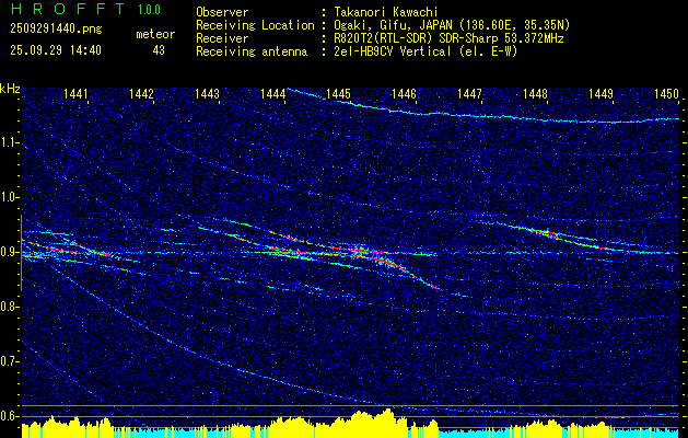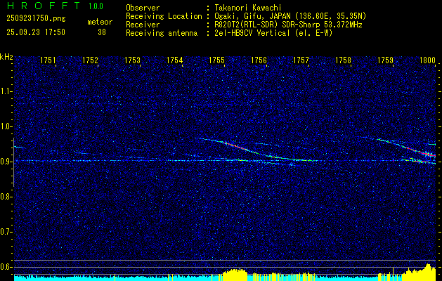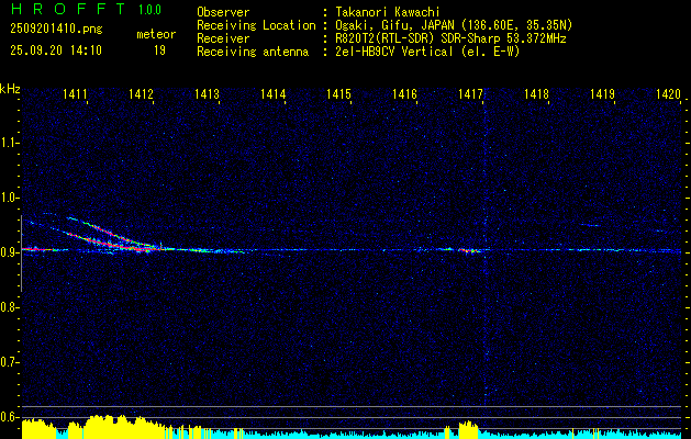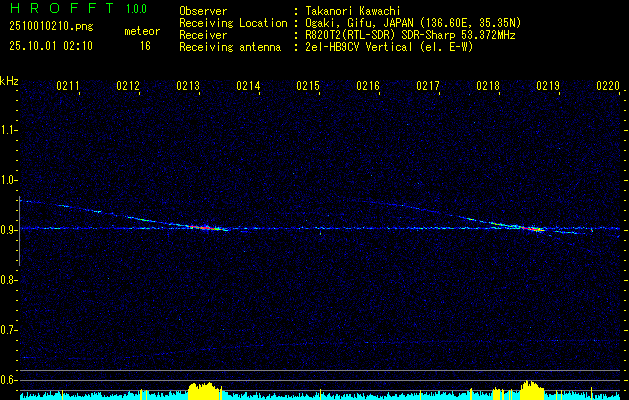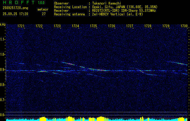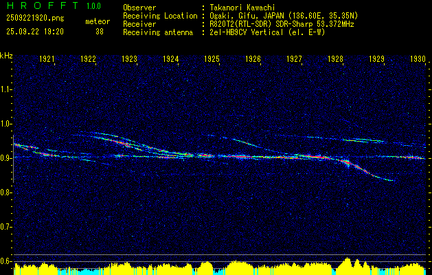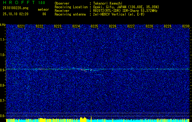 0.9kHz附近に発生している『点』または『塊』が流星によるエコーです.