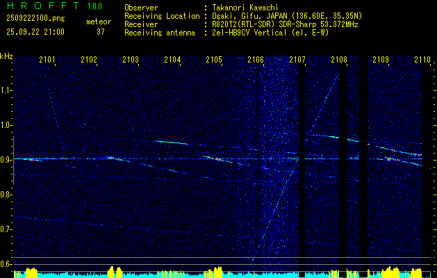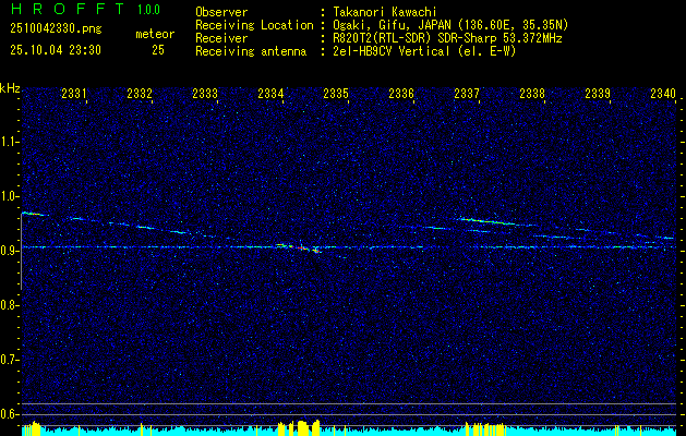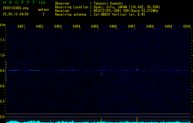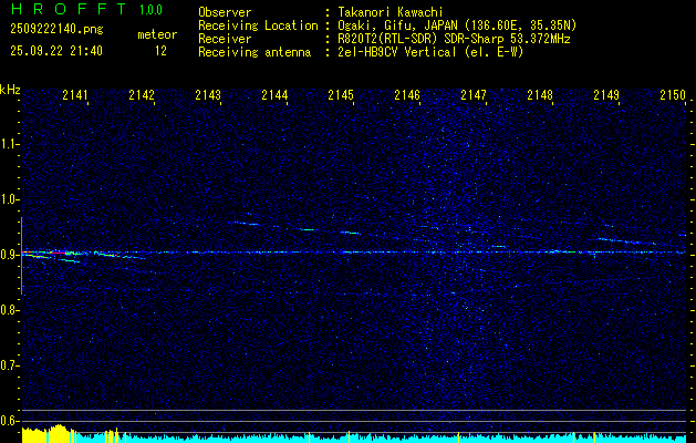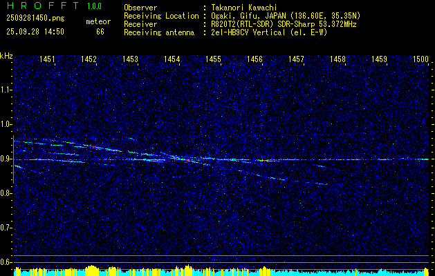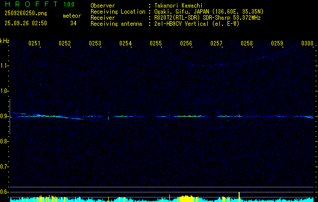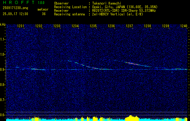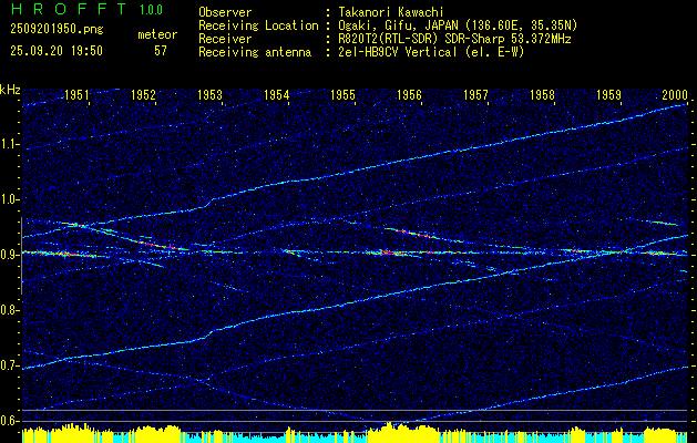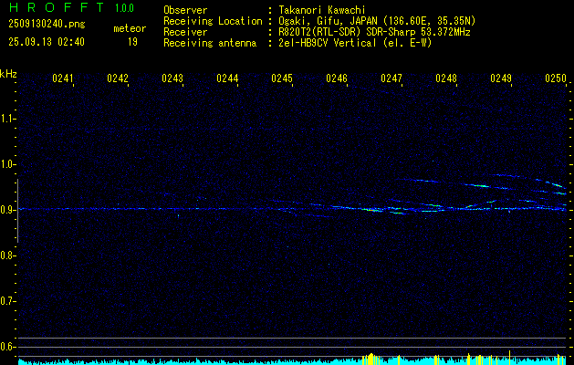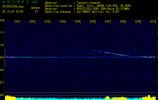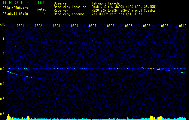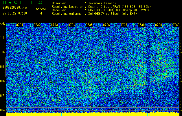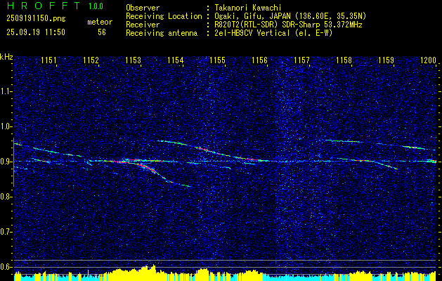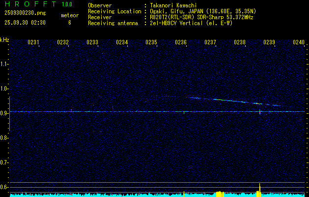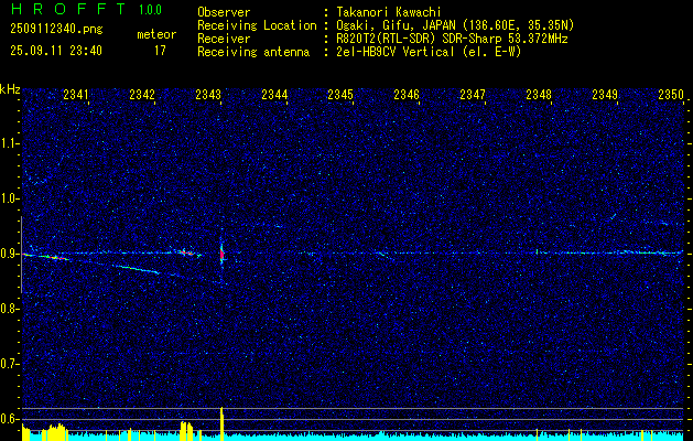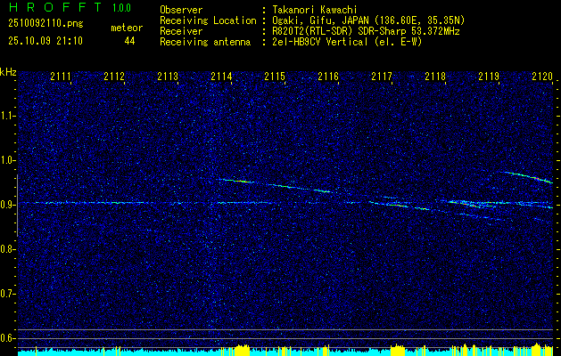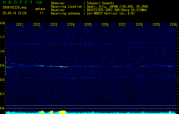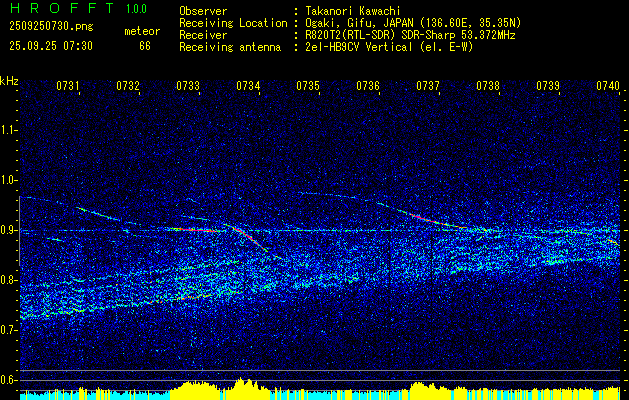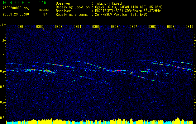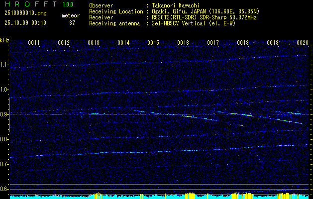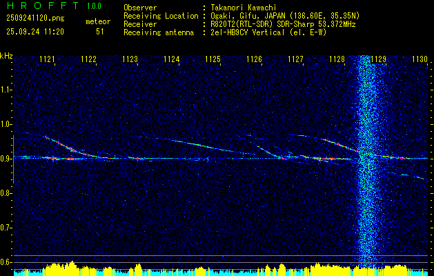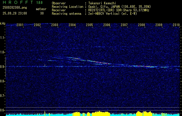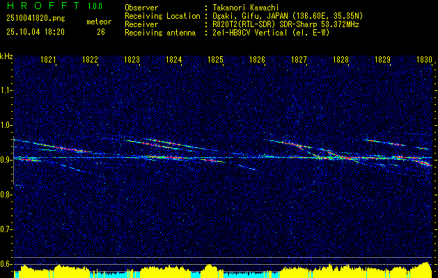 0.9kHz附近に発生している『点』または『塊』が流星によるエコーです.