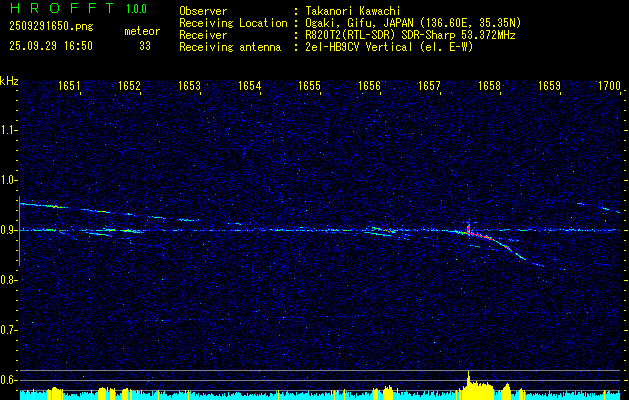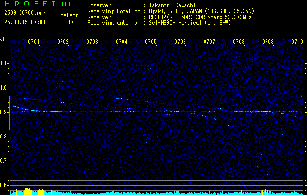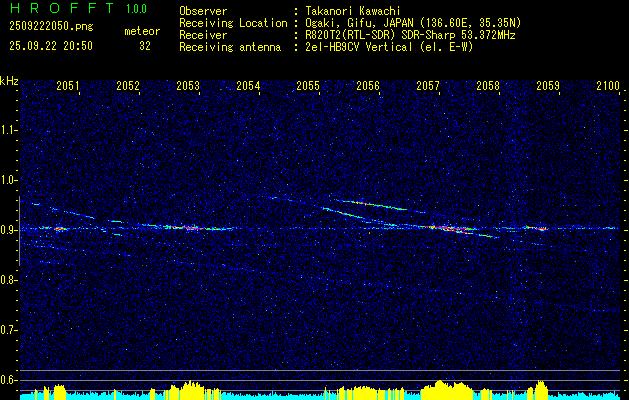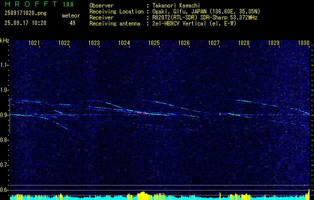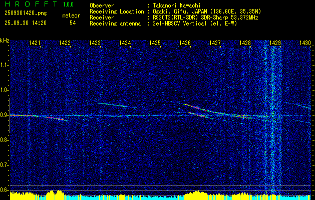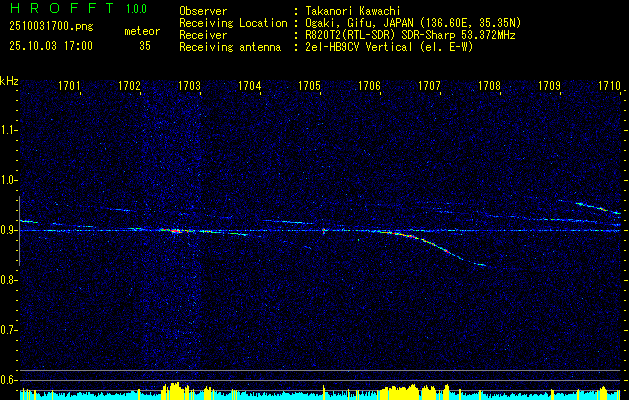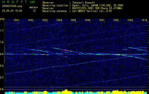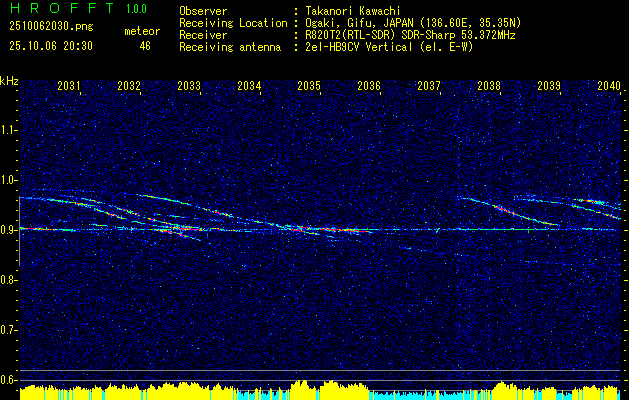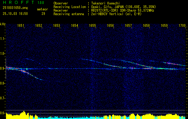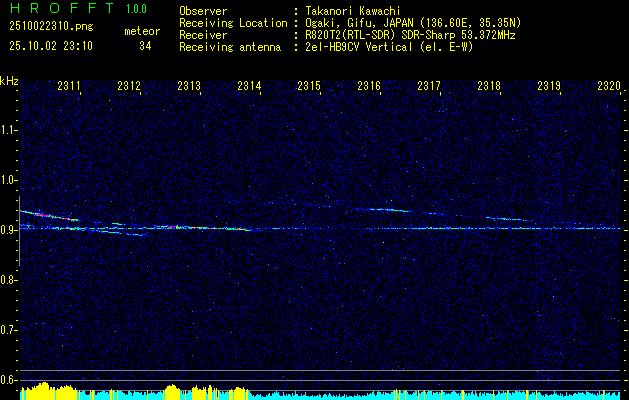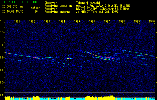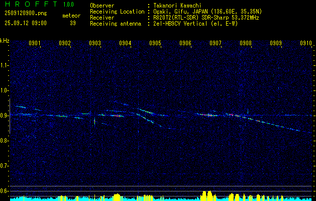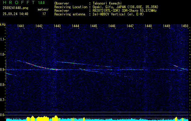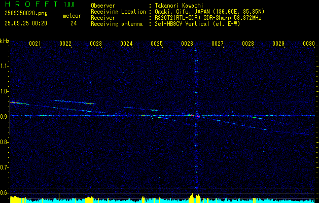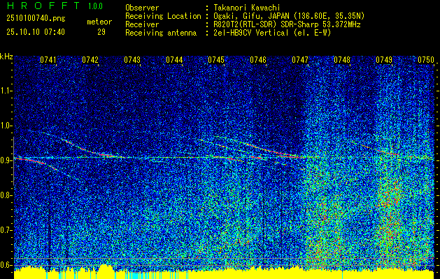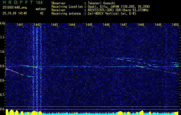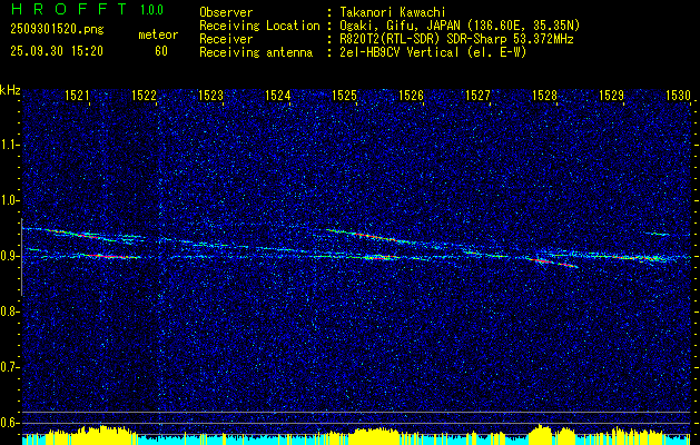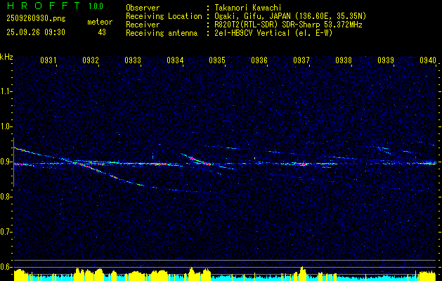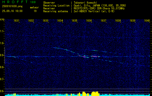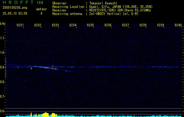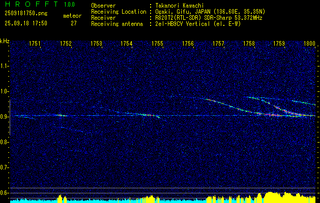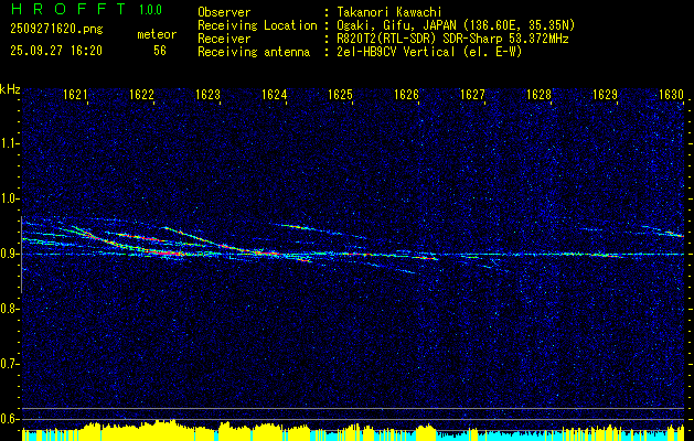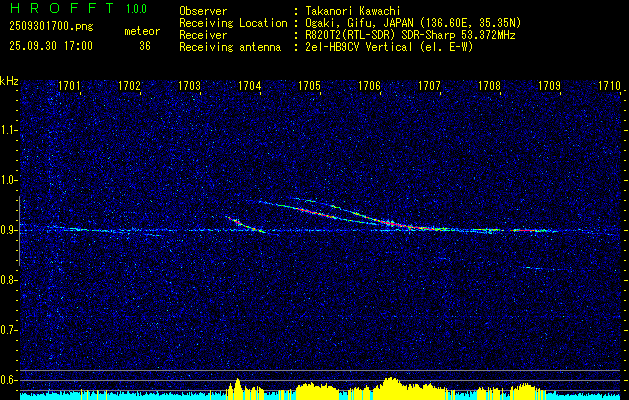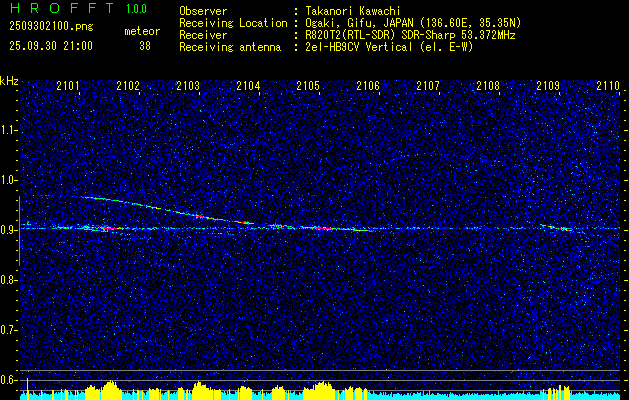 0.9kHz附近に発生している『点』または『塊』が流星によるエコーです.