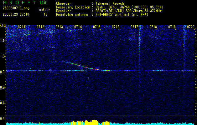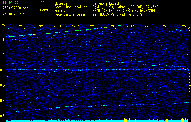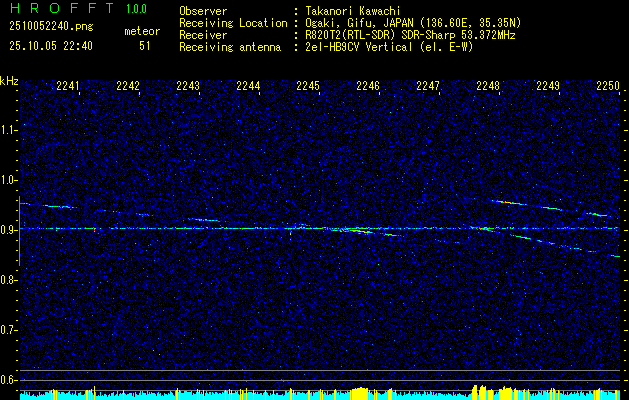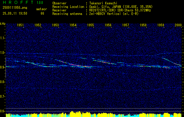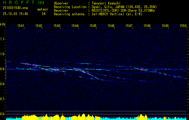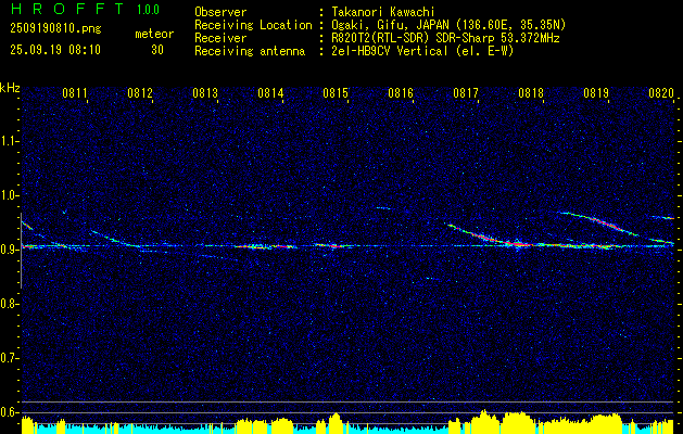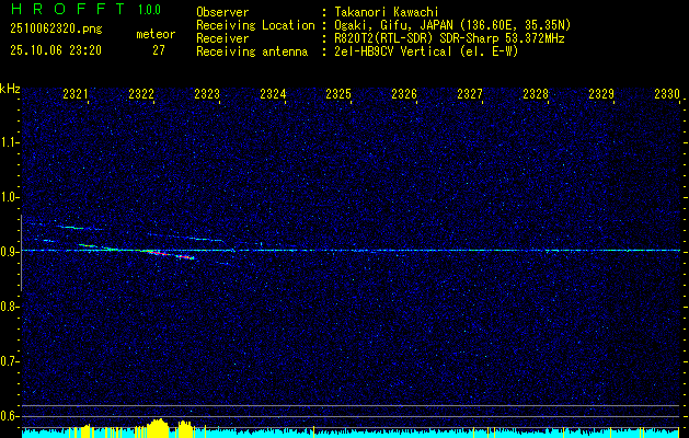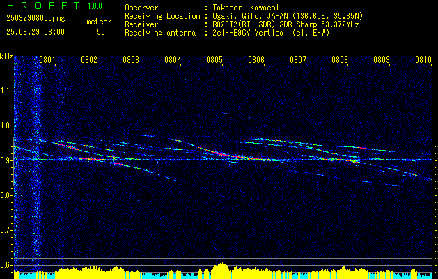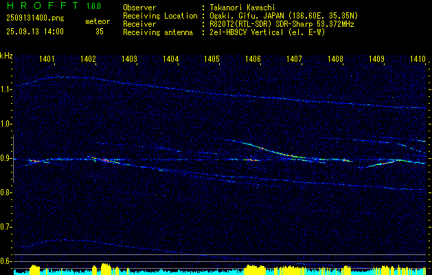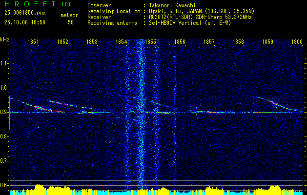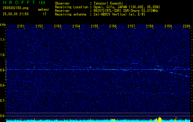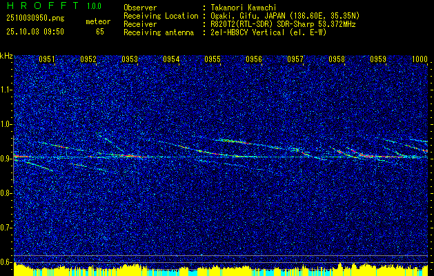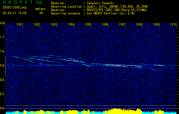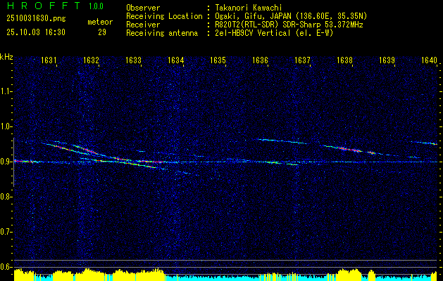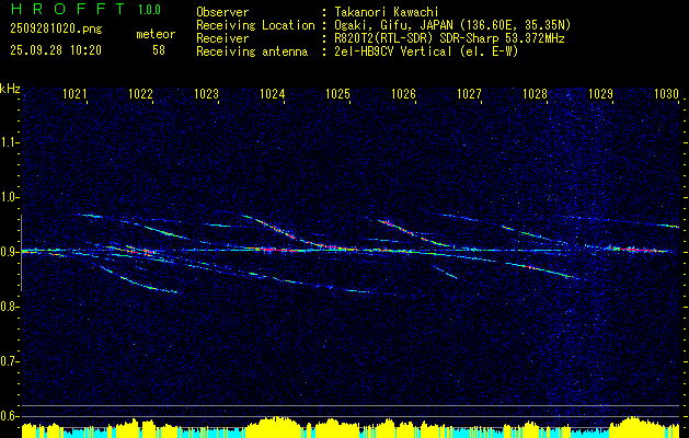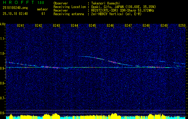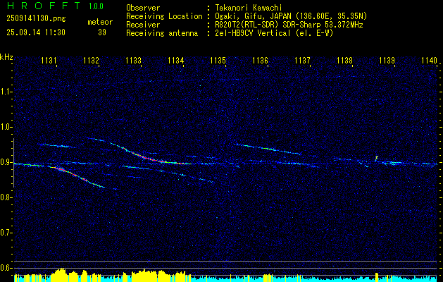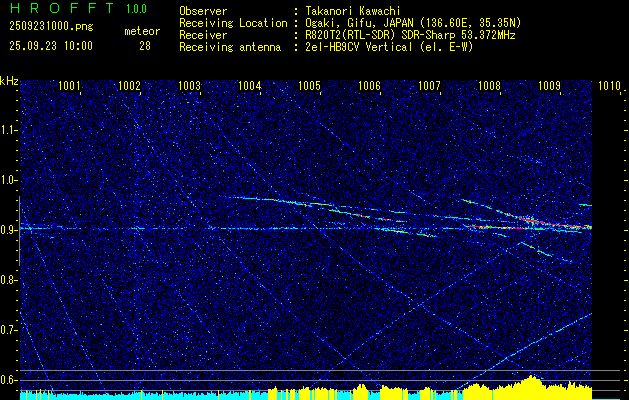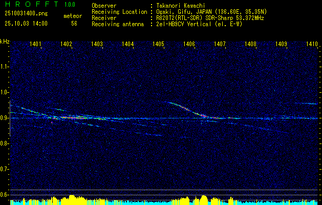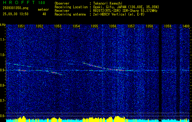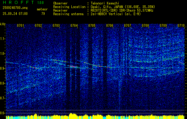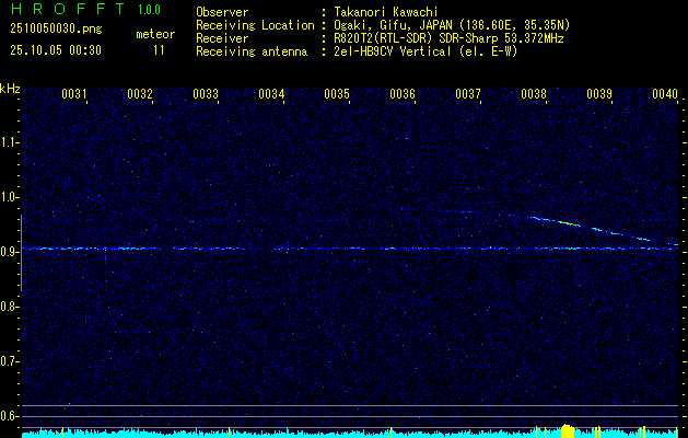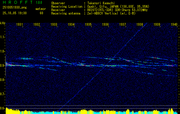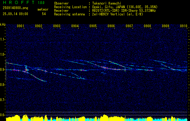 0.9kHz附近に発生している『点』または『塊』が流星によるエコーです.