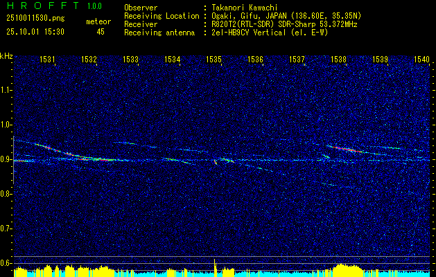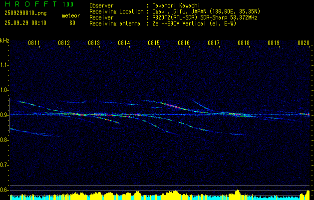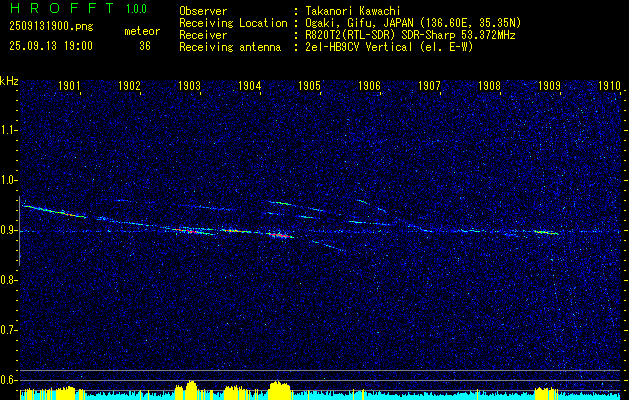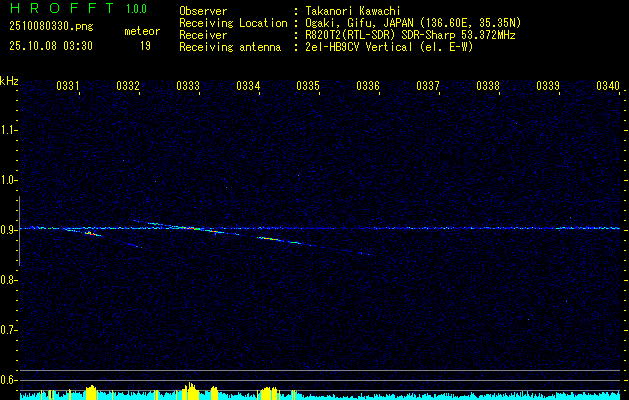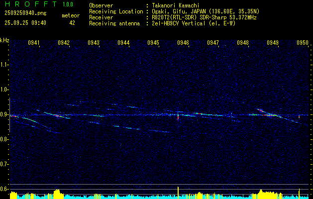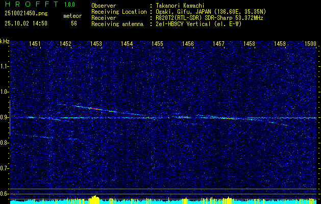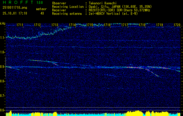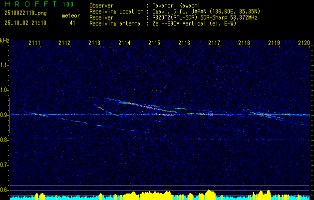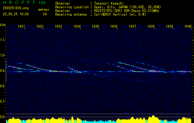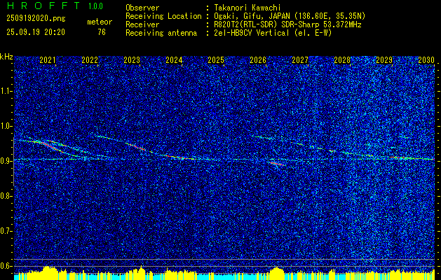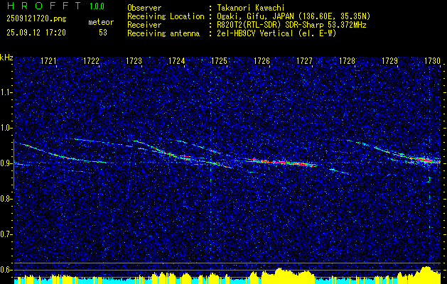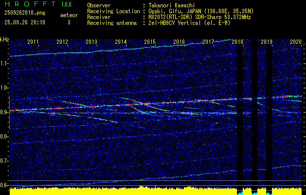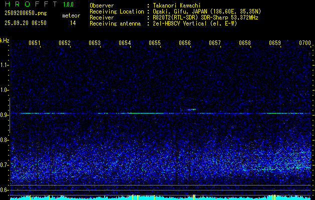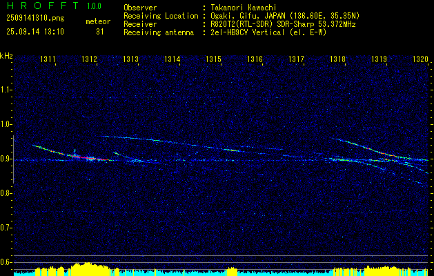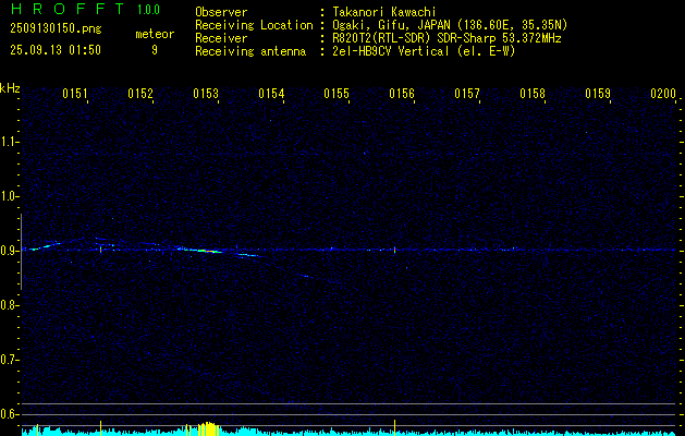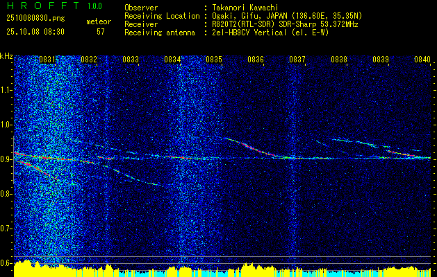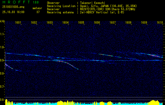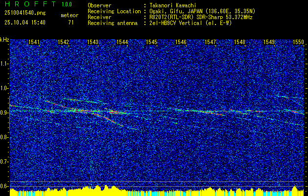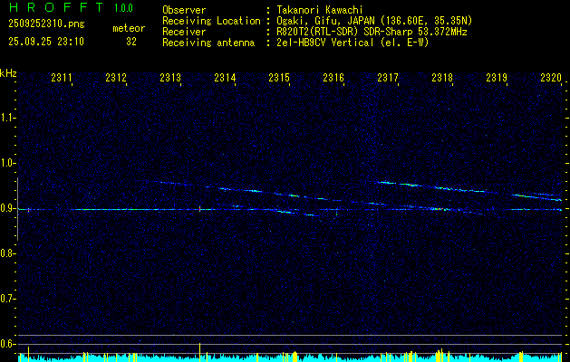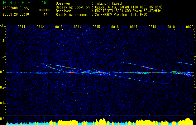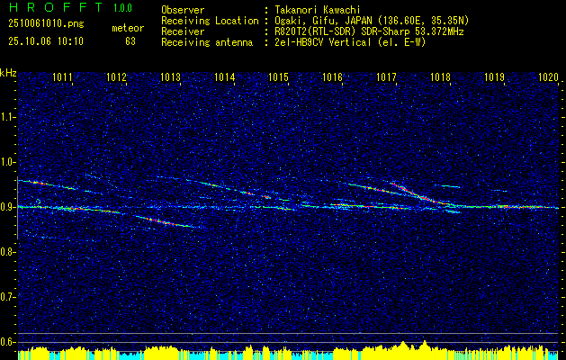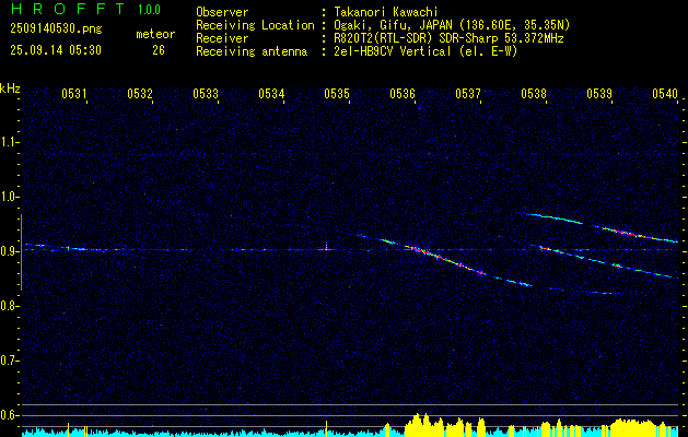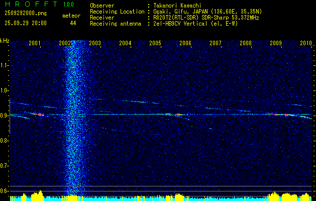0.9kHz附近に発生している『点』または『塊』が流星によるエコーです.