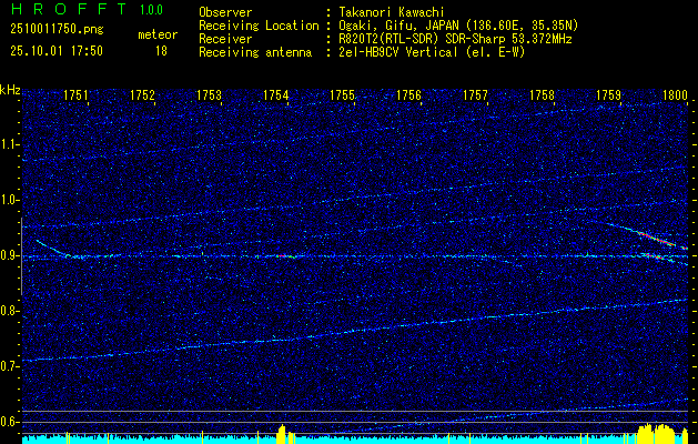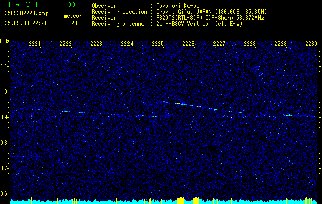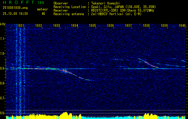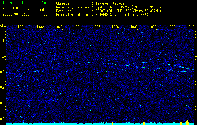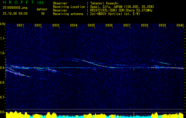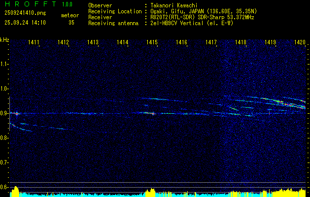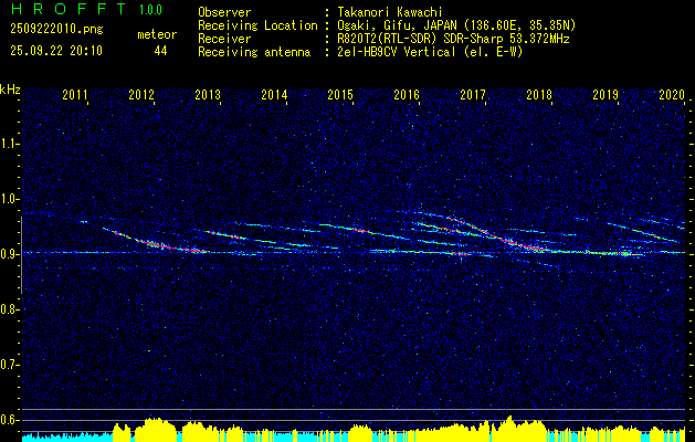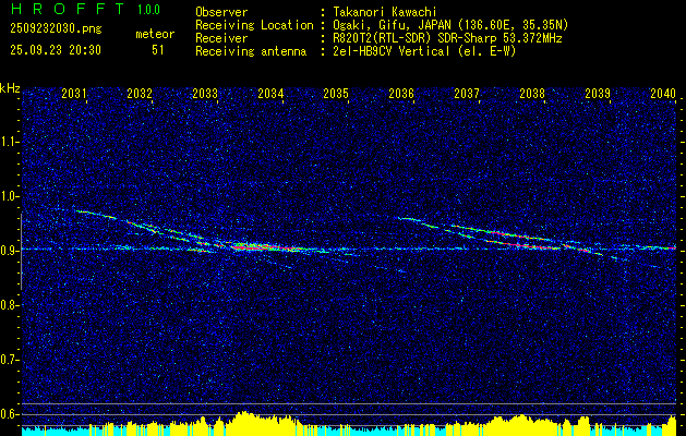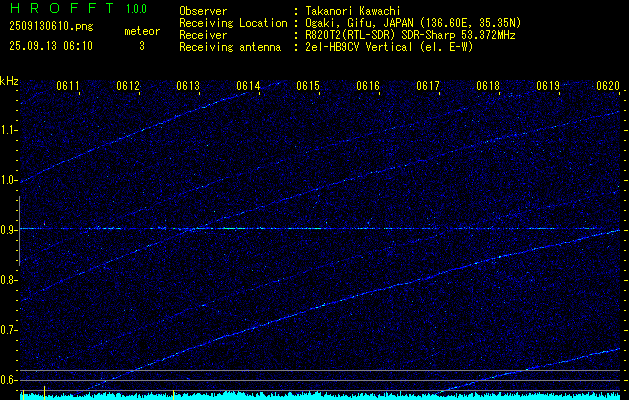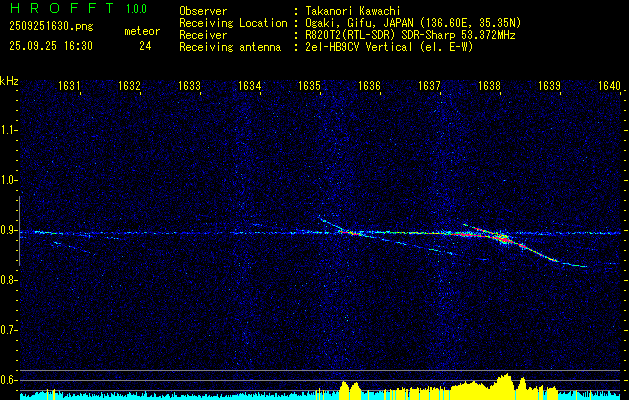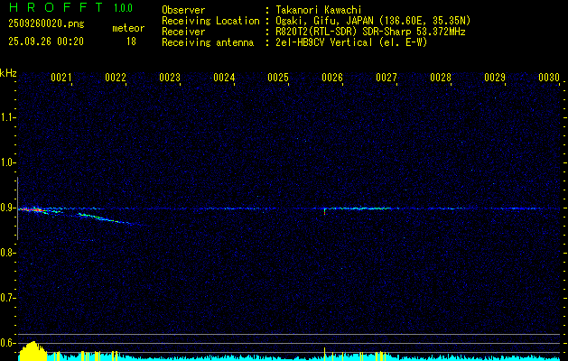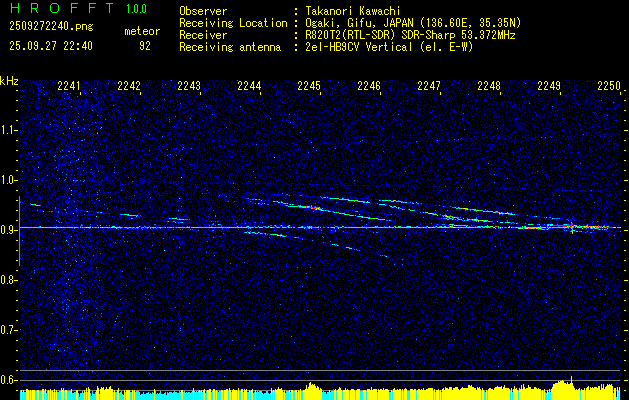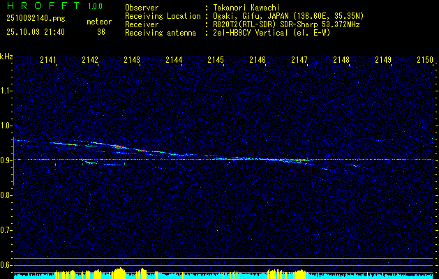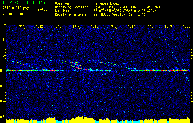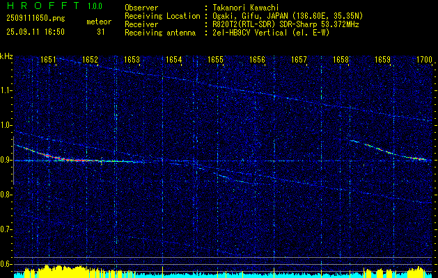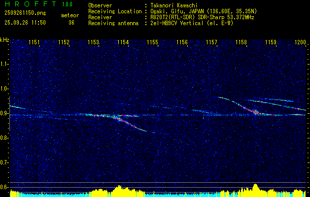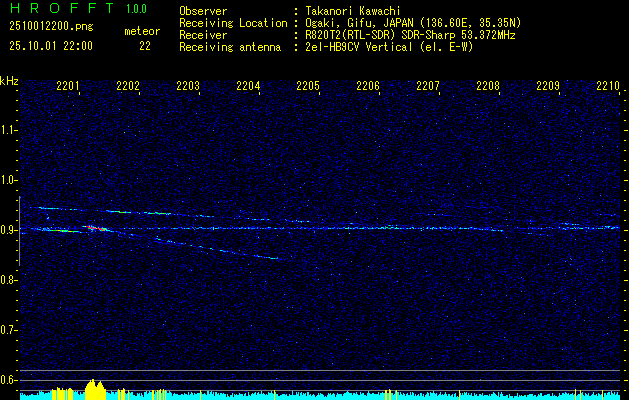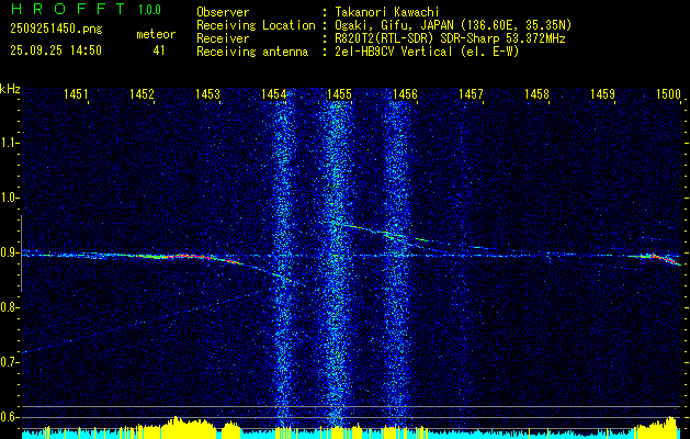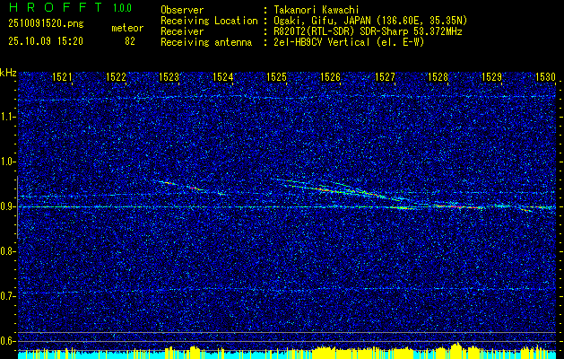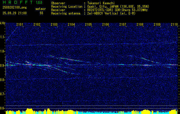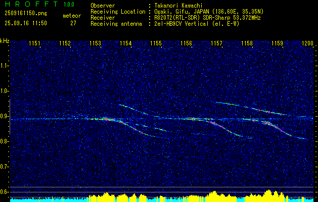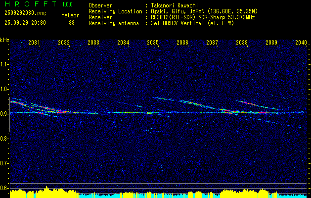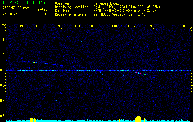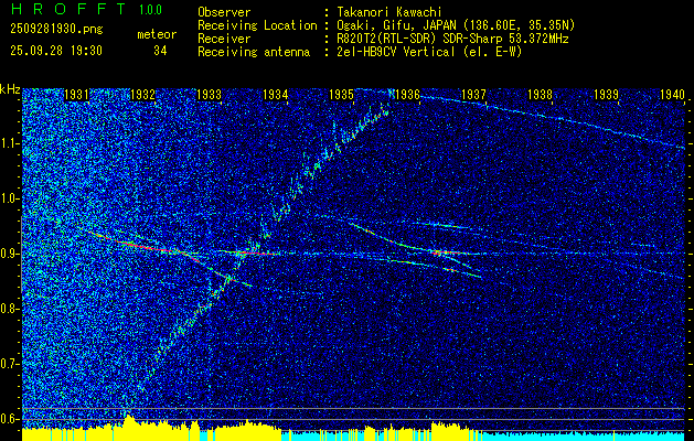 0.9kHz附近に発生している『点』または『塊』が流星によるエコーです.