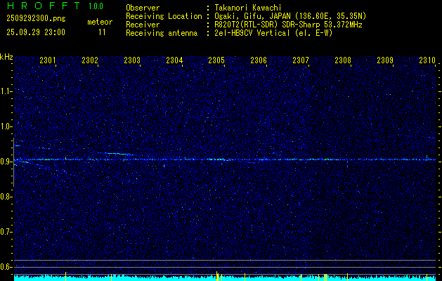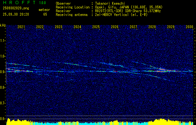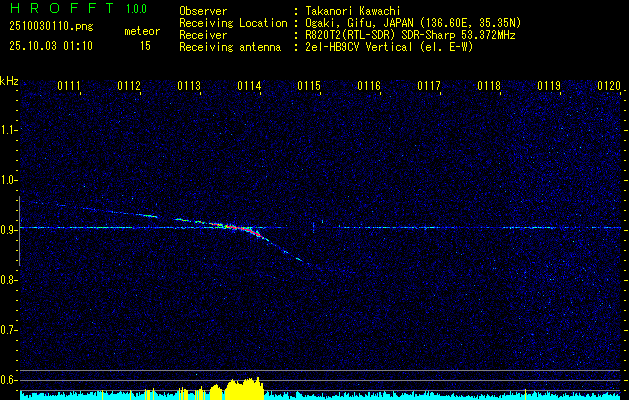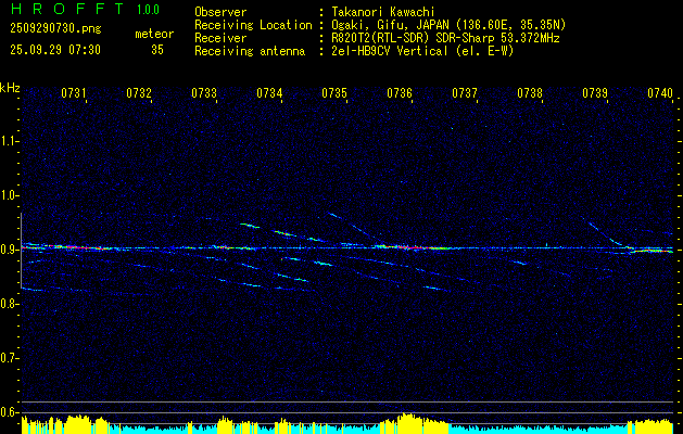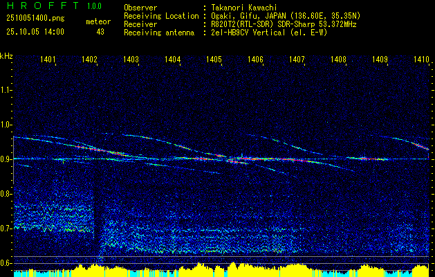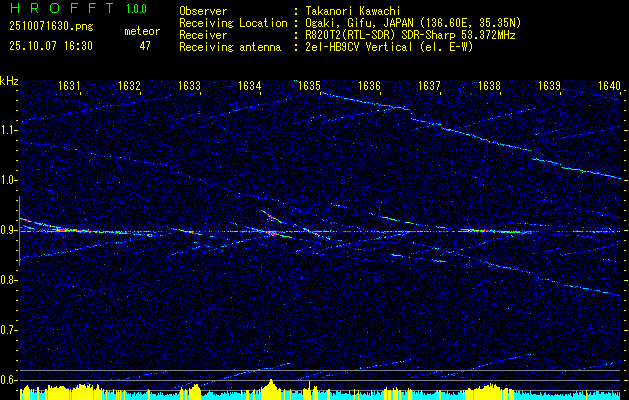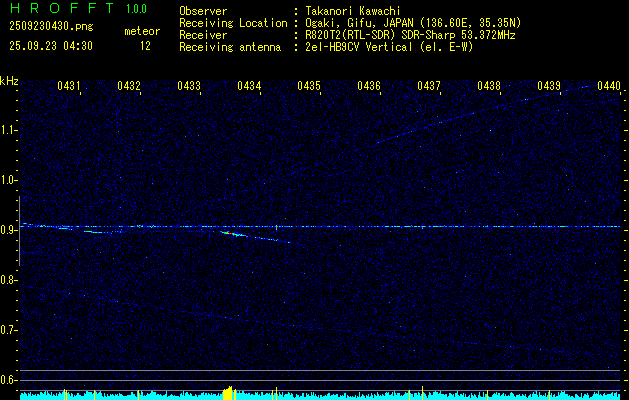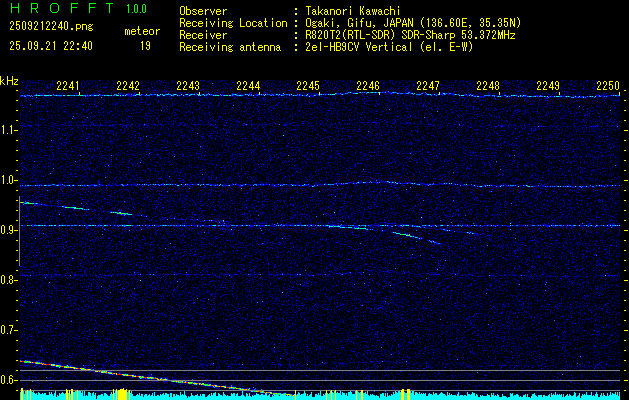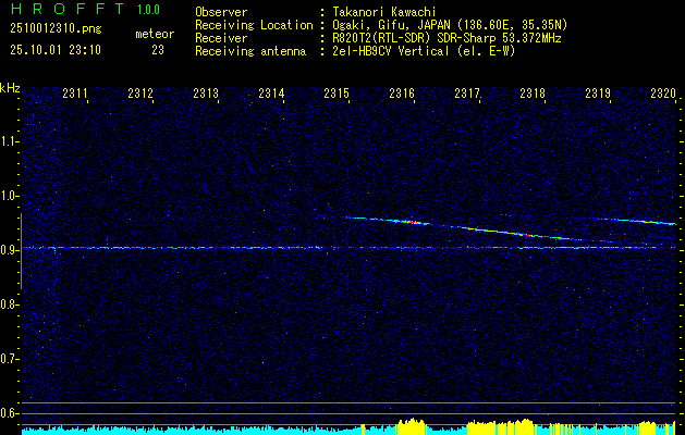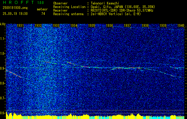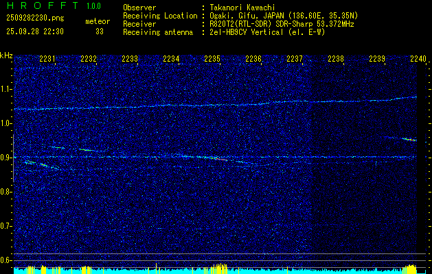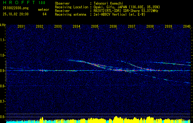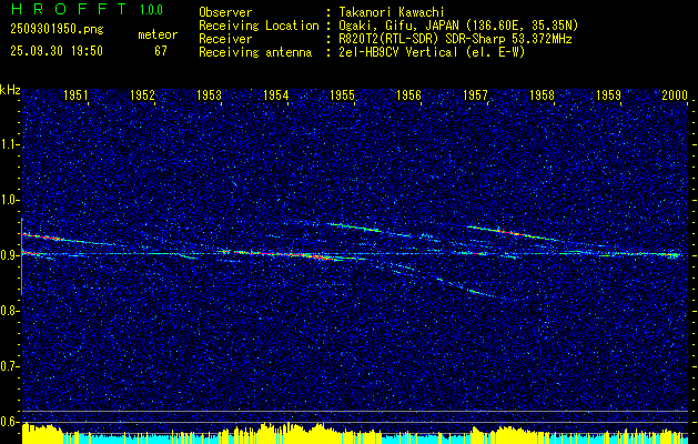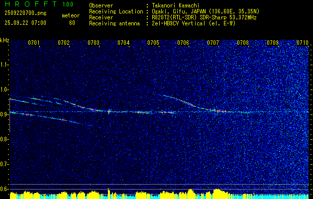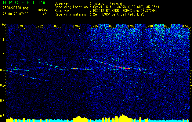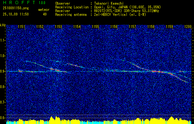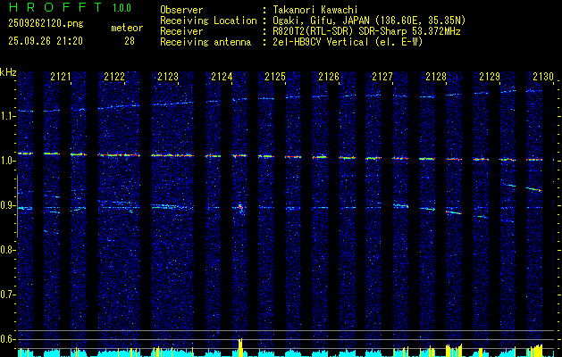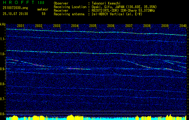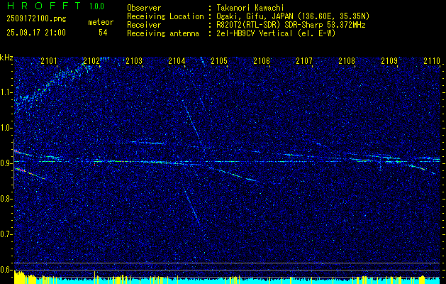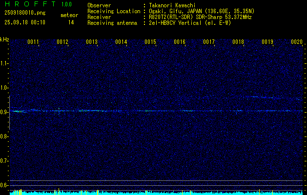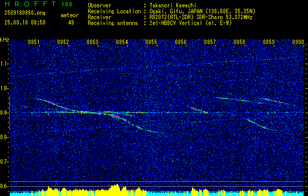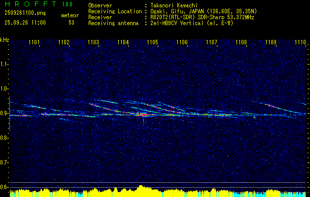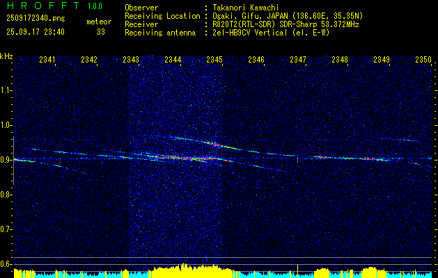 0.9kHz附近に発生している『点』または『塊』が流星によるエコーです.