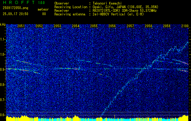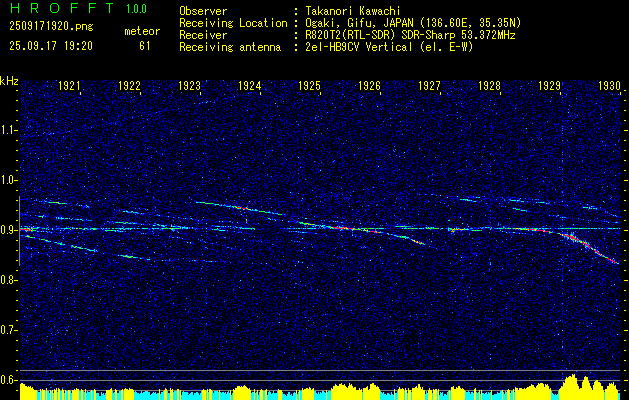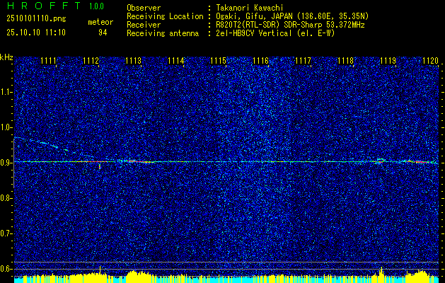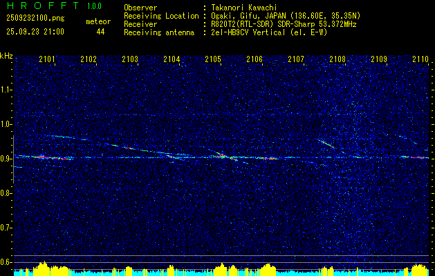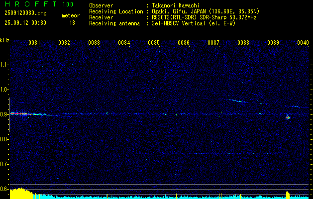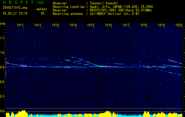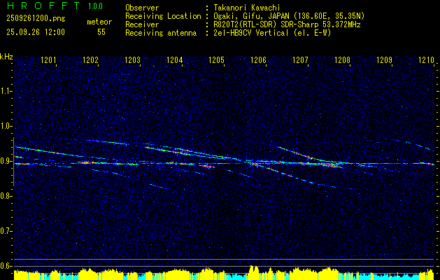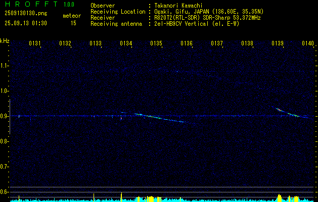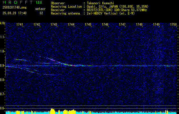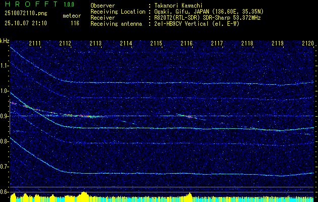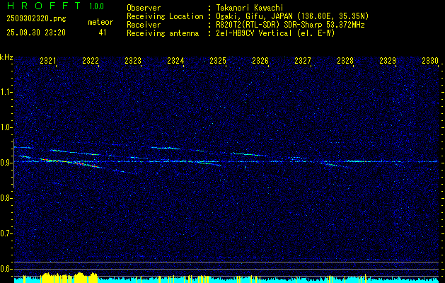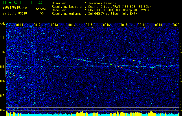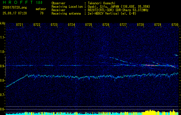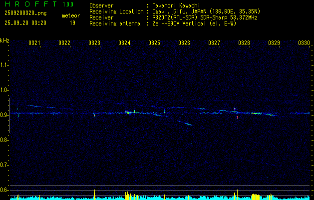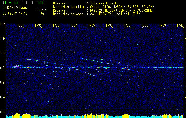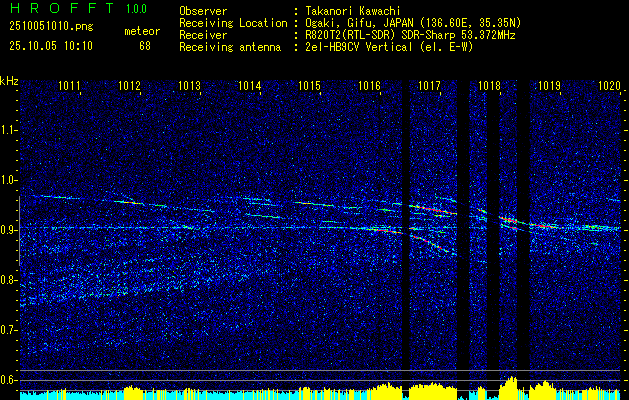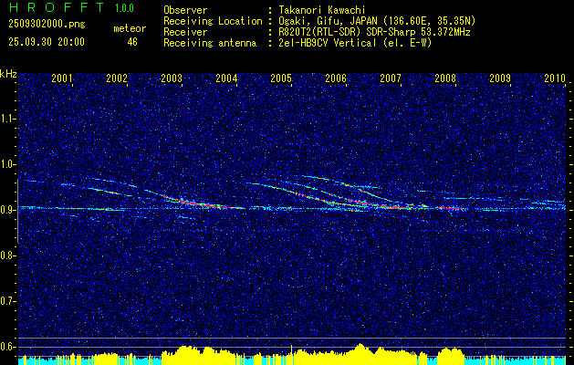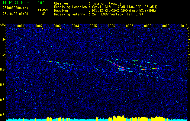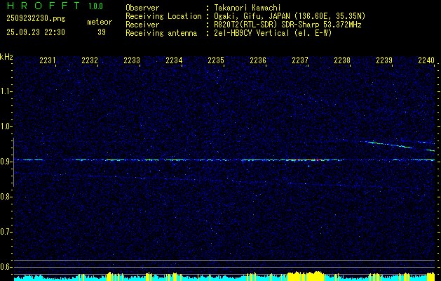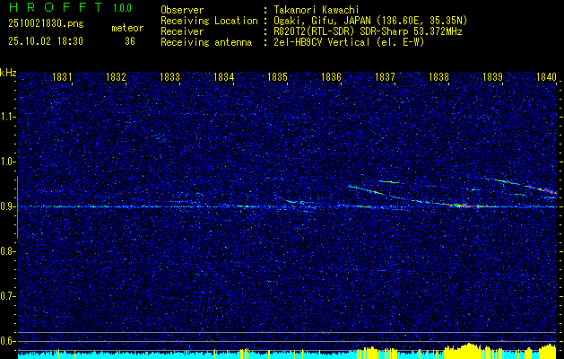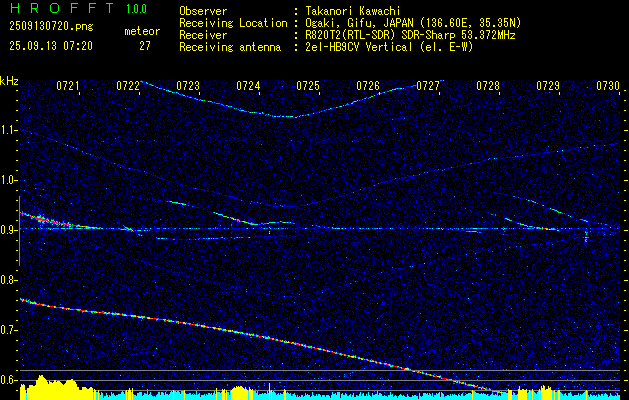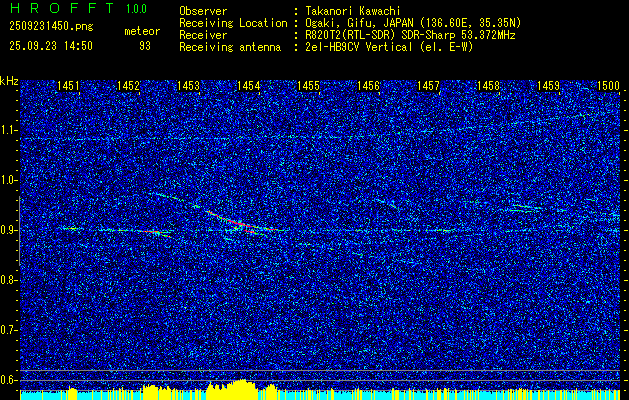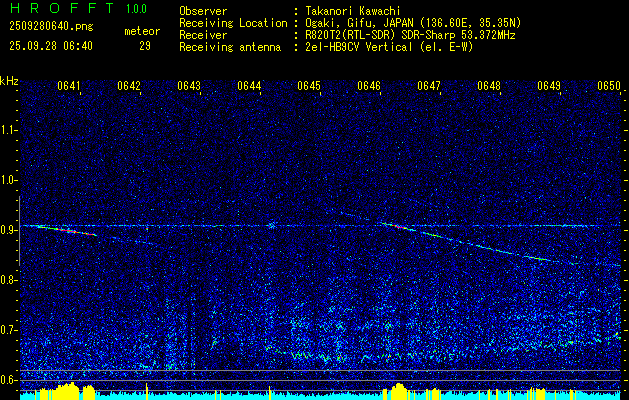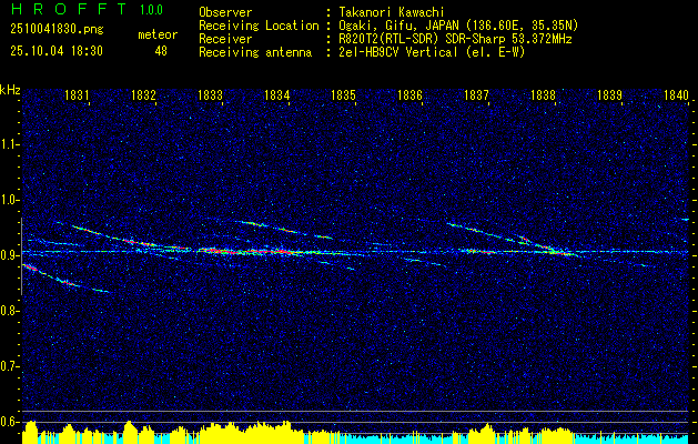 0.9kHz附近に発生している『点』または『塊』が流星によるエコーです.