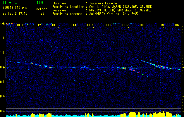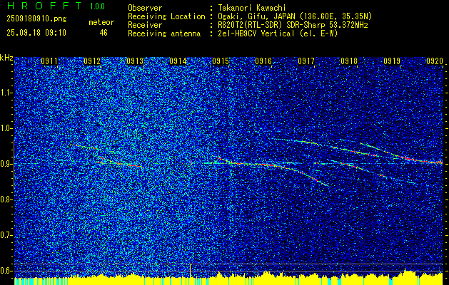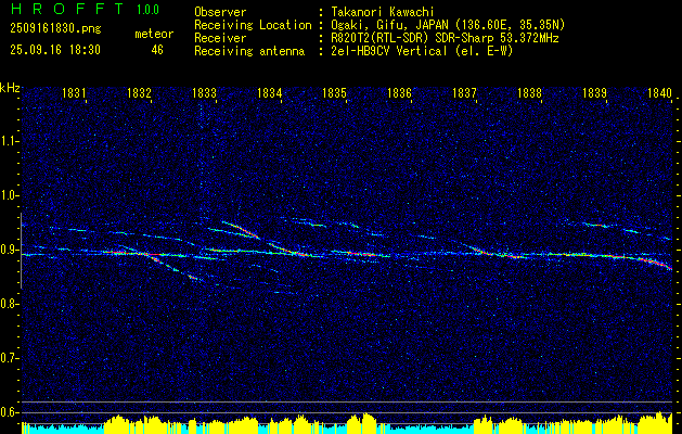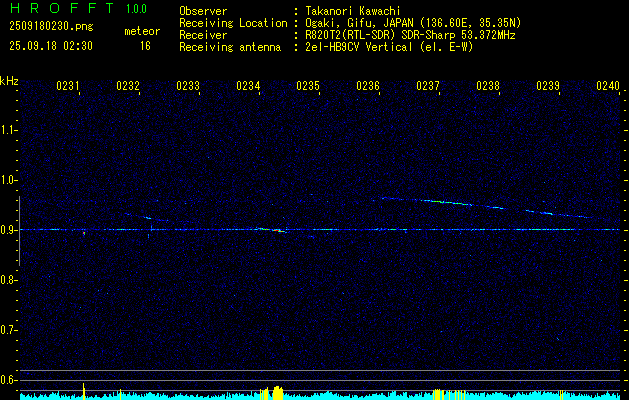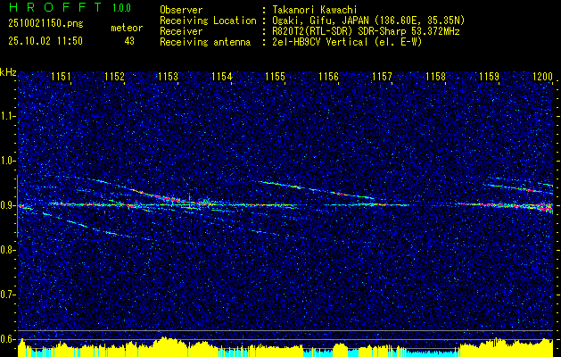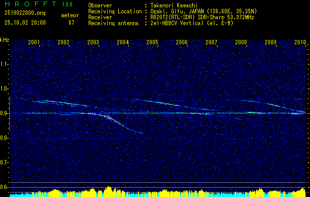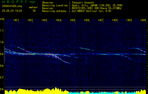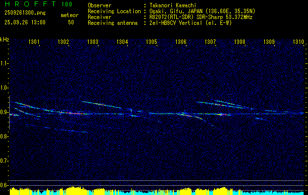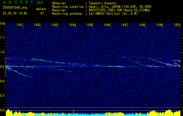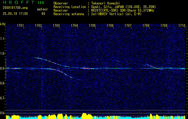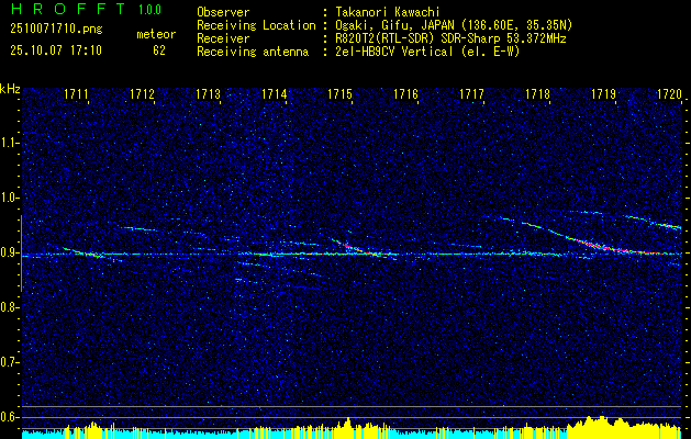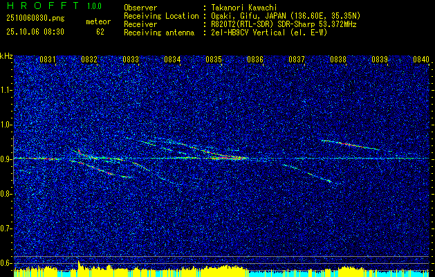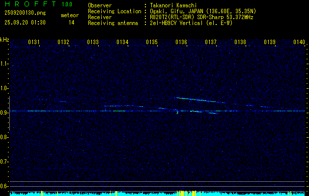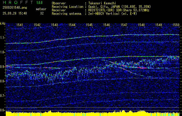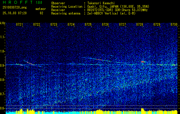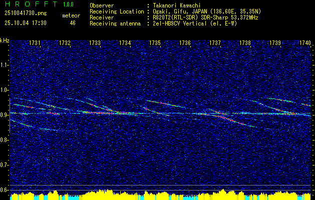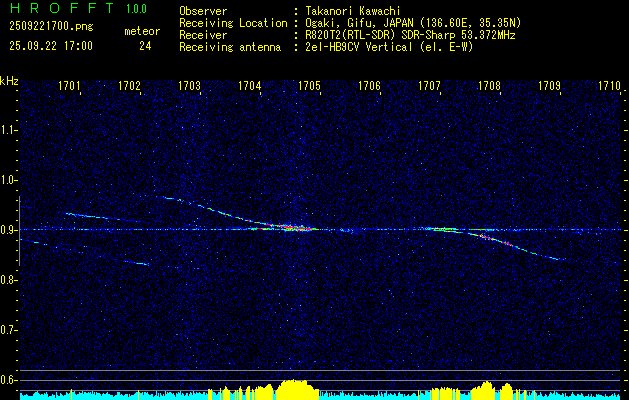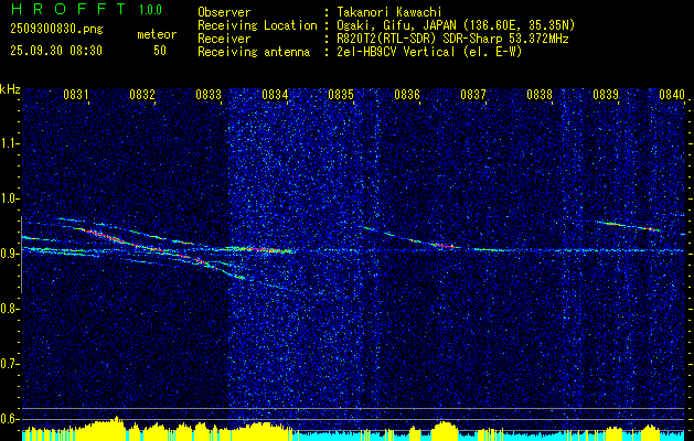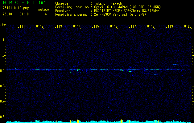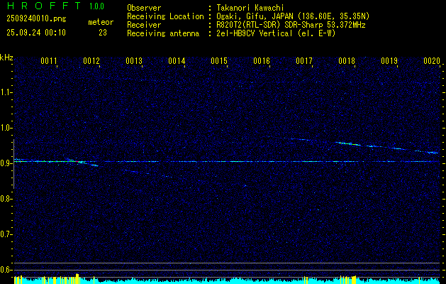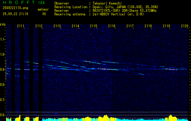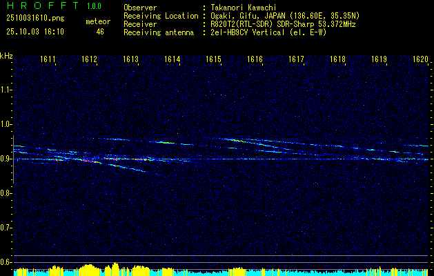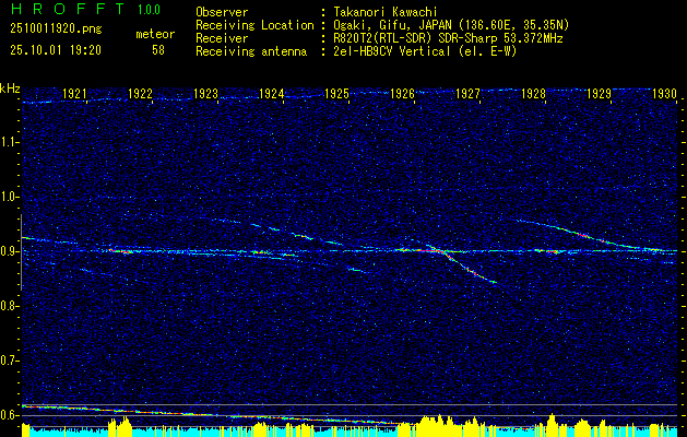 0.9kHz附近に発生している『点』または『塊』が流星によるエコーです.