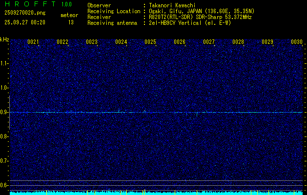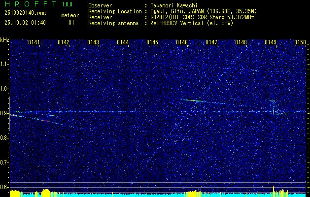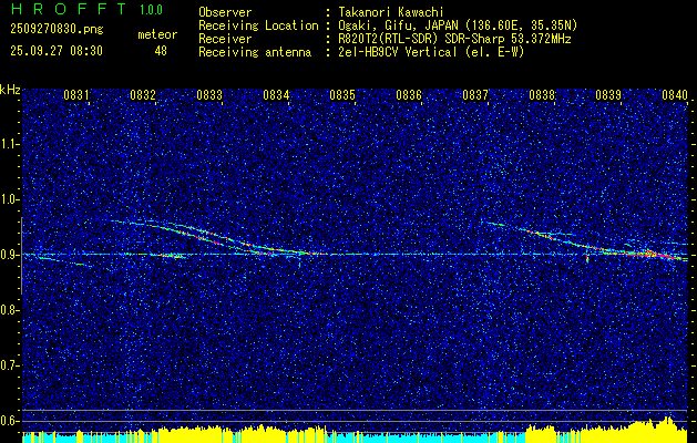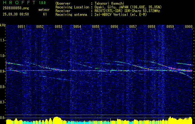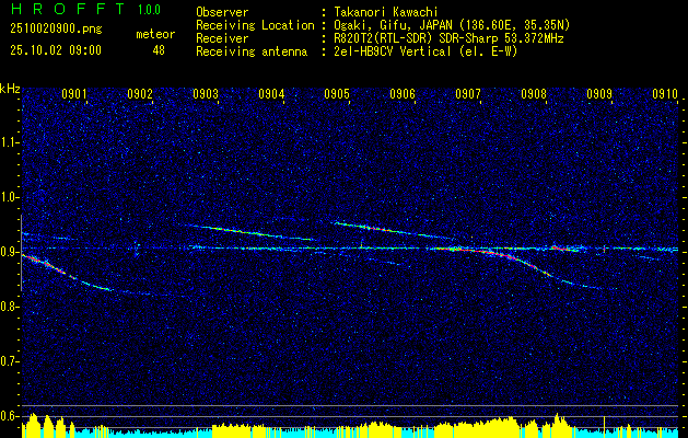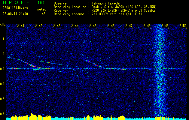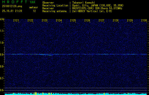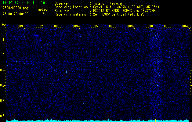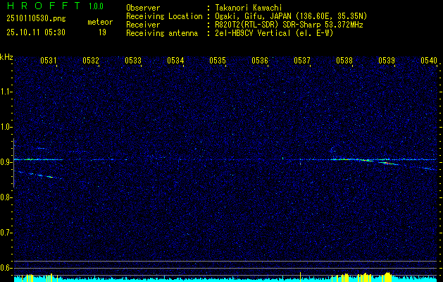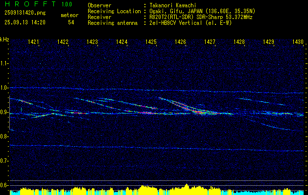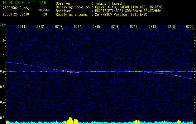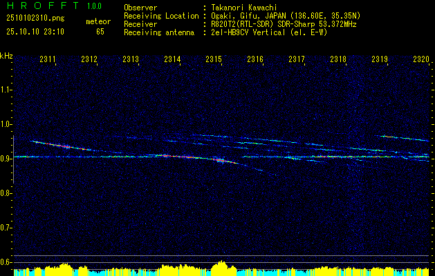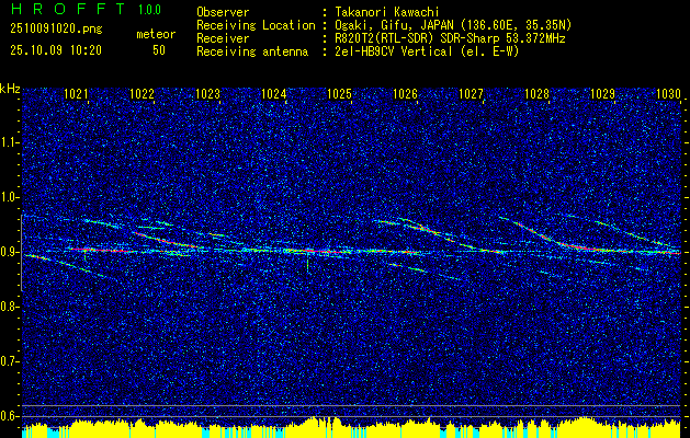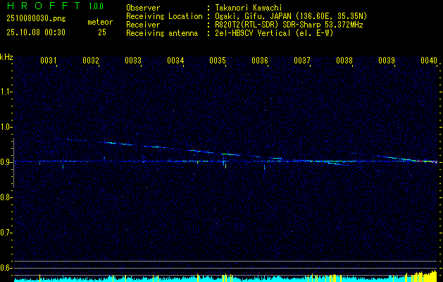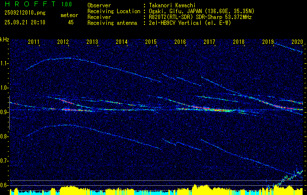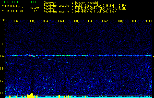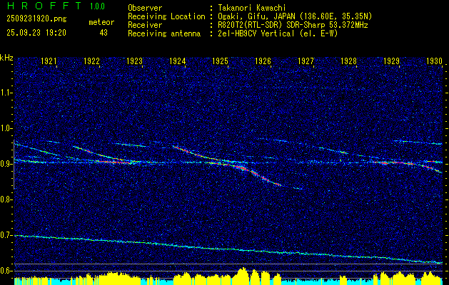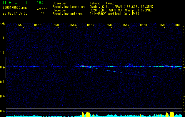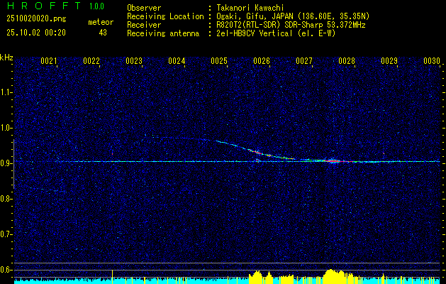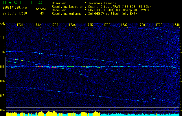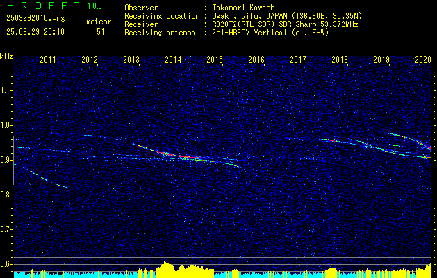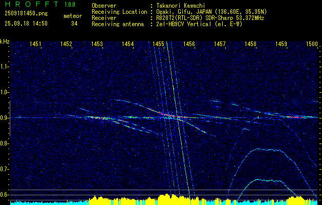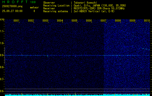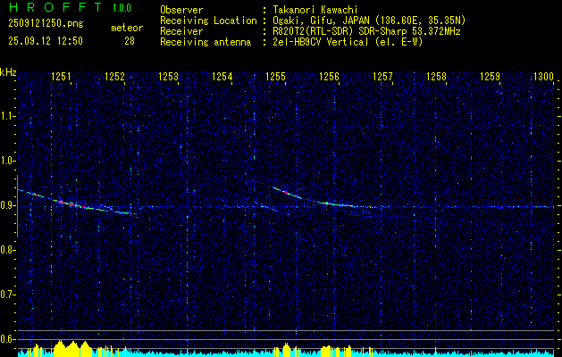 0.9kHz附近に発生している『点』または『塊』が流星によるエコーです.